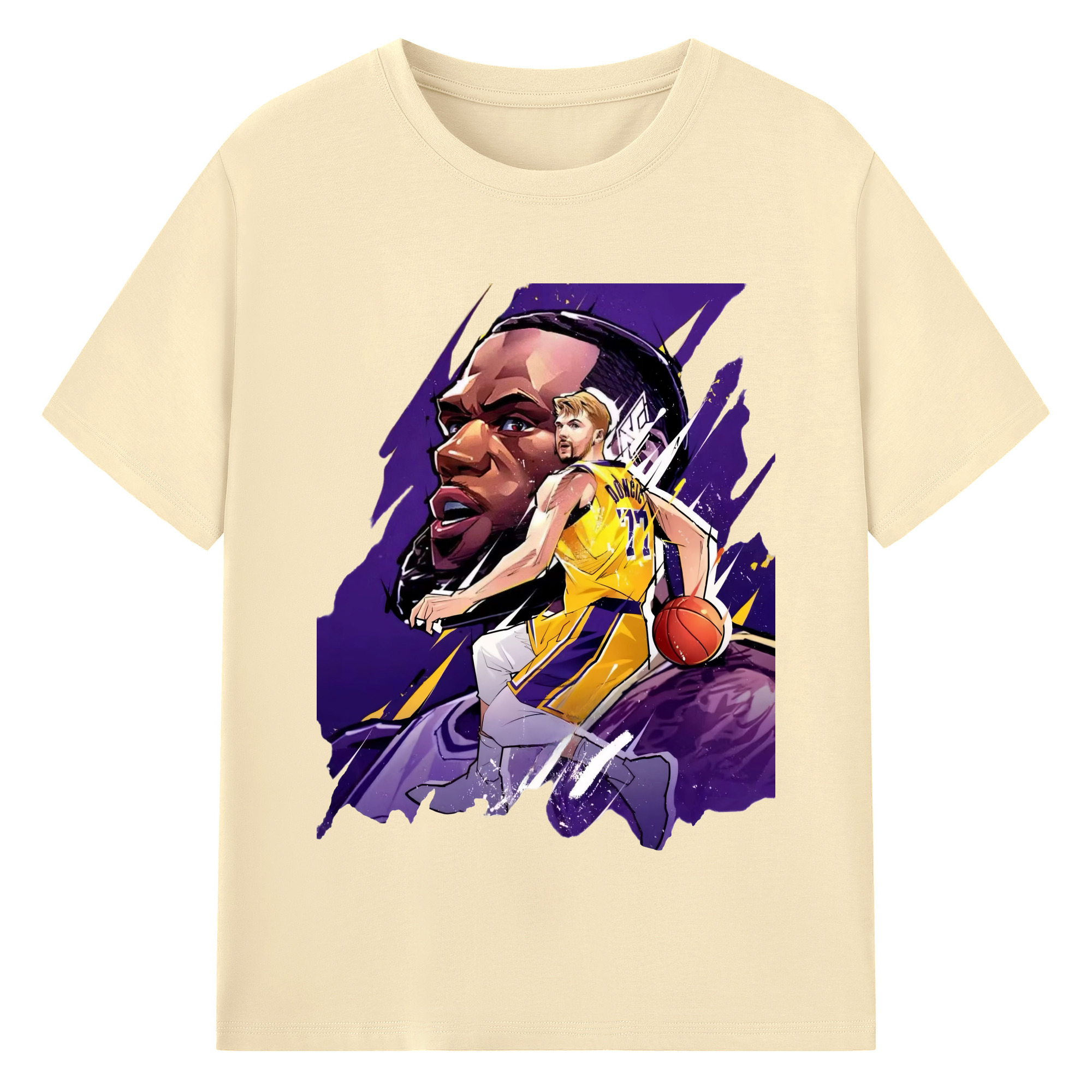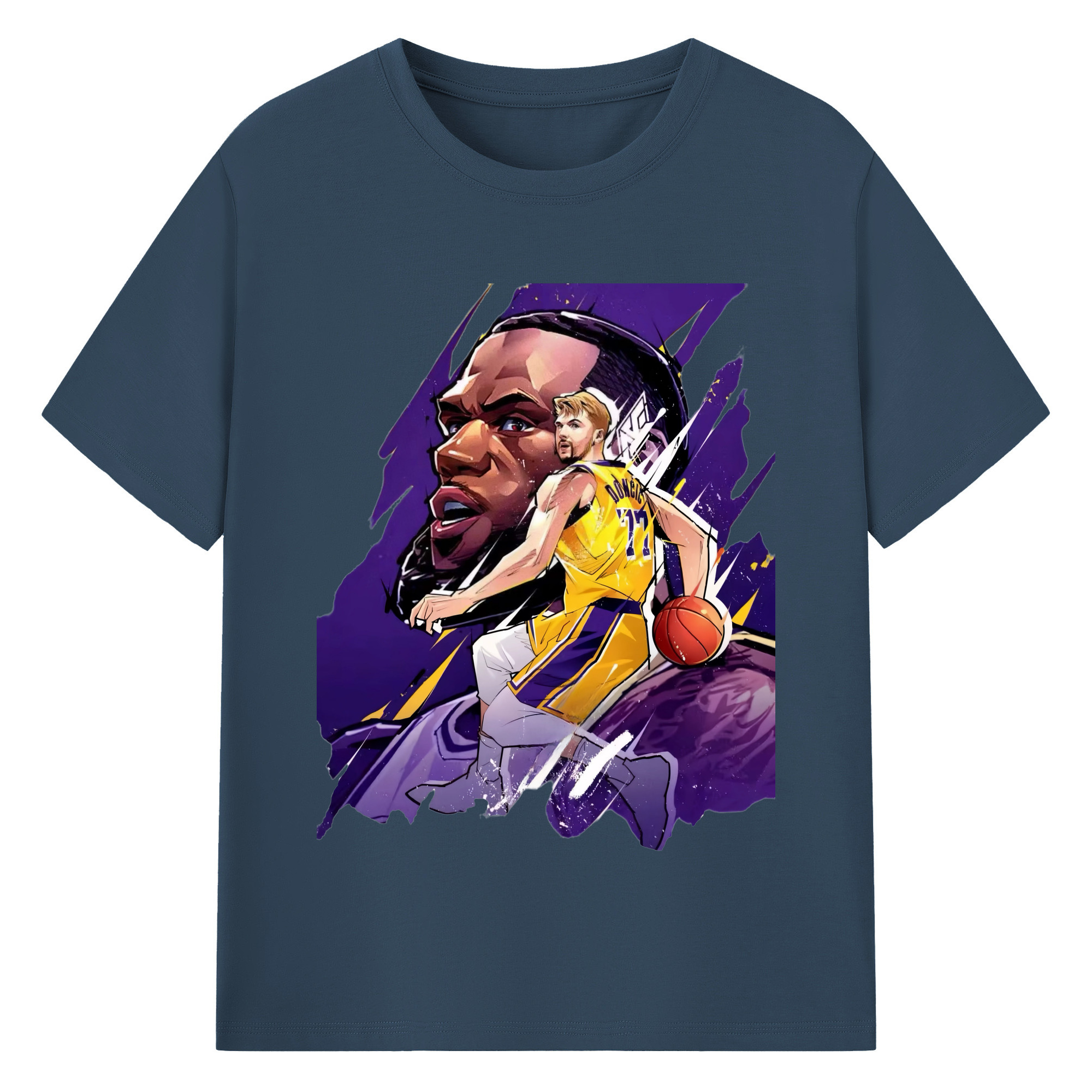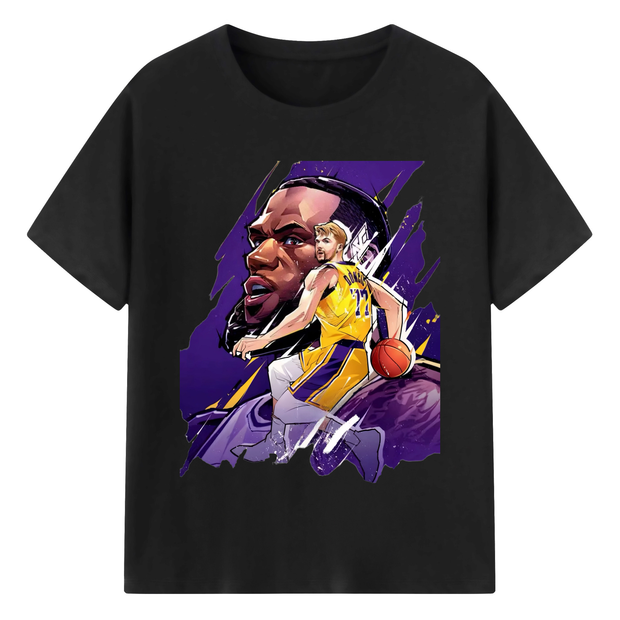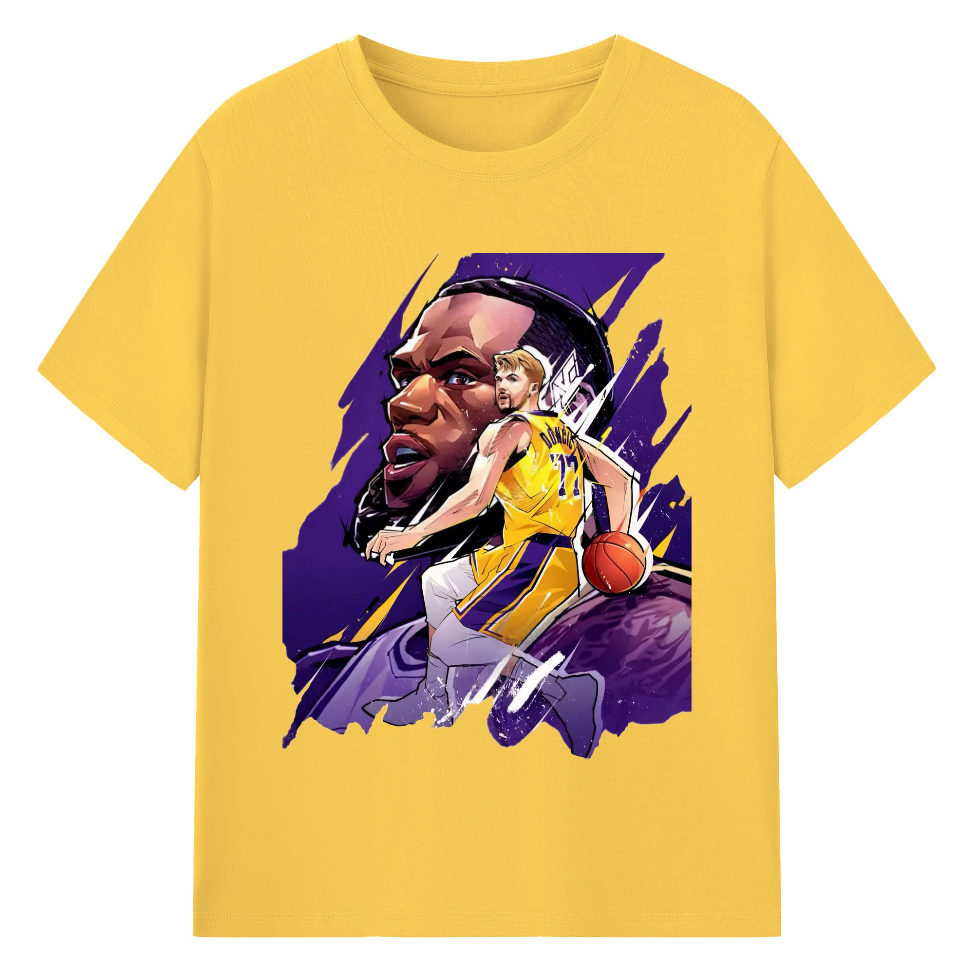Luka & LeBron James Lakers Shirt - 180g Cotton T-Shirt With Front Heat Transfer Print – Soft, Lightweight, Fitted Design – Comfortable Casual Wear For Sports & Everyday Use