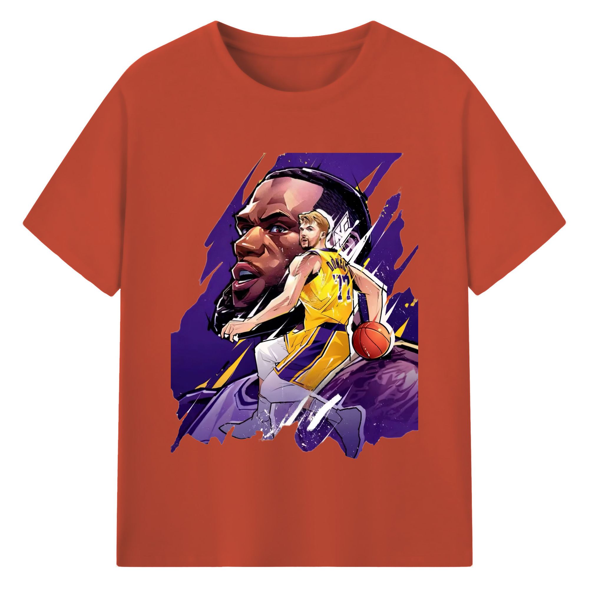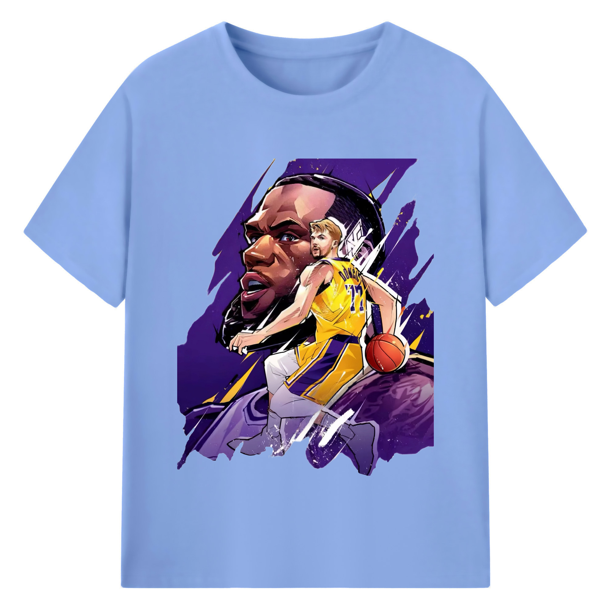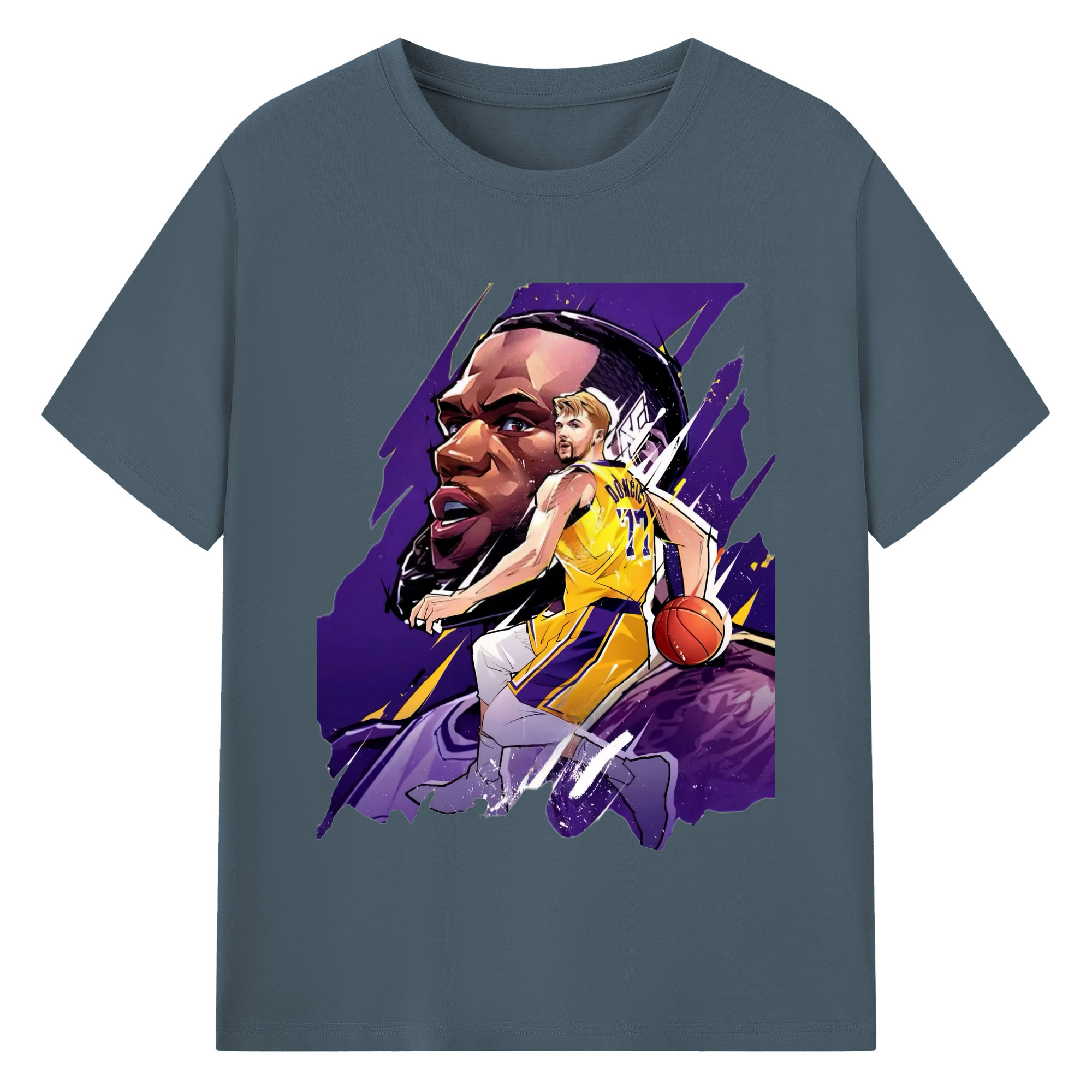 Luka & LeBron James Lakers Shirt - 180g Cotton T-Shirt With Front Heat Transfer Print – Soft, Lightweight, Fitted Design – Comfortable Casual Wear For Sports & Everyday Use