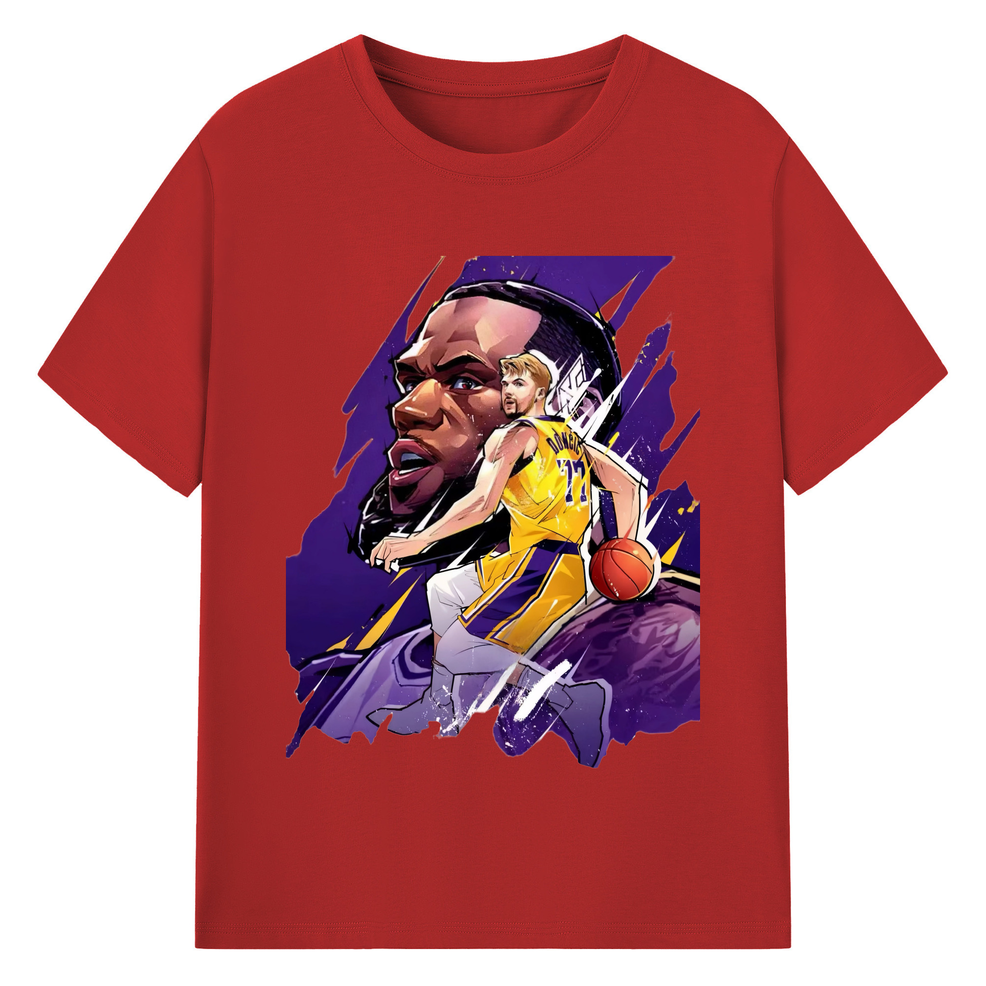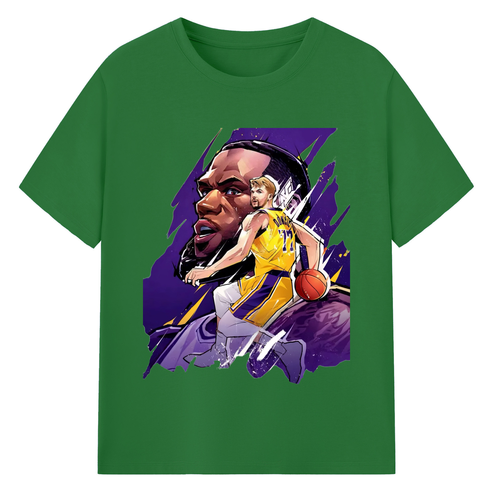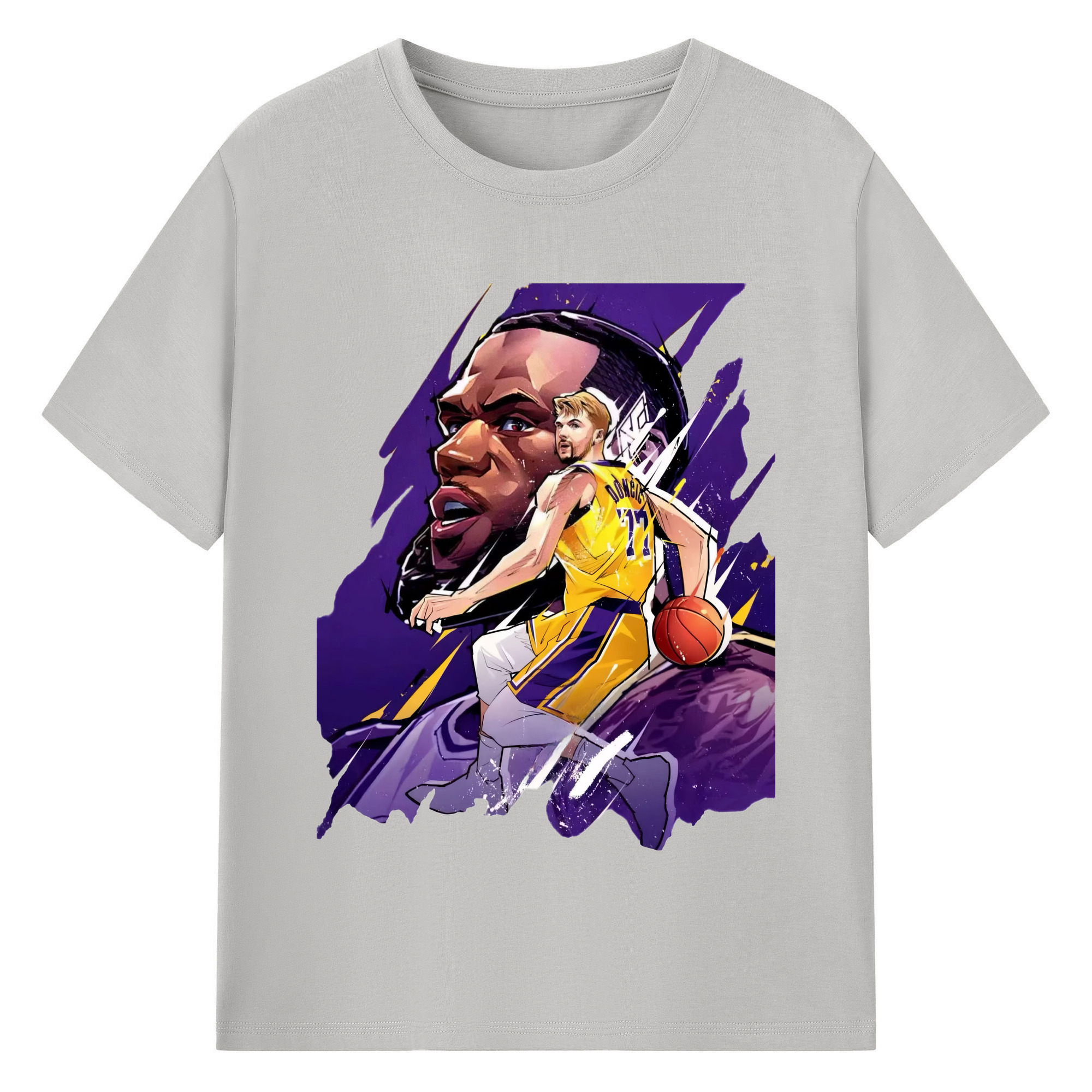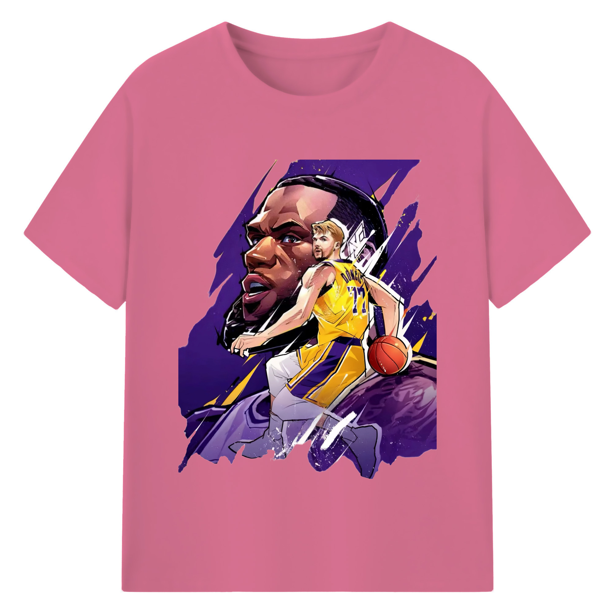Luka & LeBron James Lakers Shirt - 180g Cotton T-Shirt With Front Heat Transfer Print – Soft, Lightweight, Fitted Design – Comfortable Casual Wear For Sports & Everyday Use