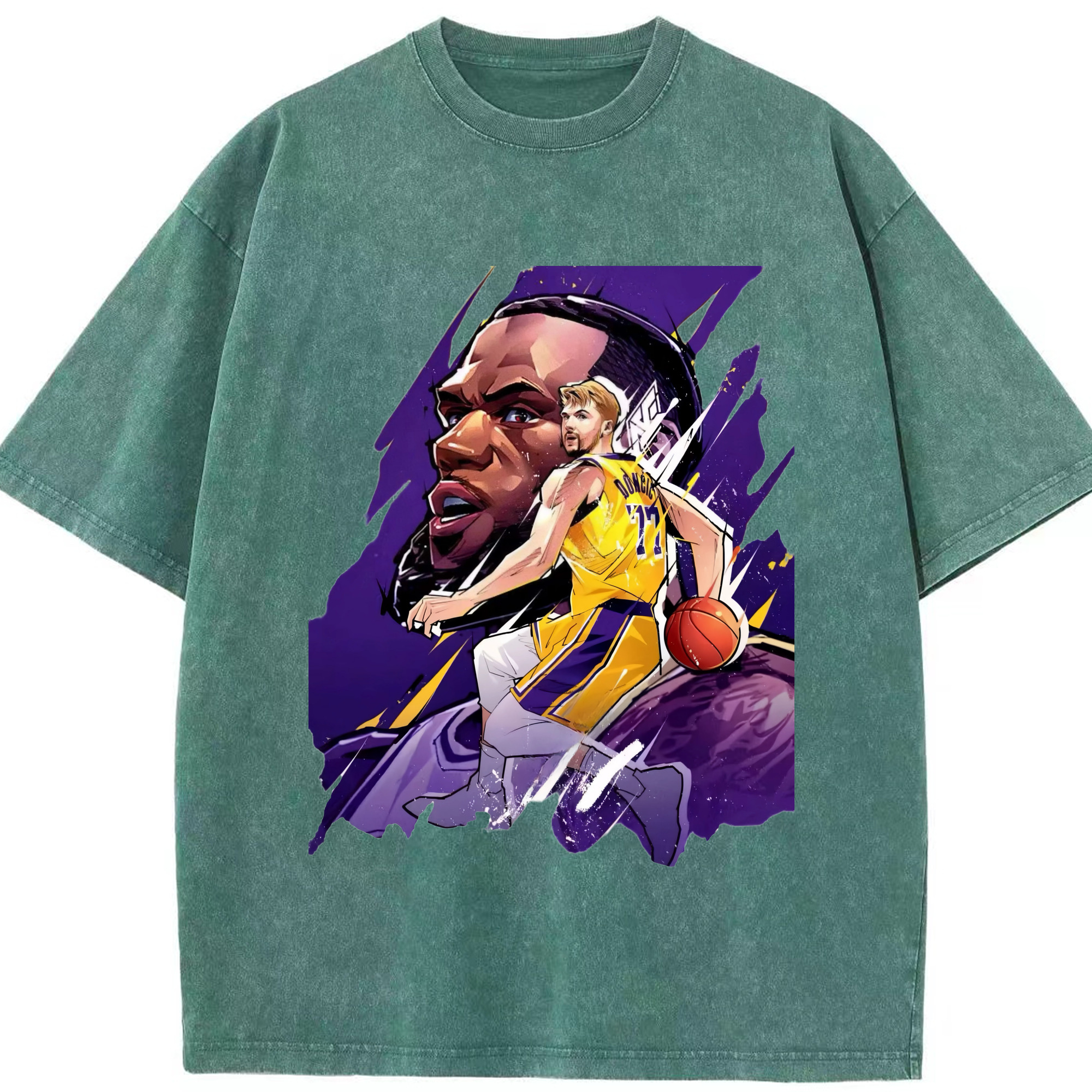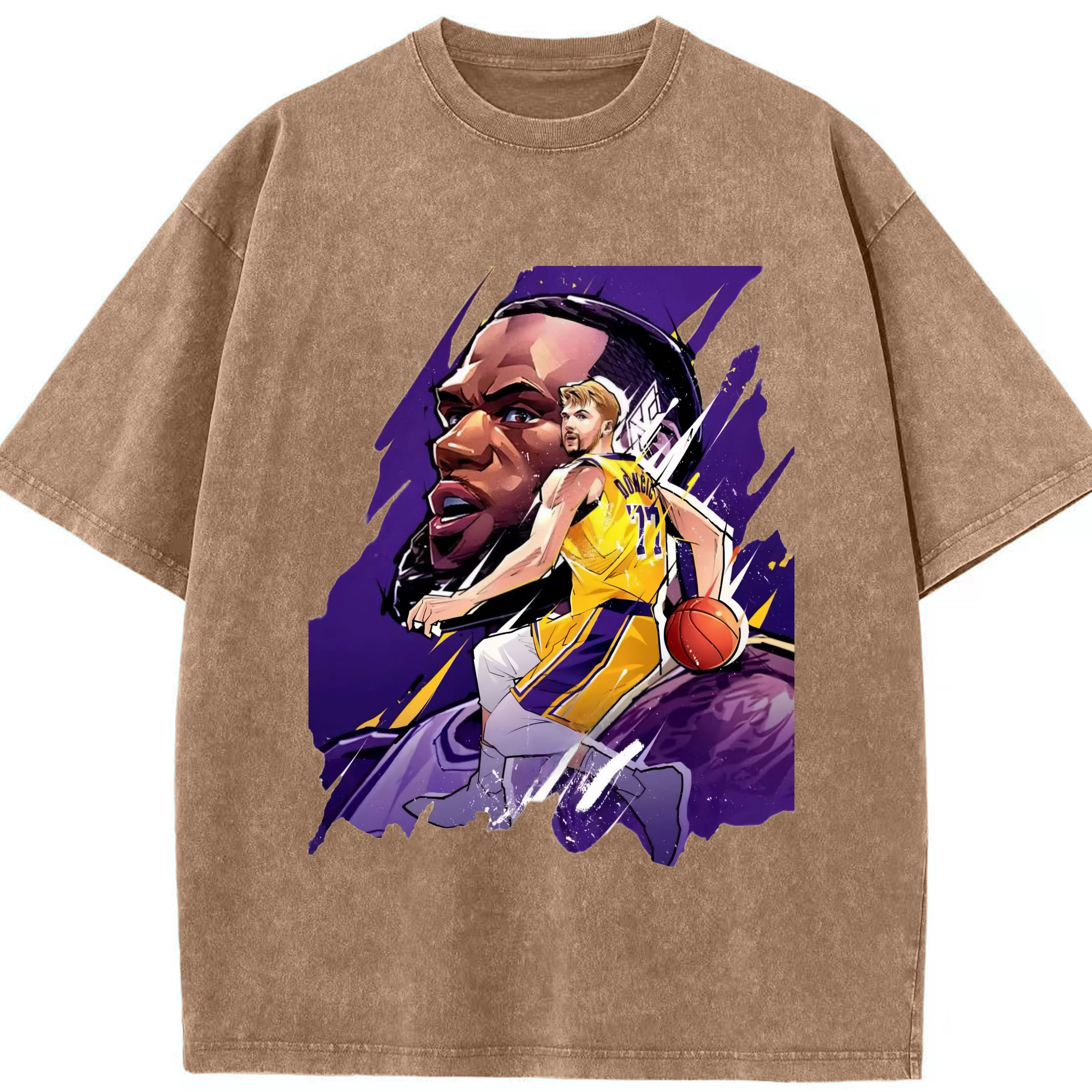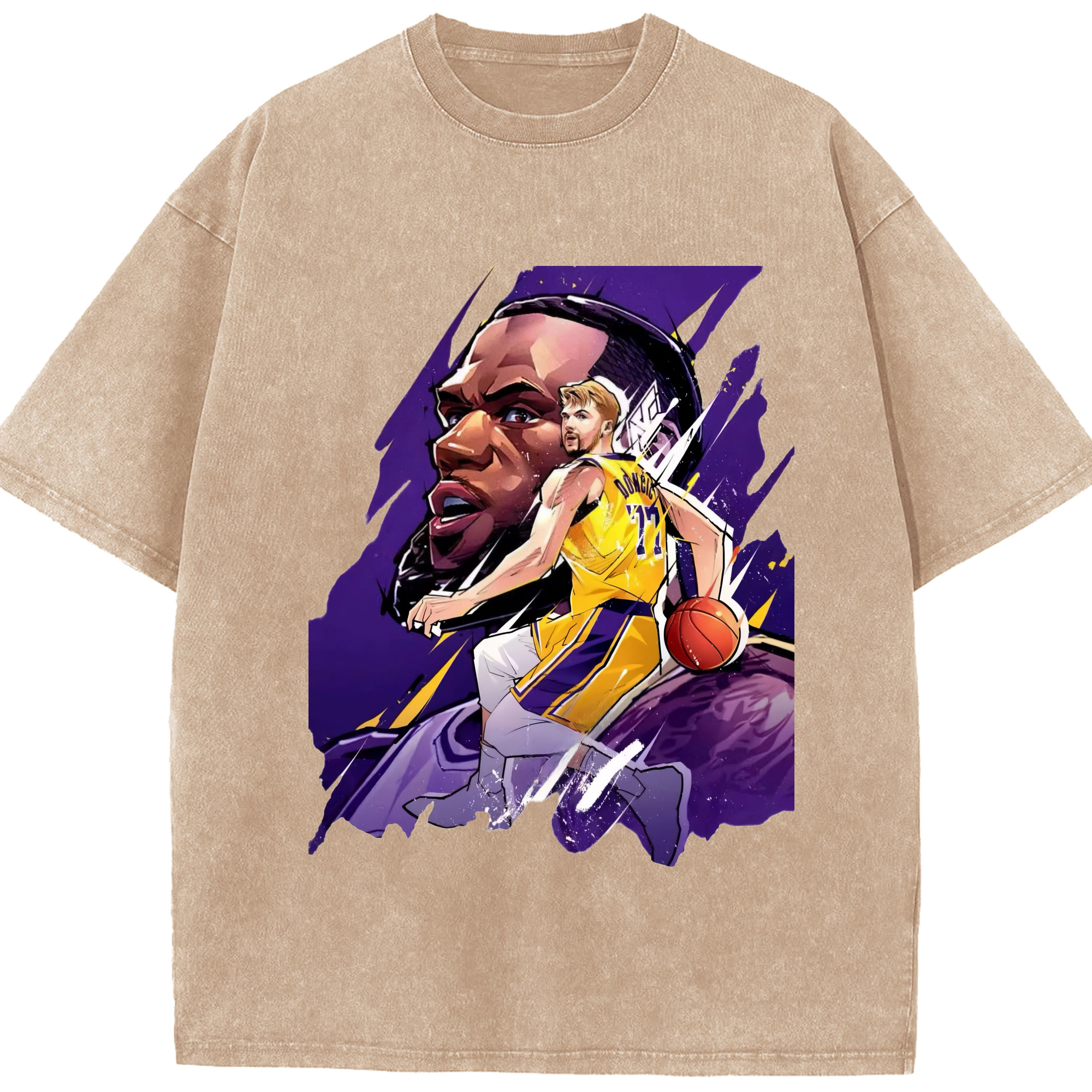 Luka & LeBron James Lakers Shirt - Washed Vintage Look 230g Cotton Oversized T-Shirt With Front Heat Transfer Print – Soft, Lightweight, Stylish Fit – Comfortable Casual Wear For Sports & Everyday Use