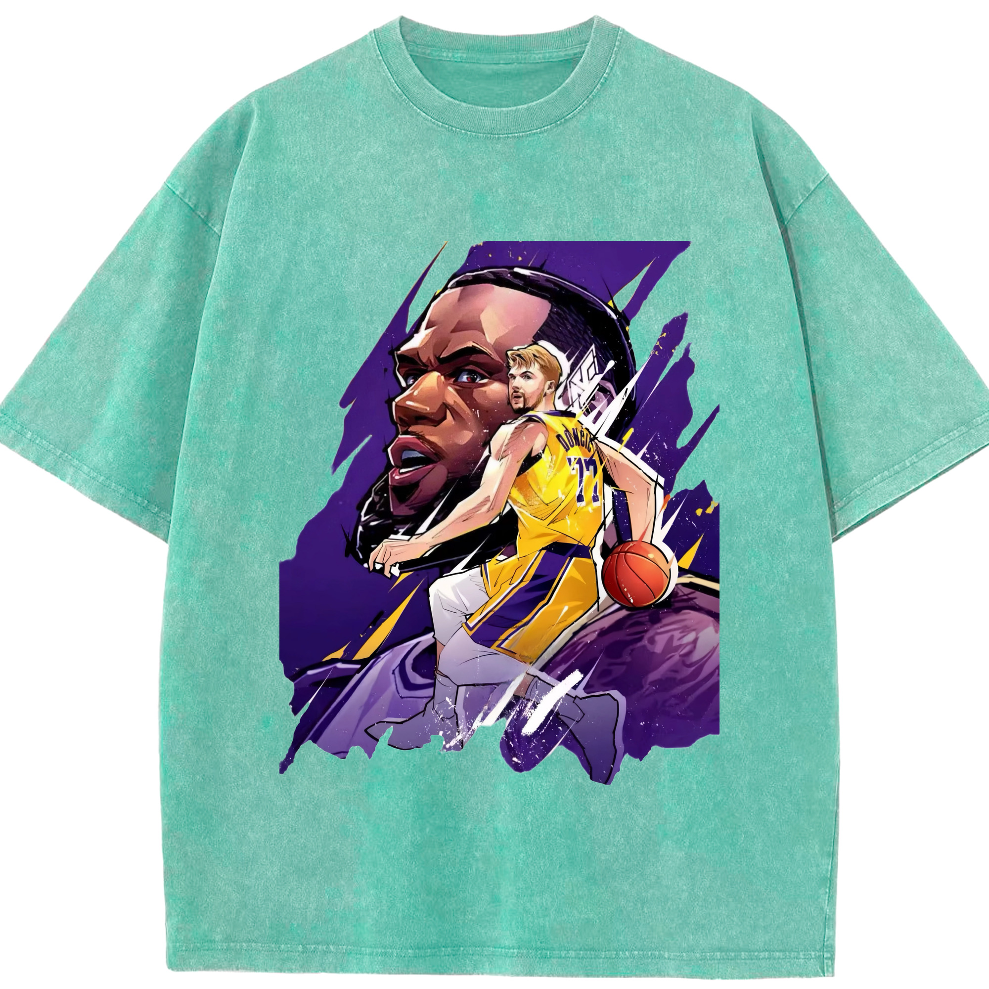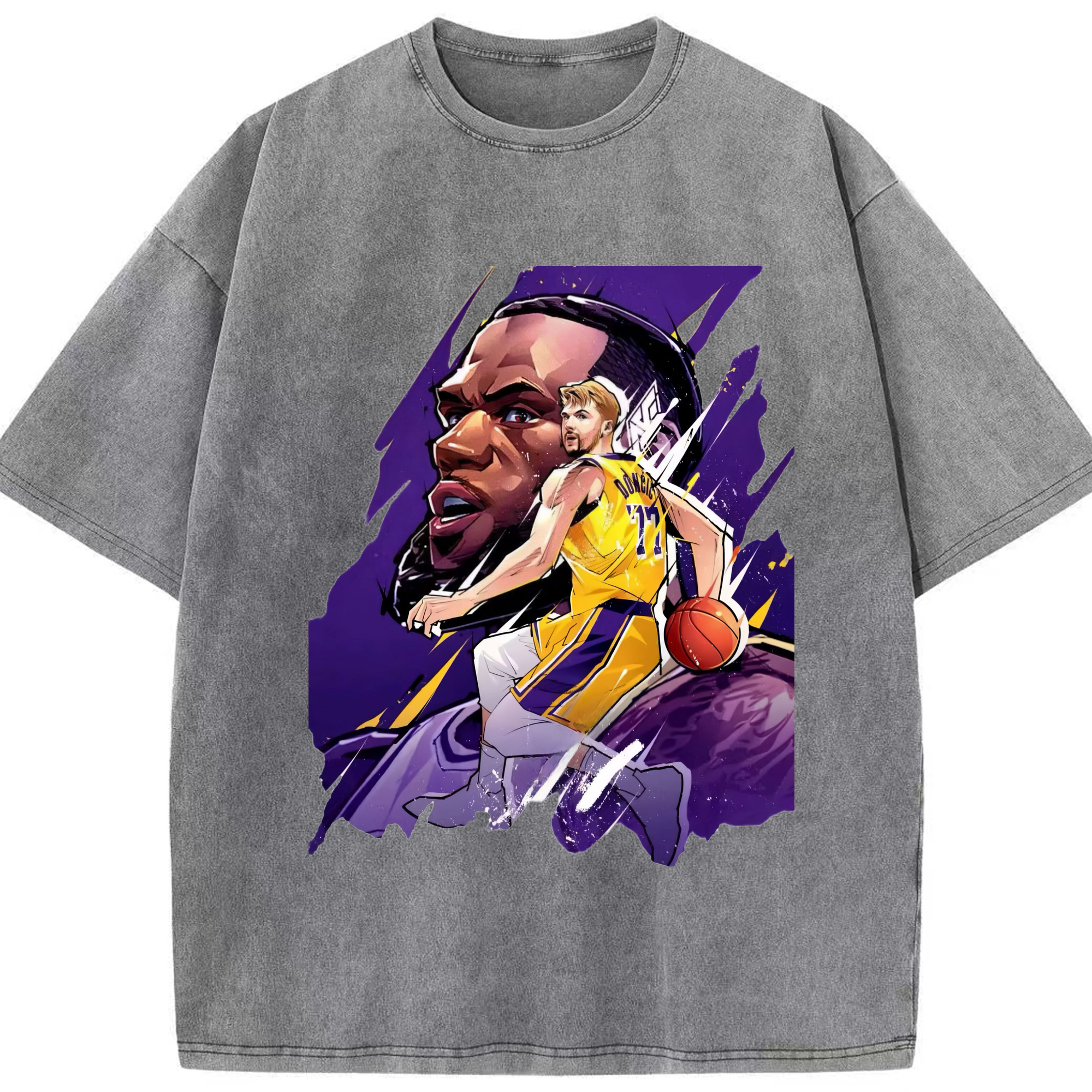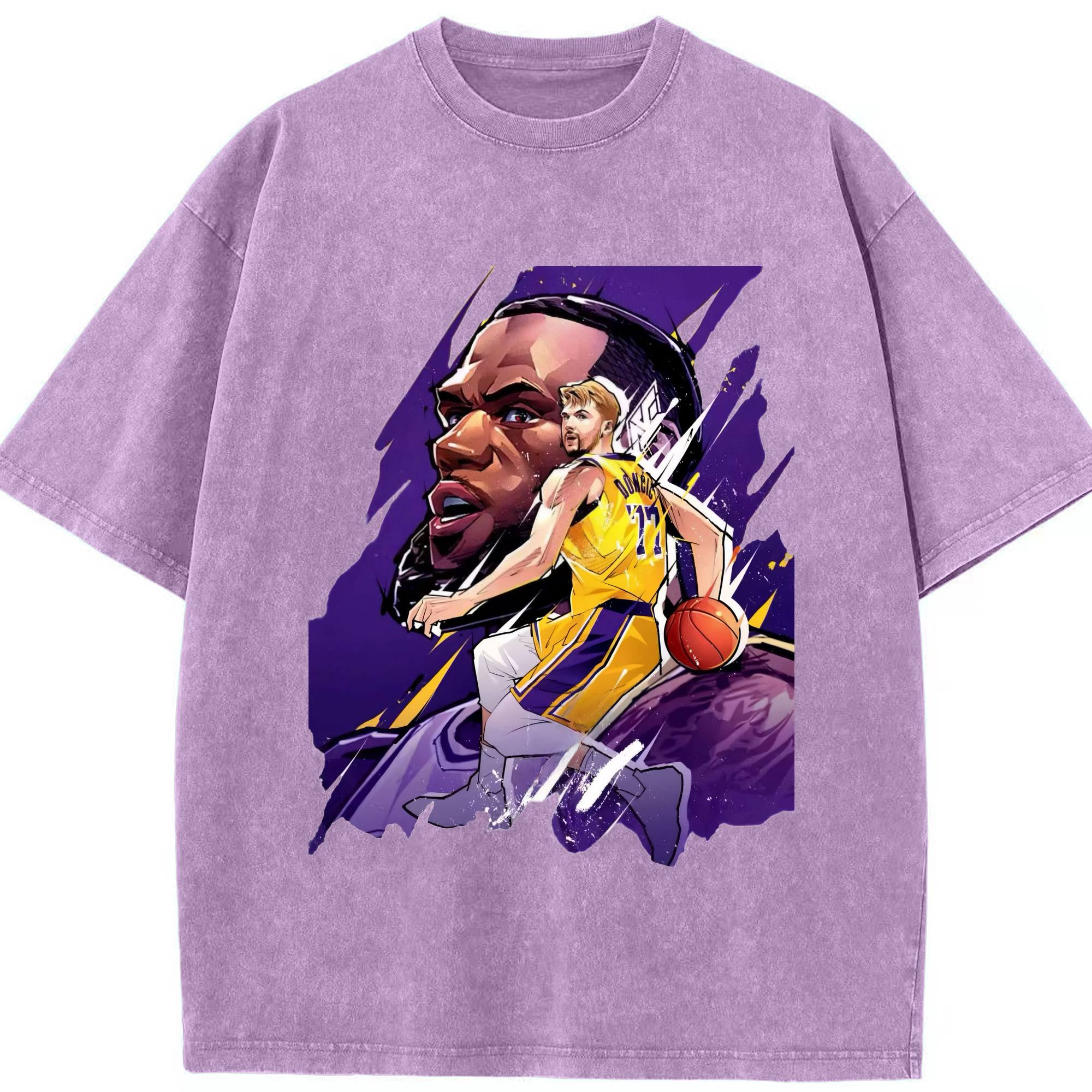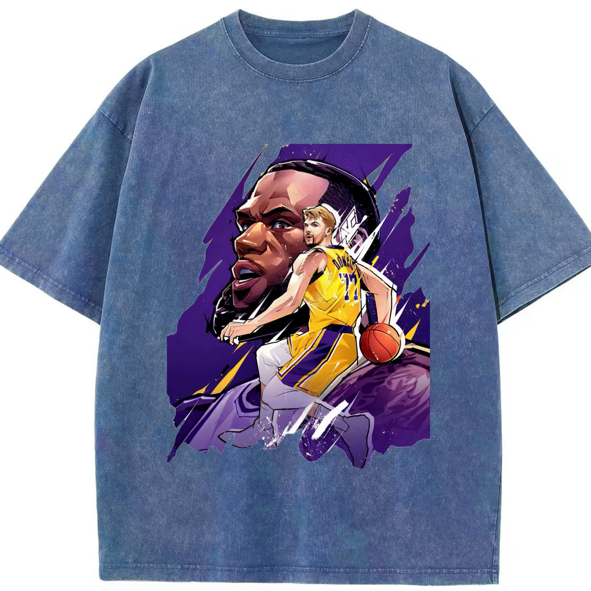 Luka & LeBron James Lakers Shirt - Washed Vintage Look 230g Cotton Oversized T-Shirt With Front Heat Transfer Print – Soft, Lightweight, Stylish Fit – Comfortable Casual Wear For Sports & Everyday Use