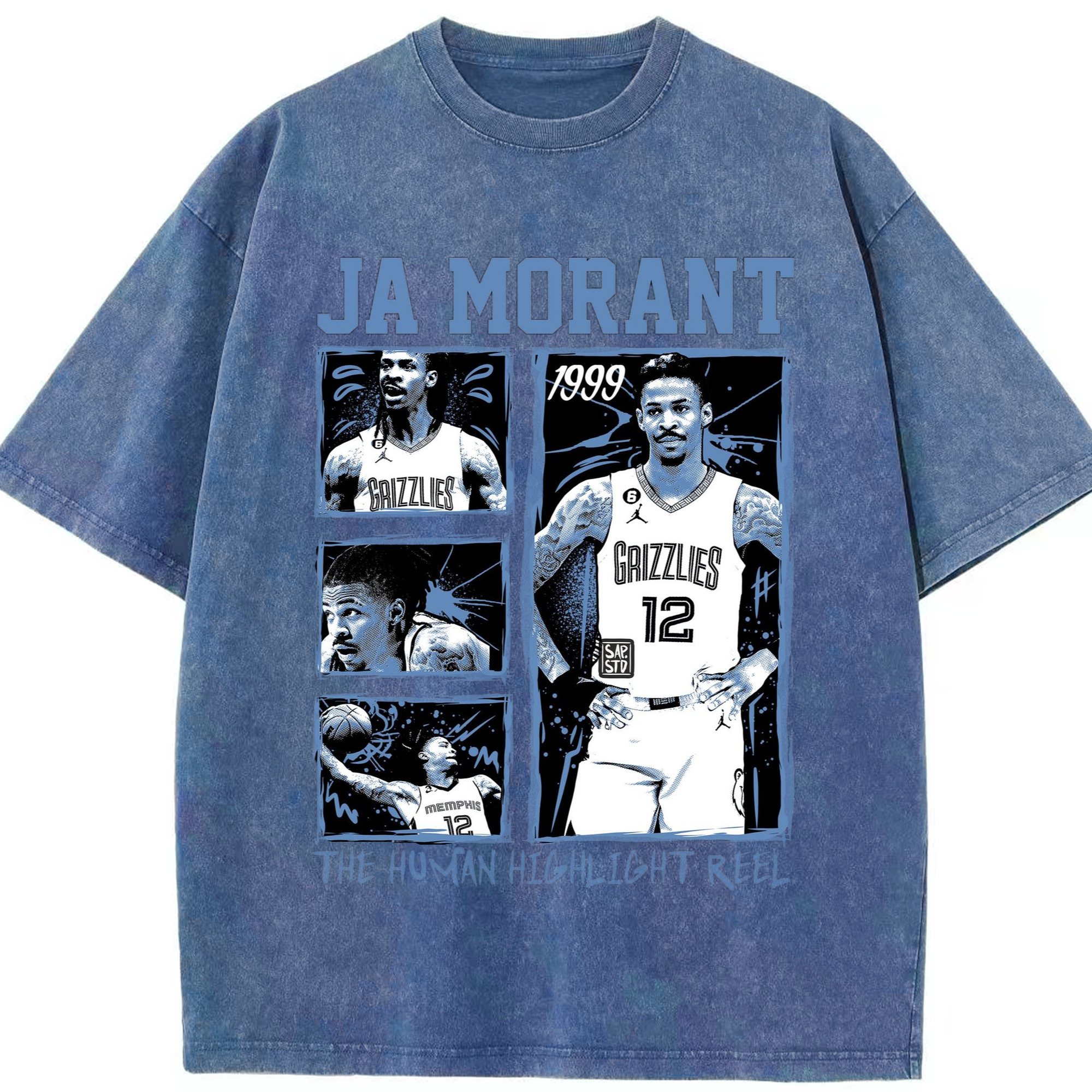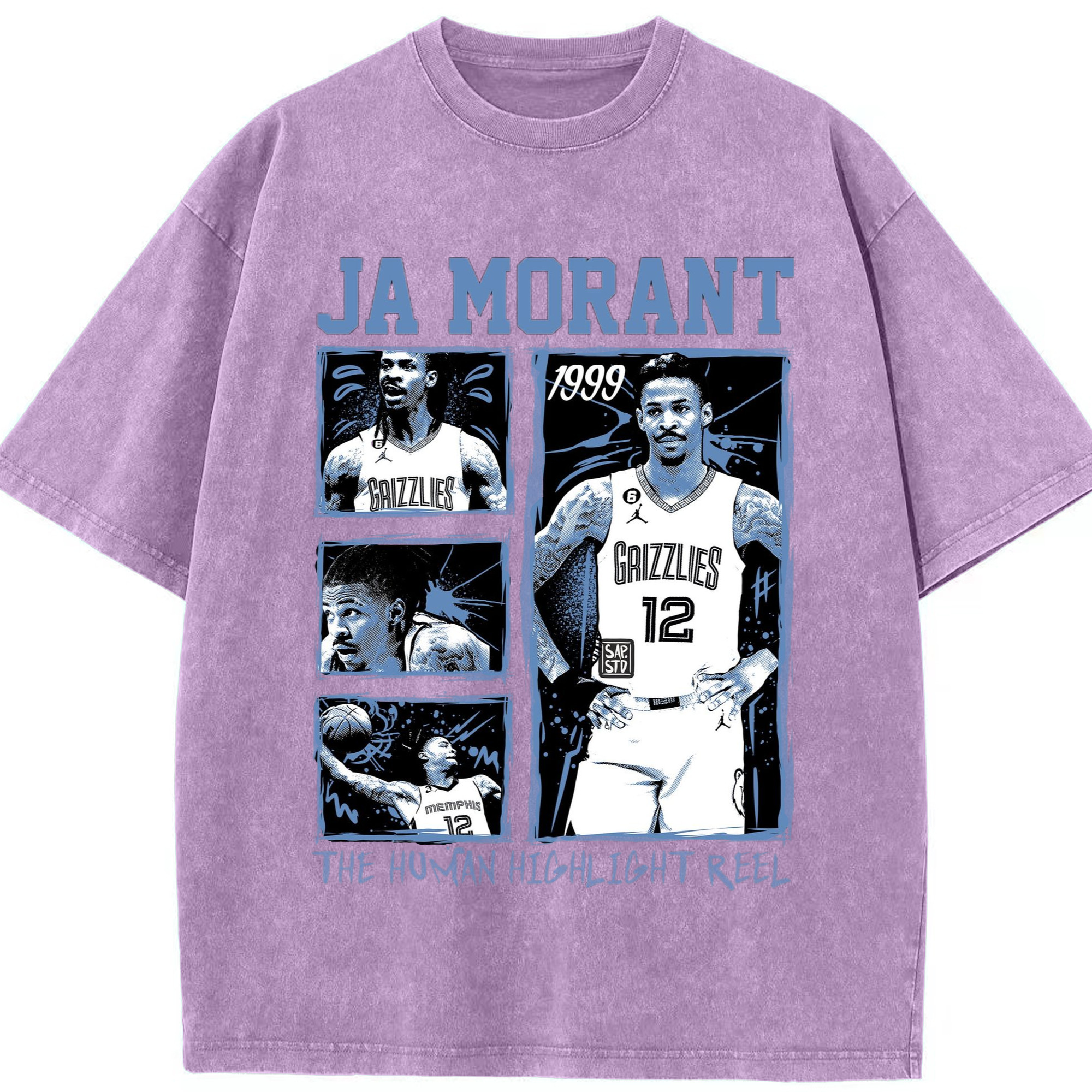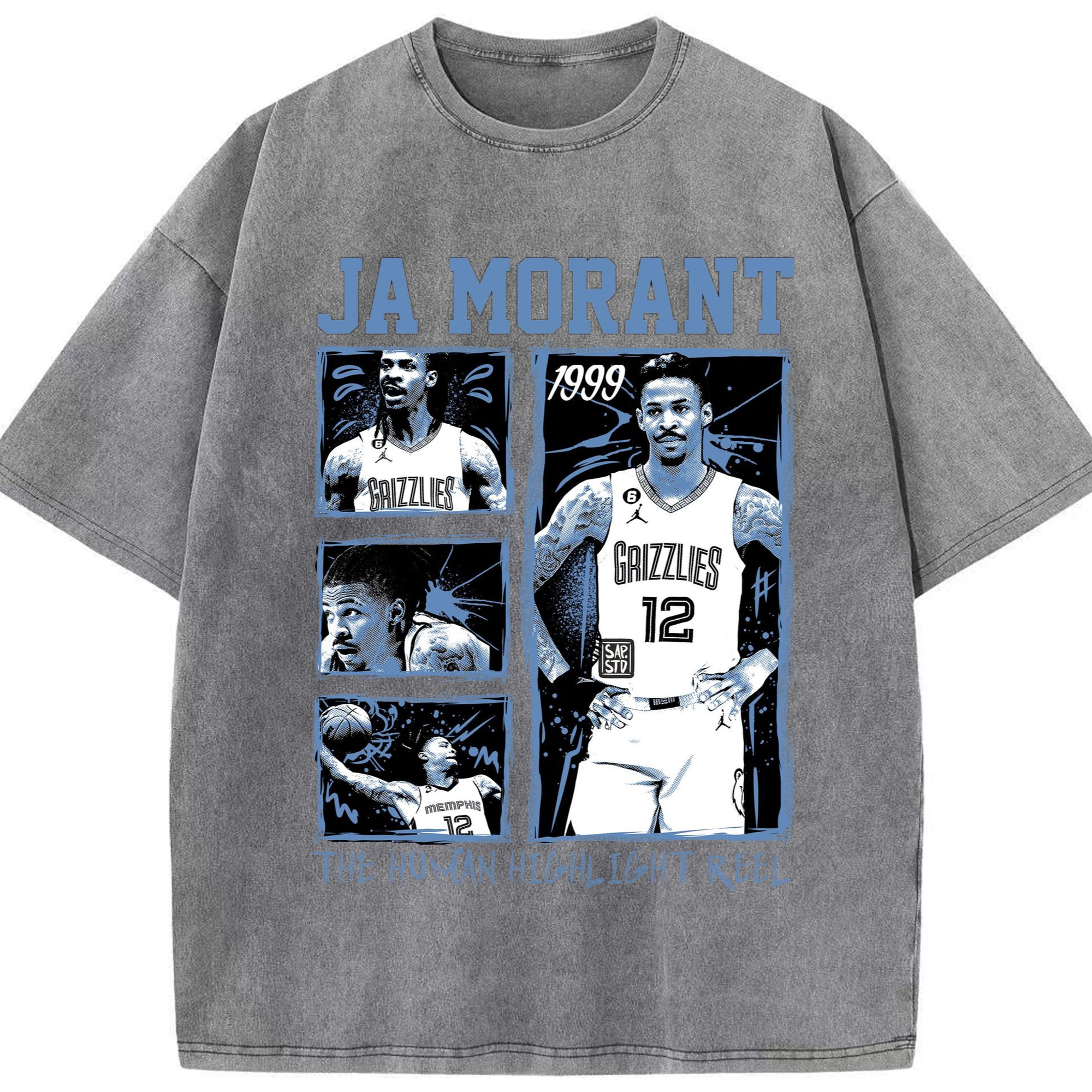 Memphis Grizzlies #12 Ja Morant T-shirt​ - Washed Vintage Look 230g Cotton Oversized T-Shirt With Front Heat Transfer Print – Soft, Lightweight, Stylish Fit – Comfortable Casual Wear For Sports & Everyday Use