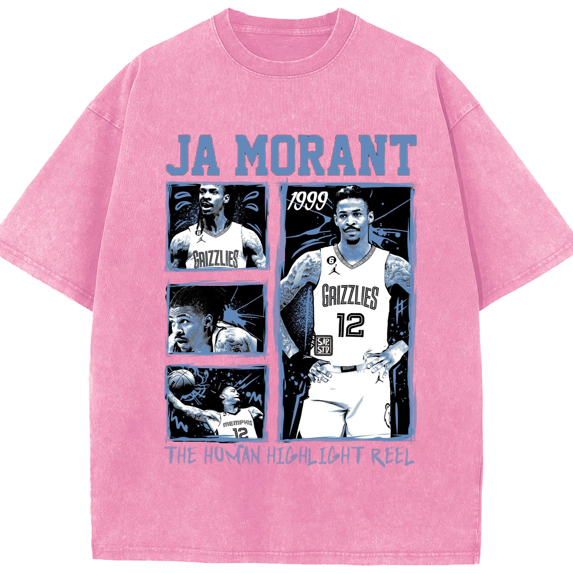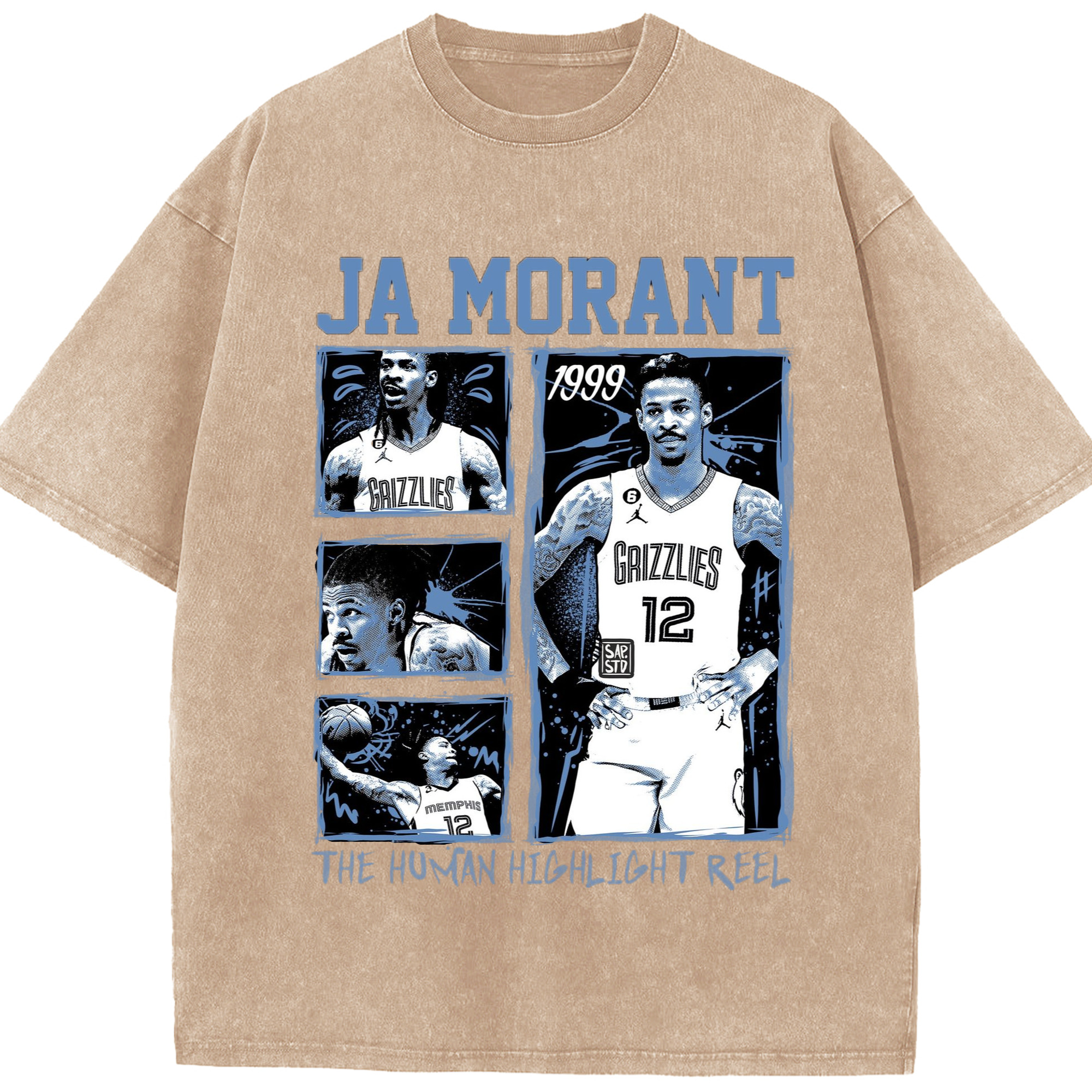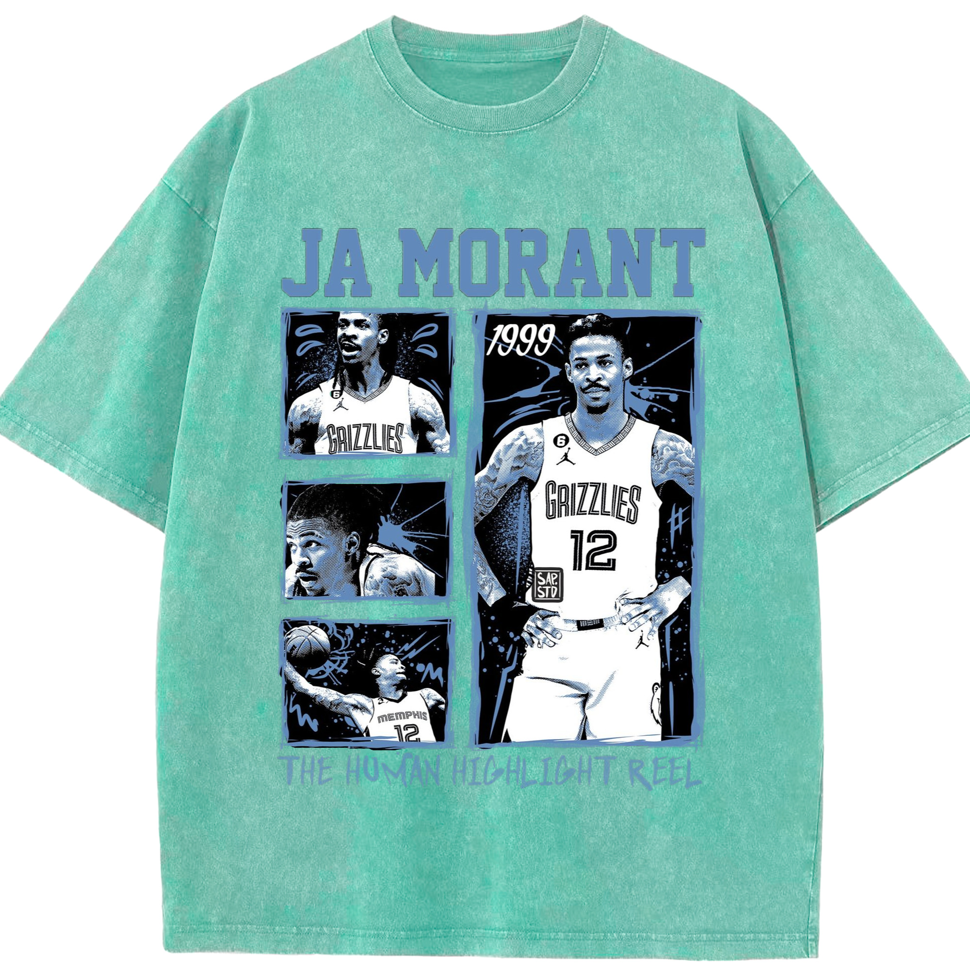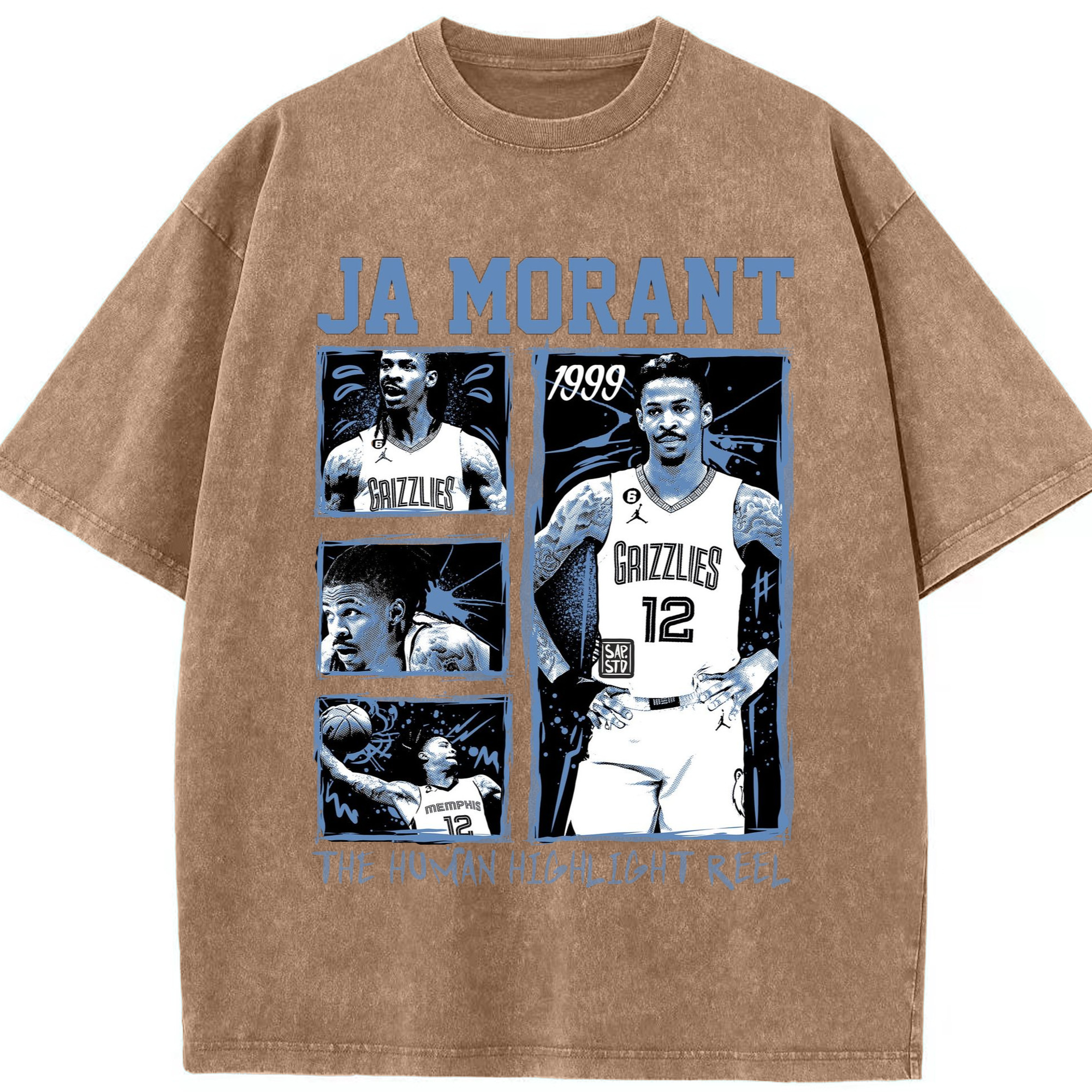 Memphis Grizzlies #12 Ja Morant T-shirt​ - Washed Vintage Look 230g Cotton Oversized T-Shirt With Front Heat Transfer Print – Soft, Lightweight, Stylish Fit – Comfortable Casual Wear For Sports & Everyday Use