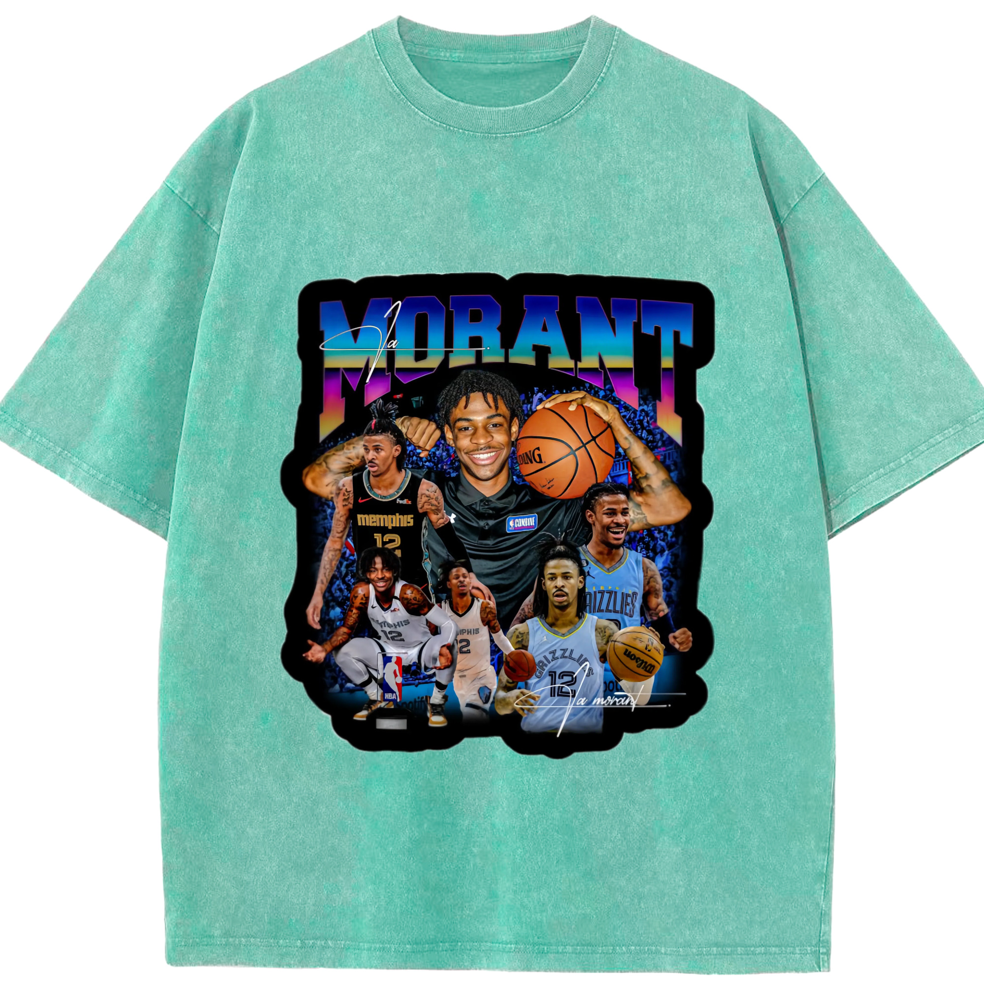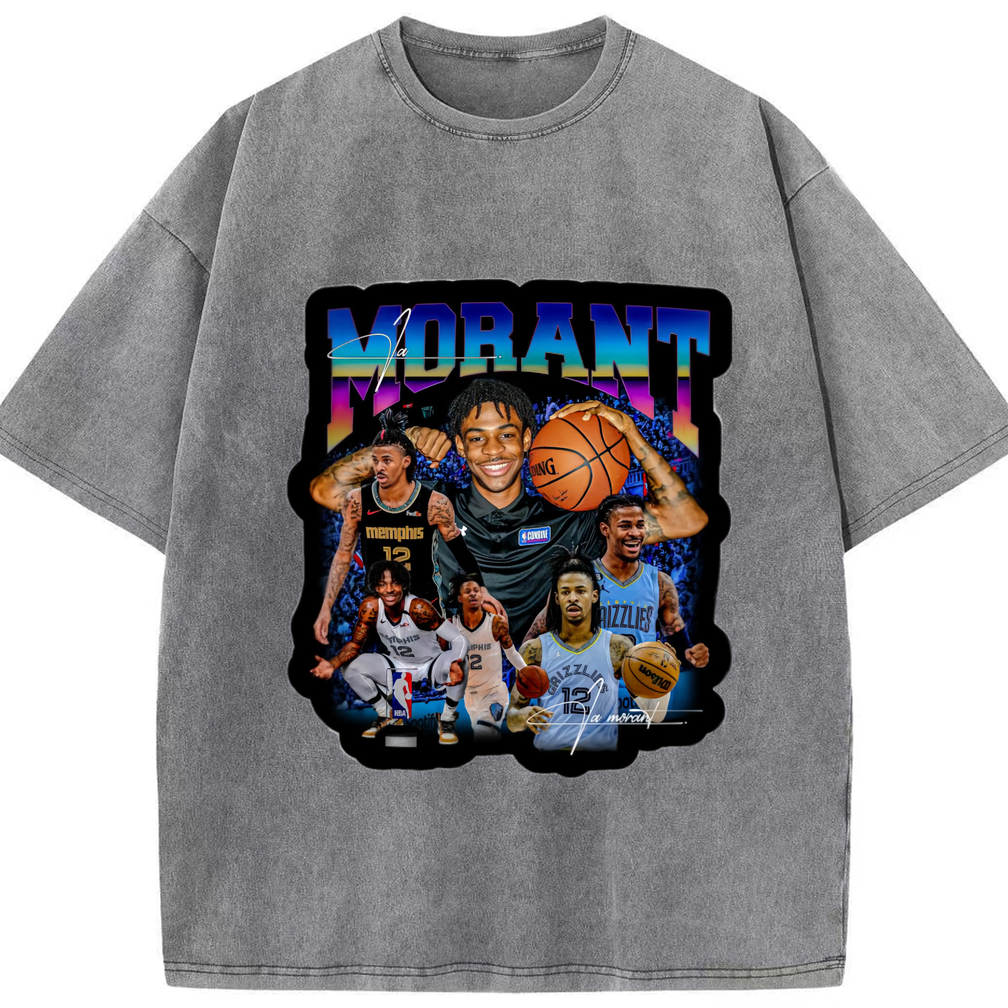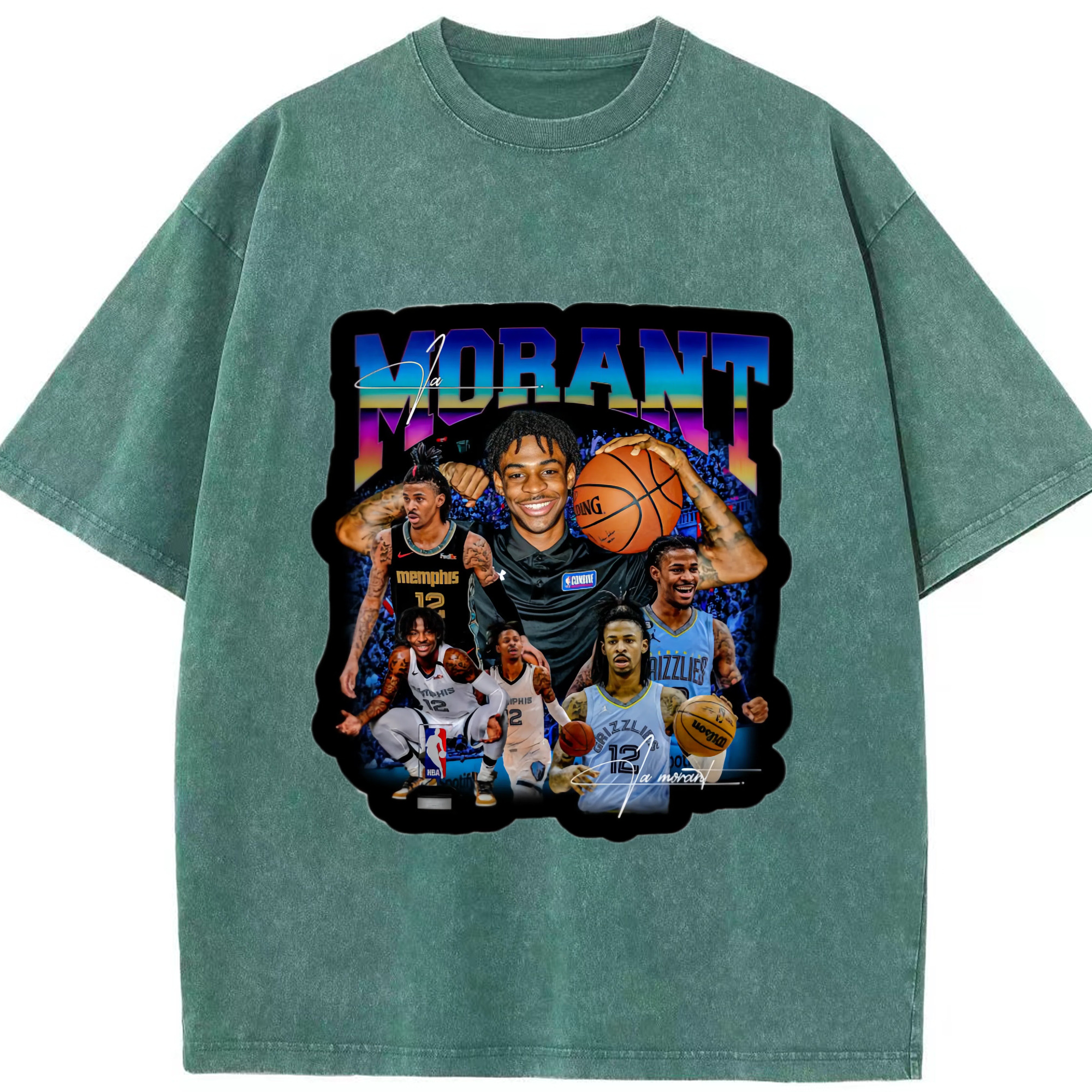 Memphis Grizzlies Ja Morant icon T-shirt - Washed Vintage Look 230g Cotton Oversized T-Shirt With Front Heat Transfer Print – Soft, Lightweight, Stylish Fit – Comfortable Casual Wear For Sports & Everyday Use