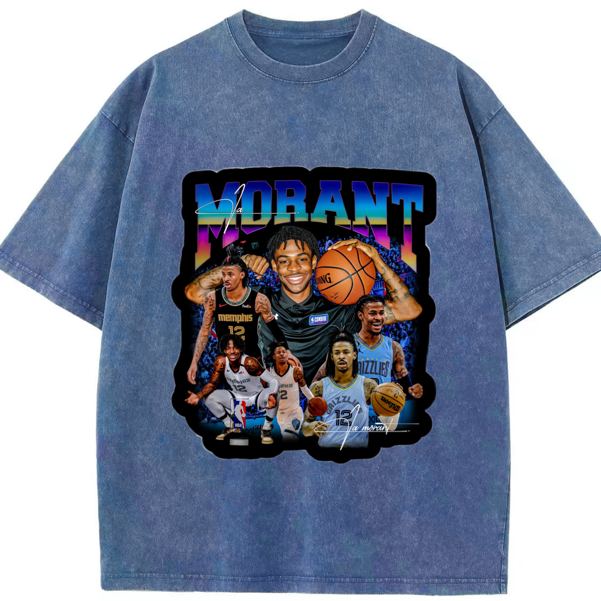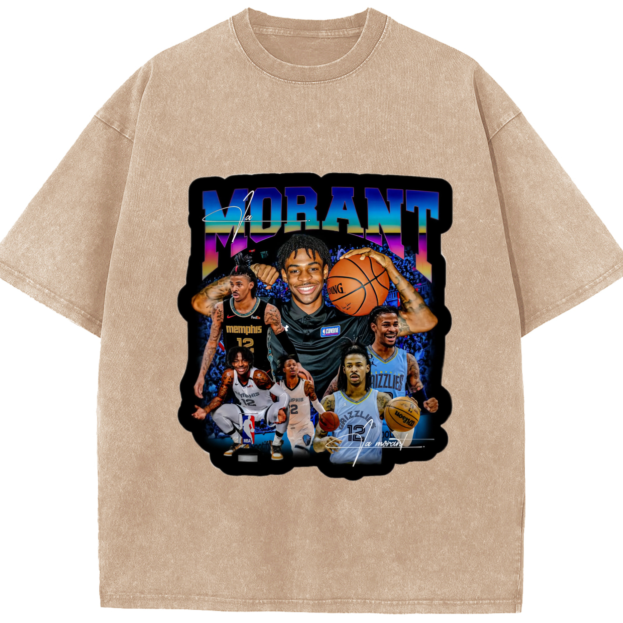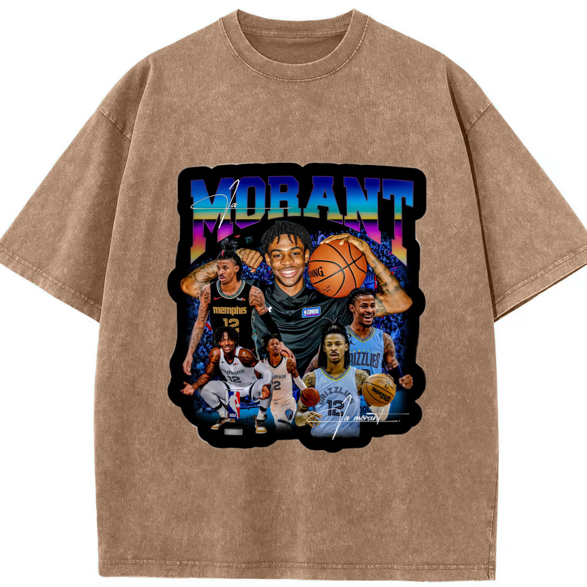 Memphis Grizzlies Ja Morant icon T-shirt - Washed Vintage Look 230g Cotton Oversized T-Shirt With Front Heat Transfer Print – Soft, Lightweight, Stylish Fit – Comfortable Casual Wear For Sports & Everyday Use