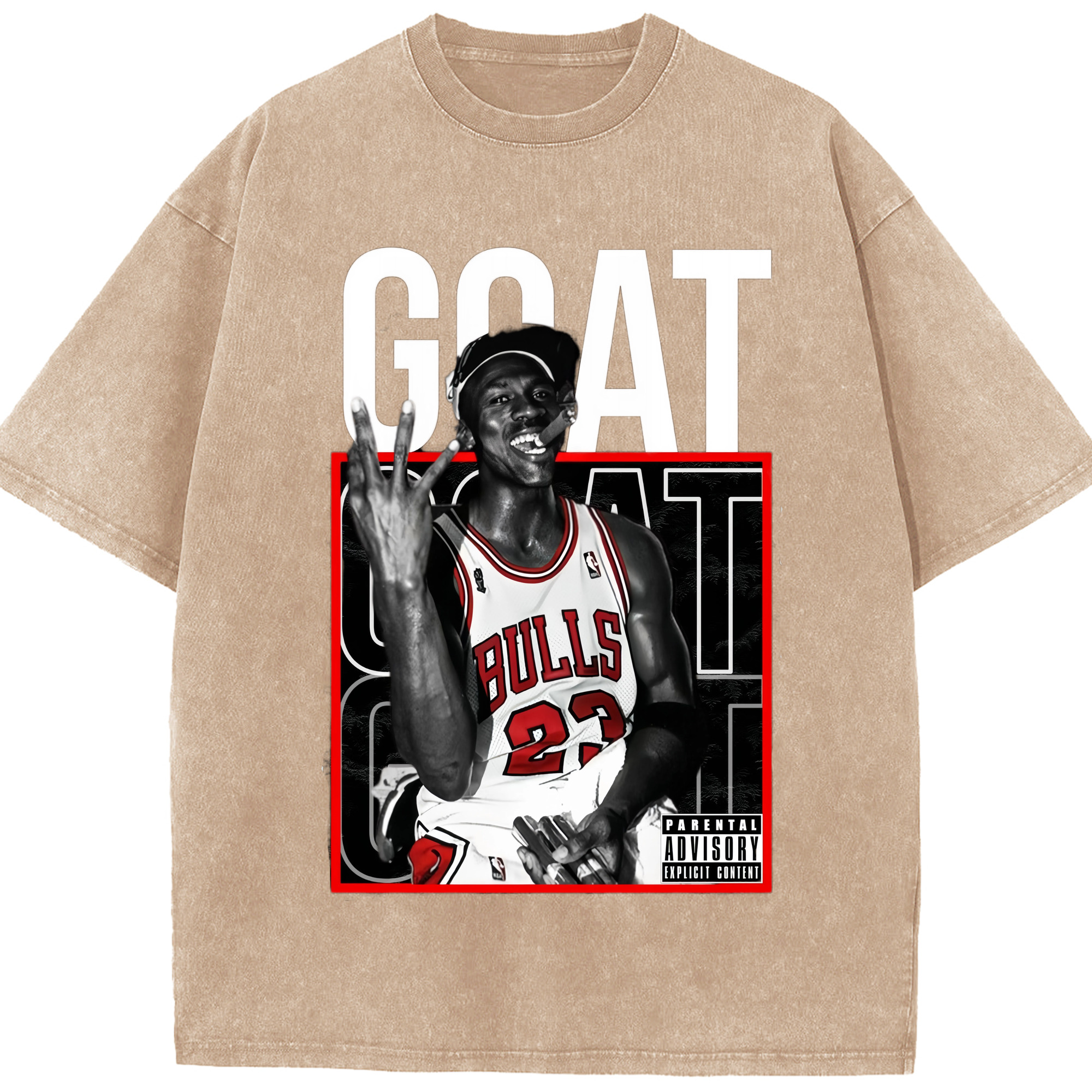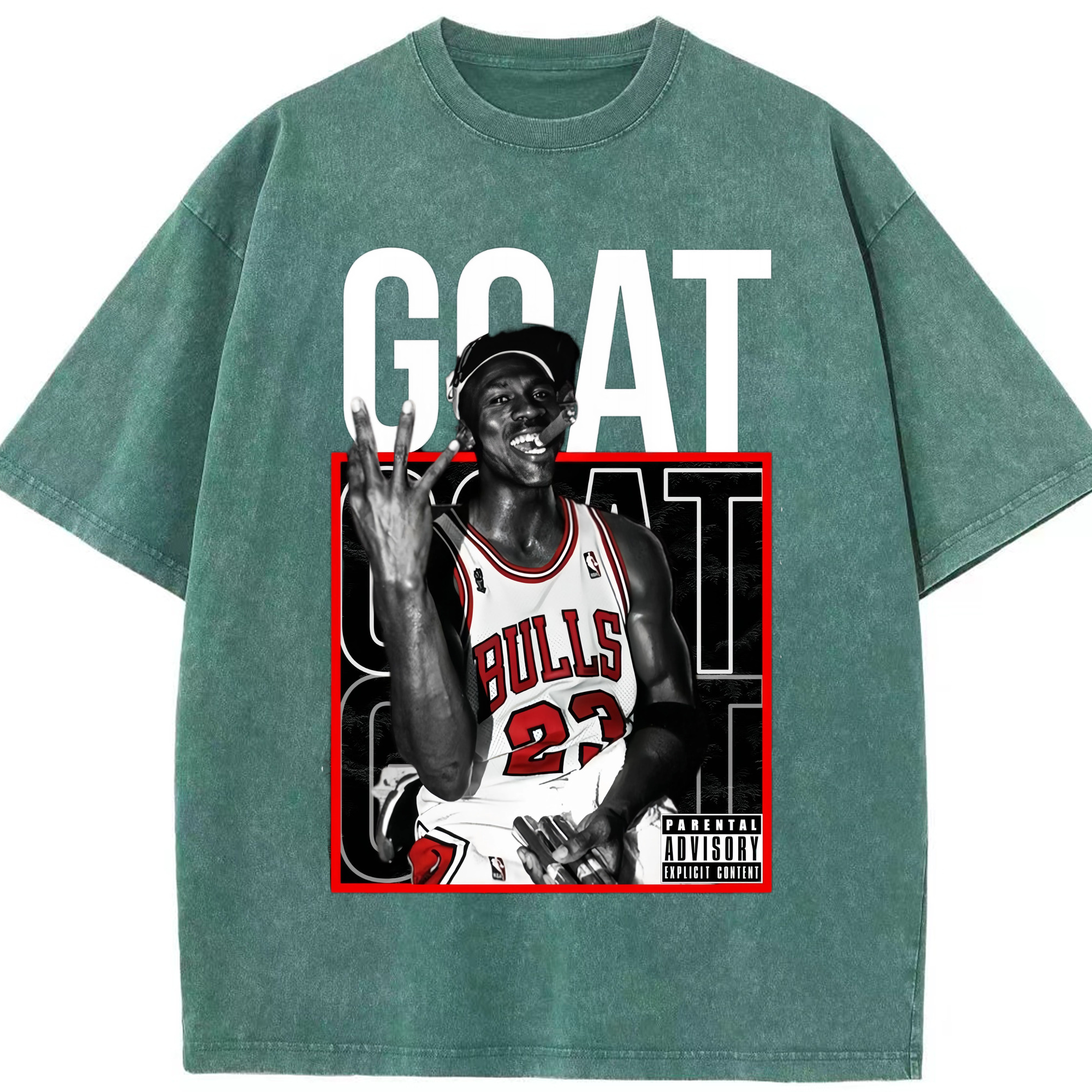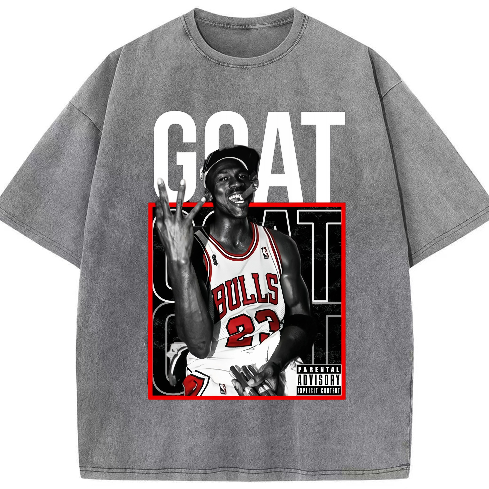 Michael Jordan 3-Peat Champions graphic tee - Washed Vintage Look 230g Cotton Oversized T-Shirt With Front Heat Transfer Print – Soft, Lightweight, Stylish Fit – Comfortable Casual Wear For Sports & Everyday Use