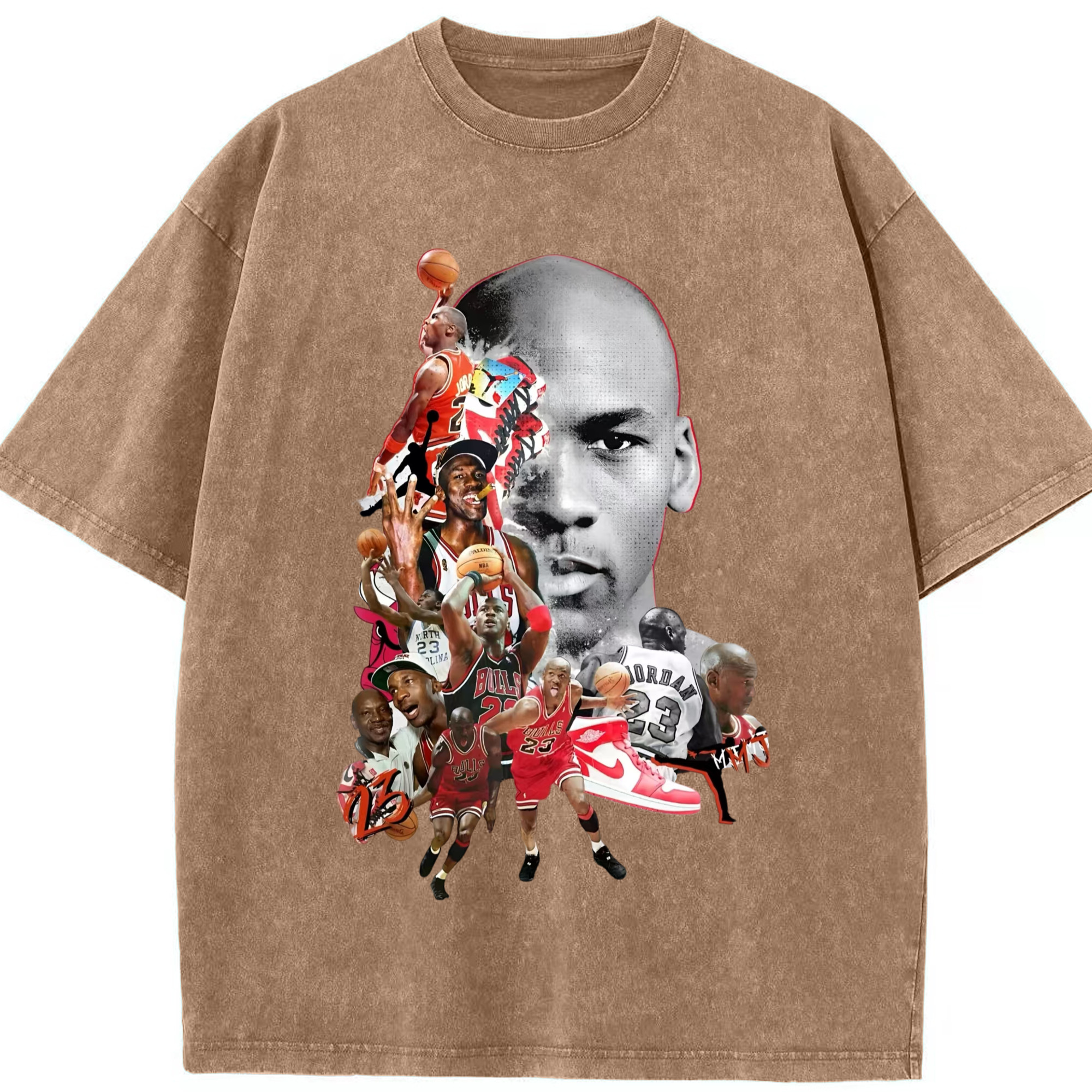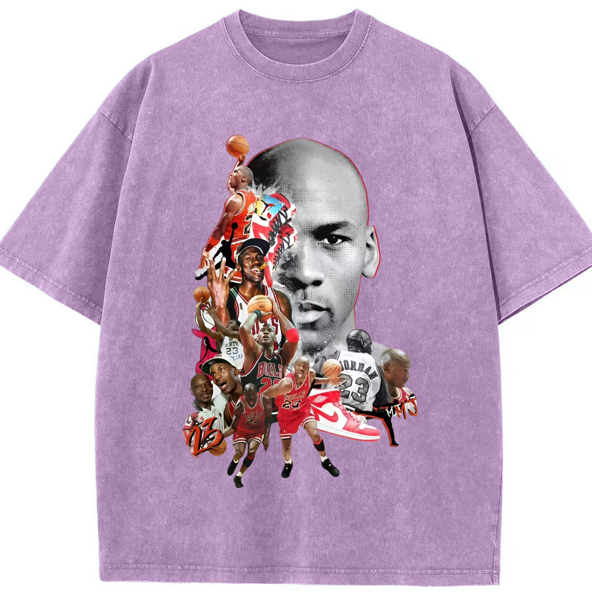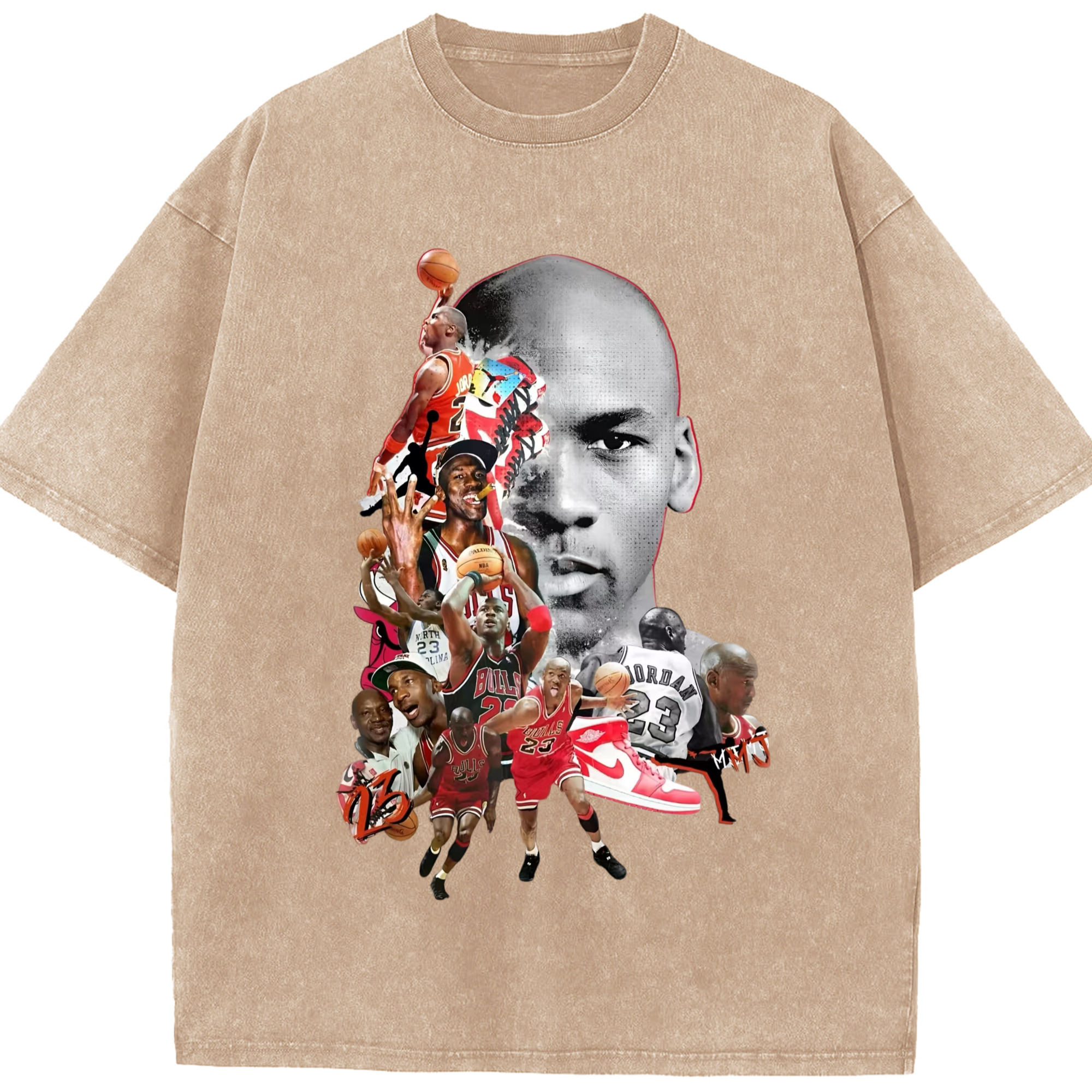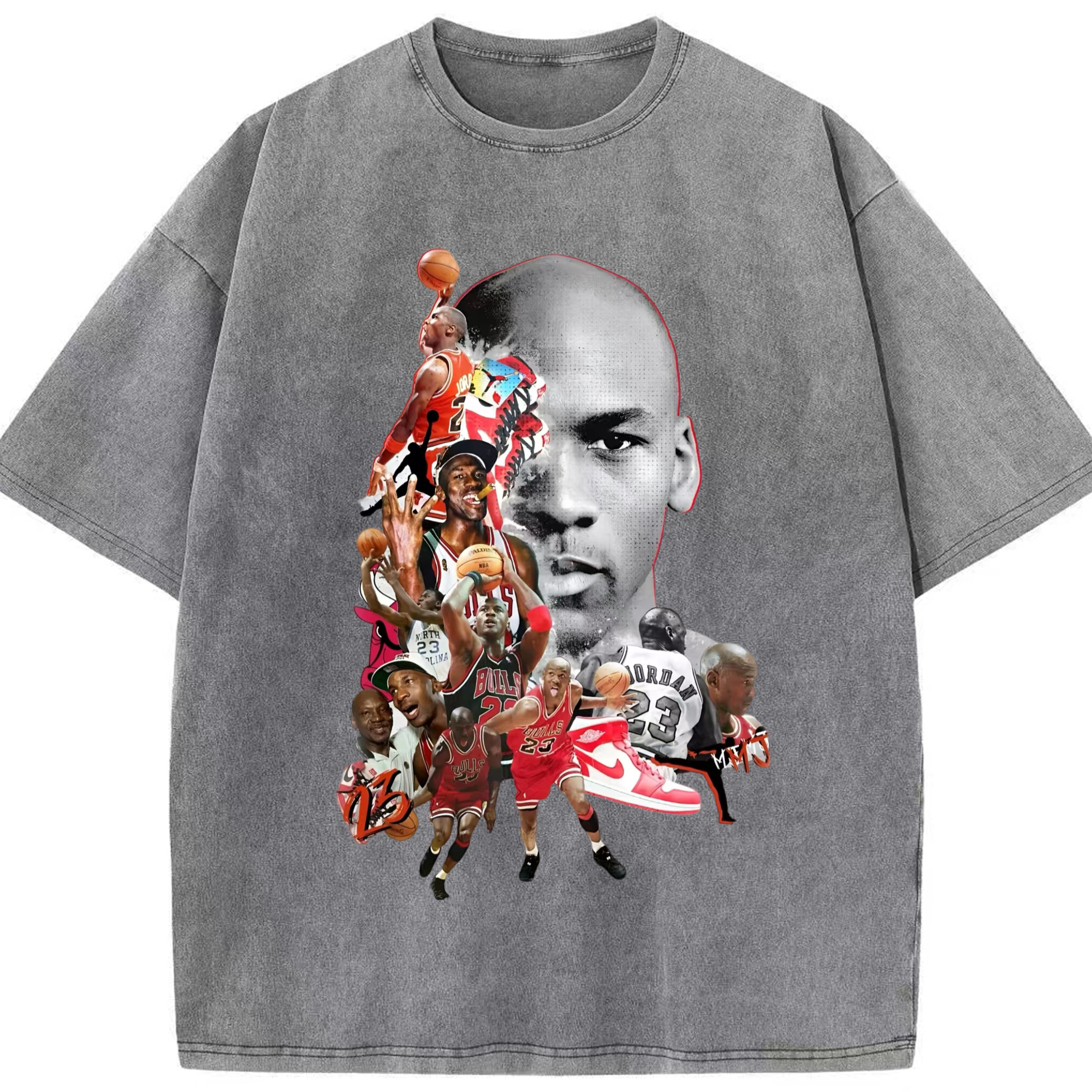 Michael jordan graphic t shirt - Washed Vintage Look 230g Cotton Oversized T-Shirt With Front Heat Transfer Print – Soft, Lightweight, Stylish Fit – Comfortable Casual Wear For Sports & Everyday Use