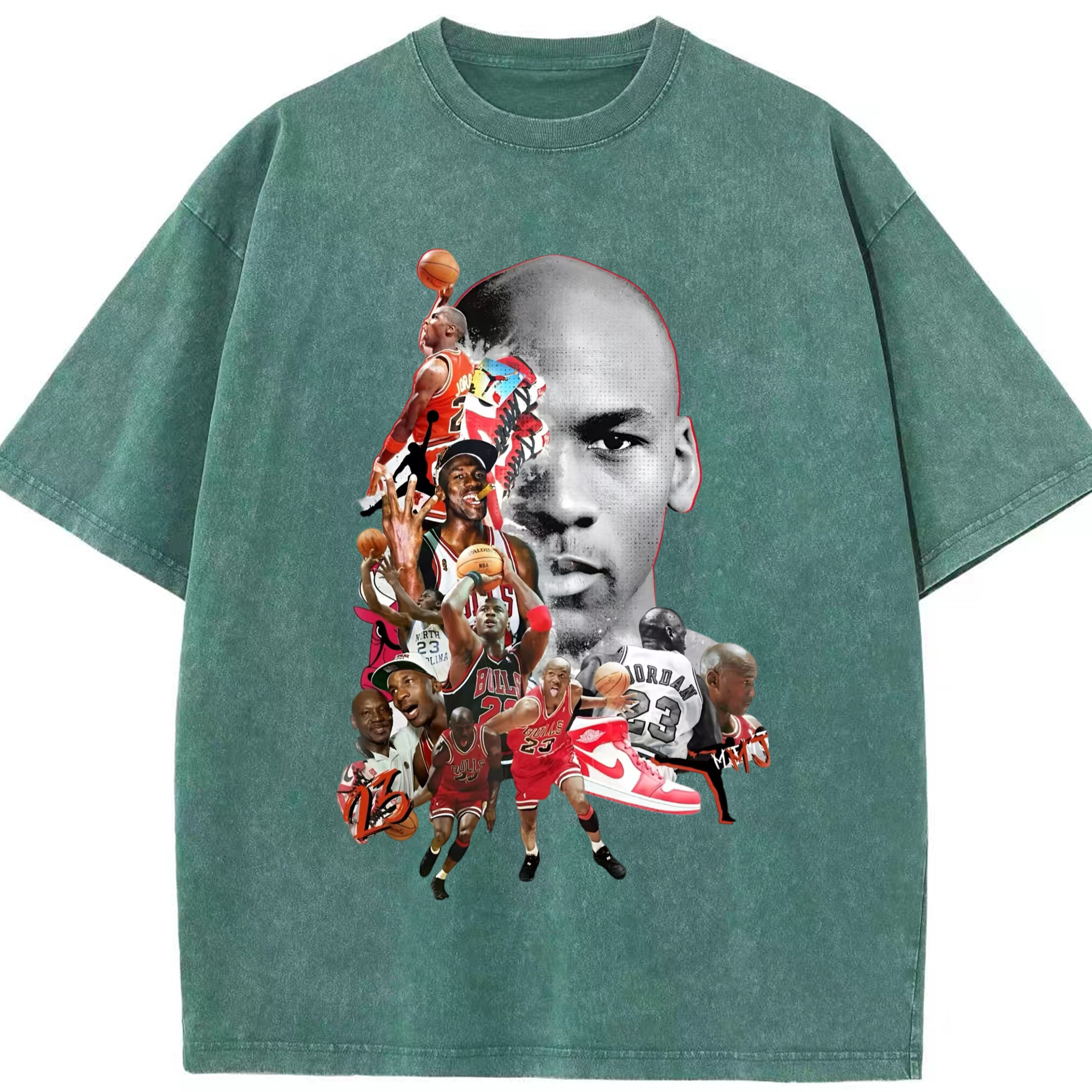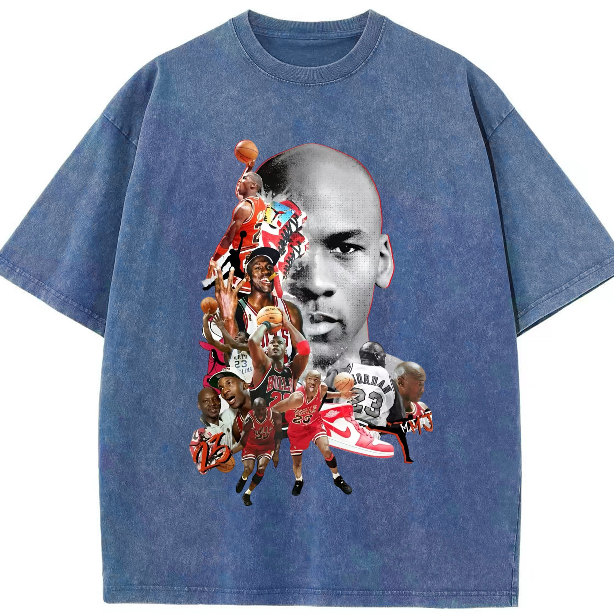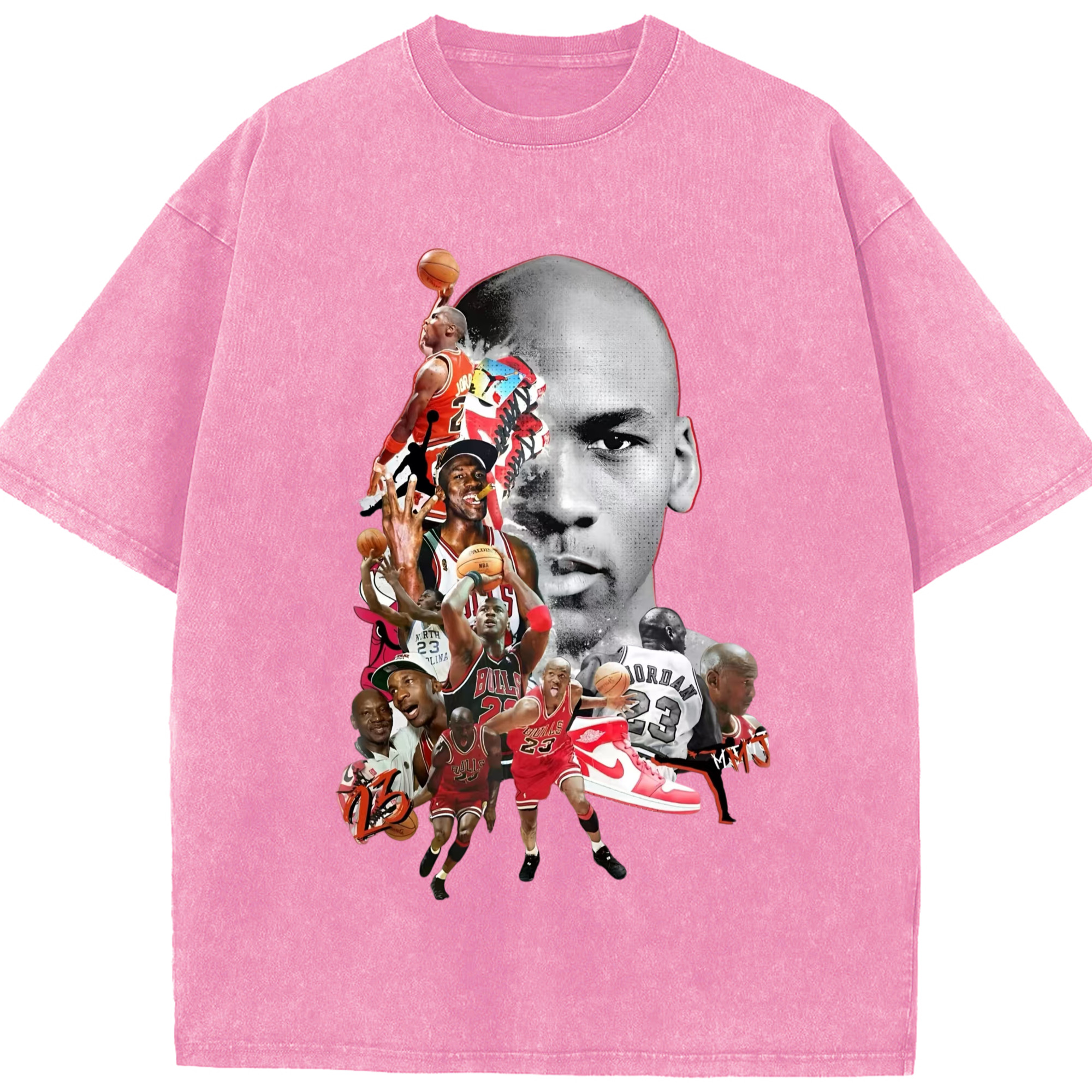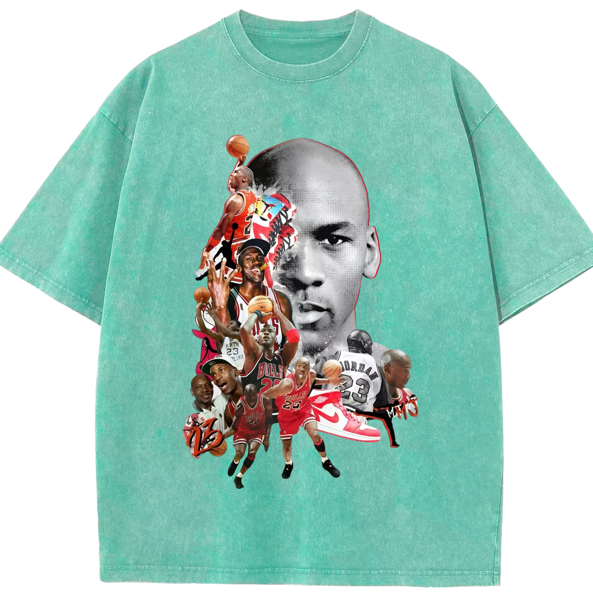 Michael jordan graphic t shirt - Washed Vintage Look 230g Cotton Oversized T-Shirt With Front Heat Transfer Print – Soft, Lightweight, Stylish Fit – Comfortable Casual Wear For Sports & Everyday Use