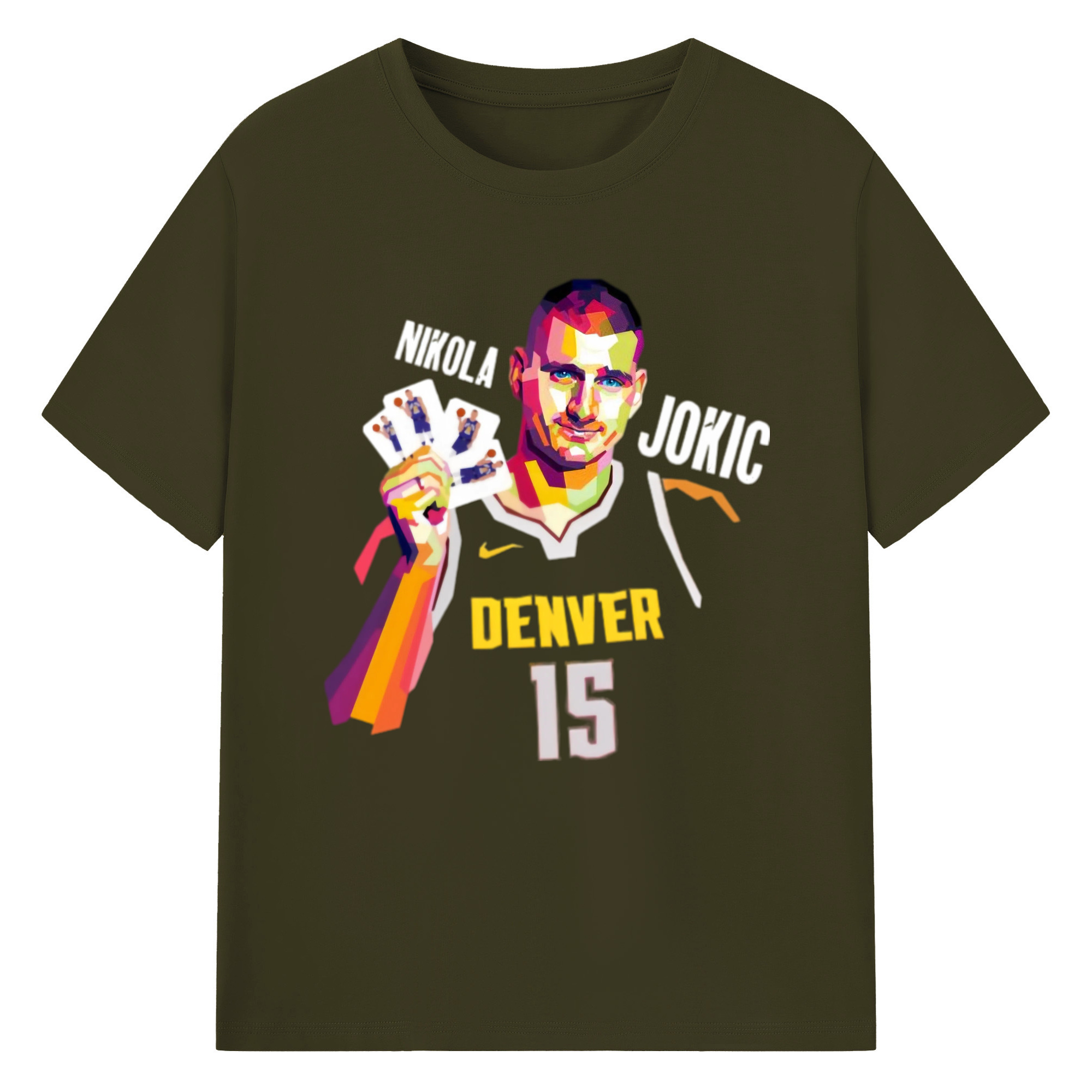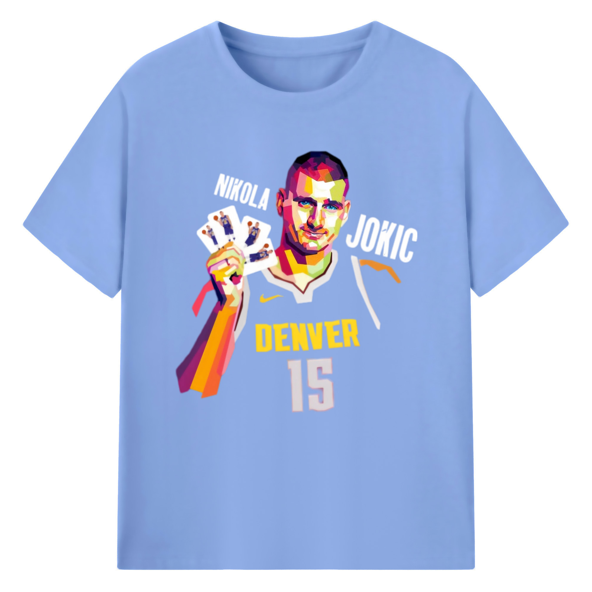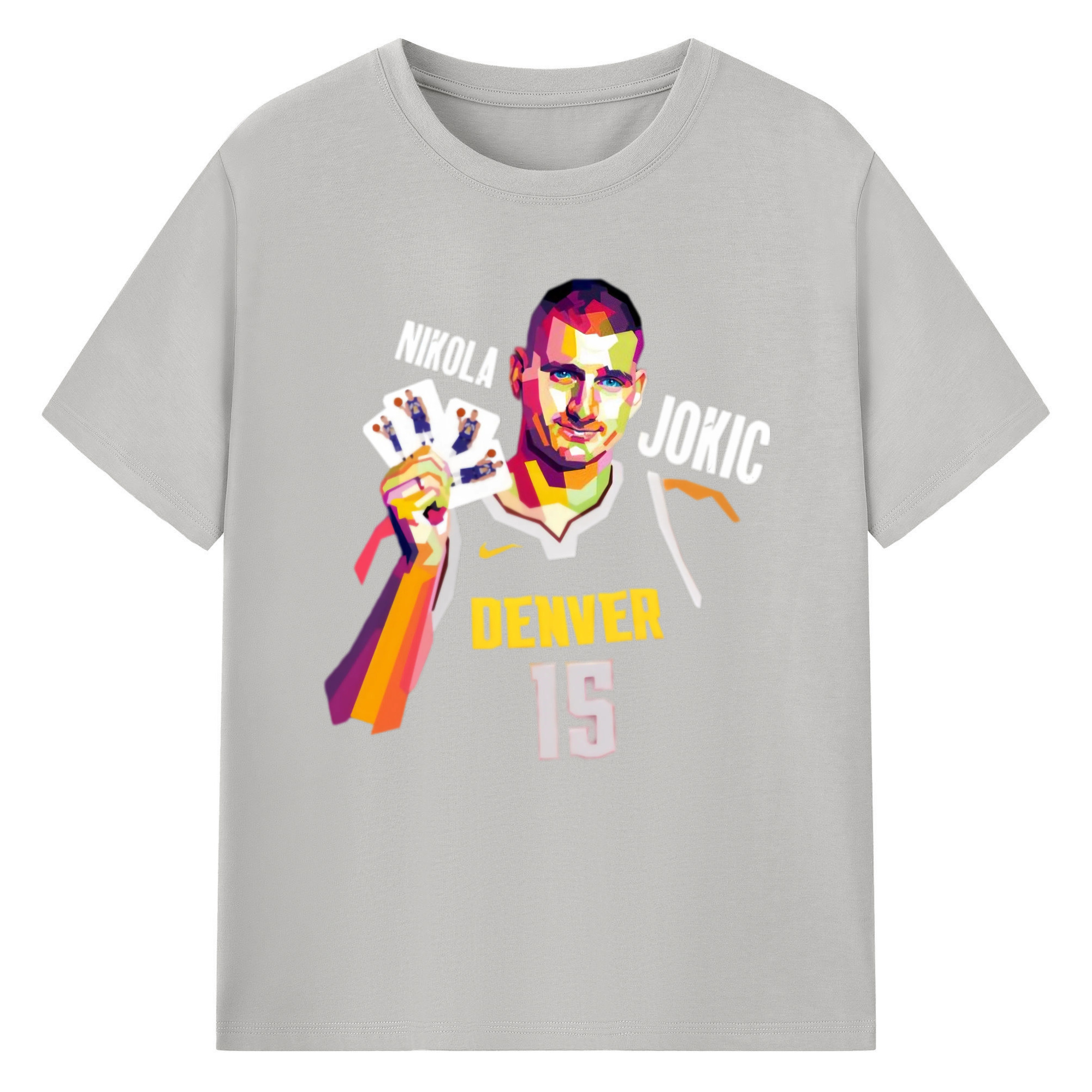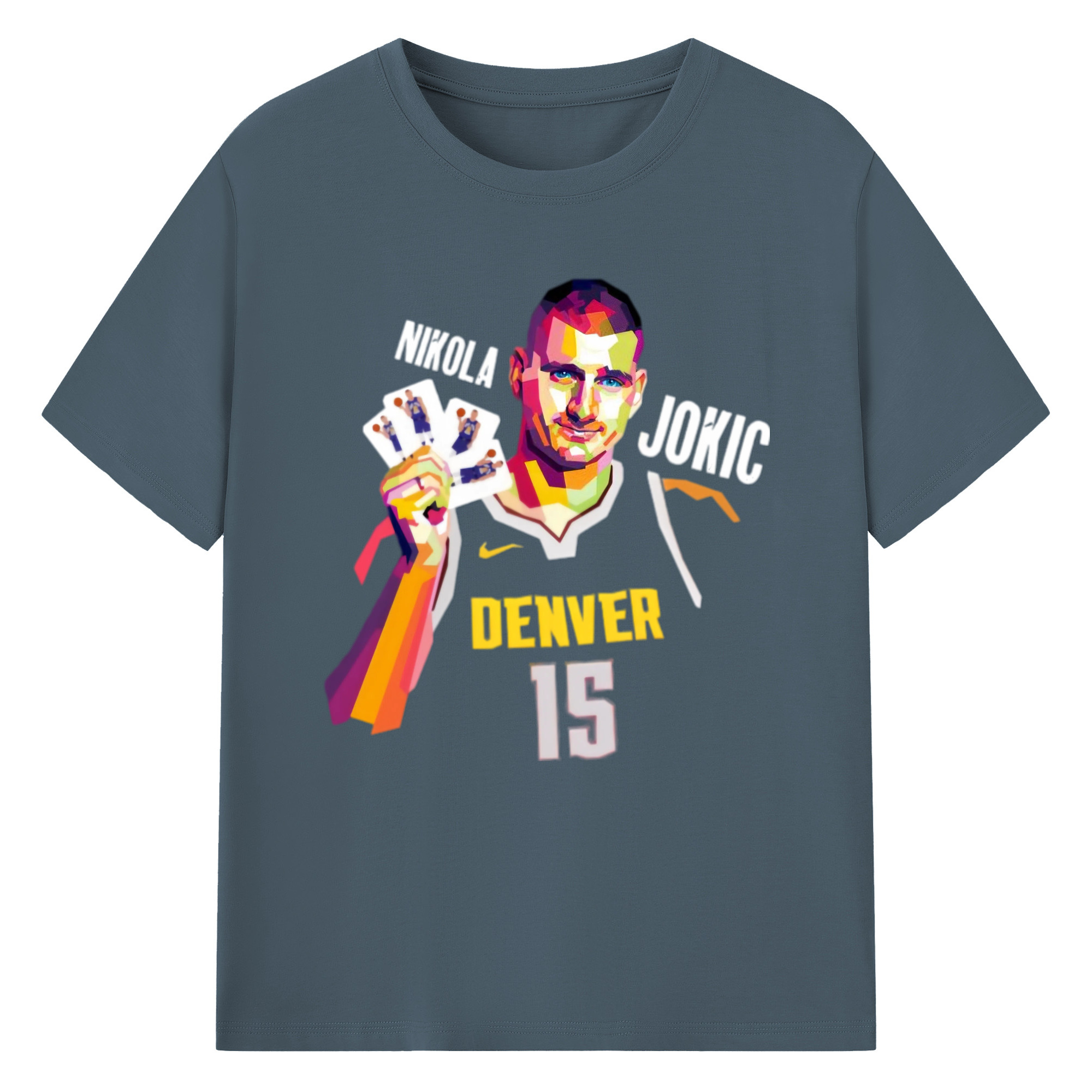 Nikola Jokić Nuggets Coloured drawing T-shirt - 180g Cotton T-Shirt With Front Heat Transfer Print – Soft, Lightweight, Fitted Design – Comfortable Casual Wear For Sports & Everyday Use
