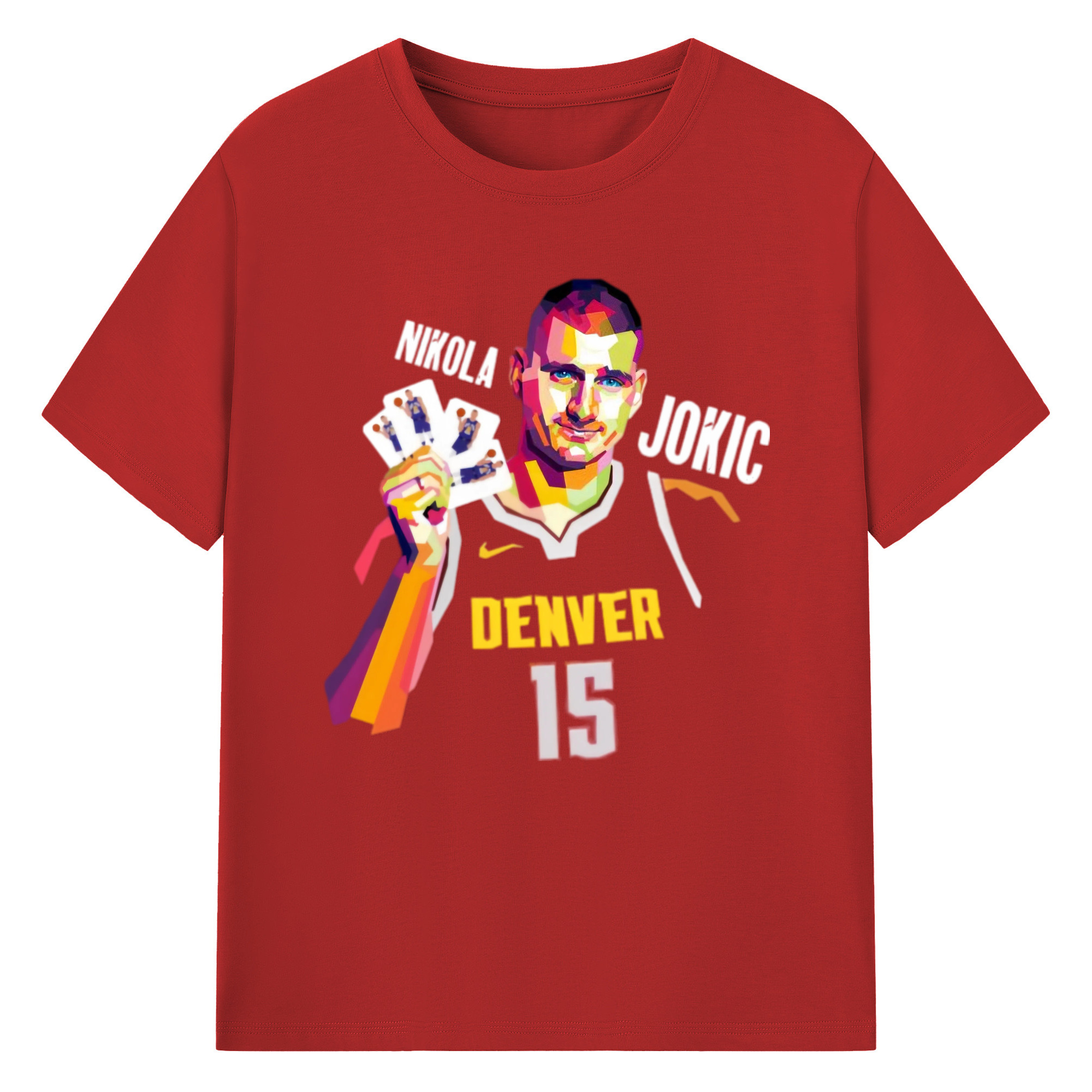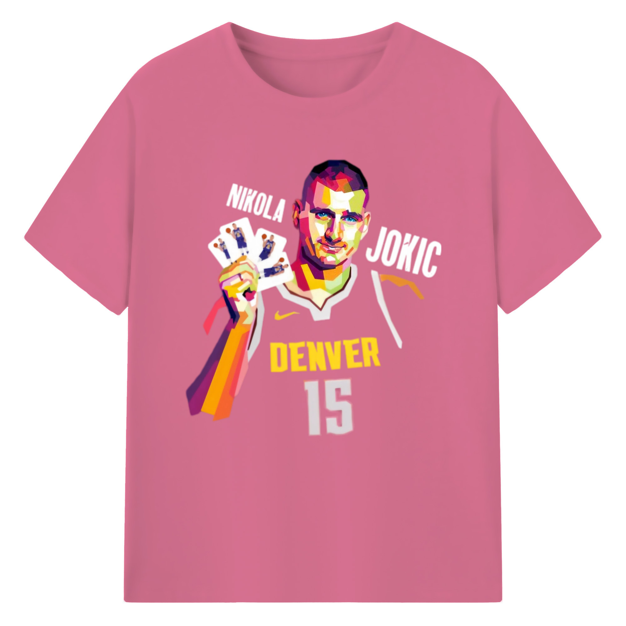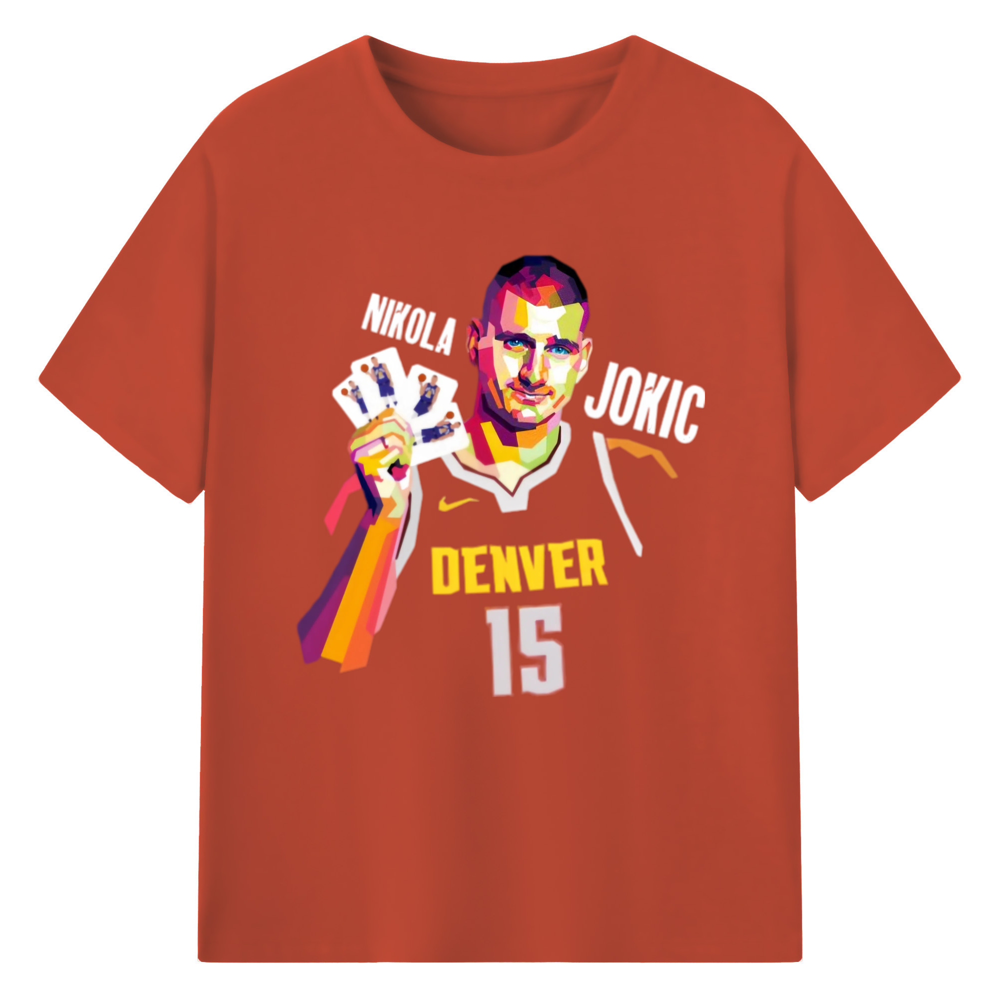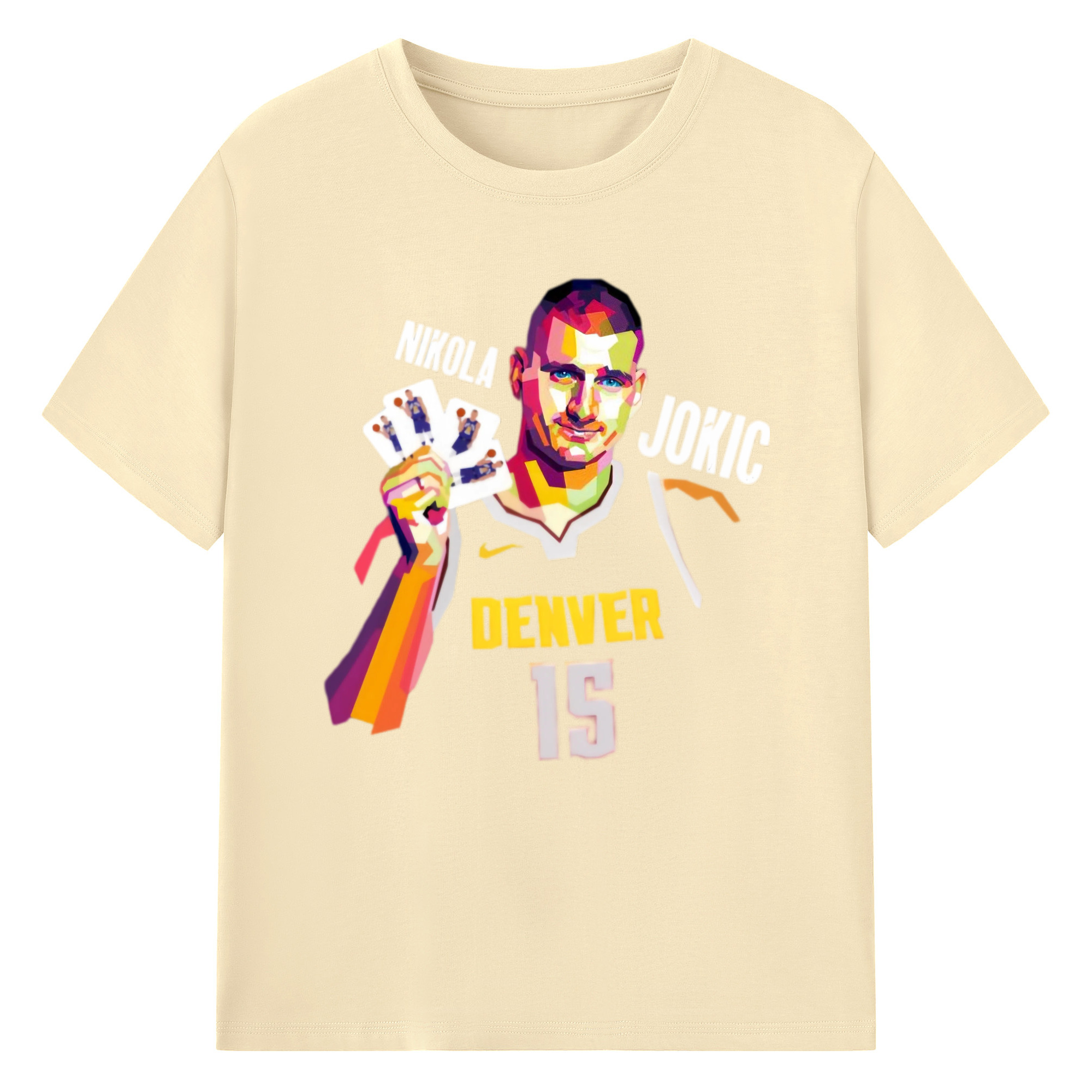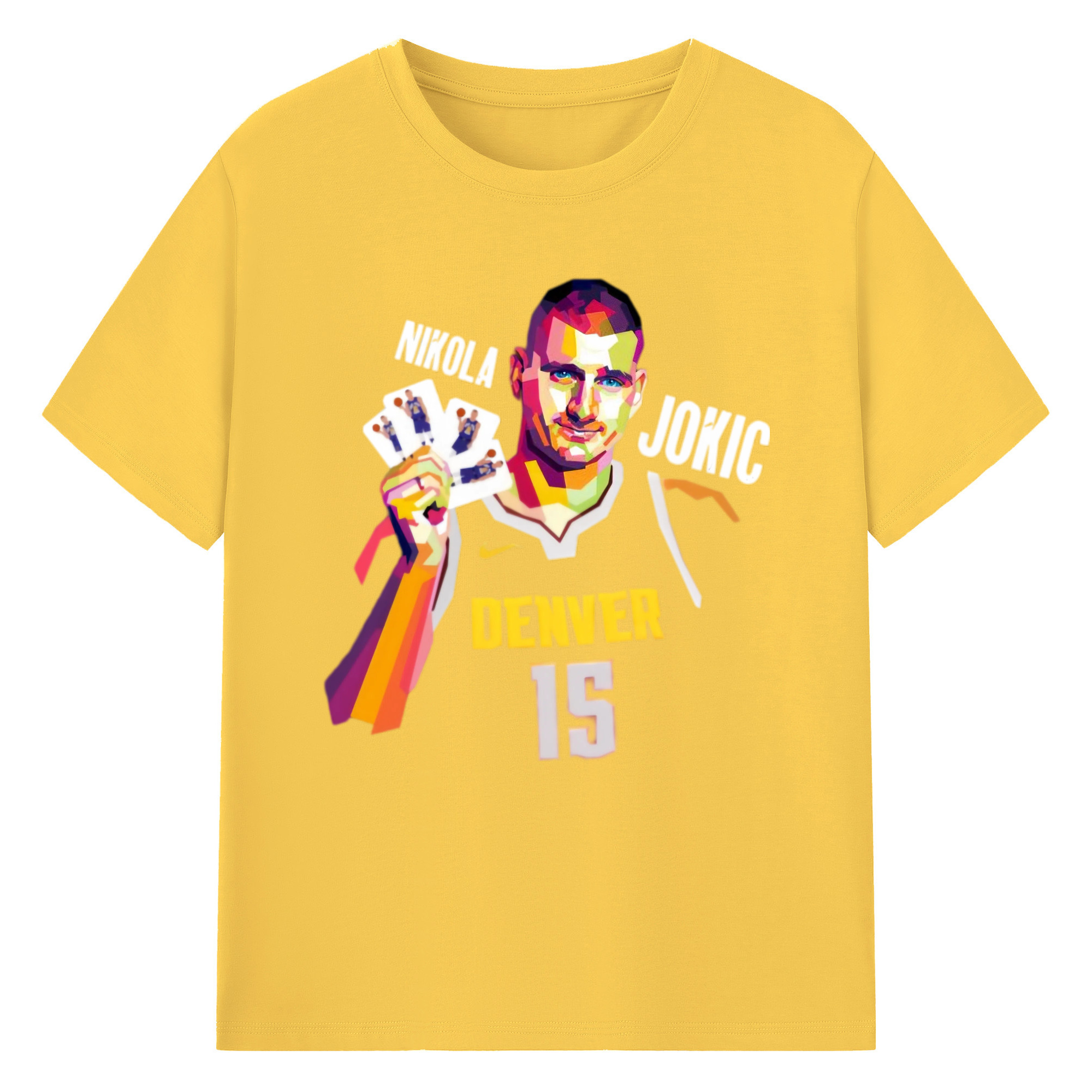 Nikola Jokić Nuggets Coloured drawing T-shirt - 180g Cotton T-Shirt With Front Heat Transfer Print – Soft, Lightweight, Fitted Design – Comfortable Casual Wear For Sports & Everyday Use