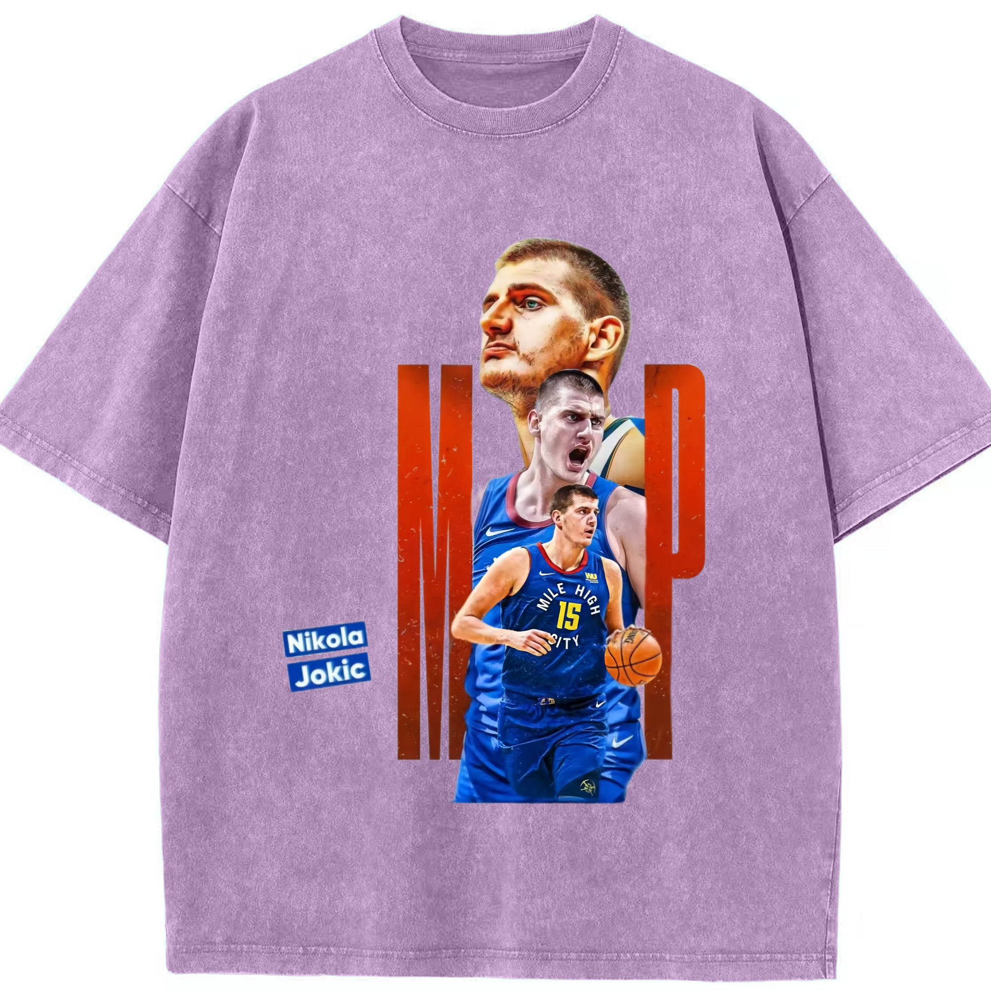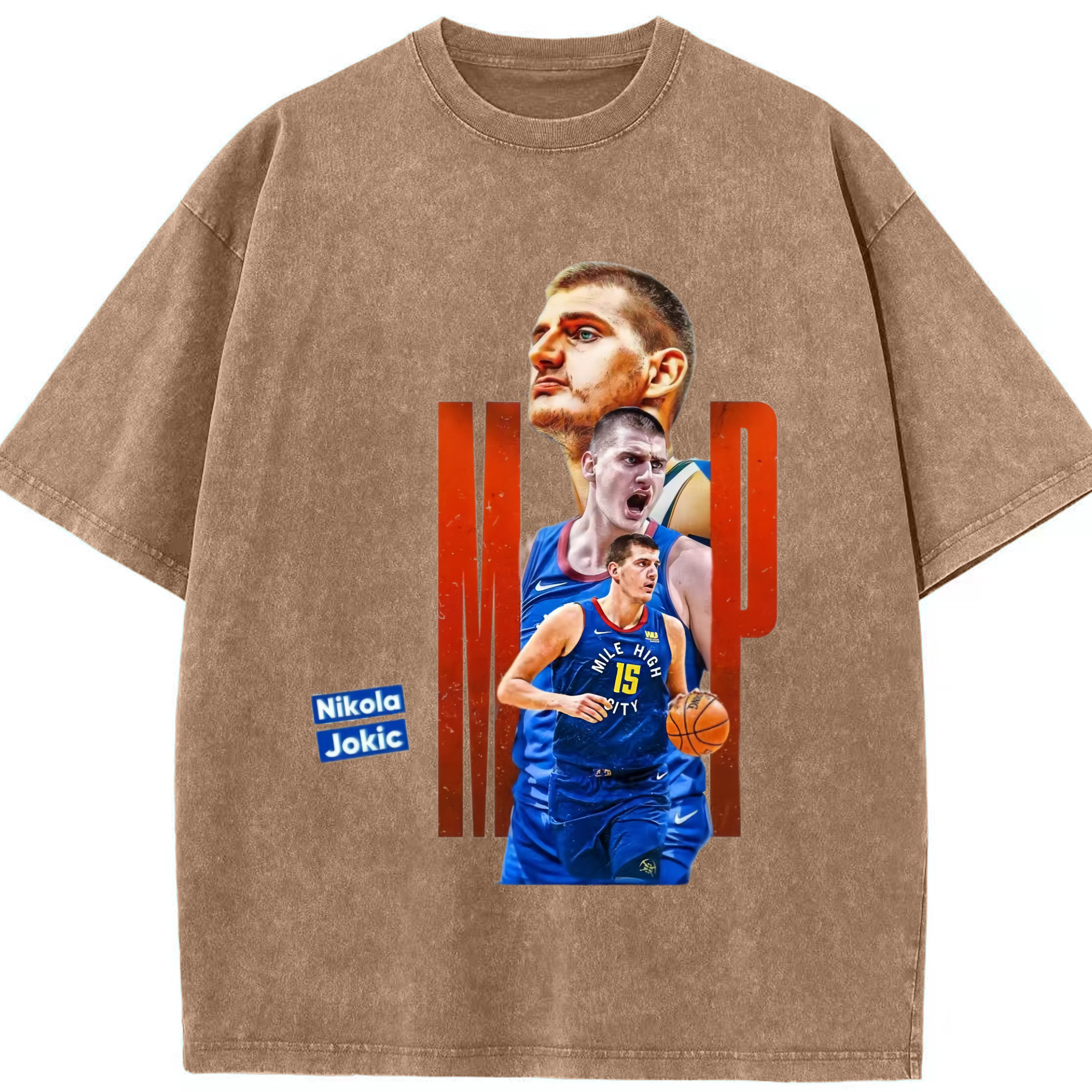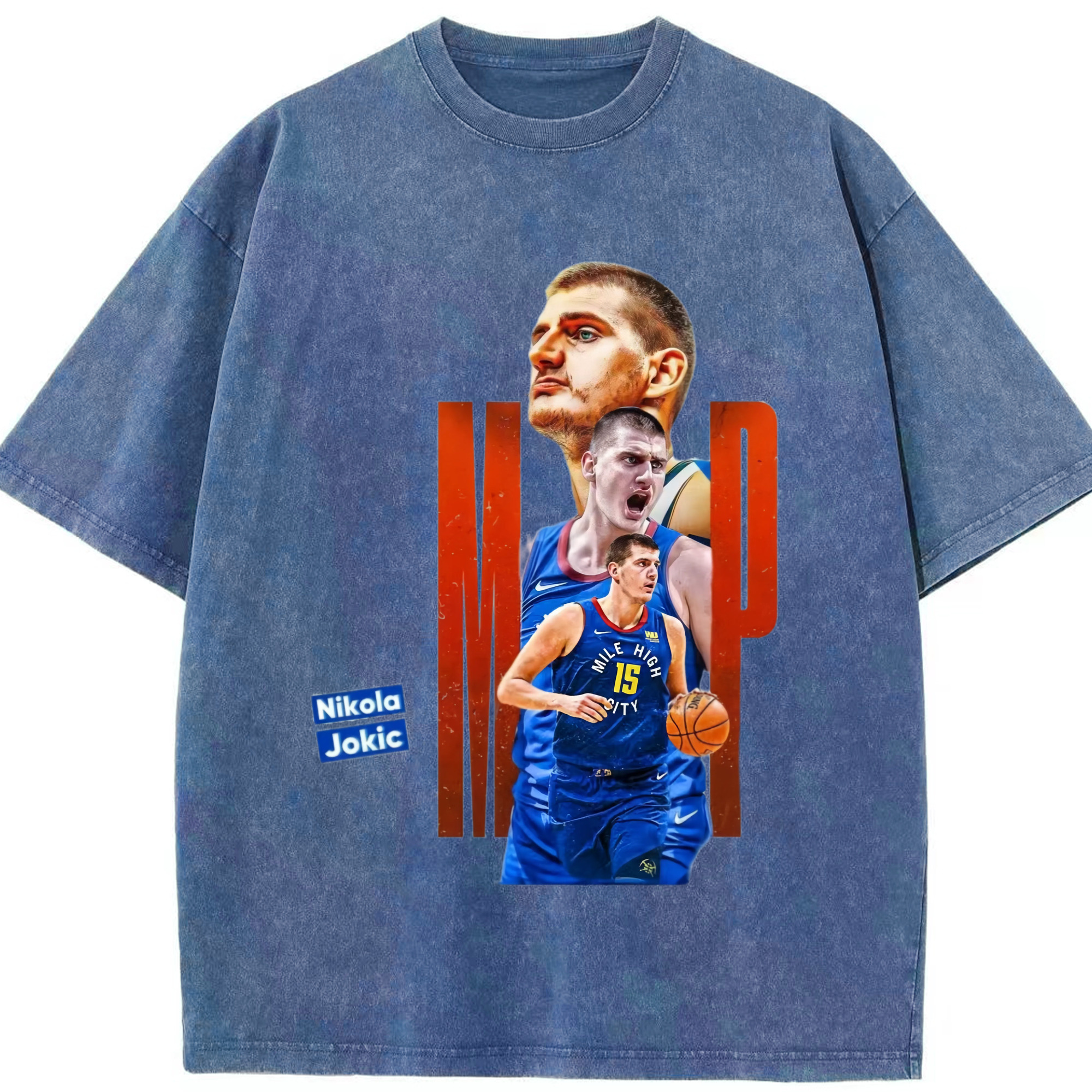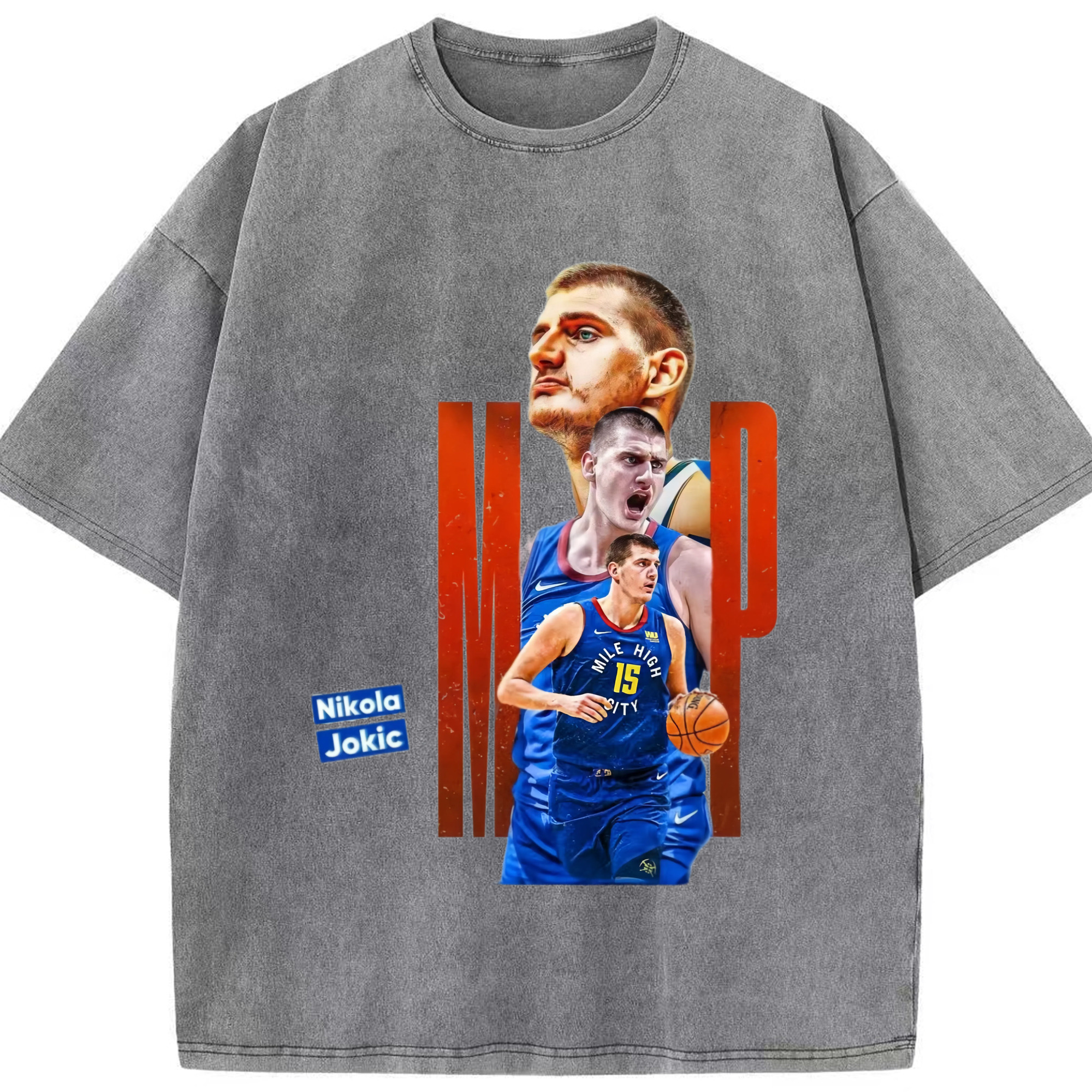 Nikola Jokić Nuggets mvp T-shirt - Washed Vintage Look 230g Cotton Oversized T-Shirt With Front Heat Transfer Print – Soft, Lightweight, Stylish Fit – Comfortable Casual Wear For Sports & Everyday Use