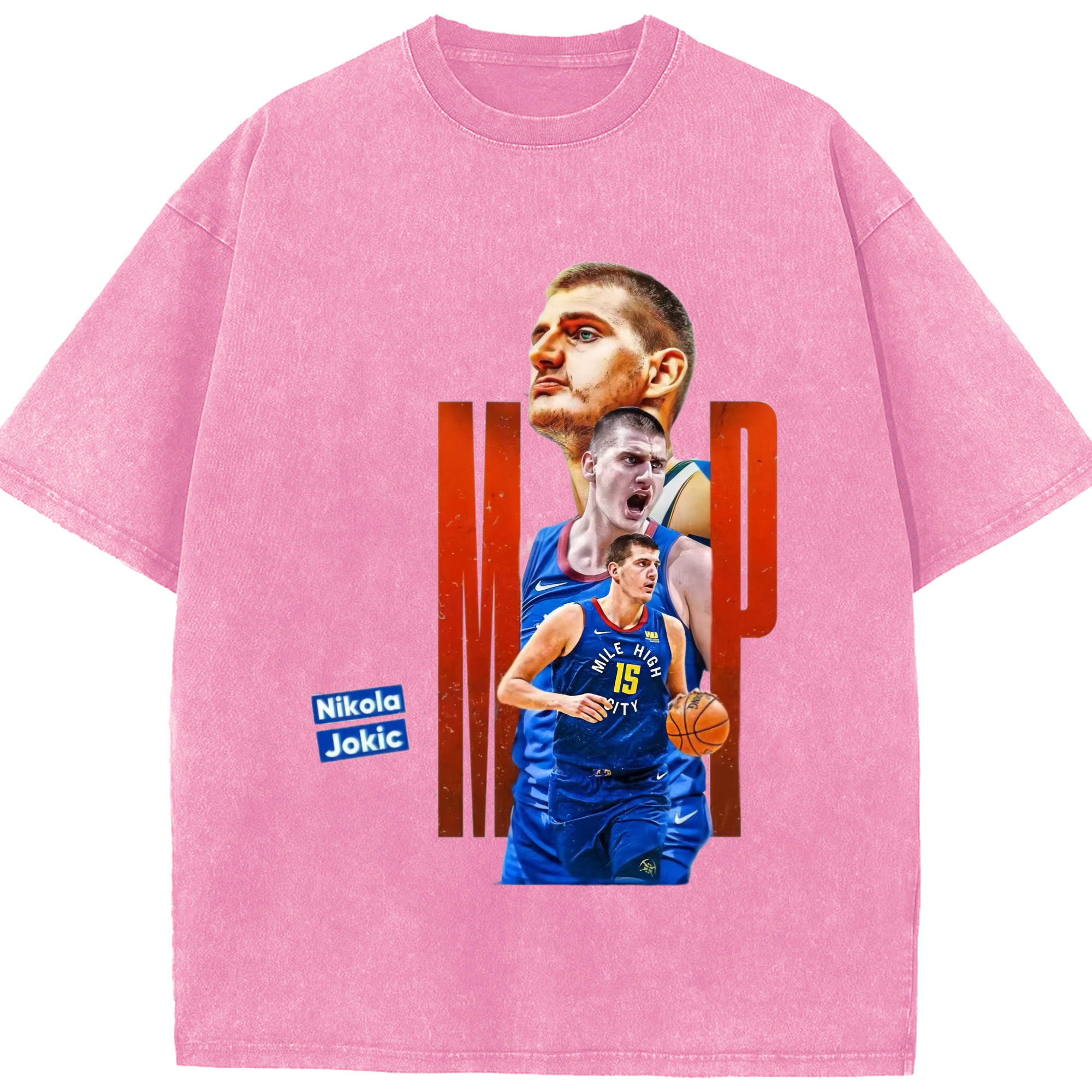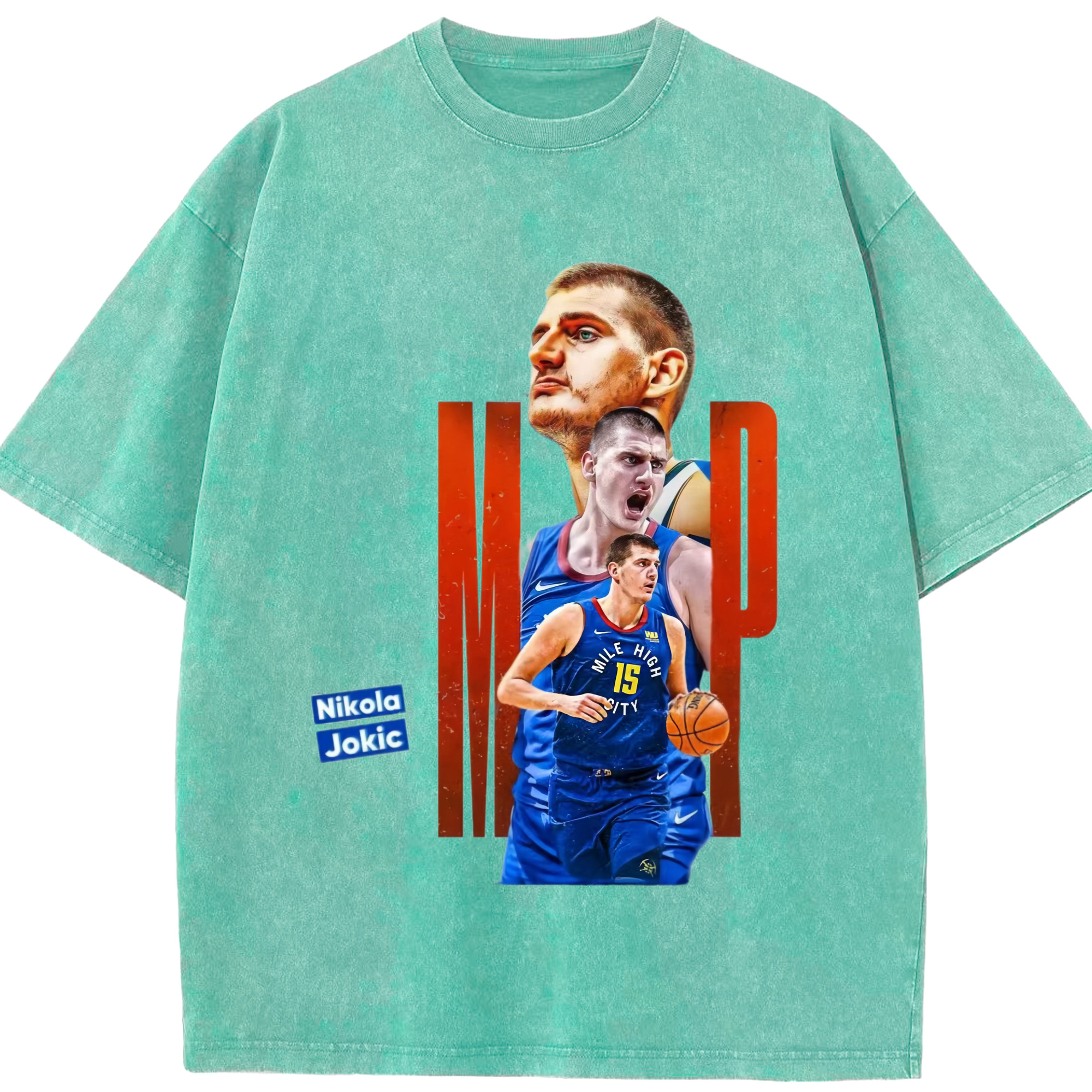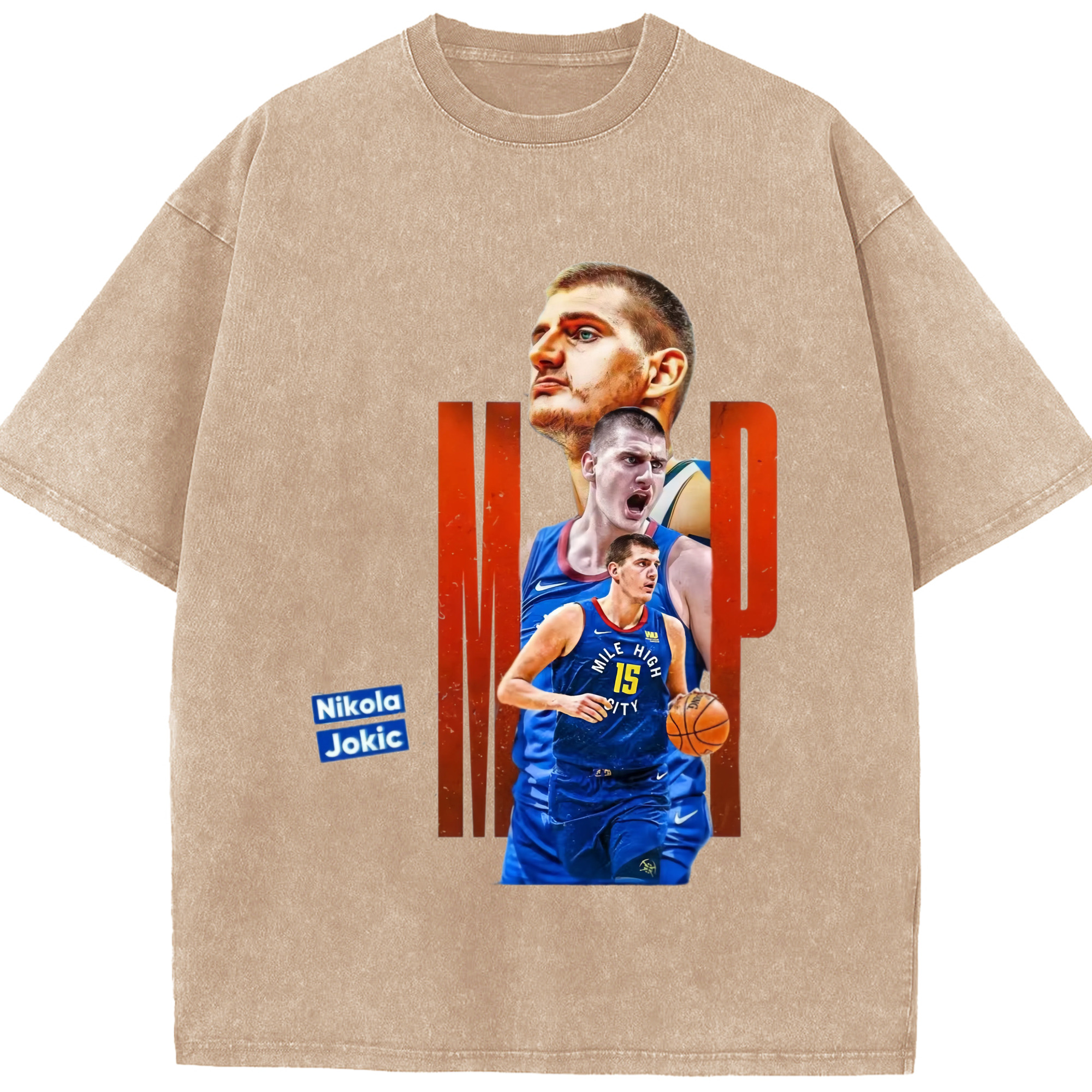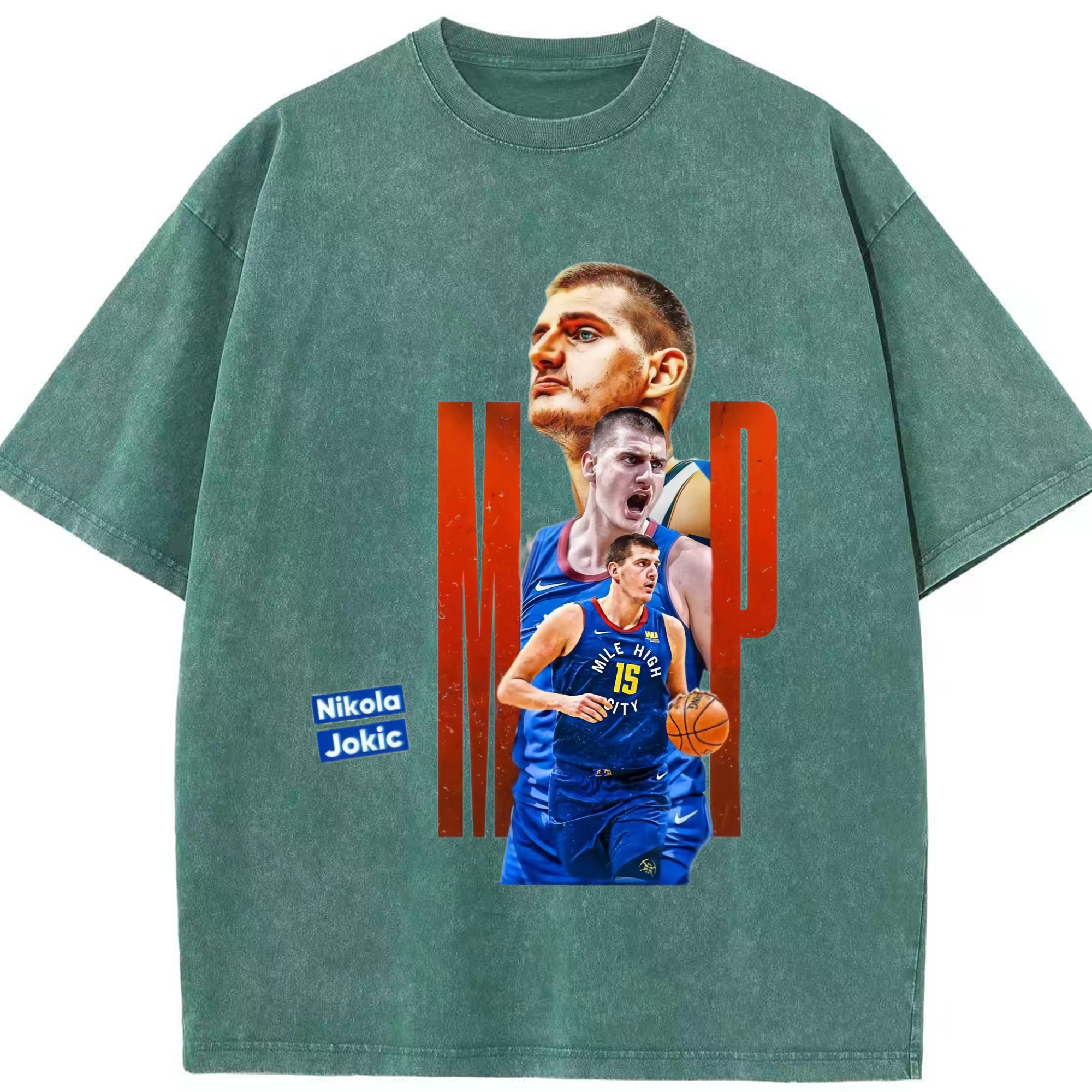 Nikola Jokić Nuggets mvp T-shirt - Washed Vintage Look 230g Cotton Oversized T-Shirt With Front Heat Transfer Print – Soft, Lightweight, Stylish Fit – Comfortable Casual Wear For Sports & Everyday Use