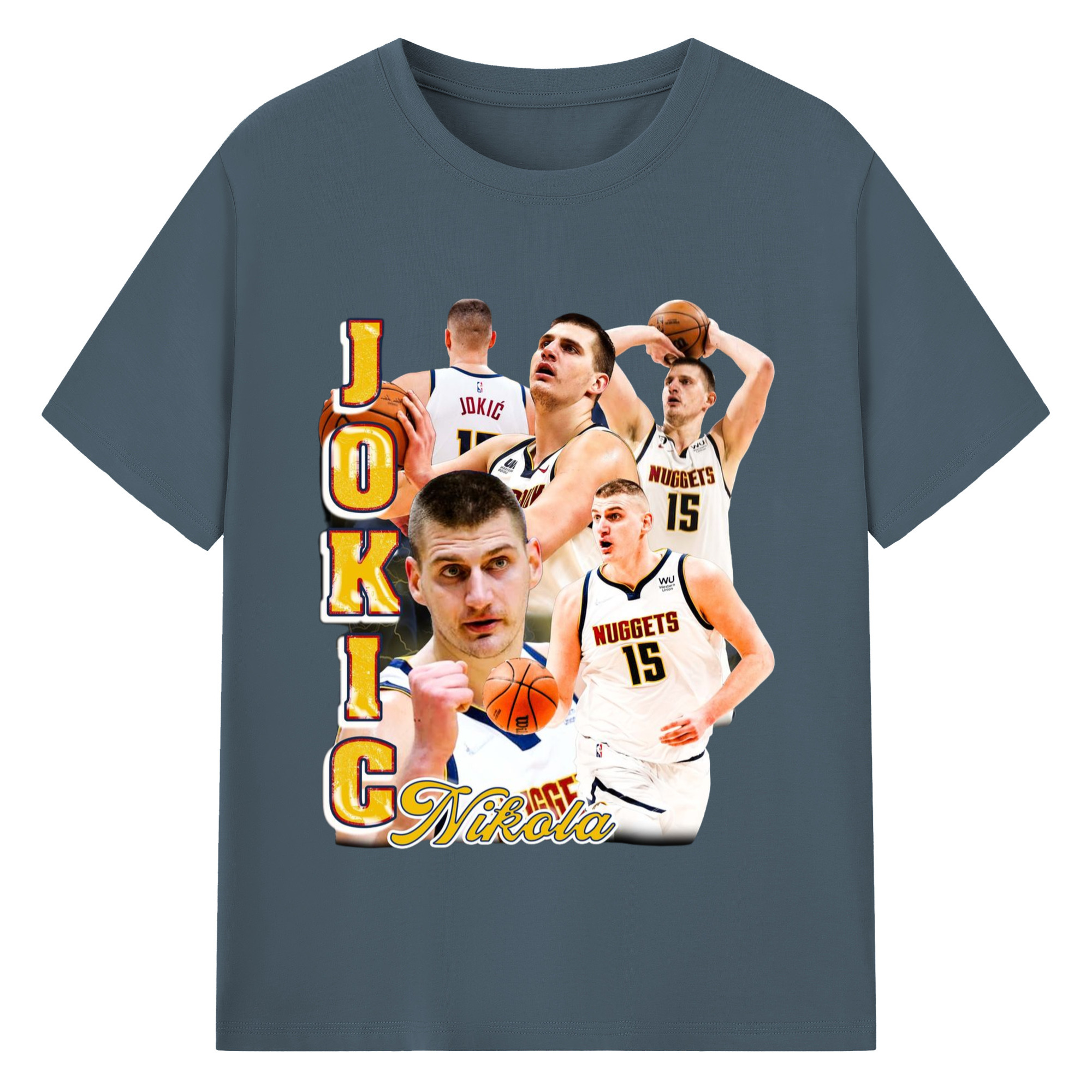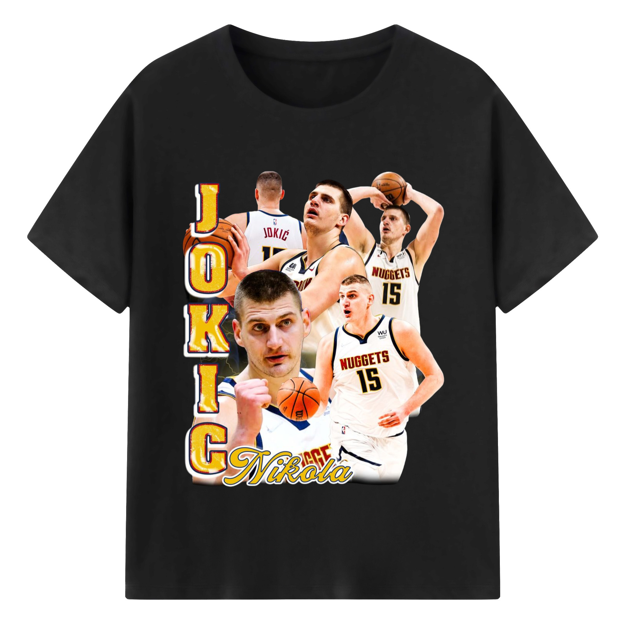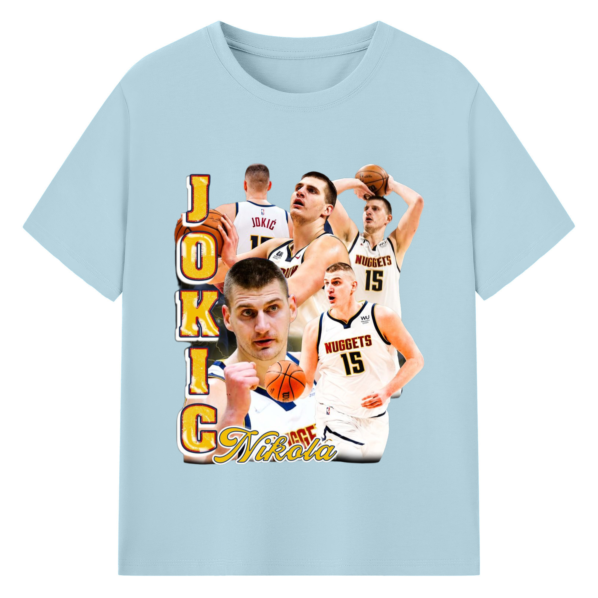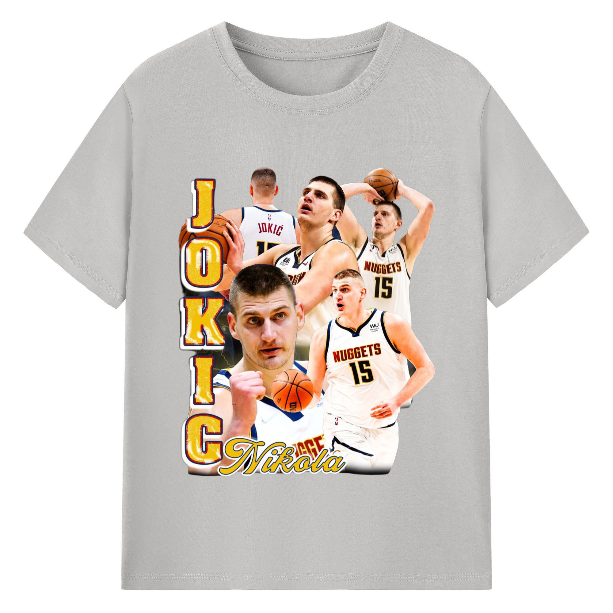 Nikola Jokic #15 Jersey collage T-shirt - 180g Cotton T-Shirt With Front Heat Transfer Print – Soft, Lightweight, Fitted Design – Comfortable Casual Wear For Sports & Everyday Use