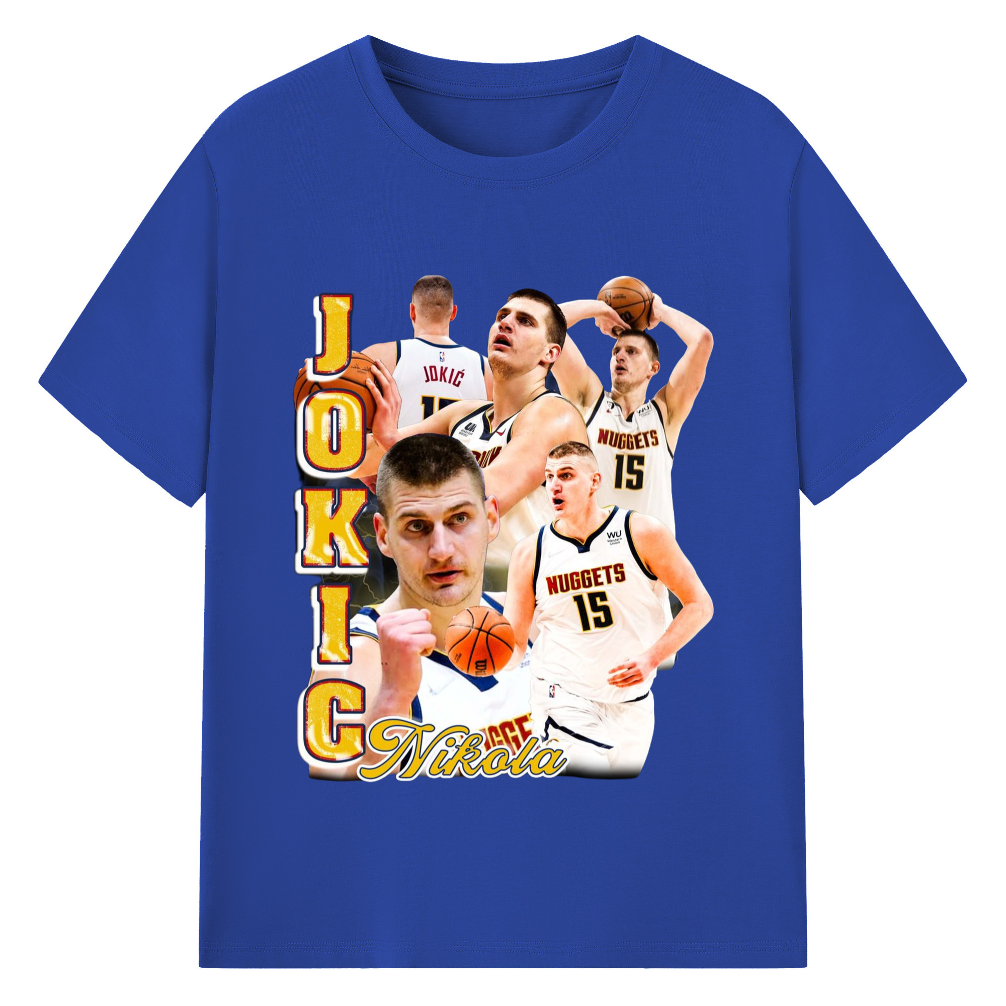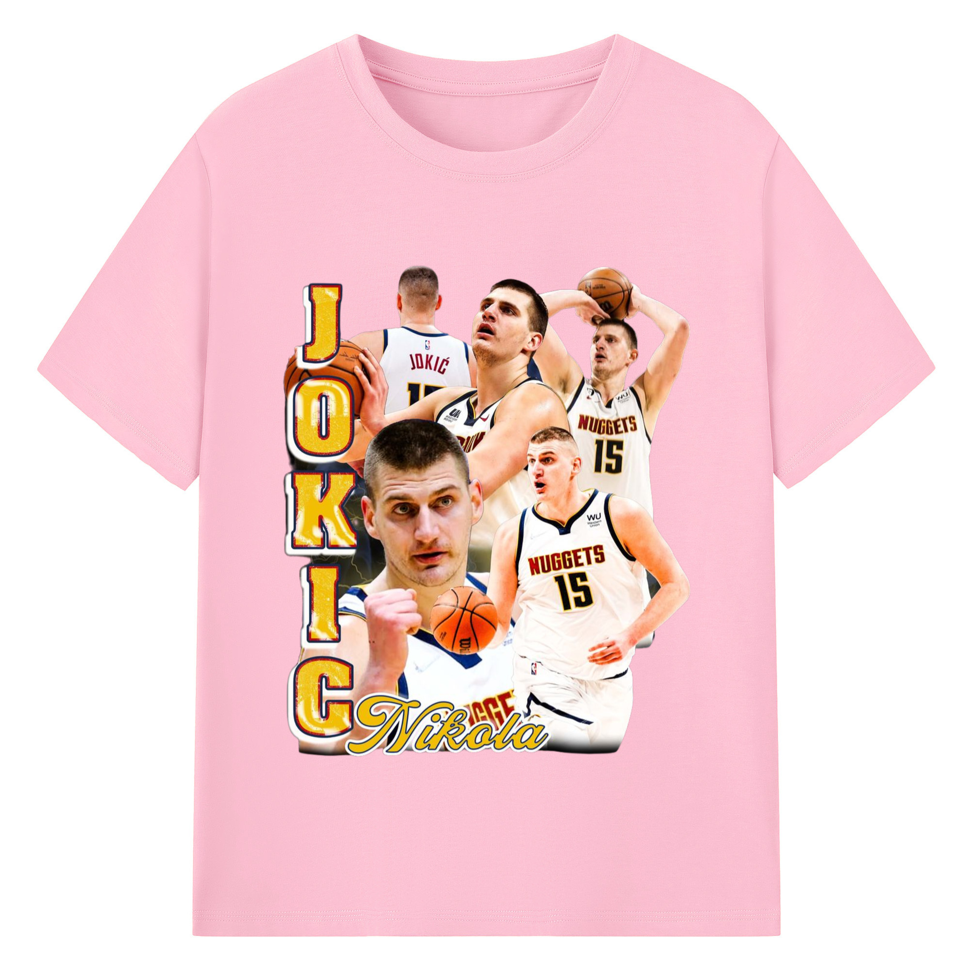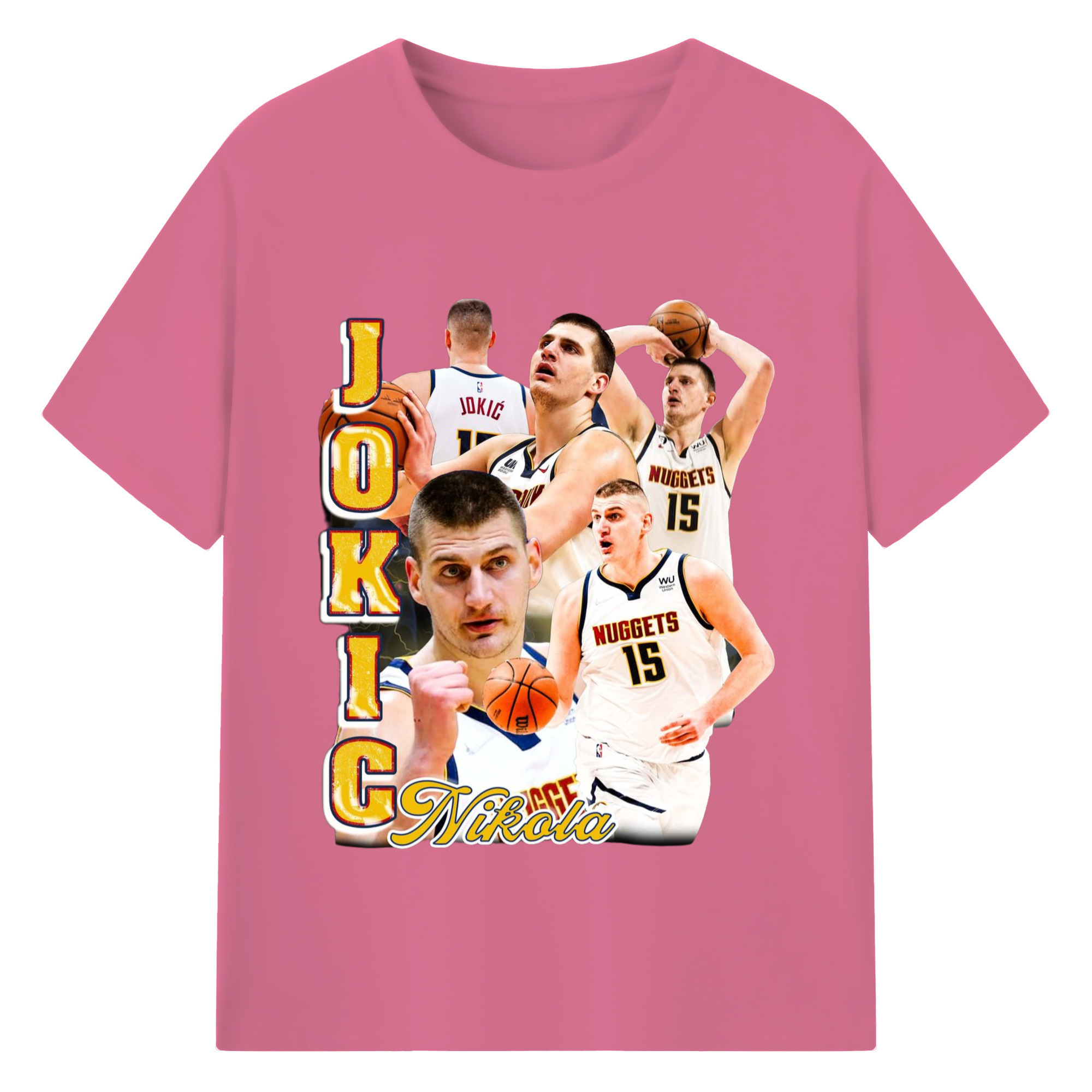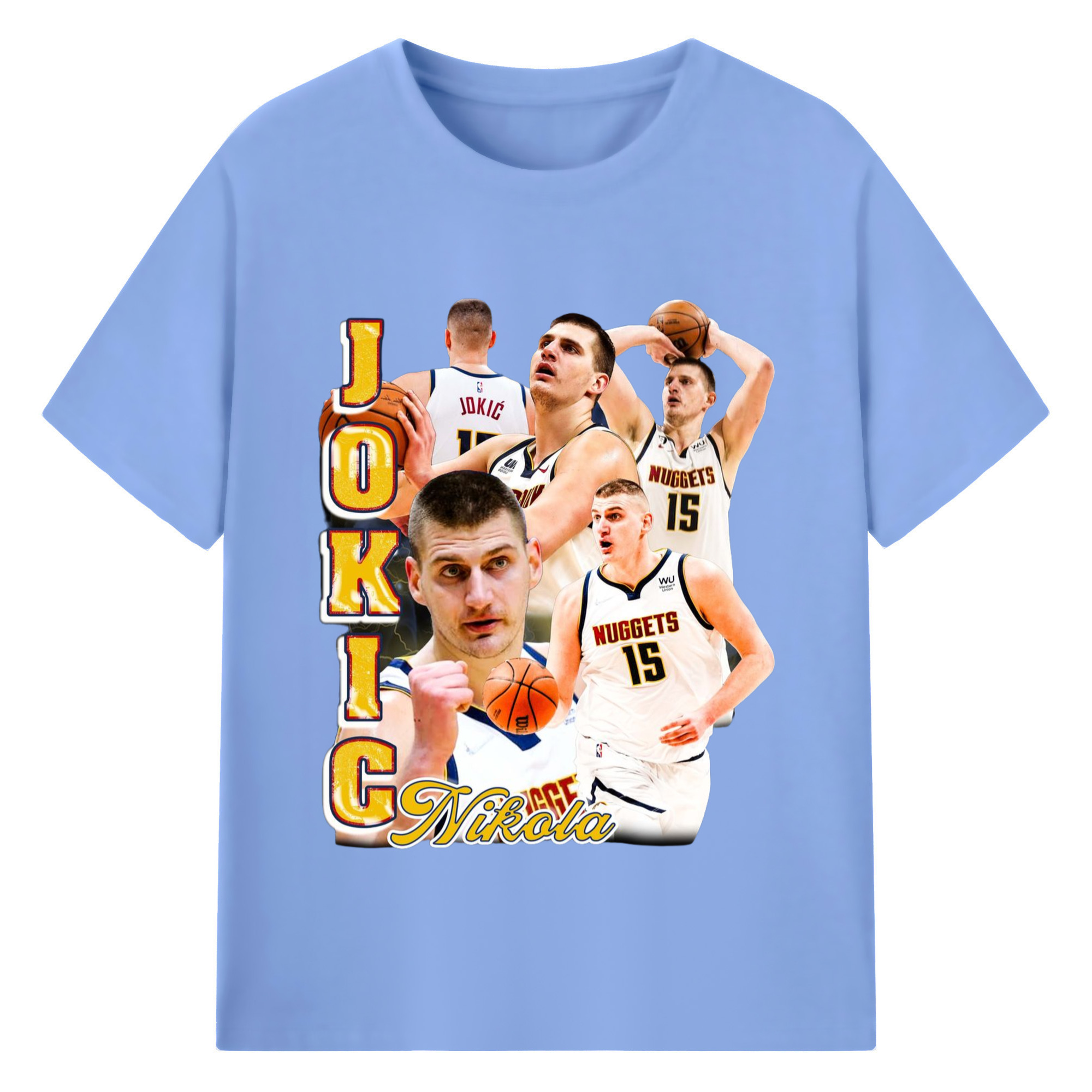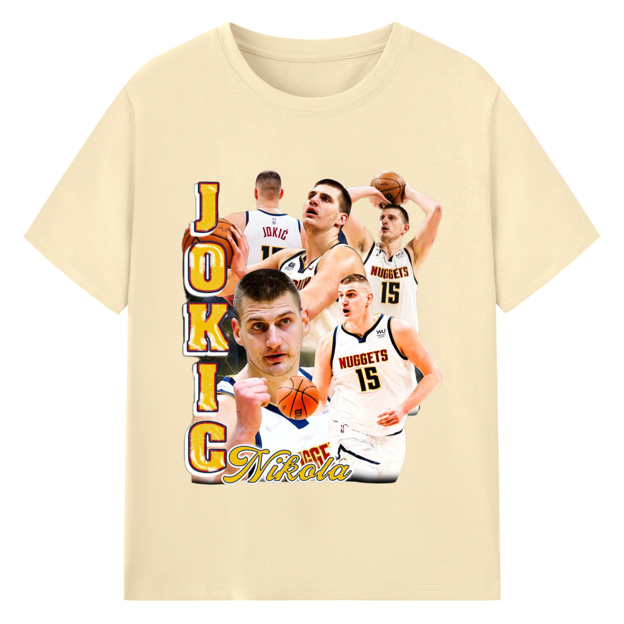 Nikola Jokic #15 Jersey collage T-shirt - 180g Cotton T-Shirt With Front Heat Transfer Print – Soft, Lightweight, Fitted Design – Comfortable Casual Wear For Sports & Everyday Use