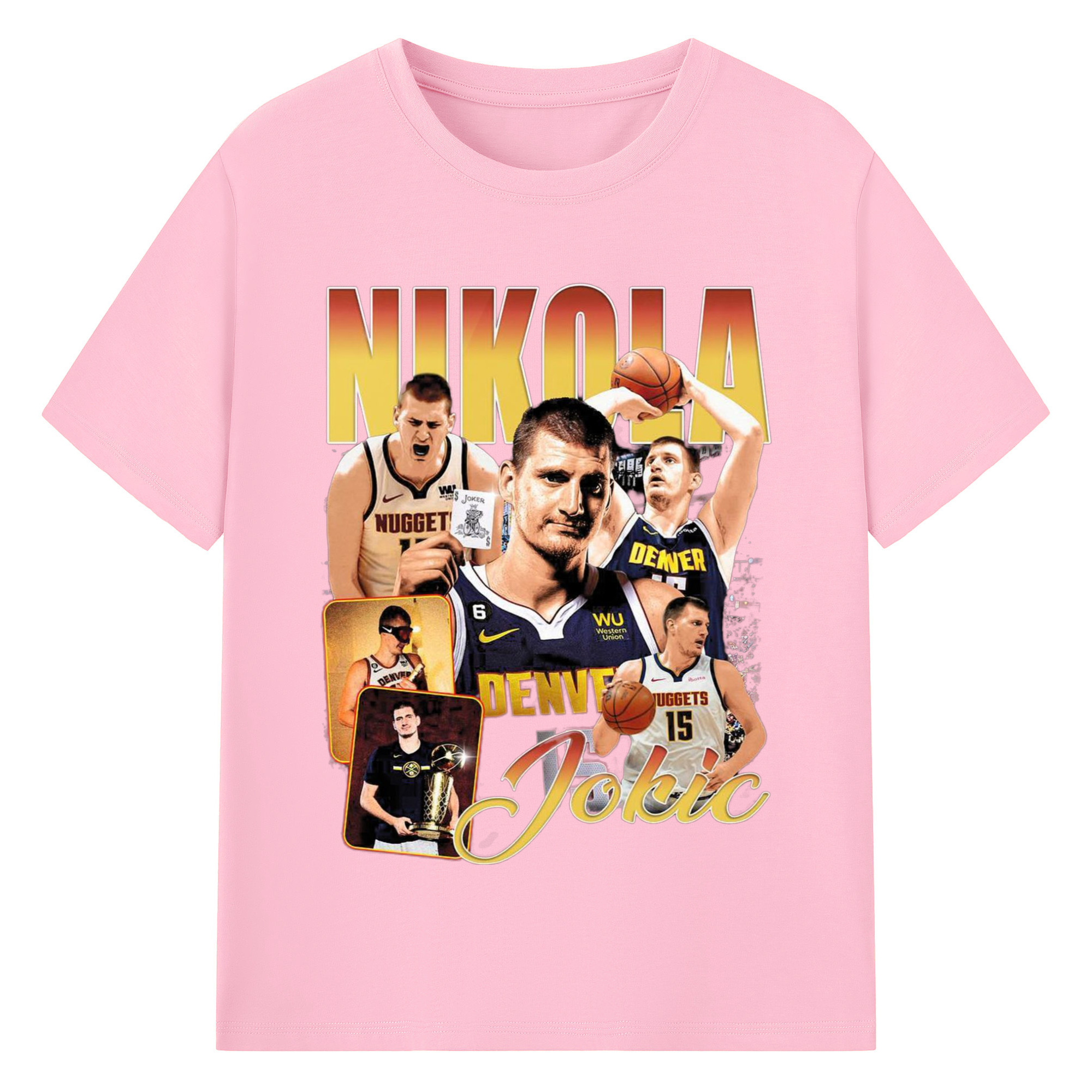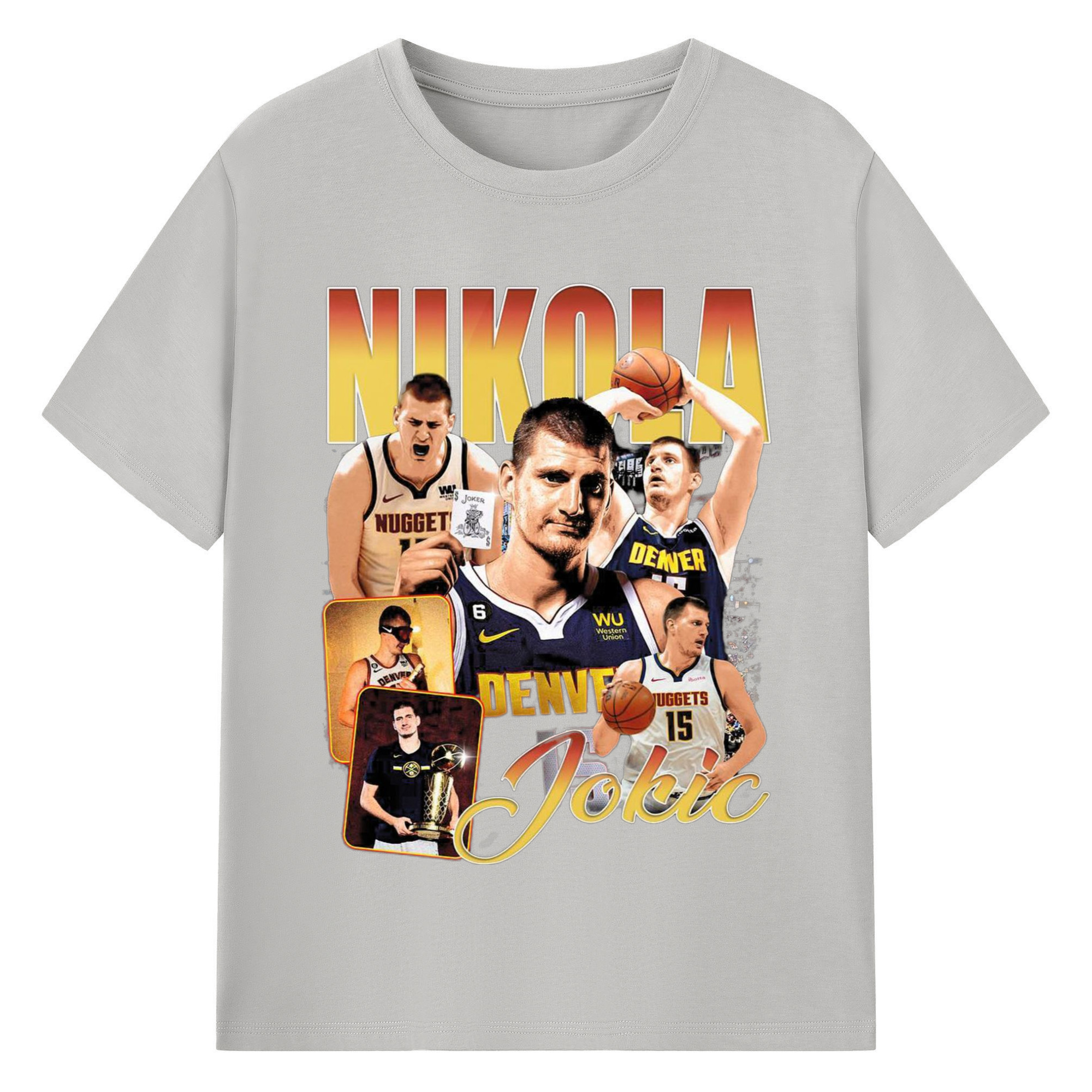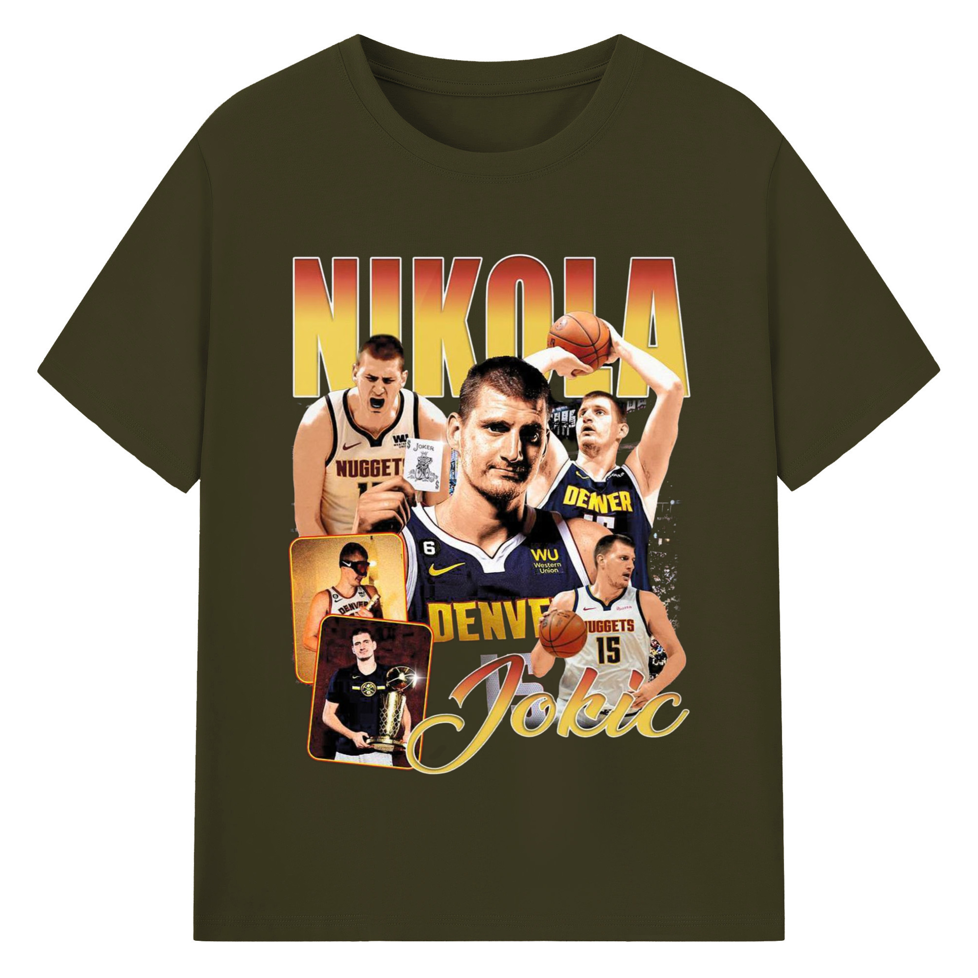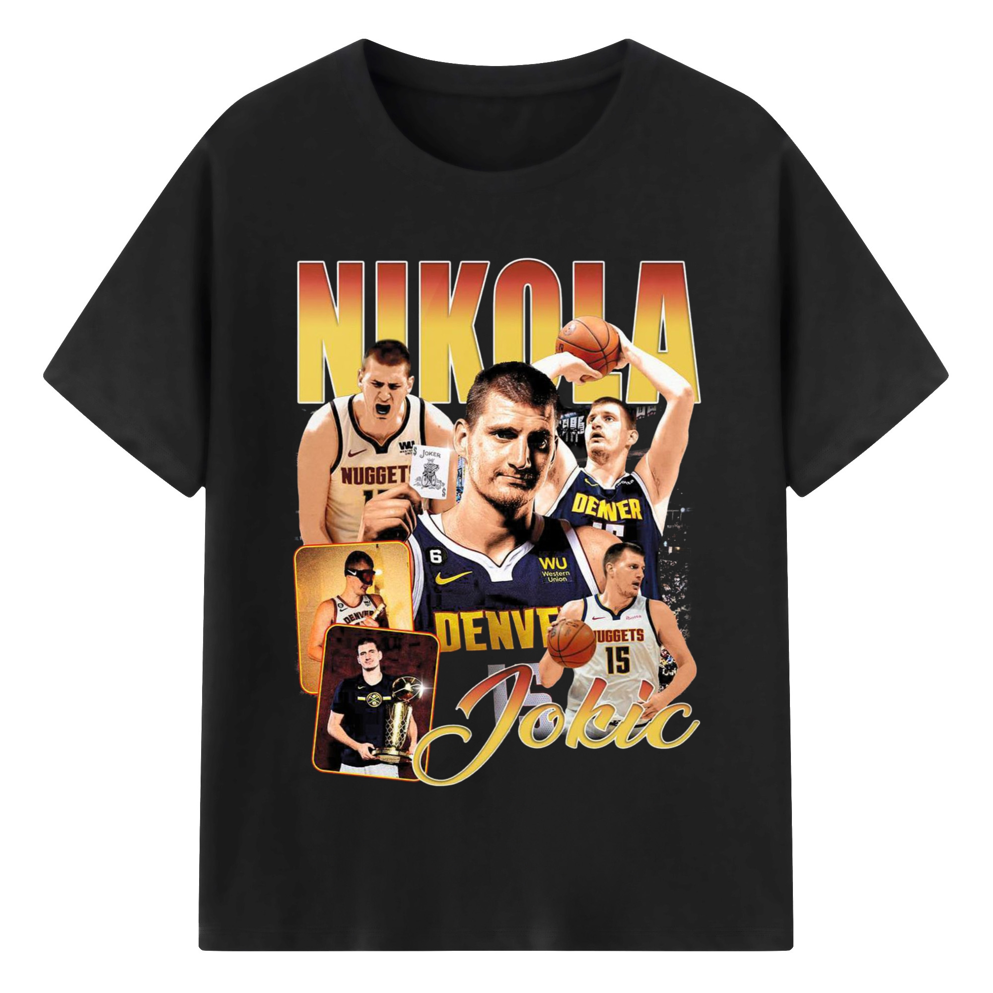 Nuggets Nikola Jokic #15 collage T-shirt - 180g Cotton T-Shirt With Front Heat Transfer Print – Soft, Lightweight, Fitted Design – Comfortable Casual Wear For Sports & Everyday Use