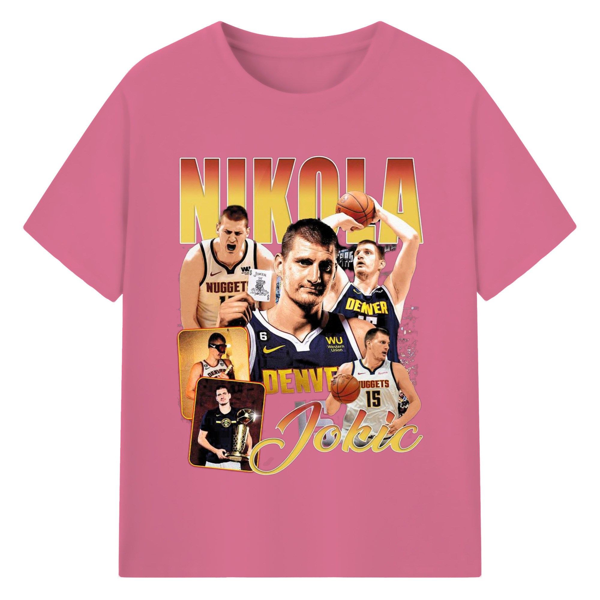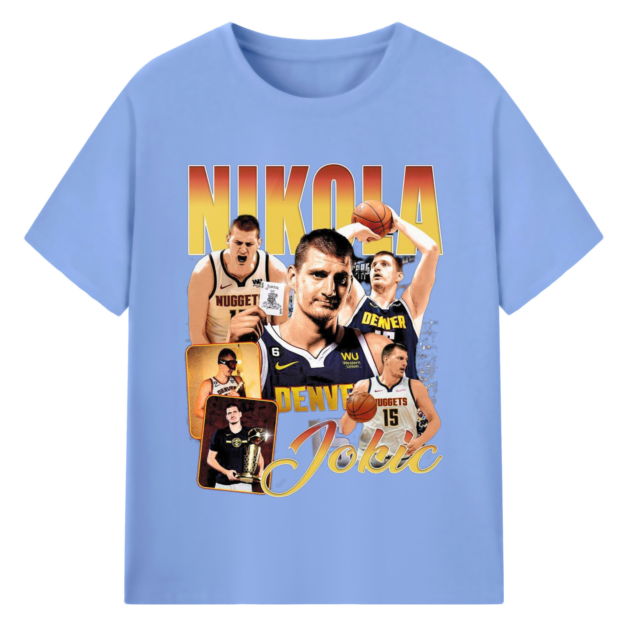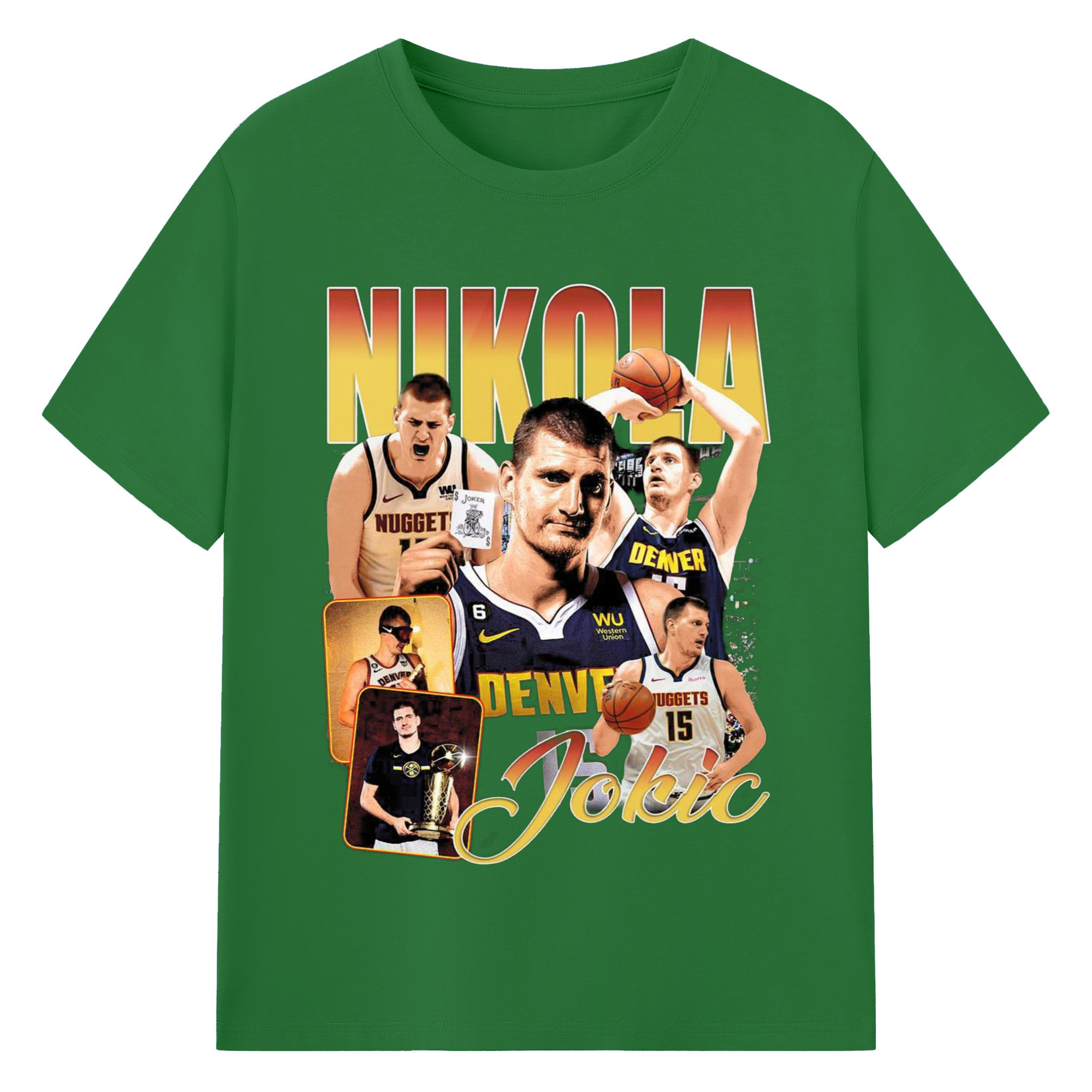 Nuggets Nikola Jokic #15 collage T-shirt - 180g Cotton T-Shirt With Front Heat Transfer Print – Soft, Lightweight, Fitted Design – Comfortable Casual Wear For Sports & Everyday Use