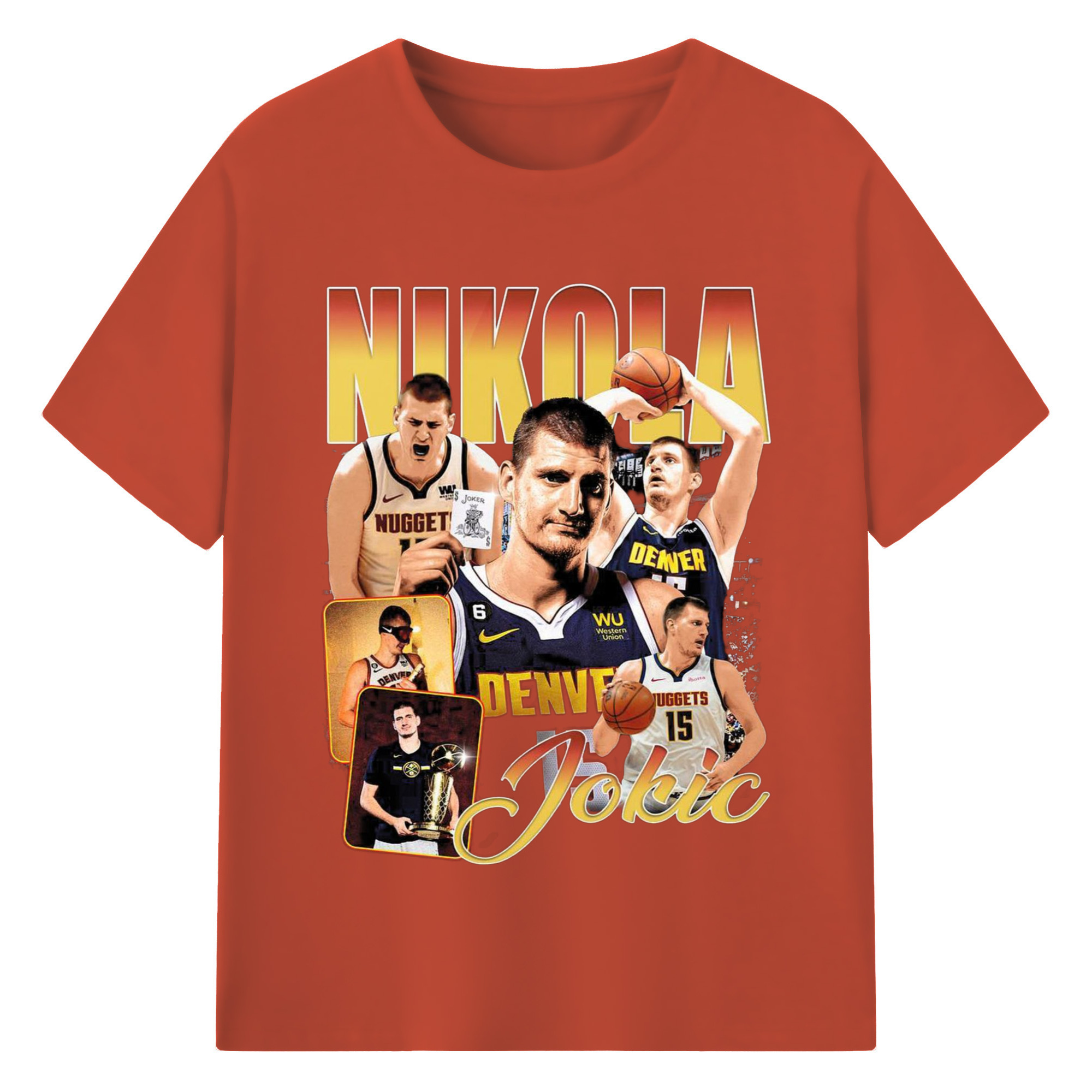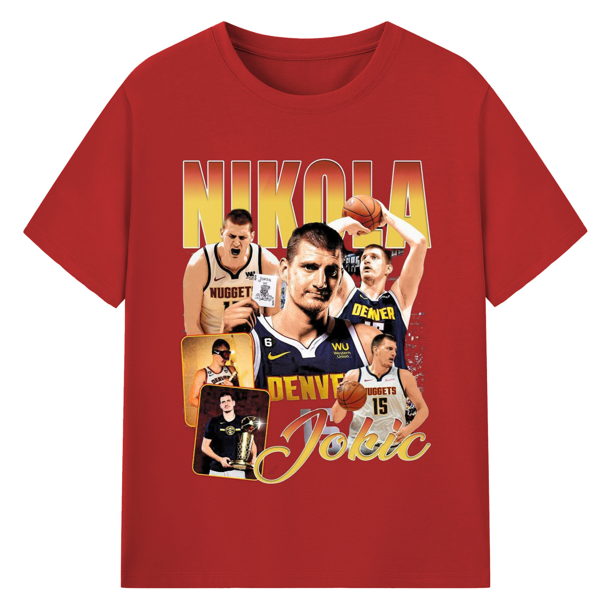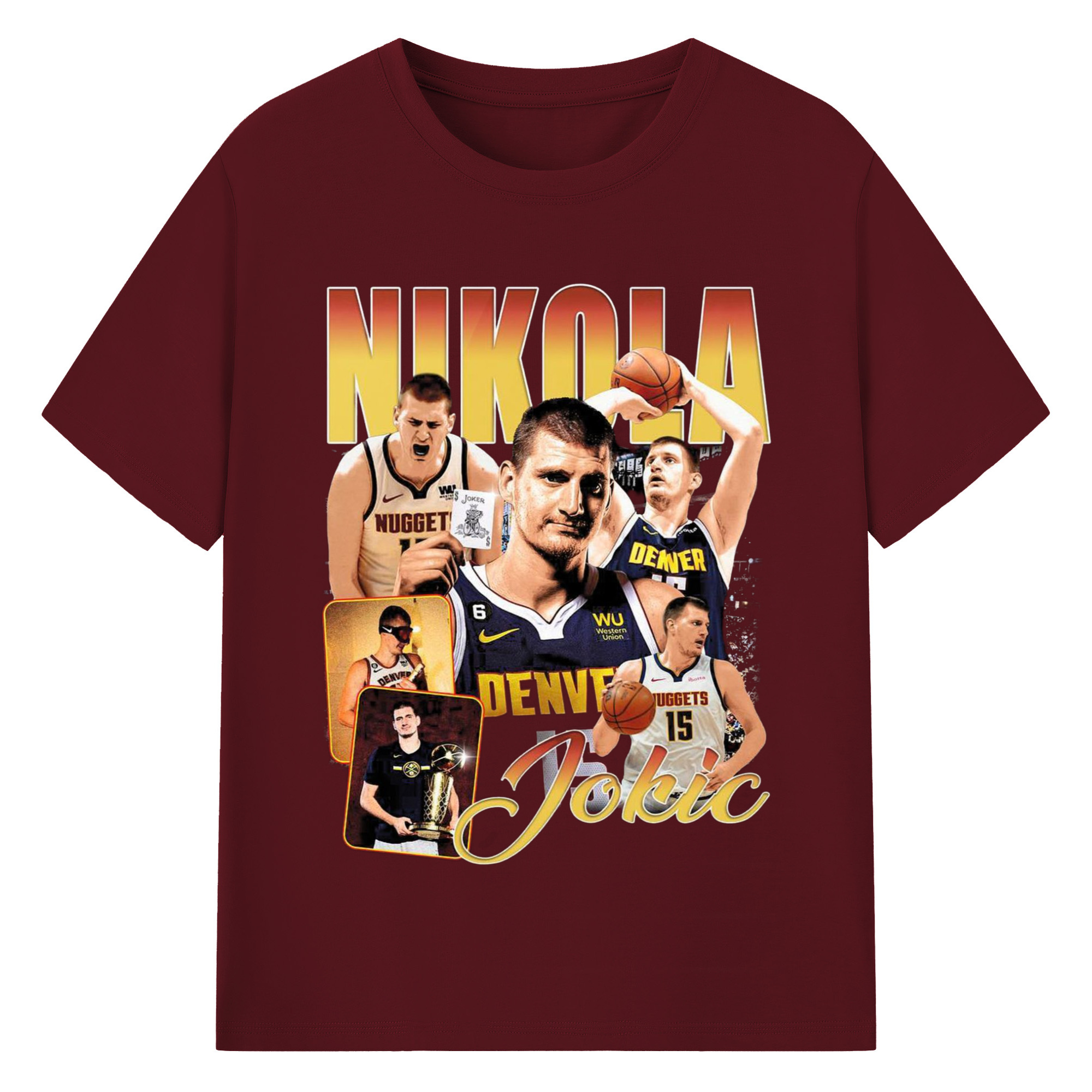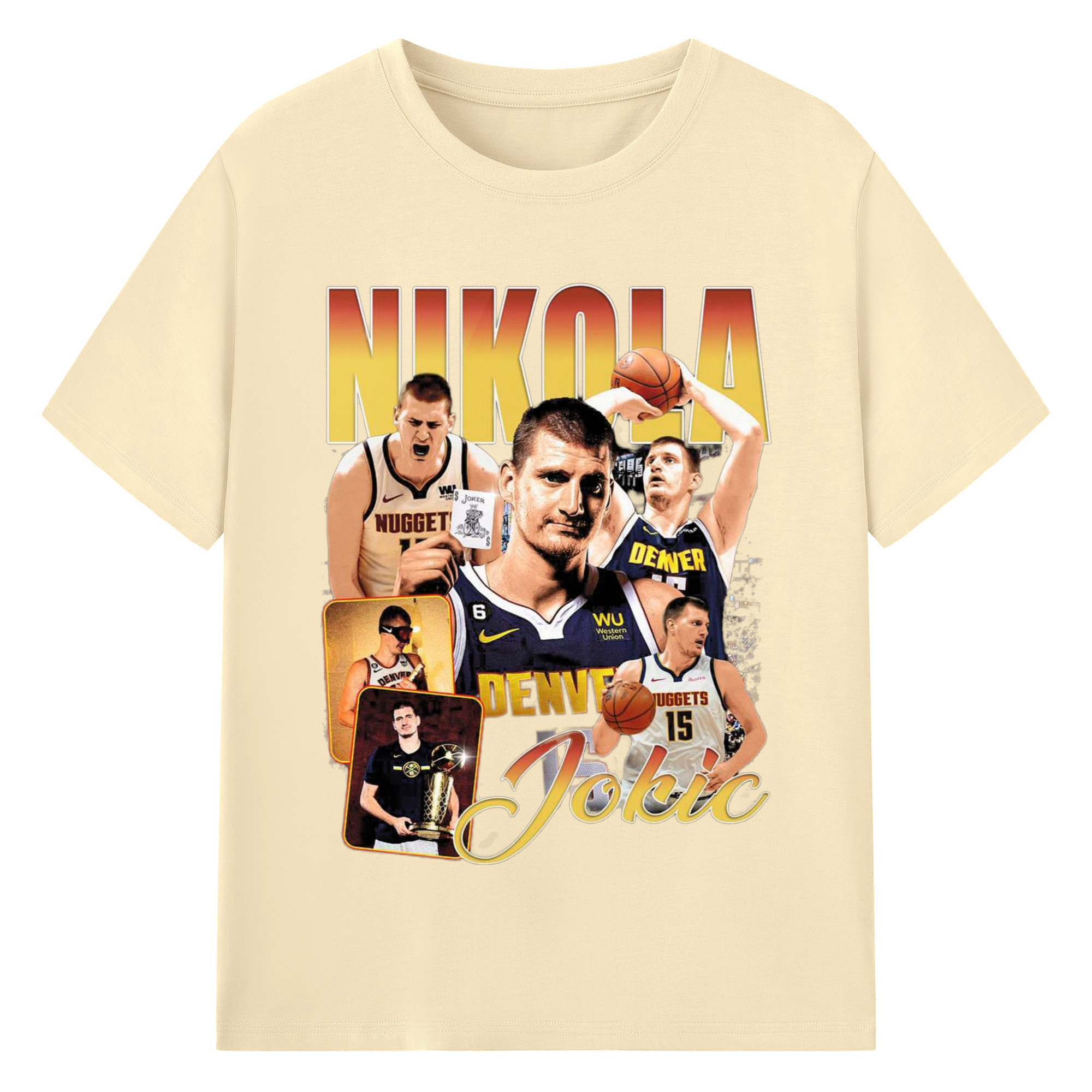 Nuggets Nikola Jokic #15 collage T-shirt - 180g Cotton T-Shirt With Front Heat Transfer Print – Soft, Lightweight, Fitted Design – Comfortable Casual Wear For Sports & Everyday Use