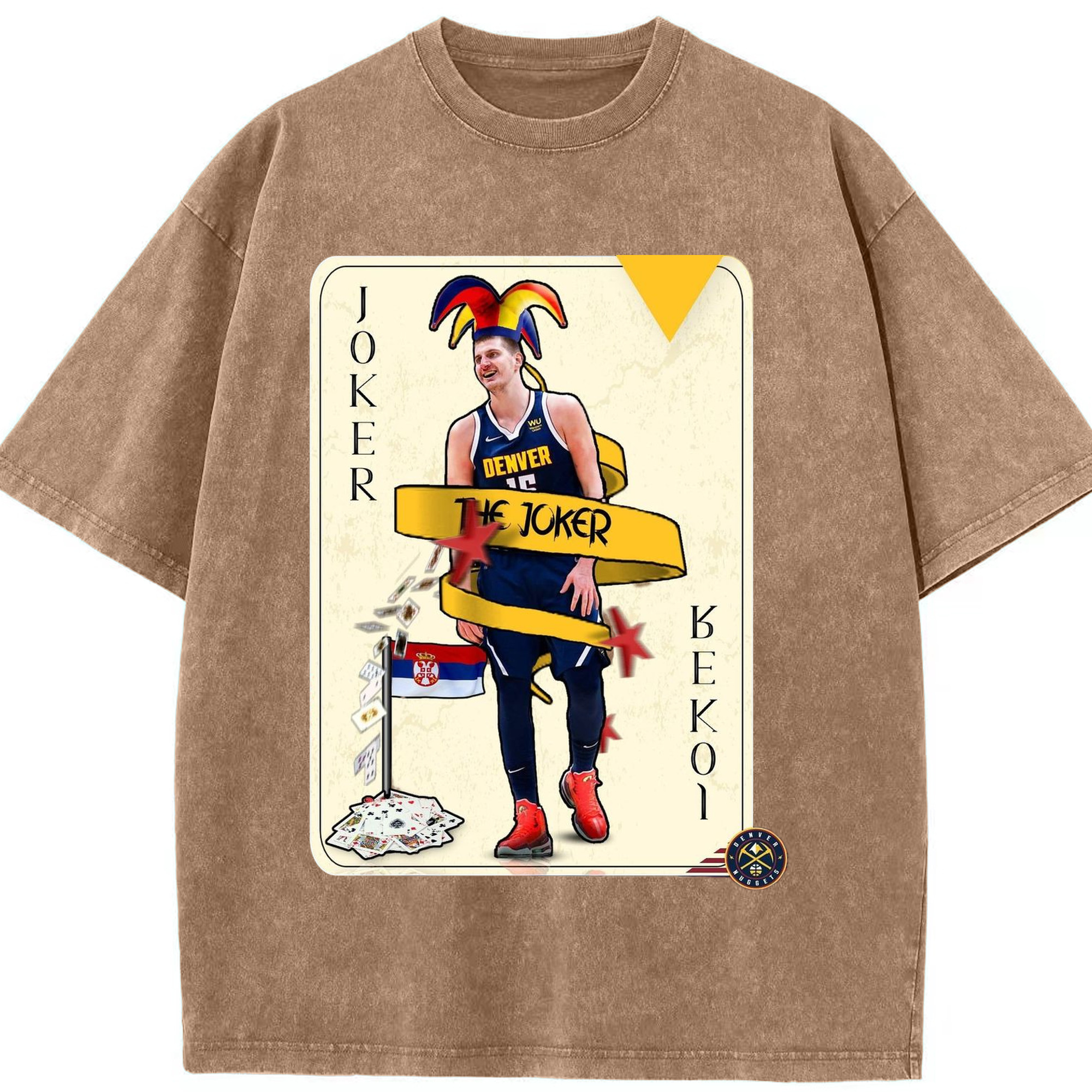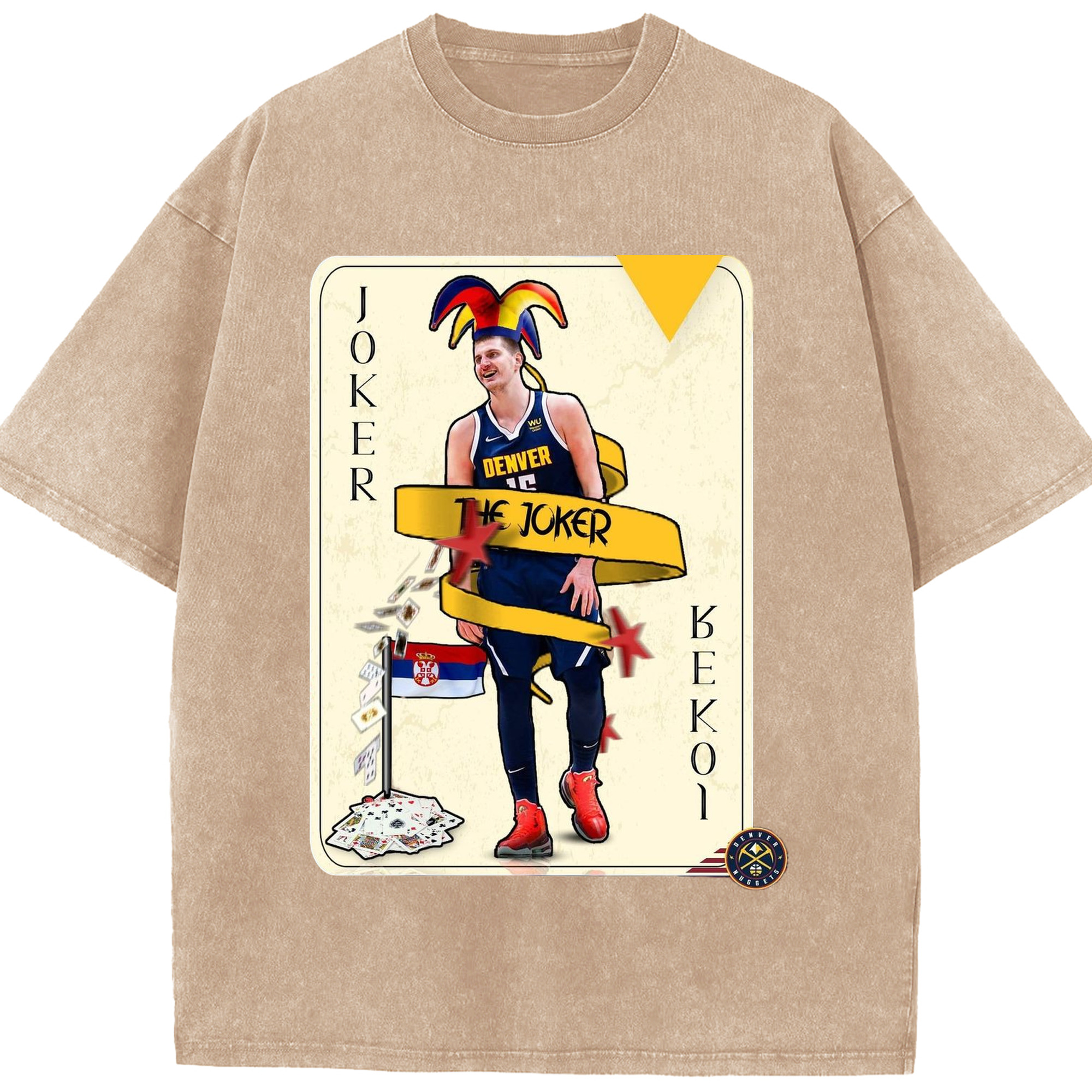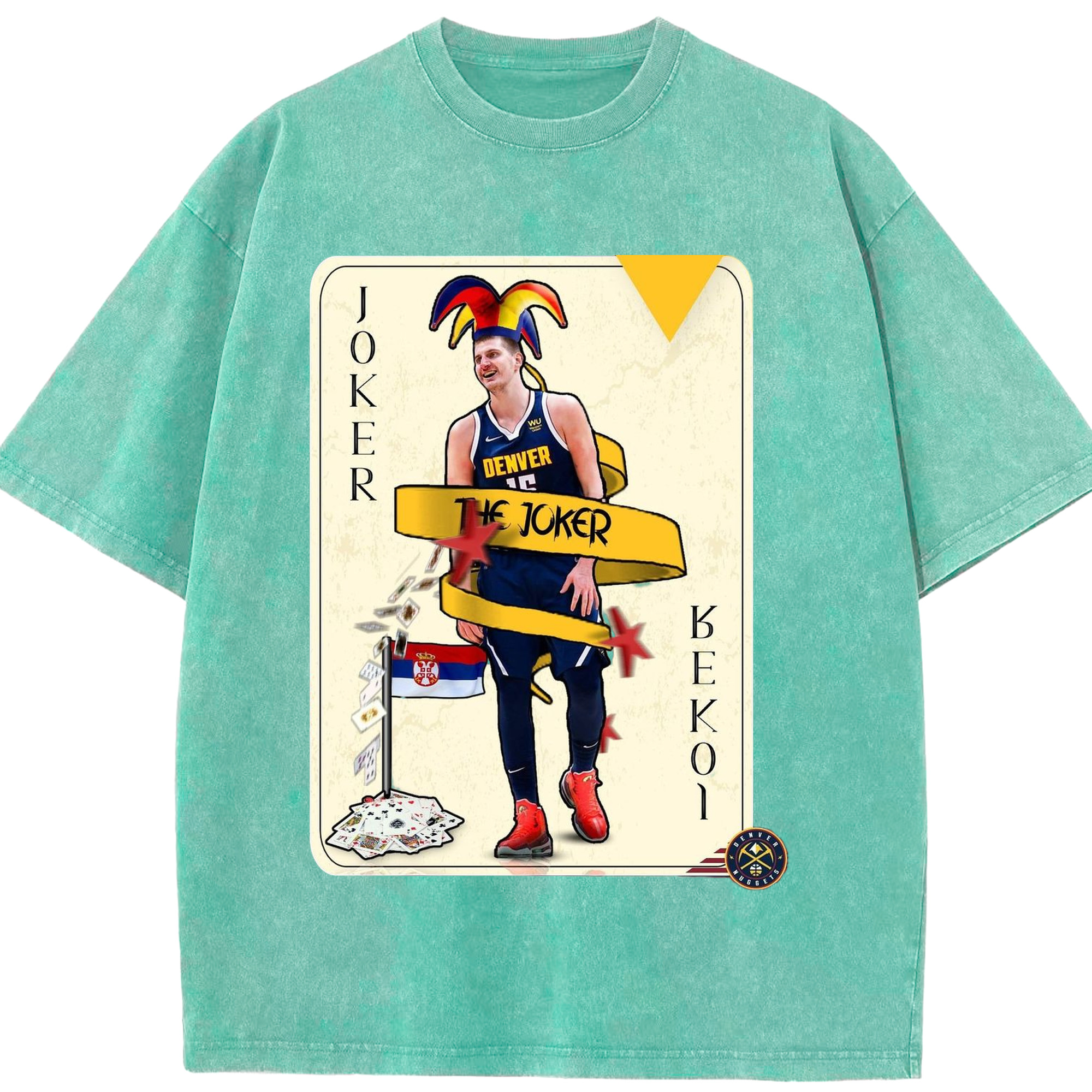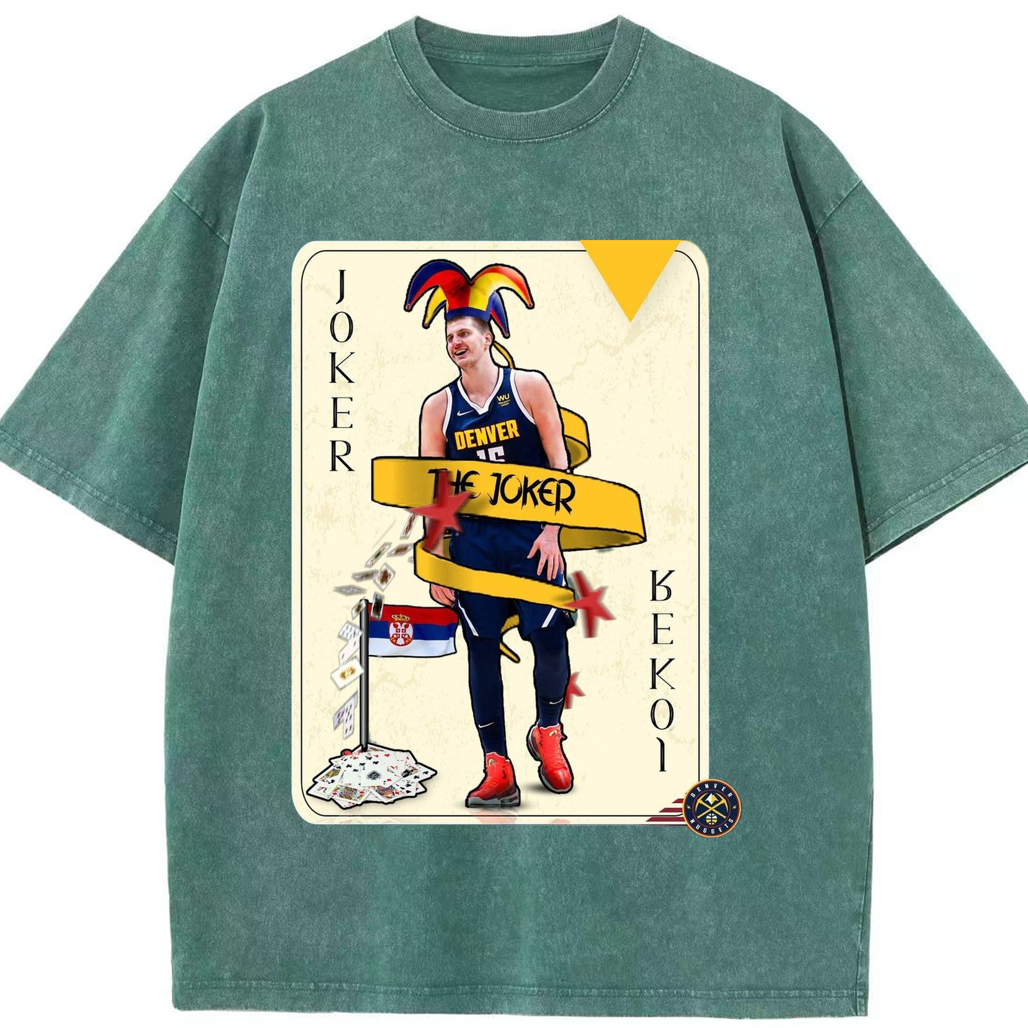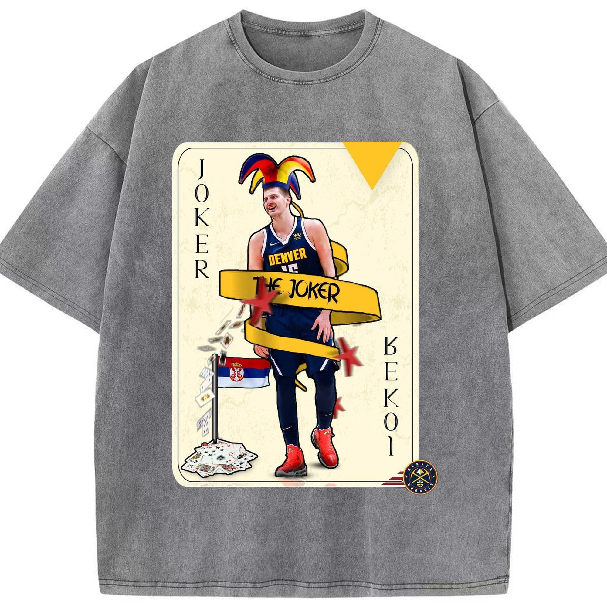 Nuggets The Joker Jokic #15 T-shirt - Washed Vintage Look 230g Cotton Oversized T-Shirt With Front Heat Transfer Print – Soft, Lightweight, Stylish Fit – Comfortable Casual Wear For Sports & Everyday Use