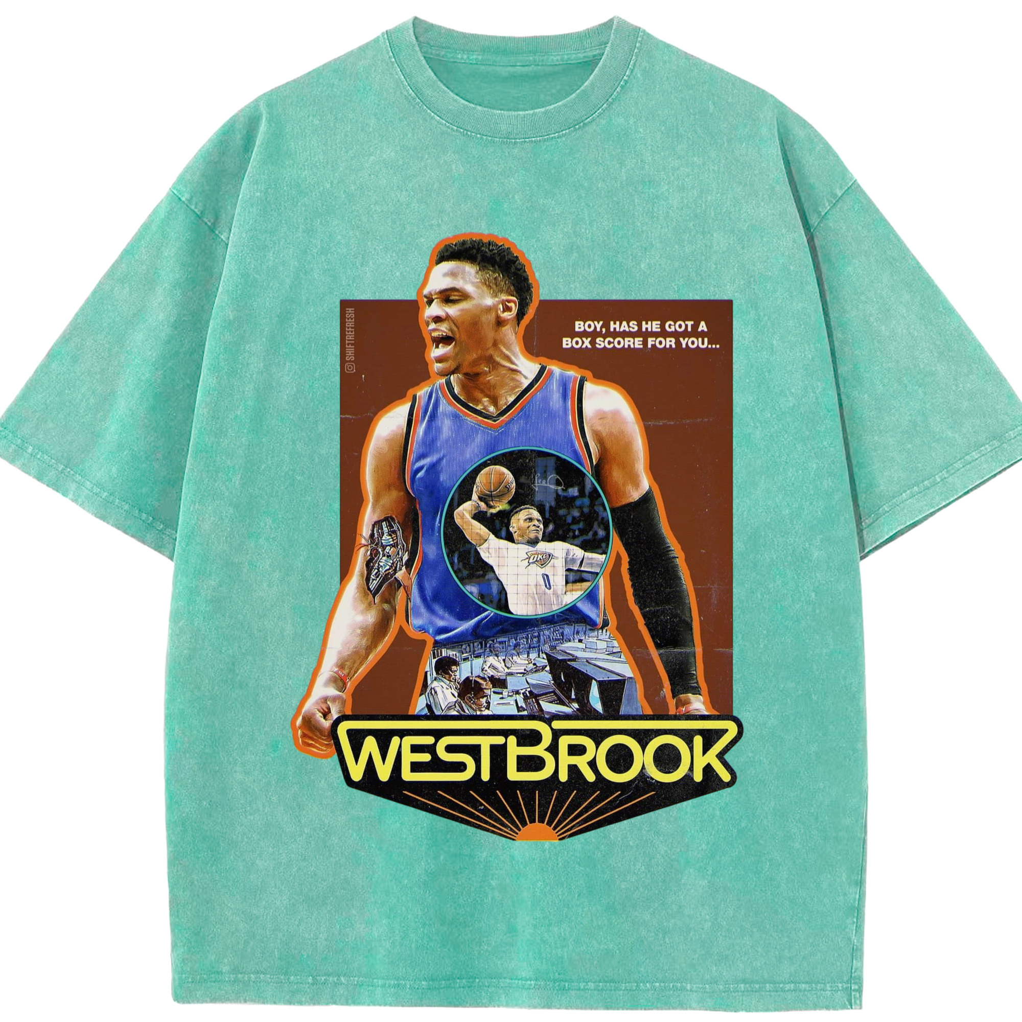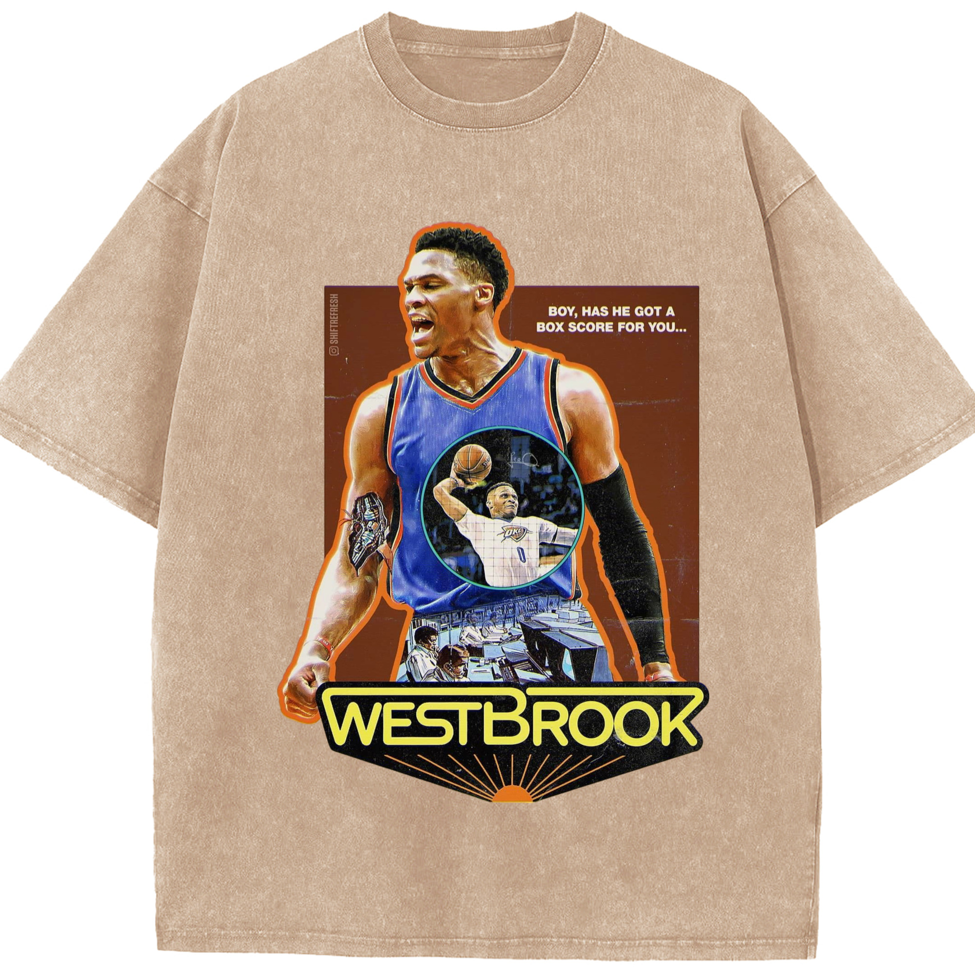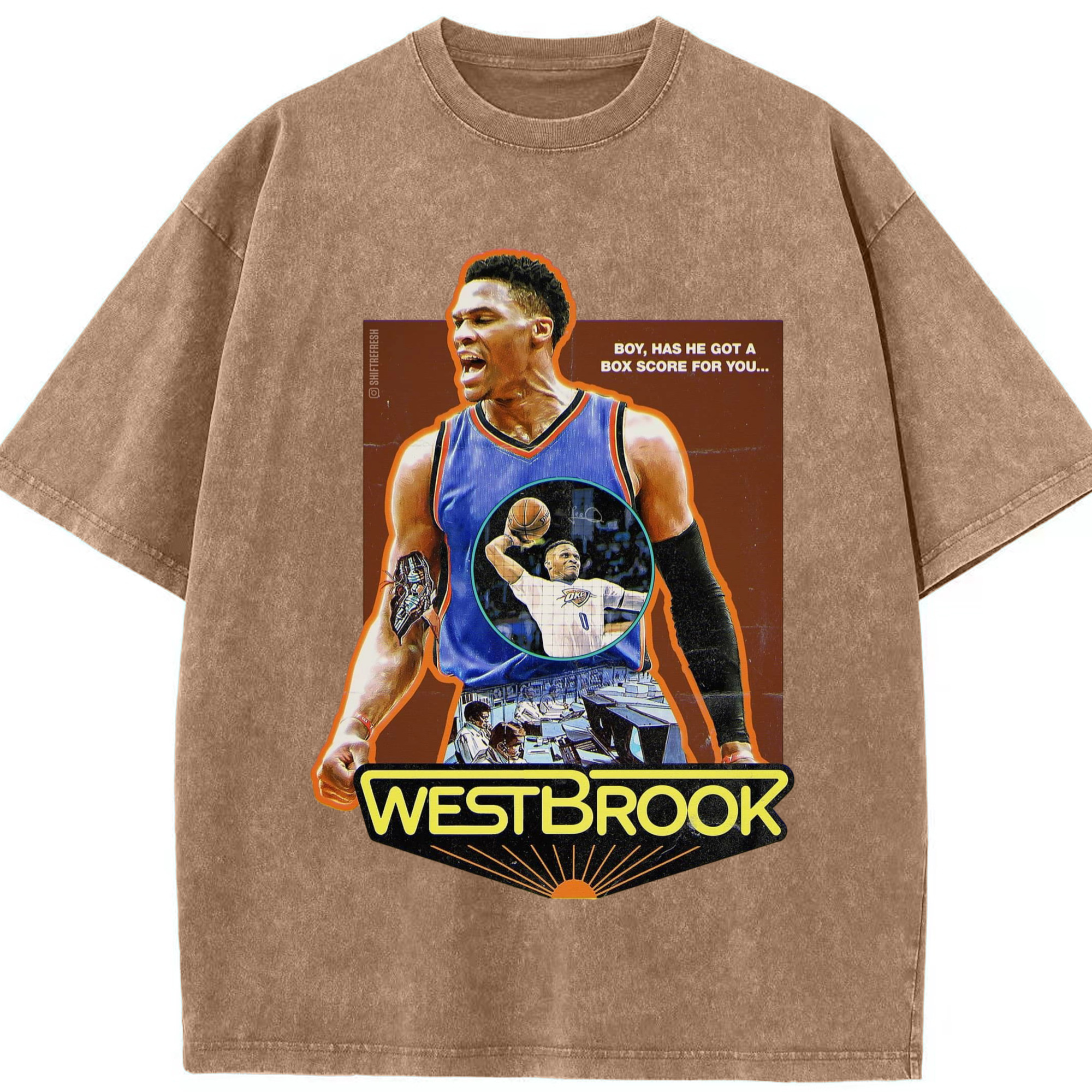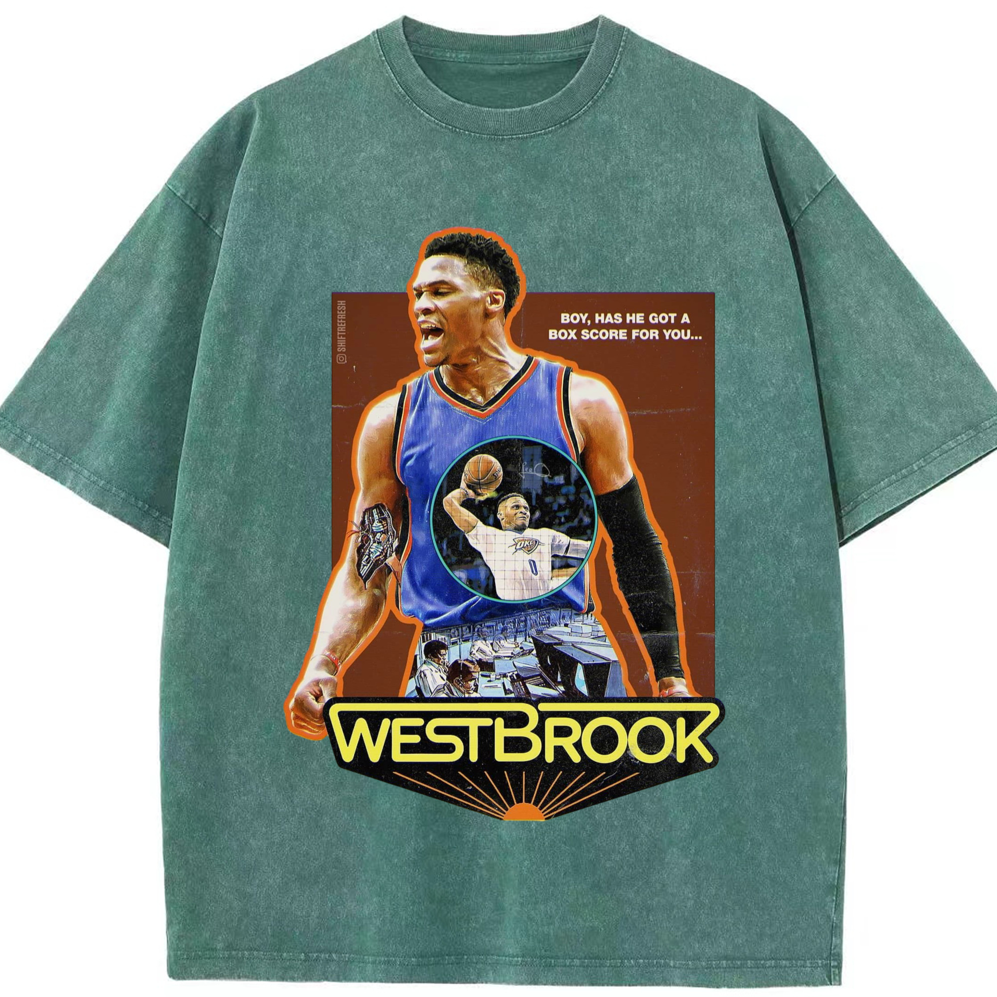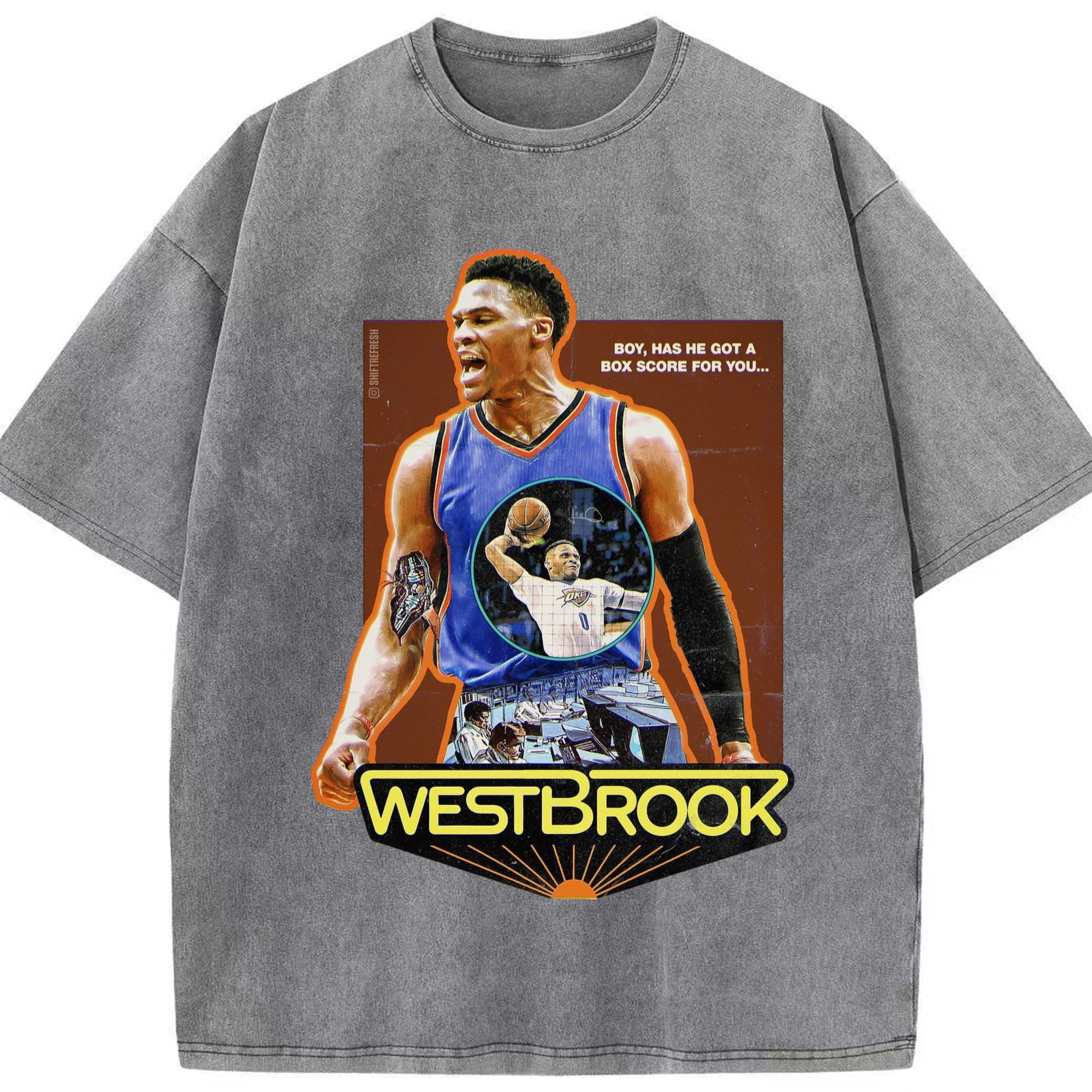 OKC russell westbrook Slam Dunk Roar T‑shirt - Washed Vintage Look 230g Cotton Oversized T-Shirt With Front Heat Transfer Print – Soft, Lightweight, Stylish Fit – Comfortable Casual Wear For Sports & Everyday Use