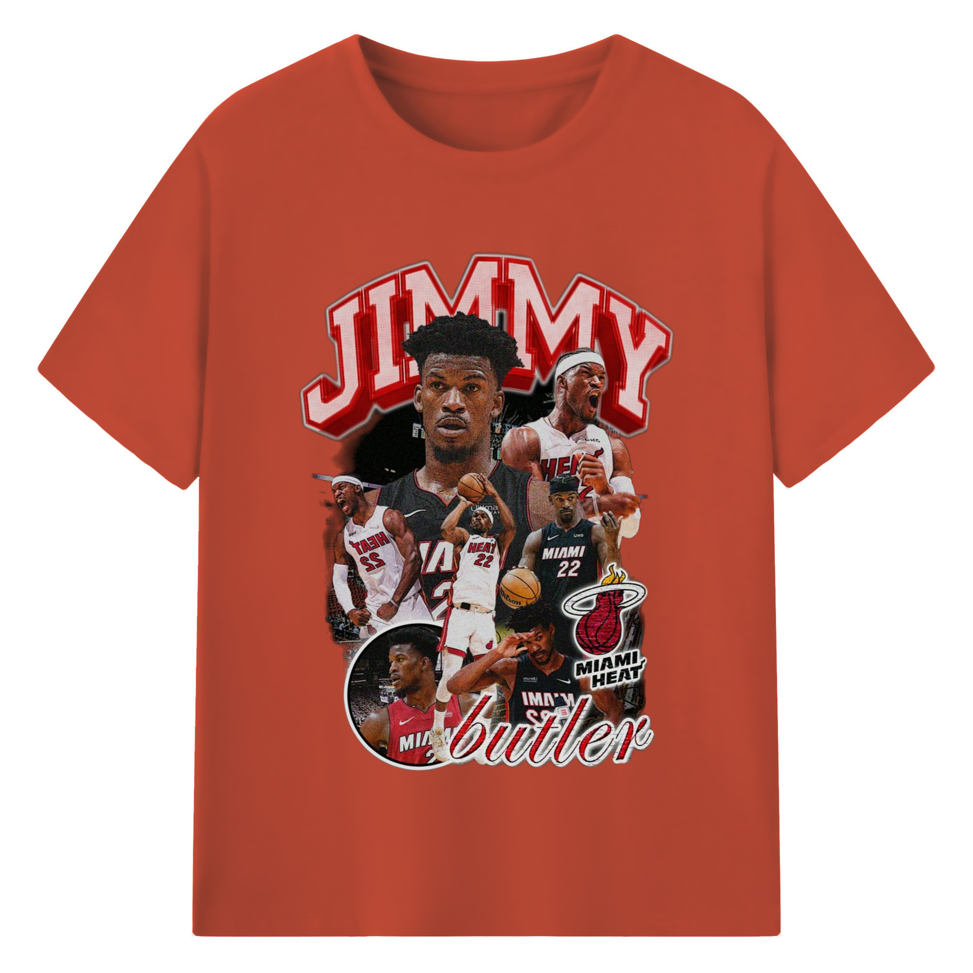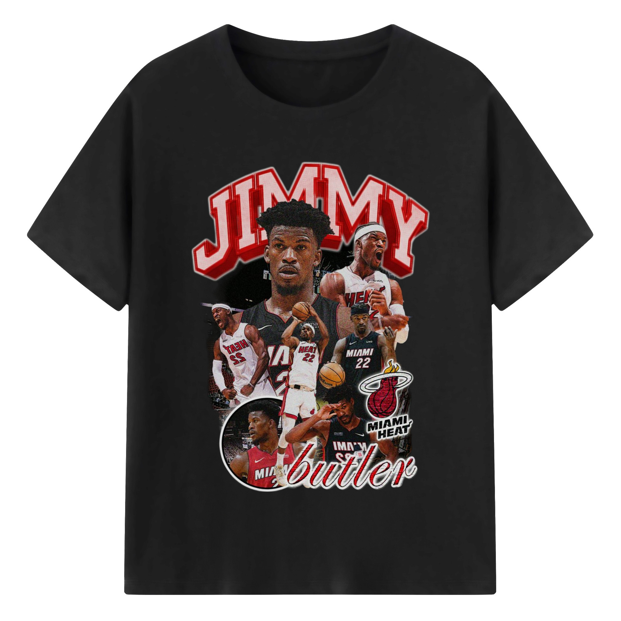 Playoff Jimmy miami heat Retro StyleTee - 180g Cotton T-Shirt With Front Heat Transfer Print – Soft, Lightweight, Fitted Design – Comfortable Casual Wear For Sports & Everyday Use