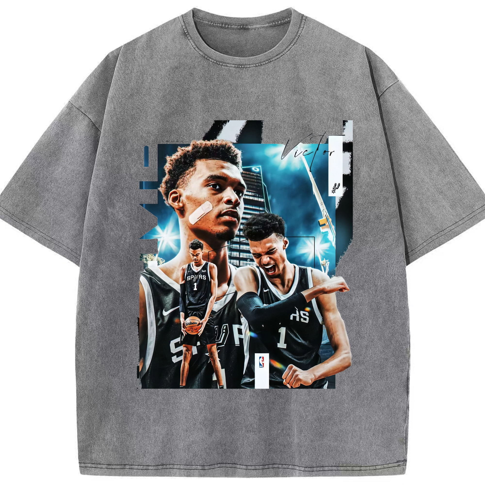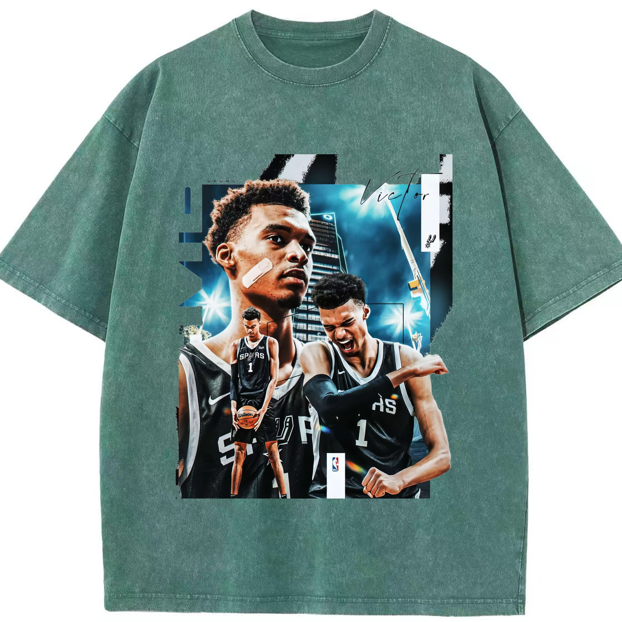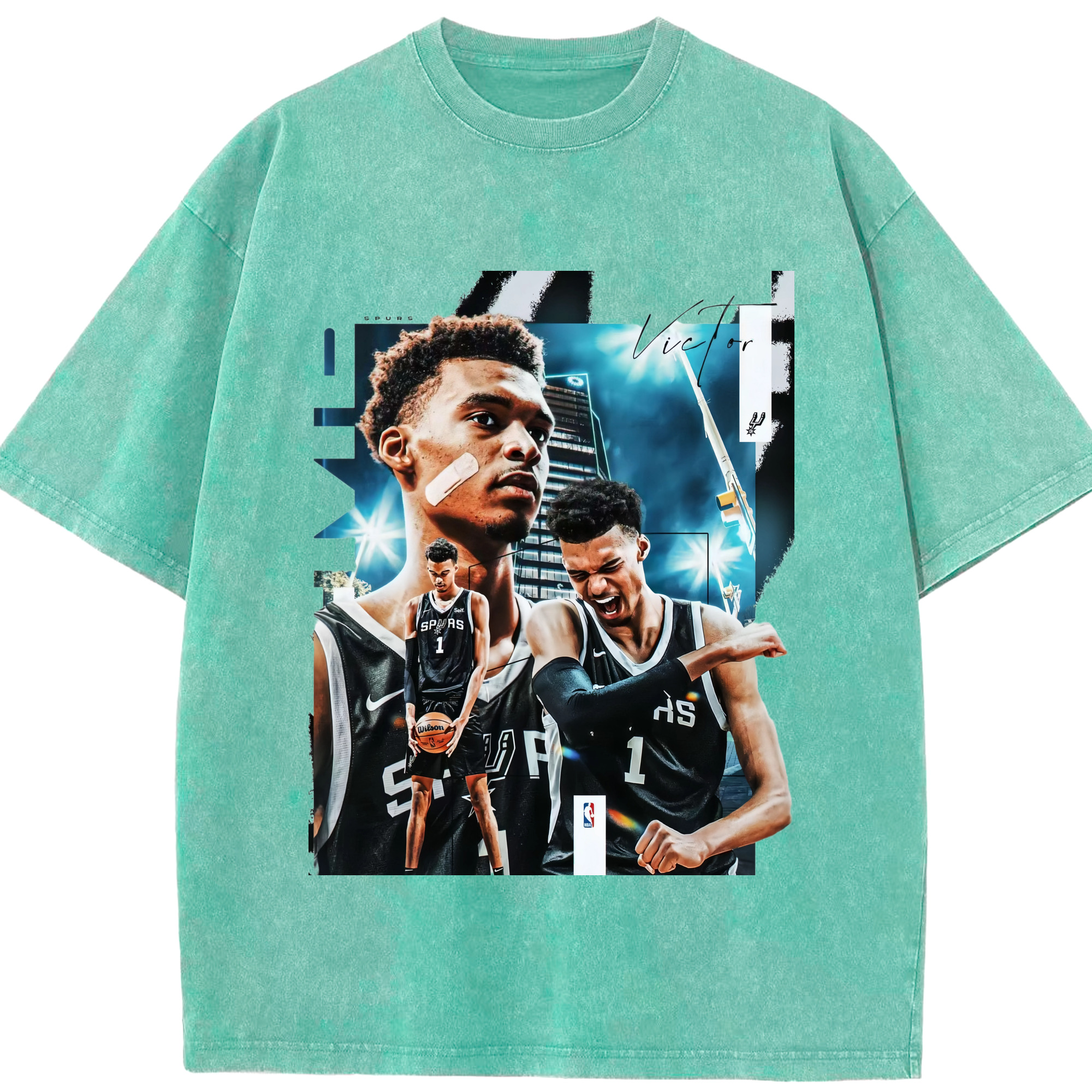 San Antonio Spurs Victor Wembanyama #1 T-shirt - Washed Vintage Look 230g Cotton Oversized T-Shirt With Front Heat Transfer Print – Soft, Lightweight, Stylish Fit – Comfortable Casual Wear For Sports & Everyday Use