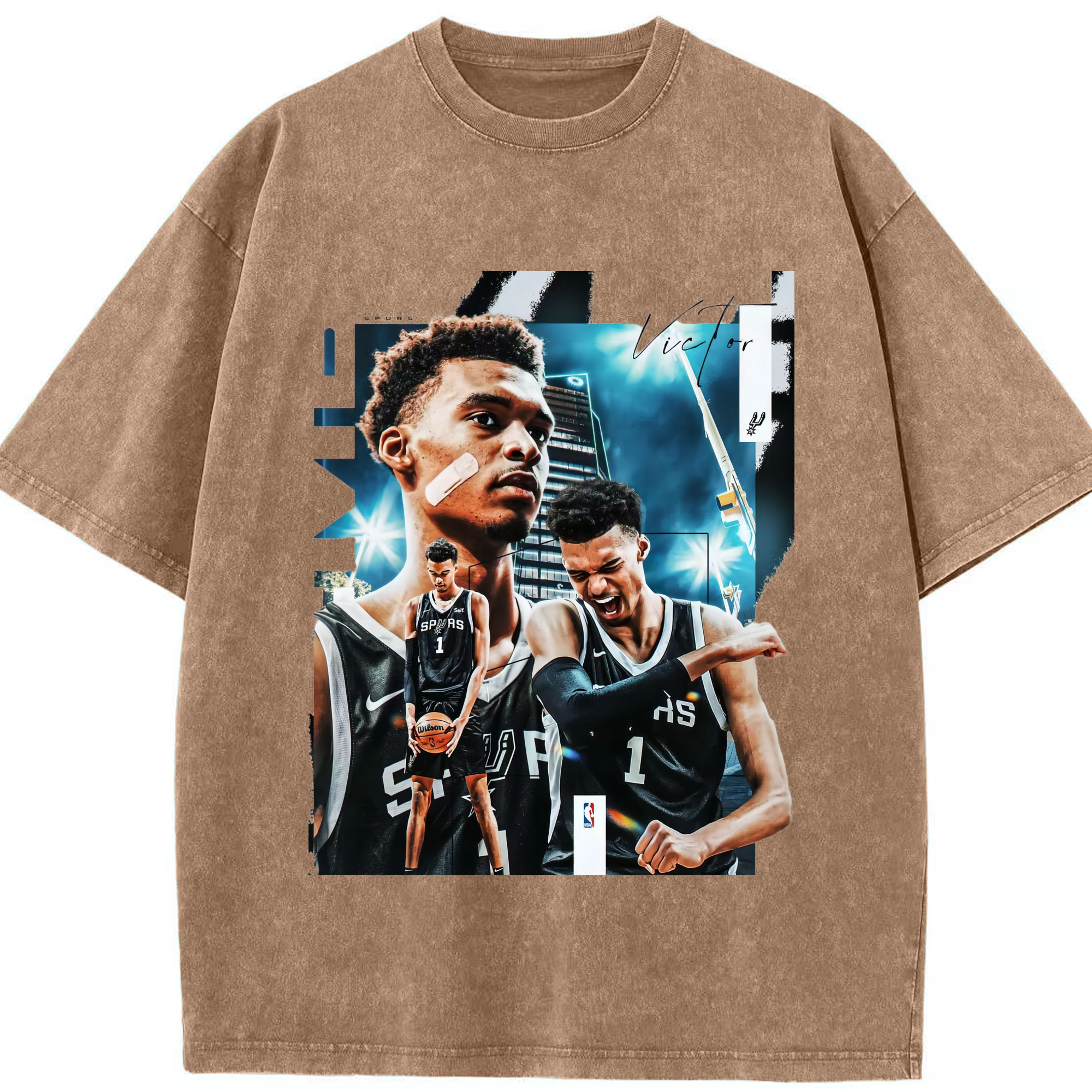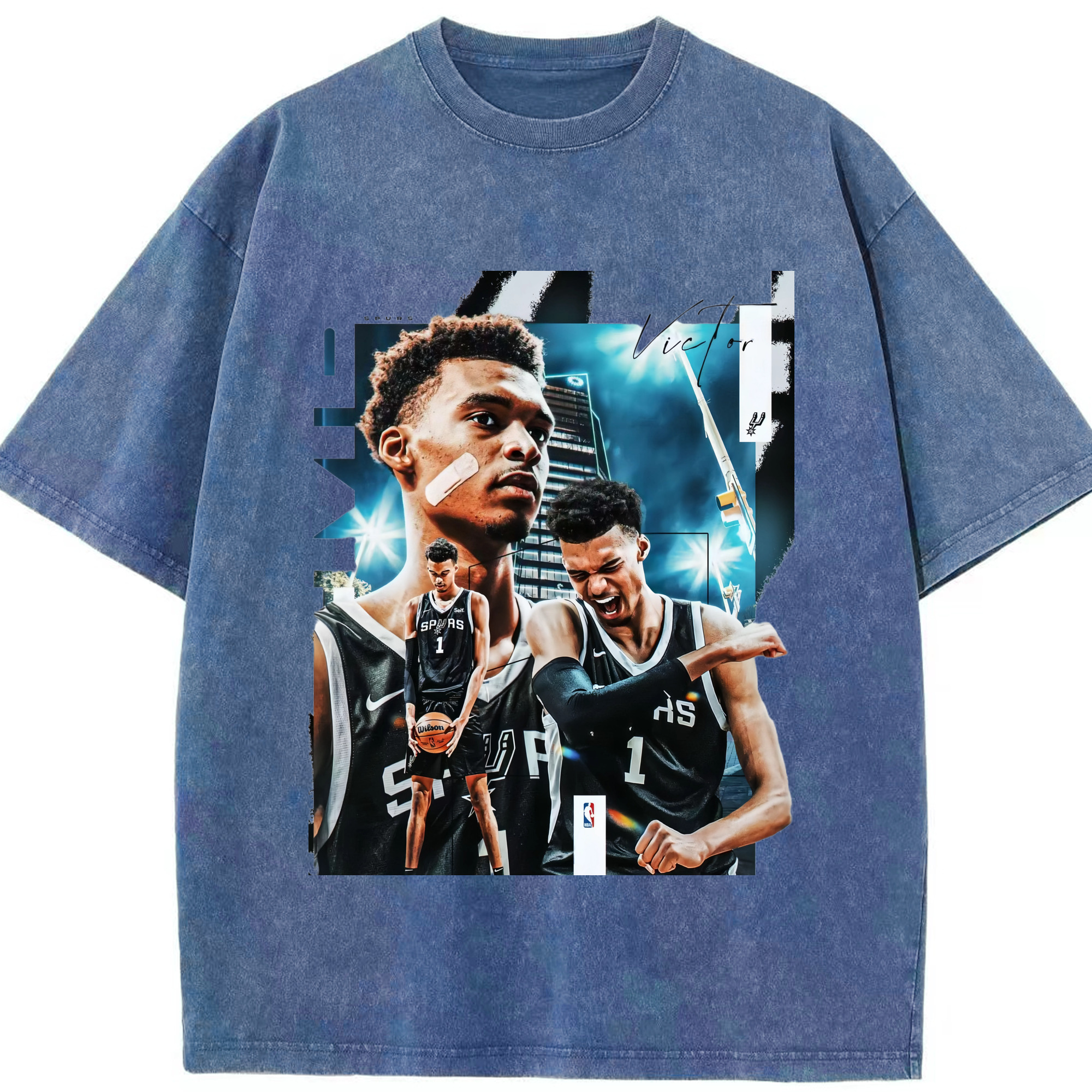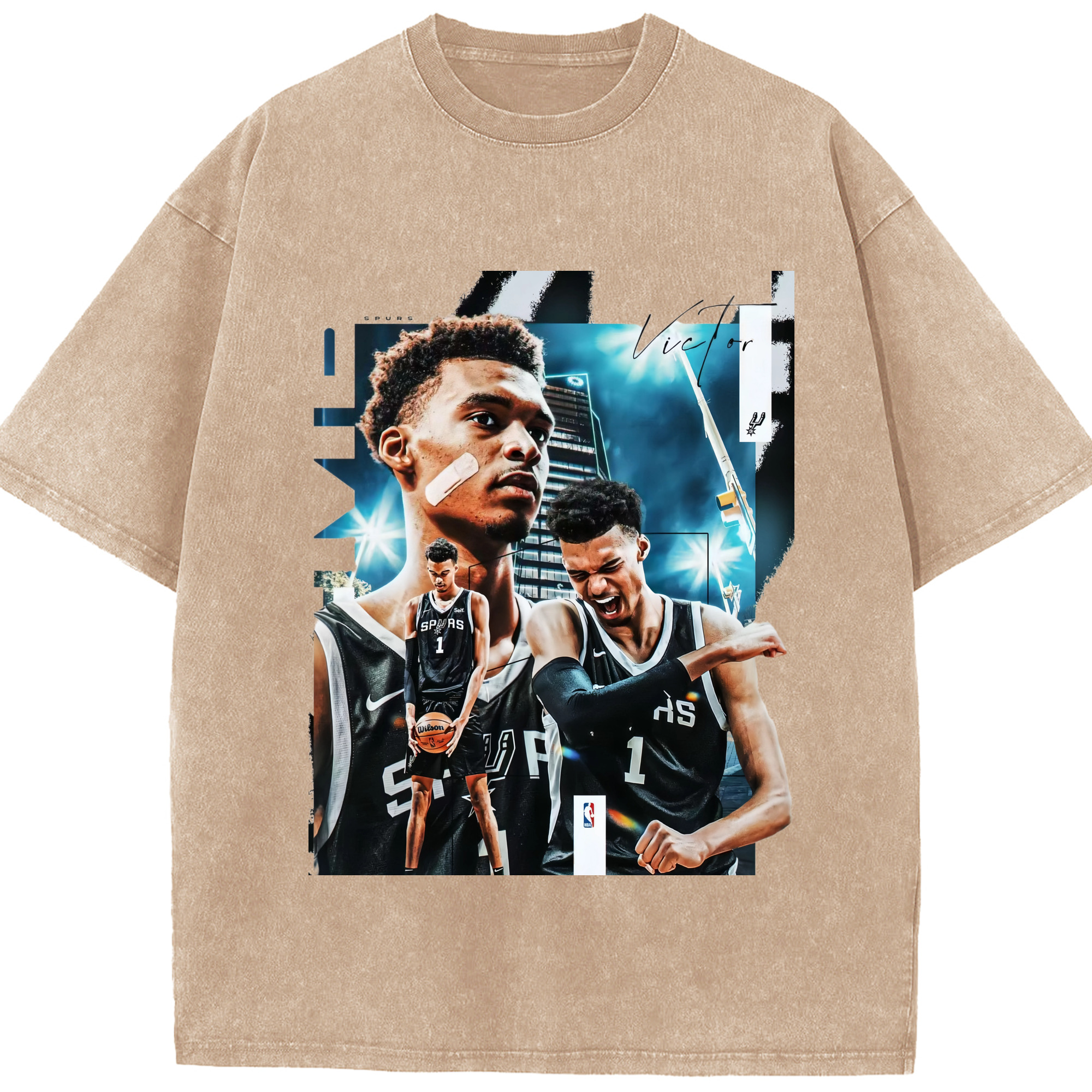 San Antonio Spurs Victor Wembanyama #1 T-shirt - Washed Vintage Look 230g Cotton Oversized T-Shirt With Front Heat Transfer Print – Soft, Lightweight, Stylish Fit – Comfortable Casual Wear For Sports & Everyday Use