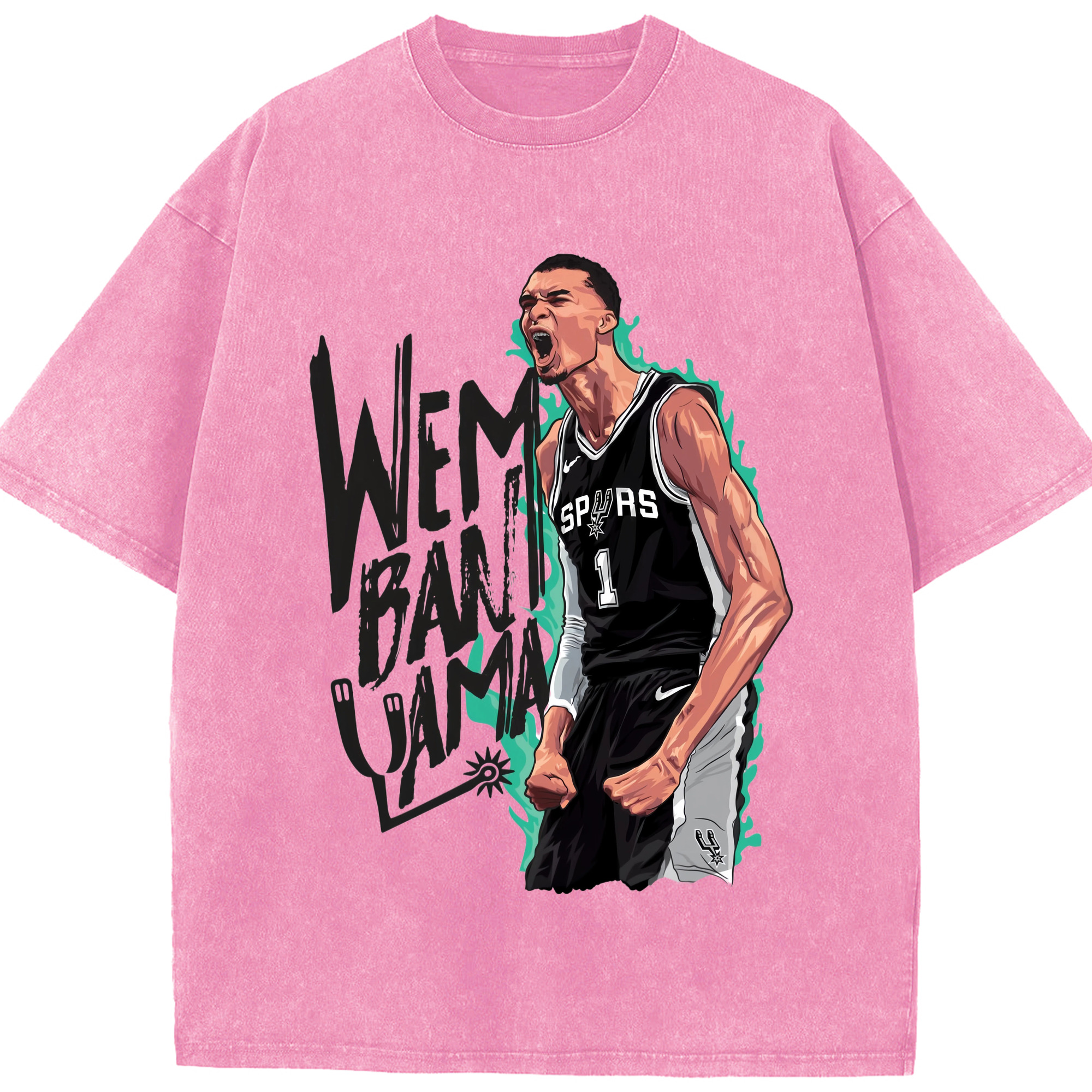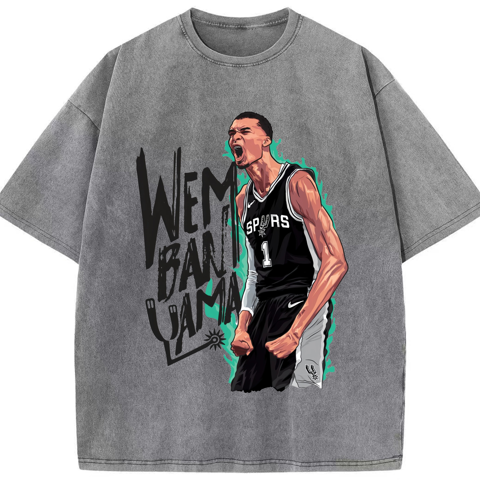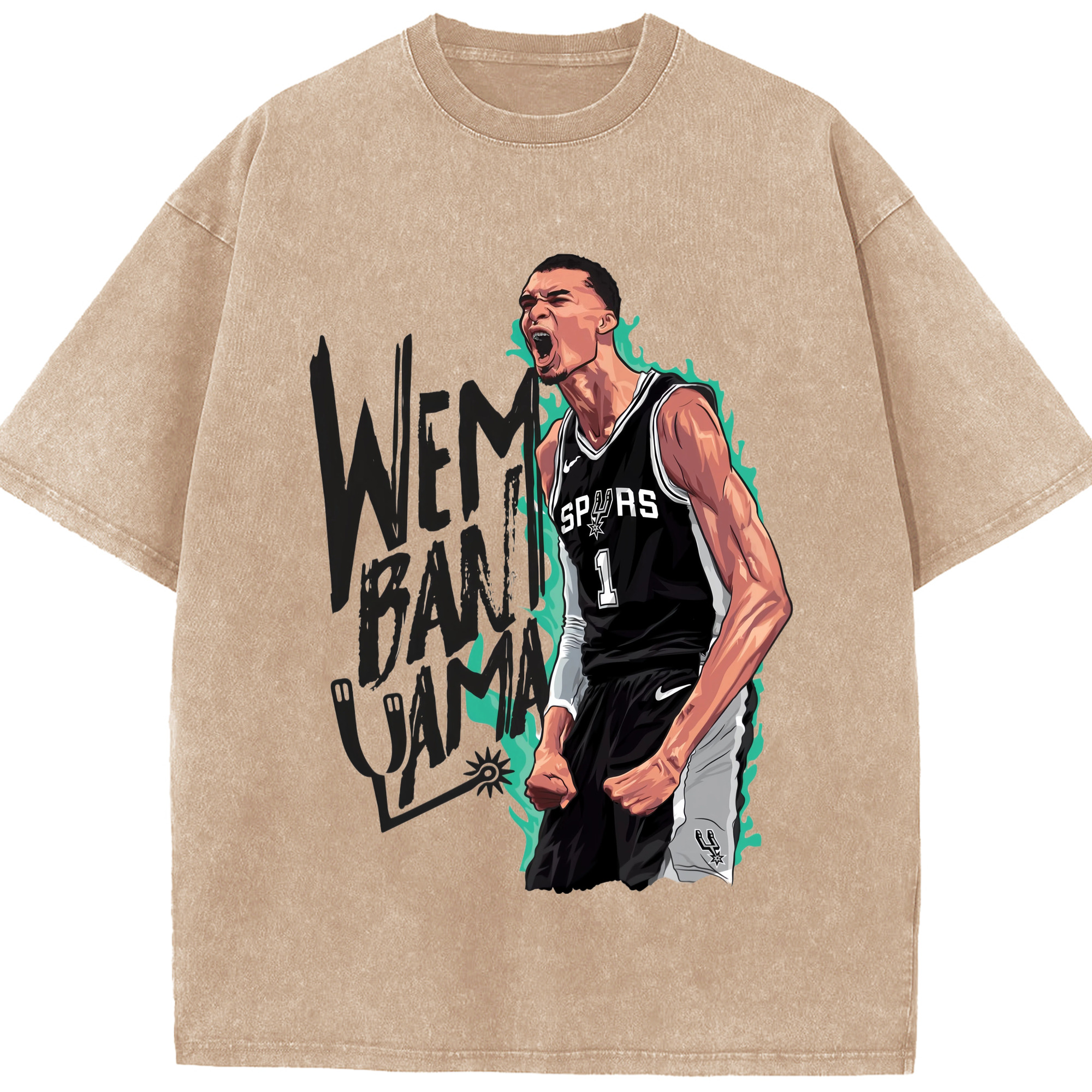 San Antonio Spurs Victor Wembanyama Roar Cartoon Tee - Washed Vintage Look 230g Cotton Oversized T-Shirt With Front Heat Transfer Print – Soft, Lightweight, Stylish Fit – Comfortable Casual Wear For Sports & Everyday Use