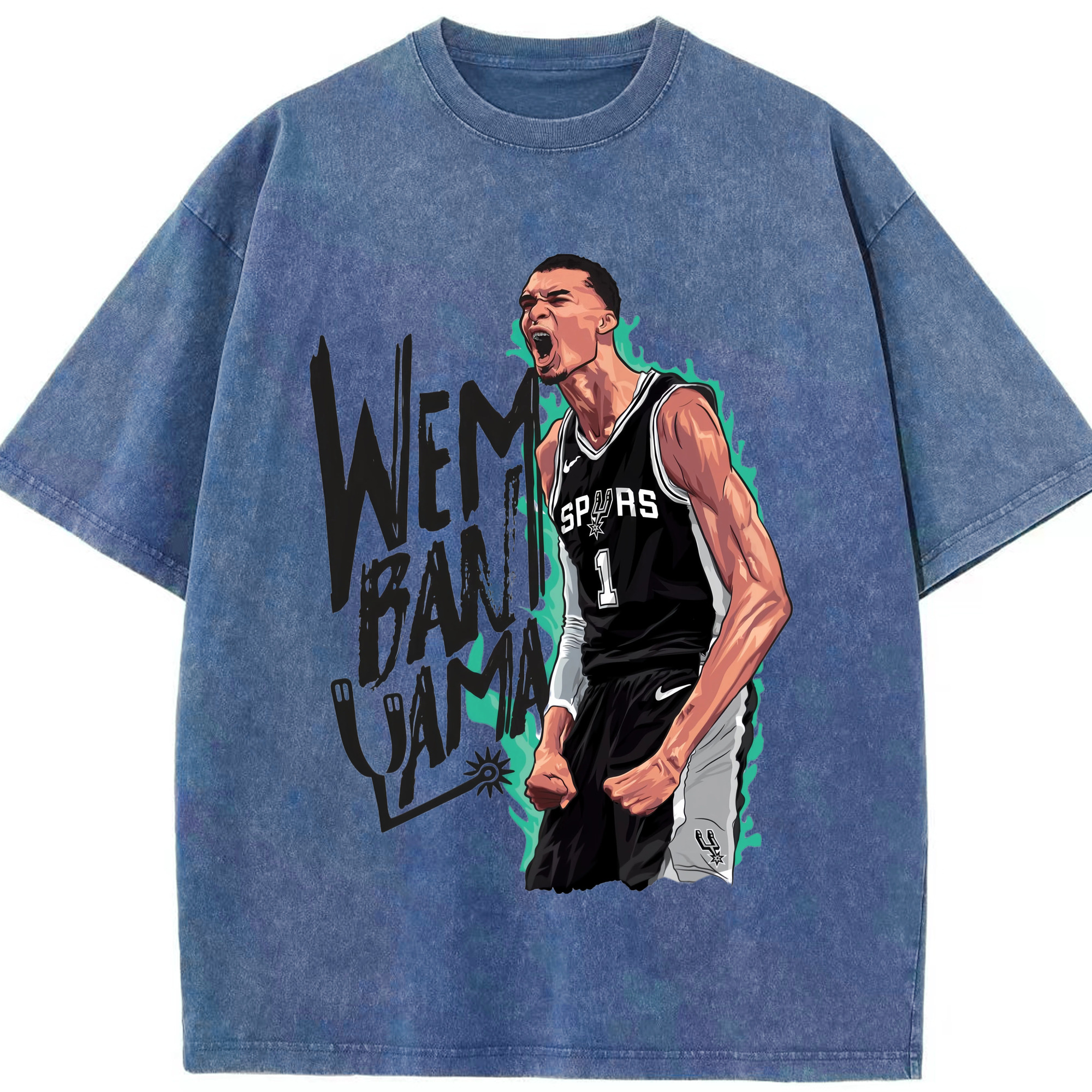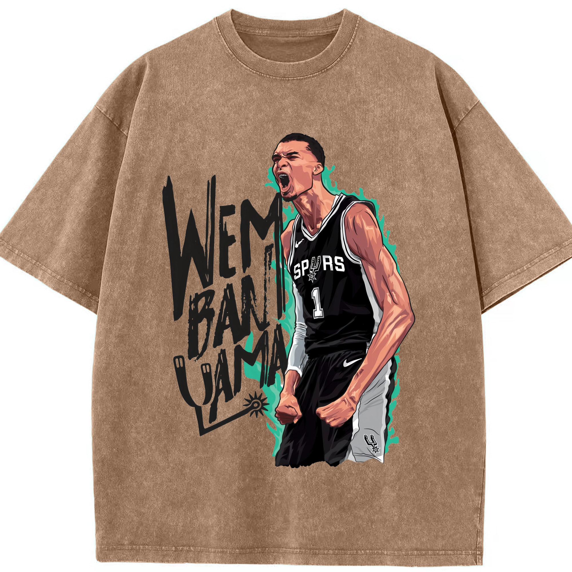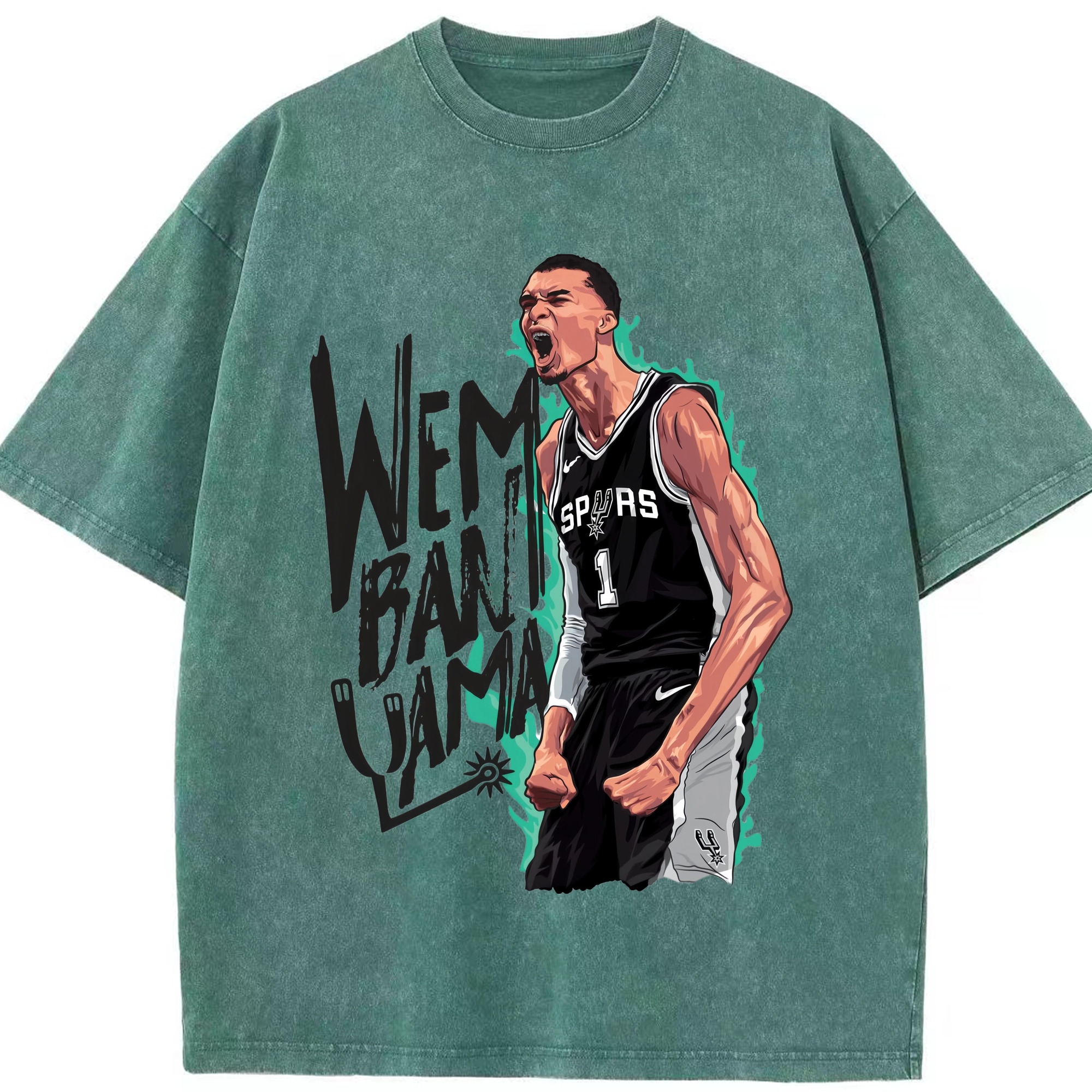 San Antonio Spurs Victor Wembanyama Roar Cartoon Tee - Washed Vintage Look 230g Cotton Oversized T-Shirt With Front Heat Transfer Print – Soft, Lightweight, Stylish Fit – Comfortable Casual Wear For Sports & Everyday Use