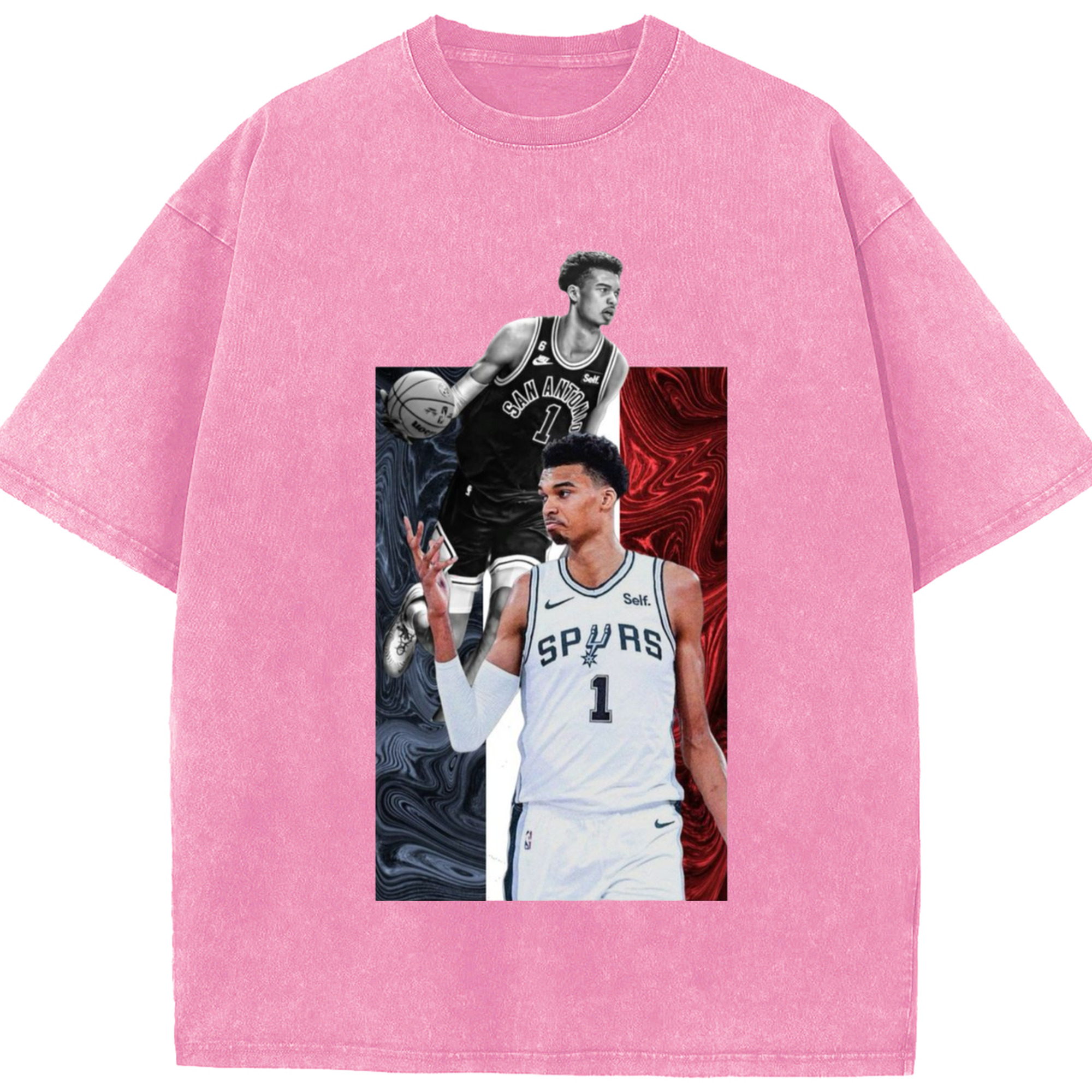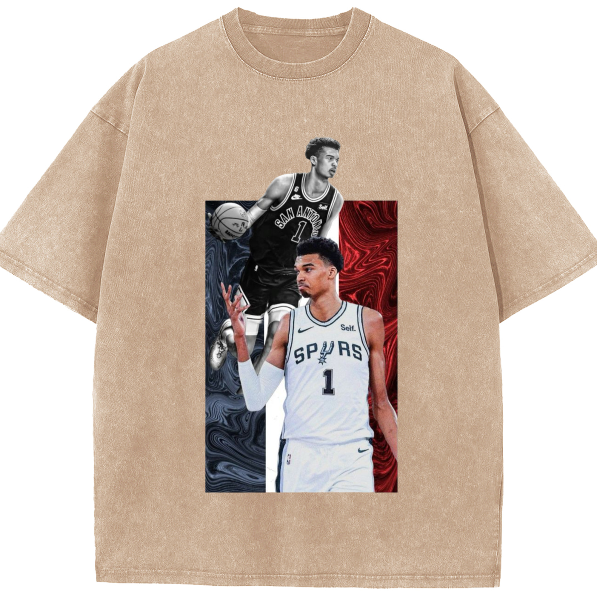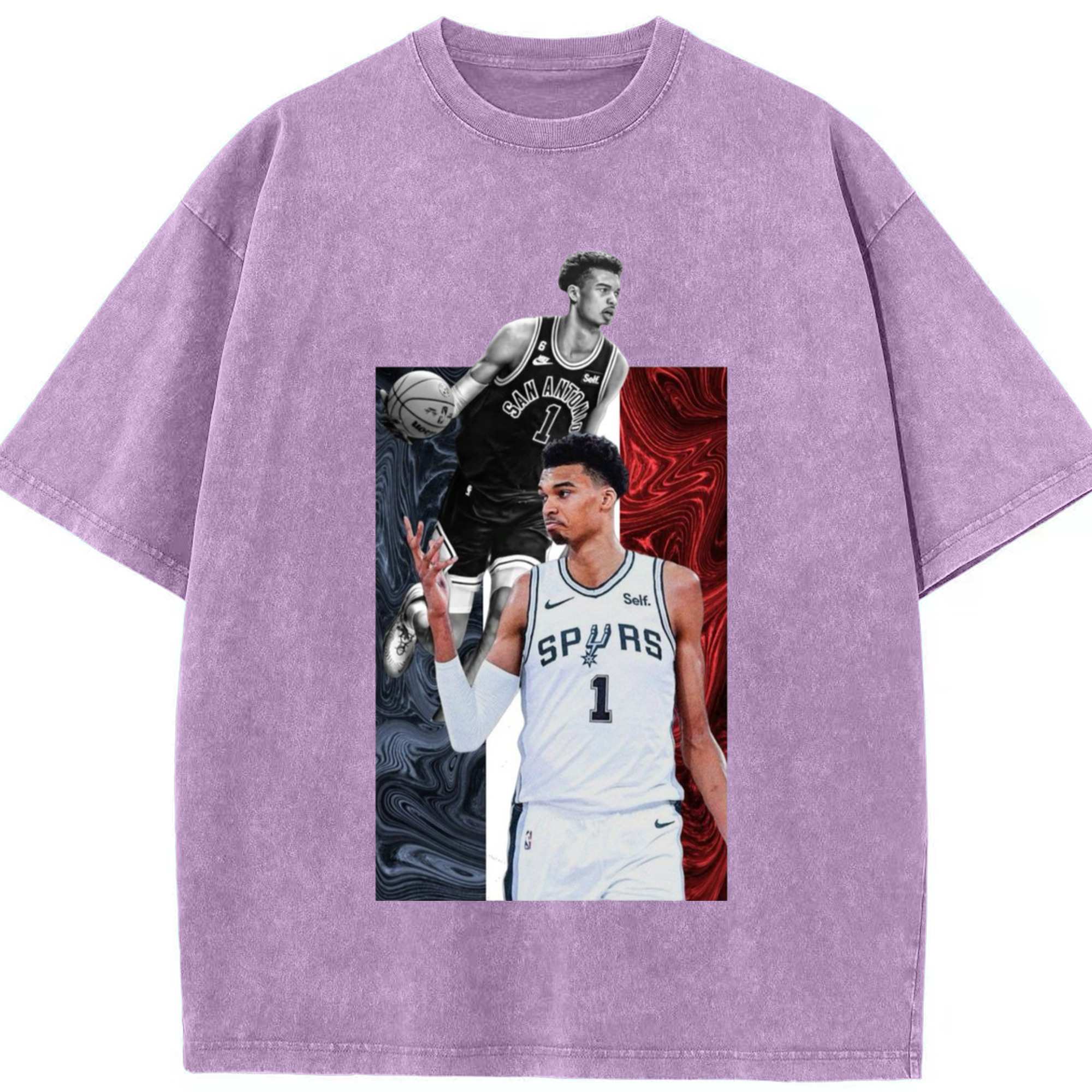 San Antonio Spurs Victor Wembanyama Tee - Washed Vintage Look 230g Cotton Oversized T-Shirt With Front Heat Transfer Print – Soft, Lightweight, Stylish Fit – Comfortable Casual Wear For Sports & Everyday Use