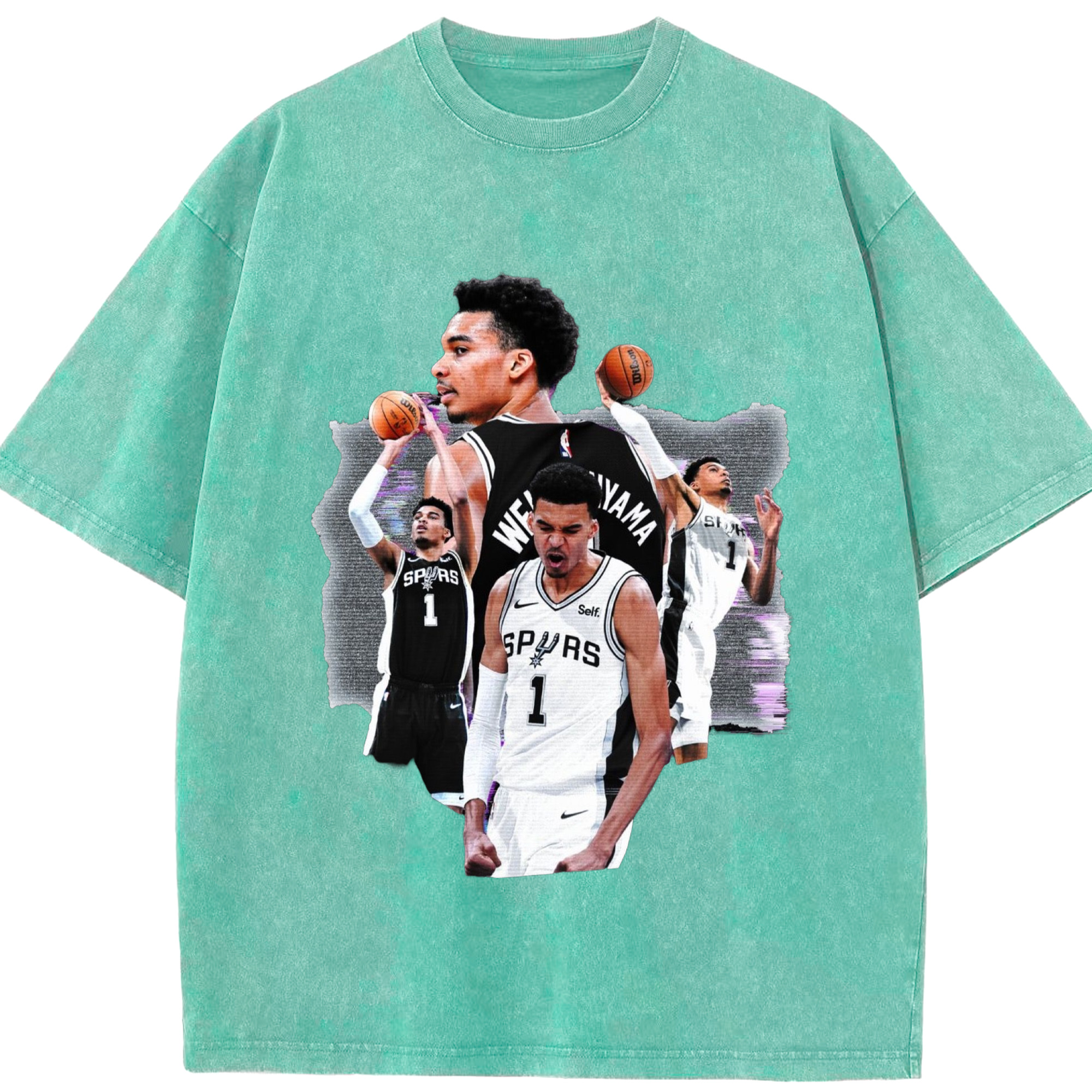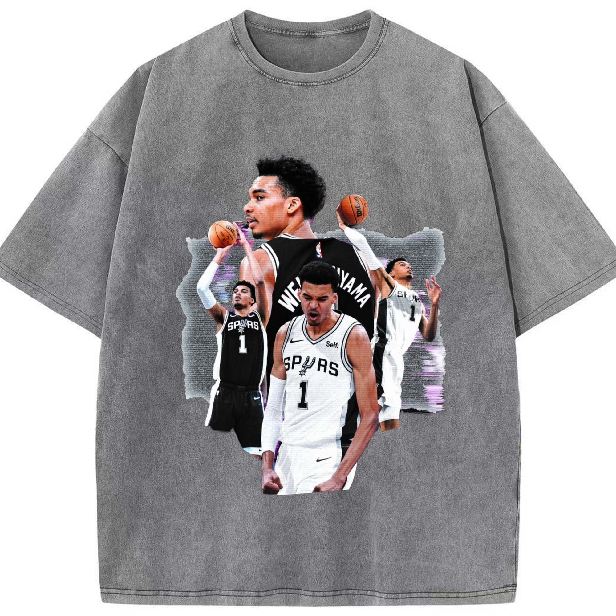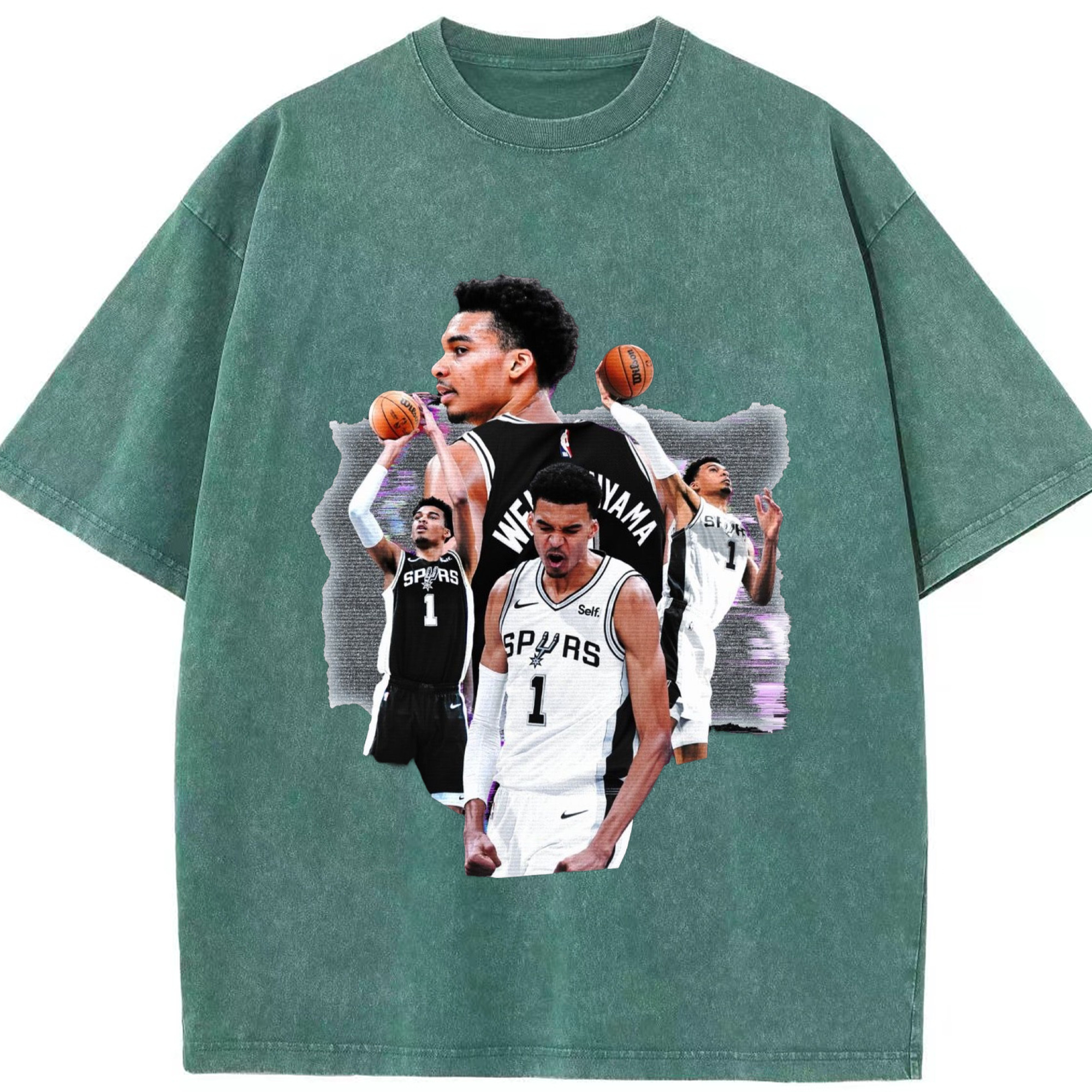 San Antonio Spurs Victor Wembanyama T-shirt - Washed Vintage Look 230g Cotton Oversized T-Shirt With Front Heat Transfer Print – Soft, Lightweight, Stylish Fit – Comfortable Casual Wear For Sports & Everyday Use