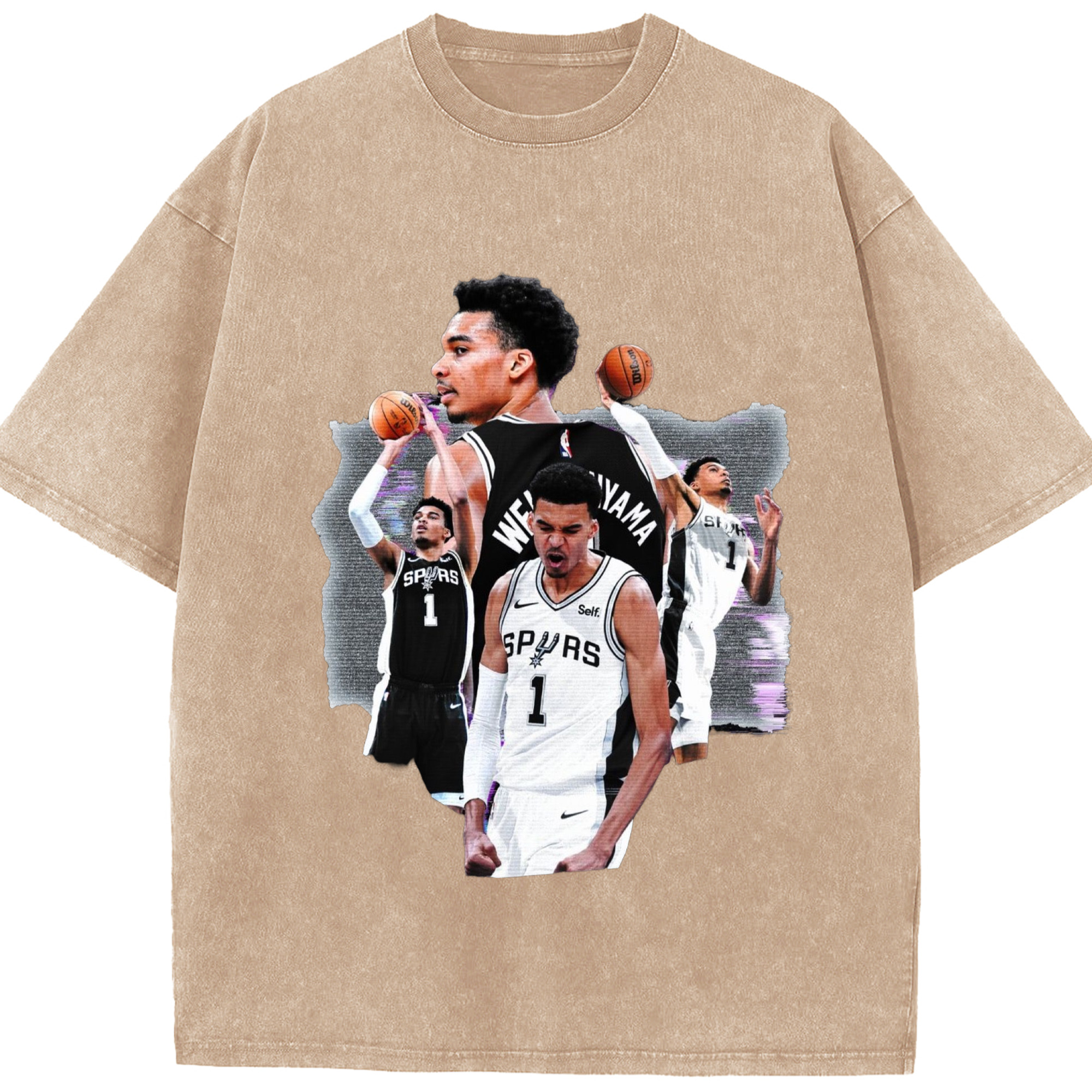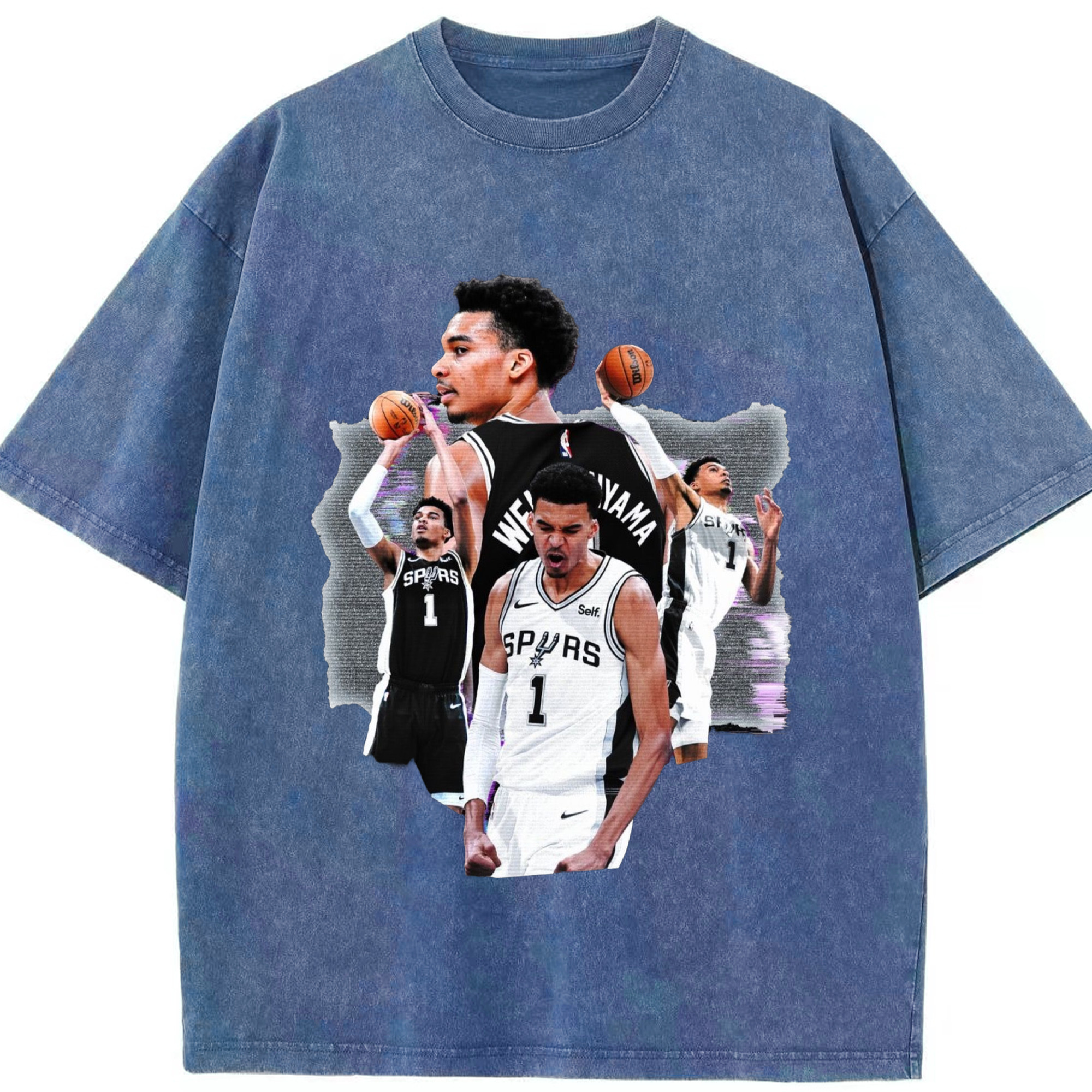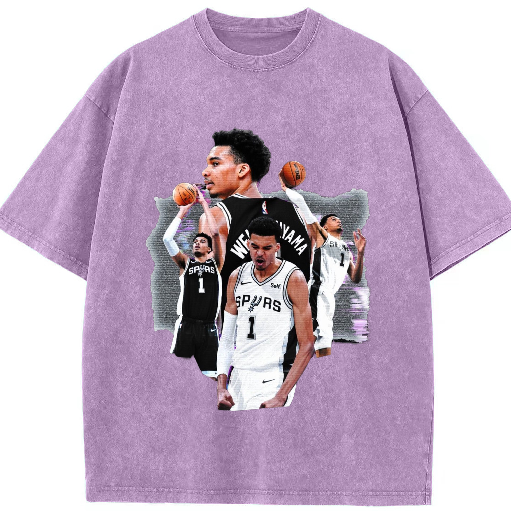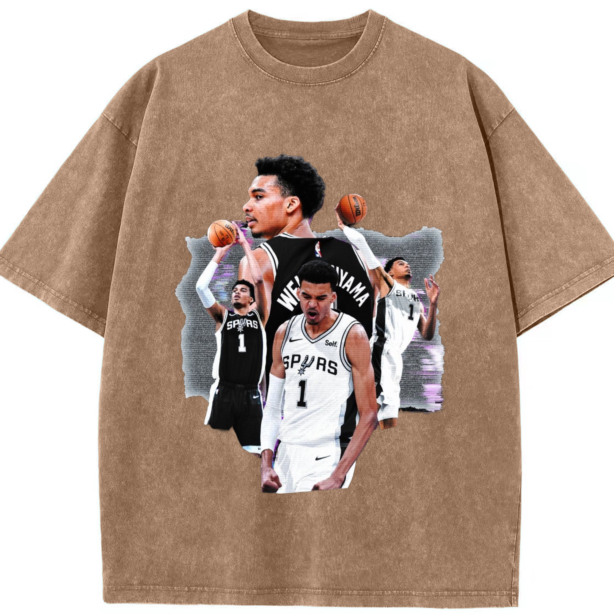 San Antonio Spurs Victor Wembanyama T-shirt - Washed Vintage Look 230g Cotton Oversized T-Shirt With Front Heat Transfer Print – Soft, Lightweight, Stylish Fit – Comfortable Casual Wear For Sports & Everyday Use