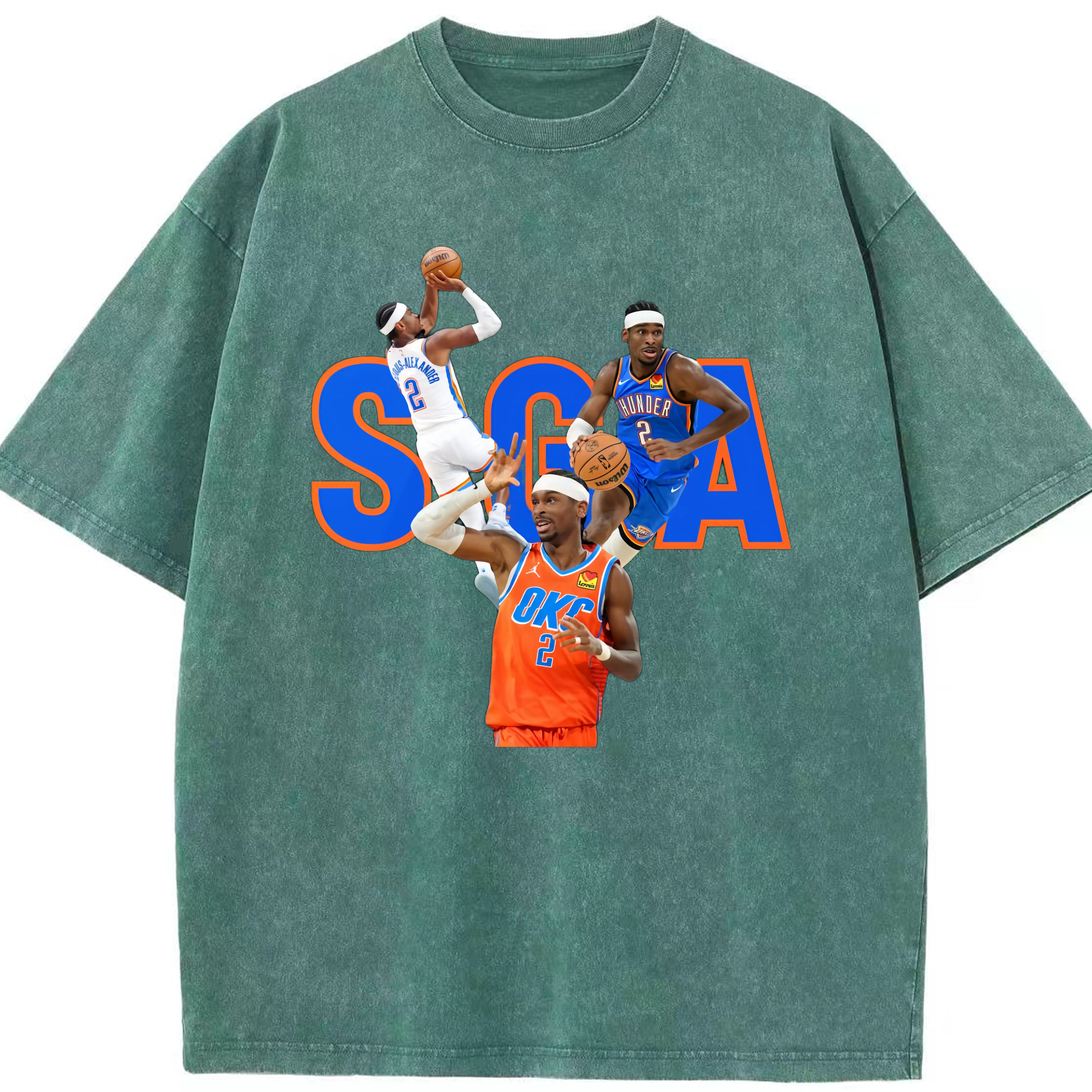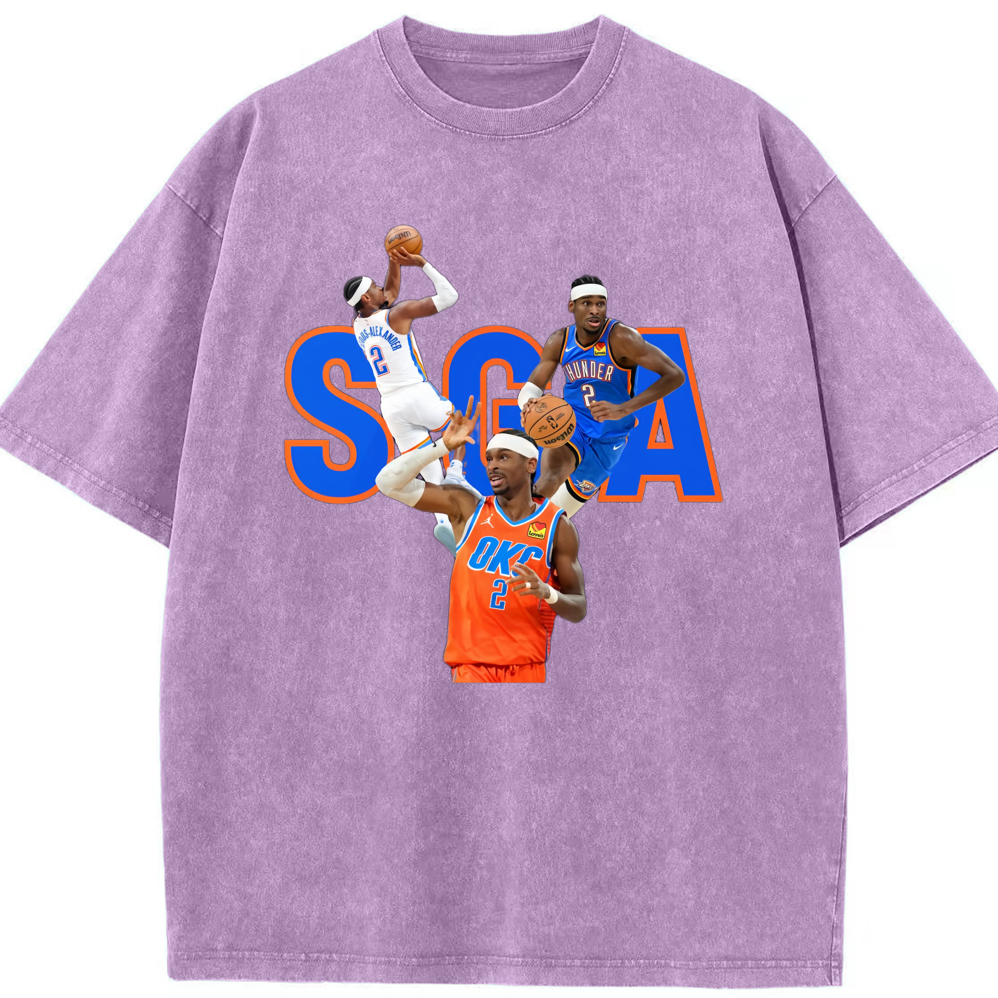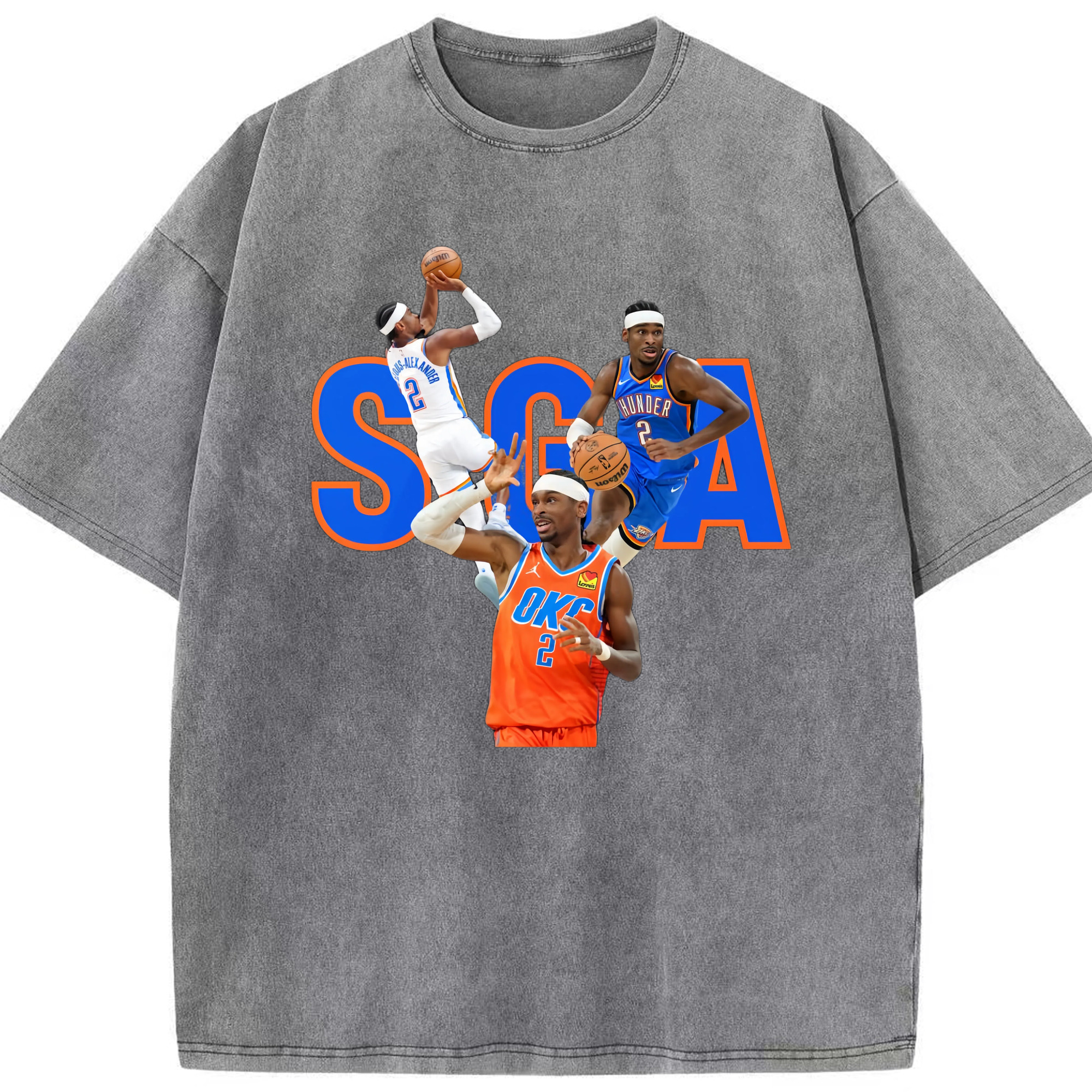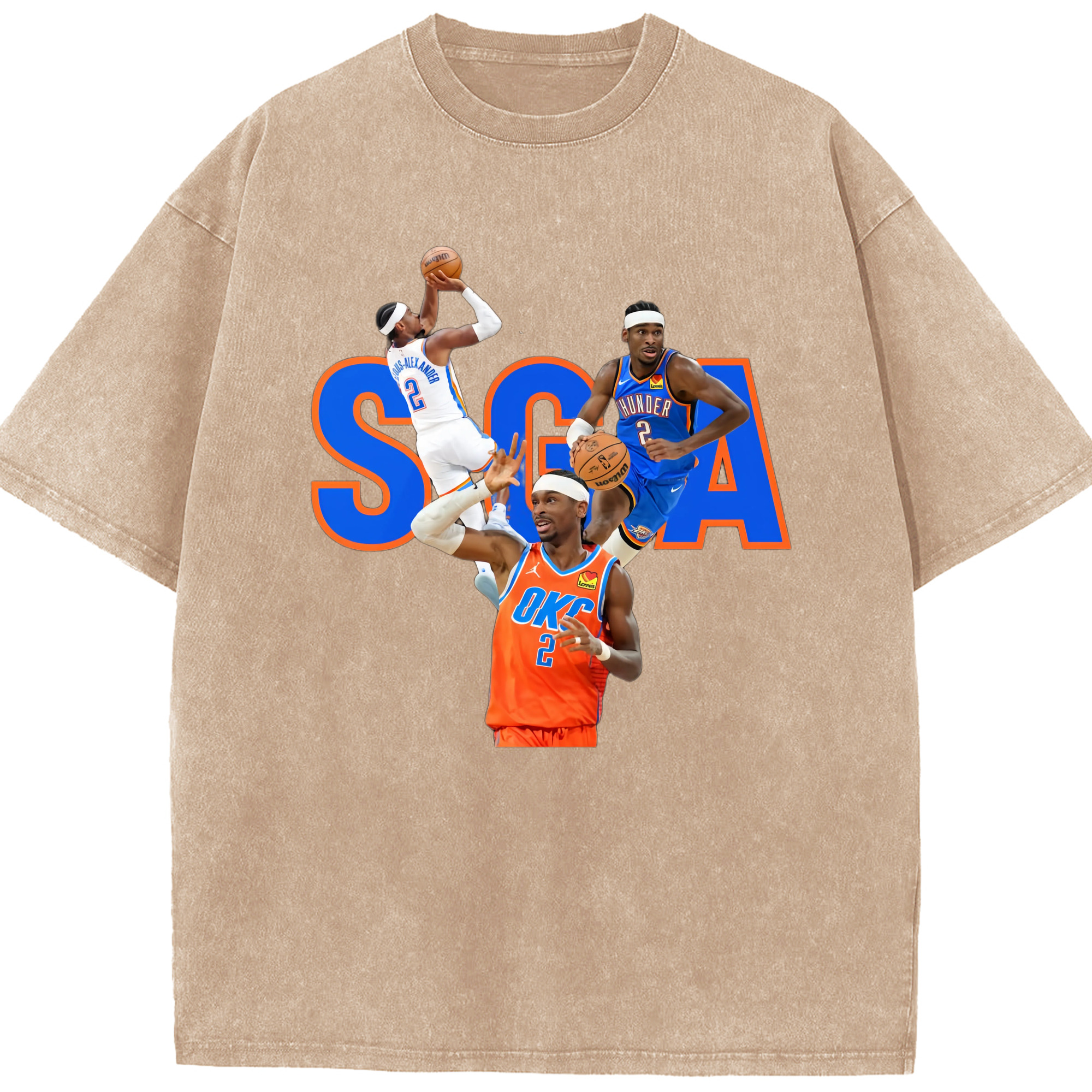 SGA MVP collage Graphic Tee - Washed Vintage Look 230g Cotton Oversized T-Shirt With Front Heat Transfer Print – Soft, Lightweight, Stylish Fit – Comfortable Casual Wear For Sports & Everyday Use