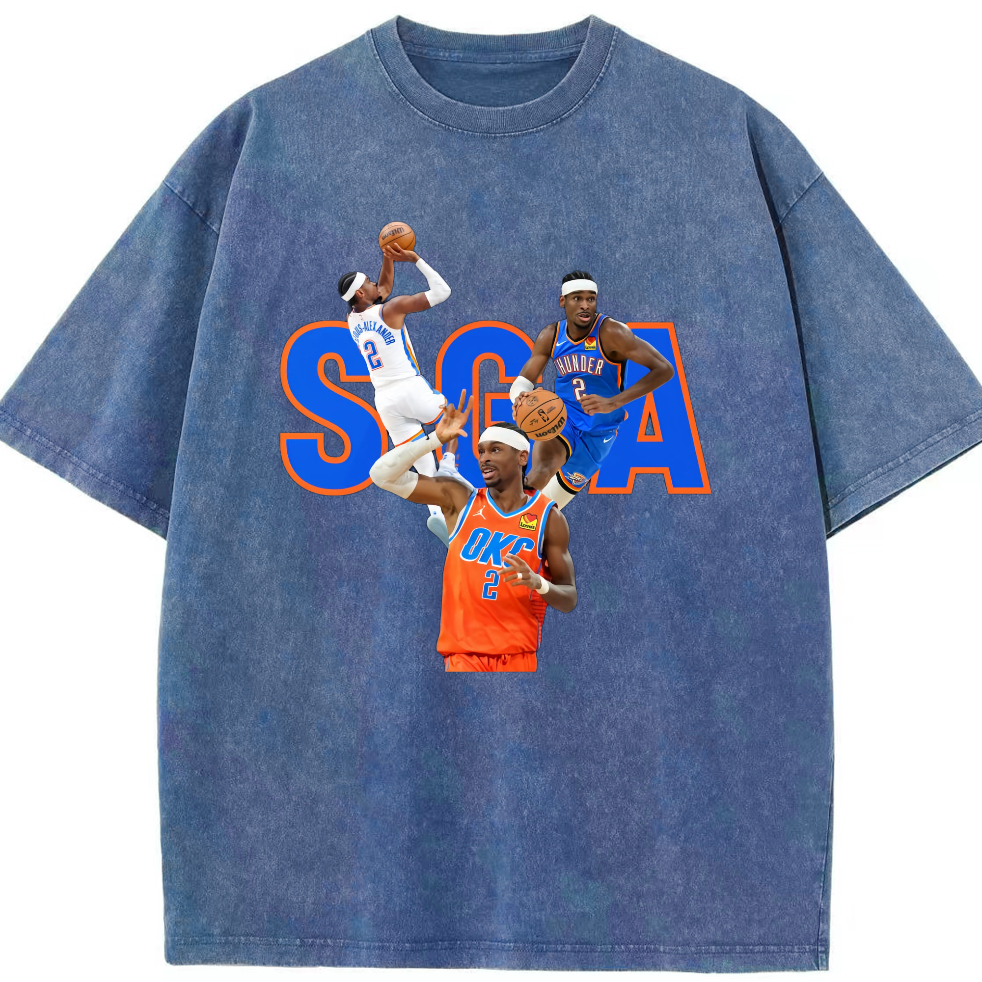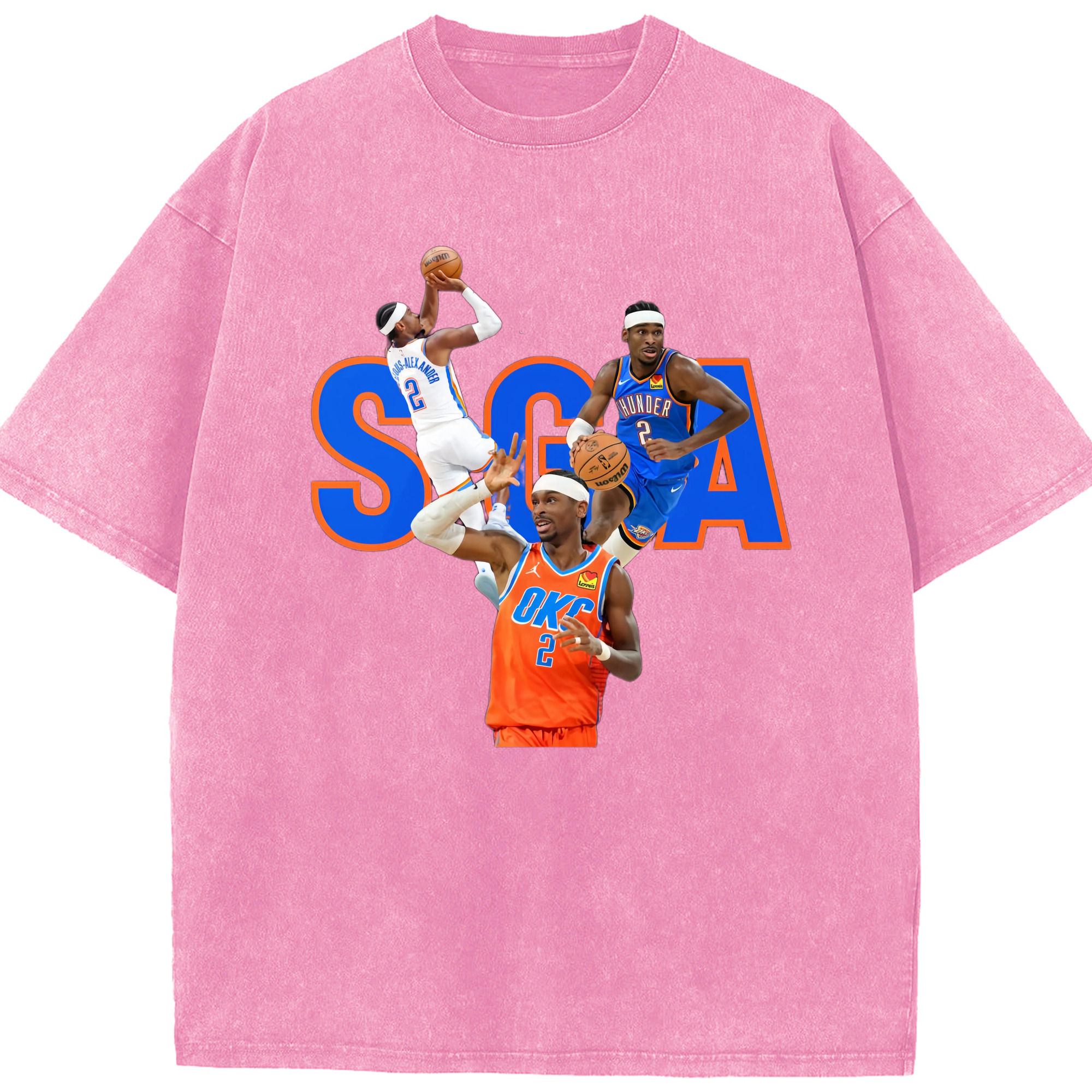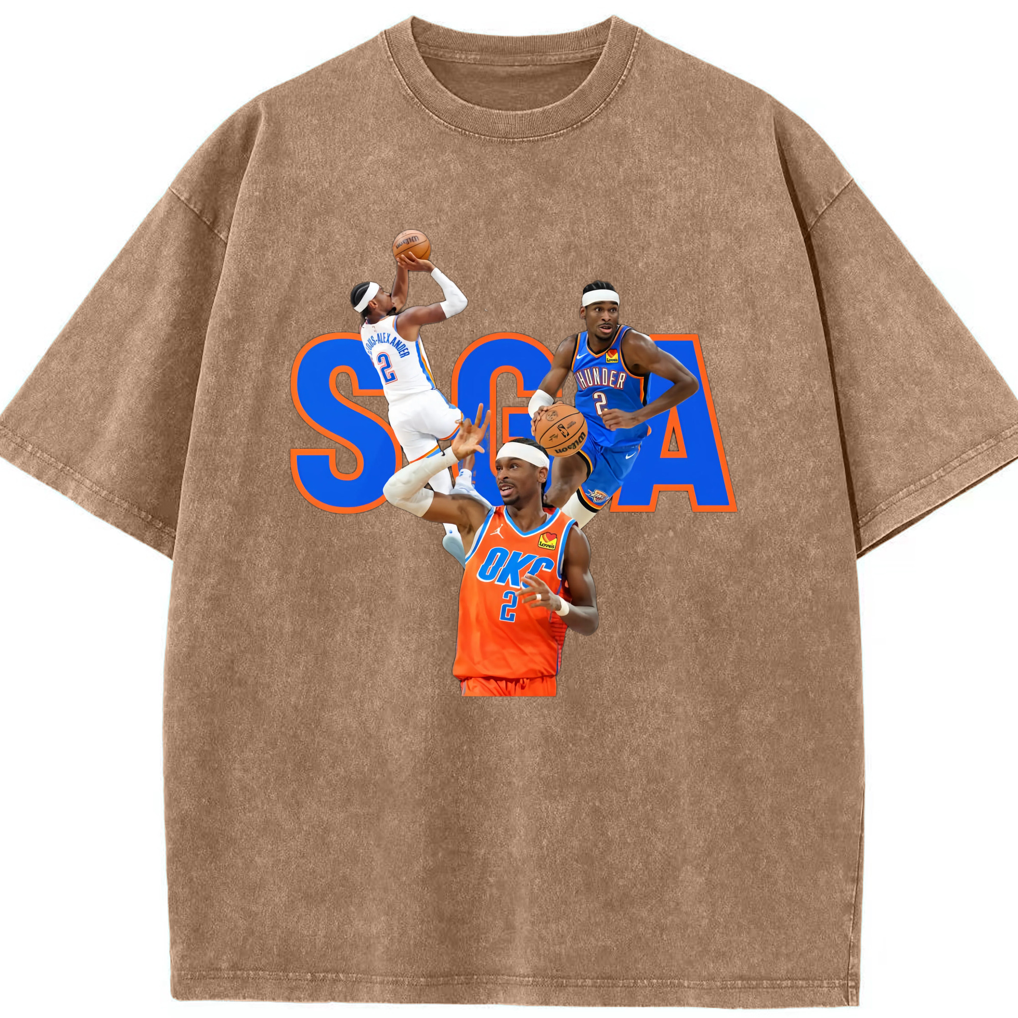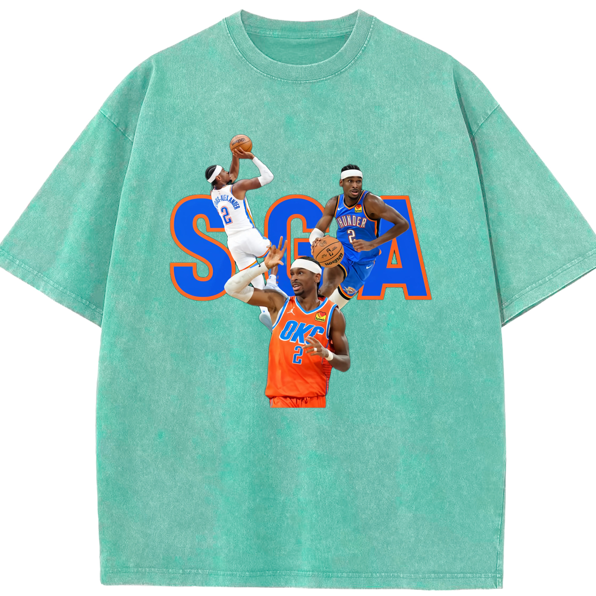 SGA MVP collage Graphic Tee - Washed Vintage Look 230g Cotton Oversized T-Shirt With Front Heat Transfer Print – Soft, Lightweight, Stylish Fit – Comfortable Casual Wear For Sports & Everyday Use
