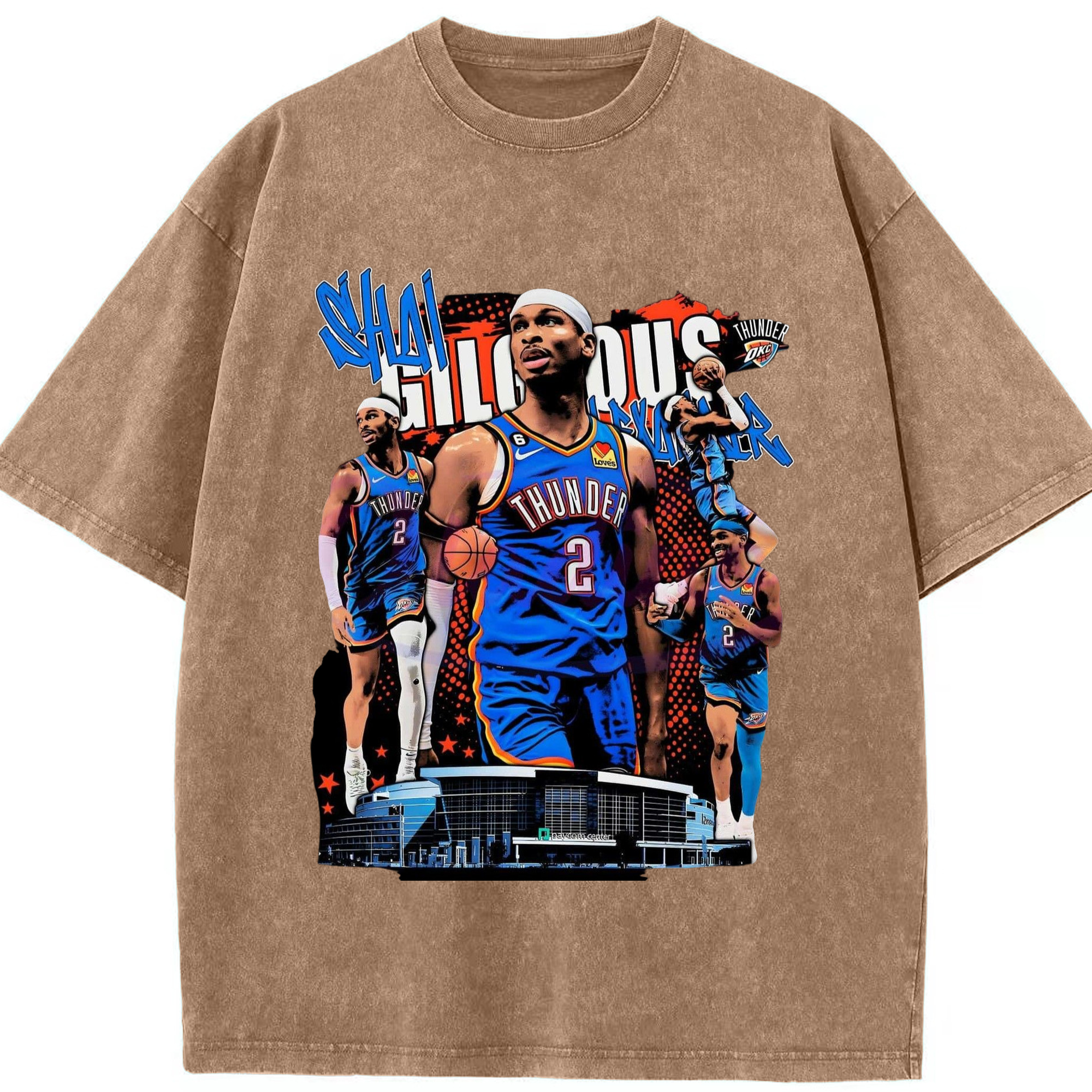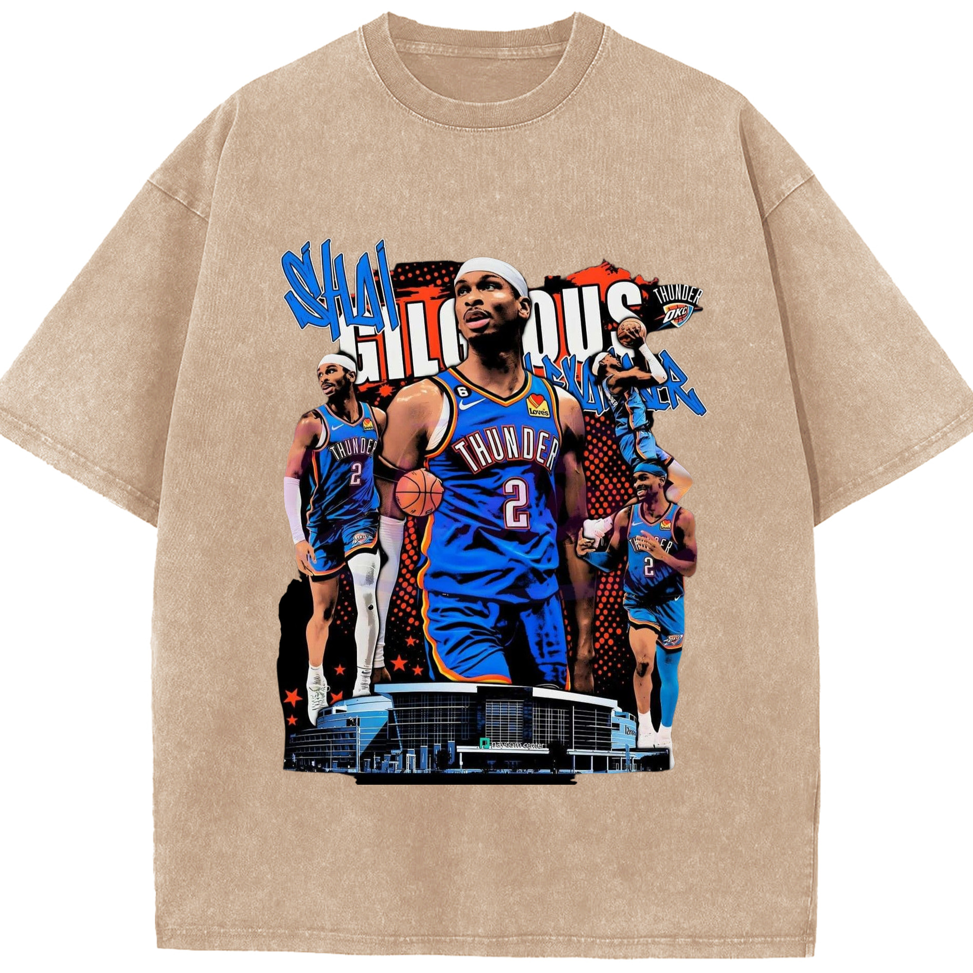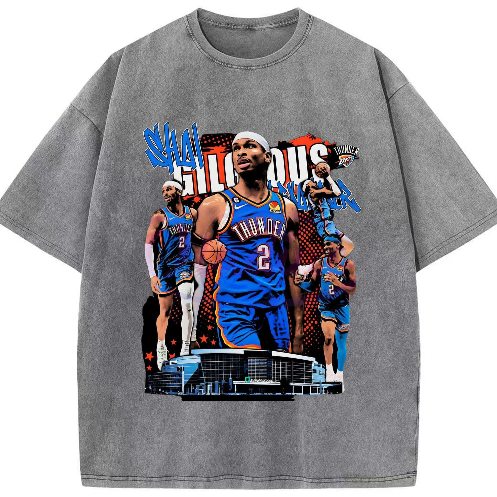 SGA OKC#2 collage Graphic T-shirt - Washed Vintage Look 230g Cotton Oversized T-Shirt With Front Heat Transfer Print – Soft, Lightweight, Stylish Fit – Comfortable Casual Wear For Sports & Everyday Use
