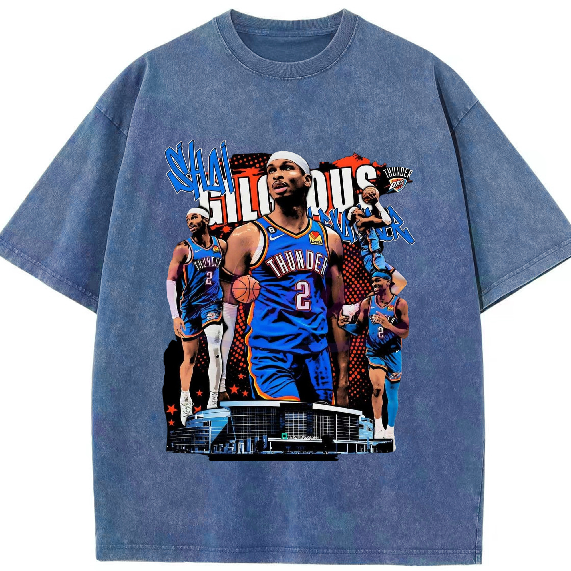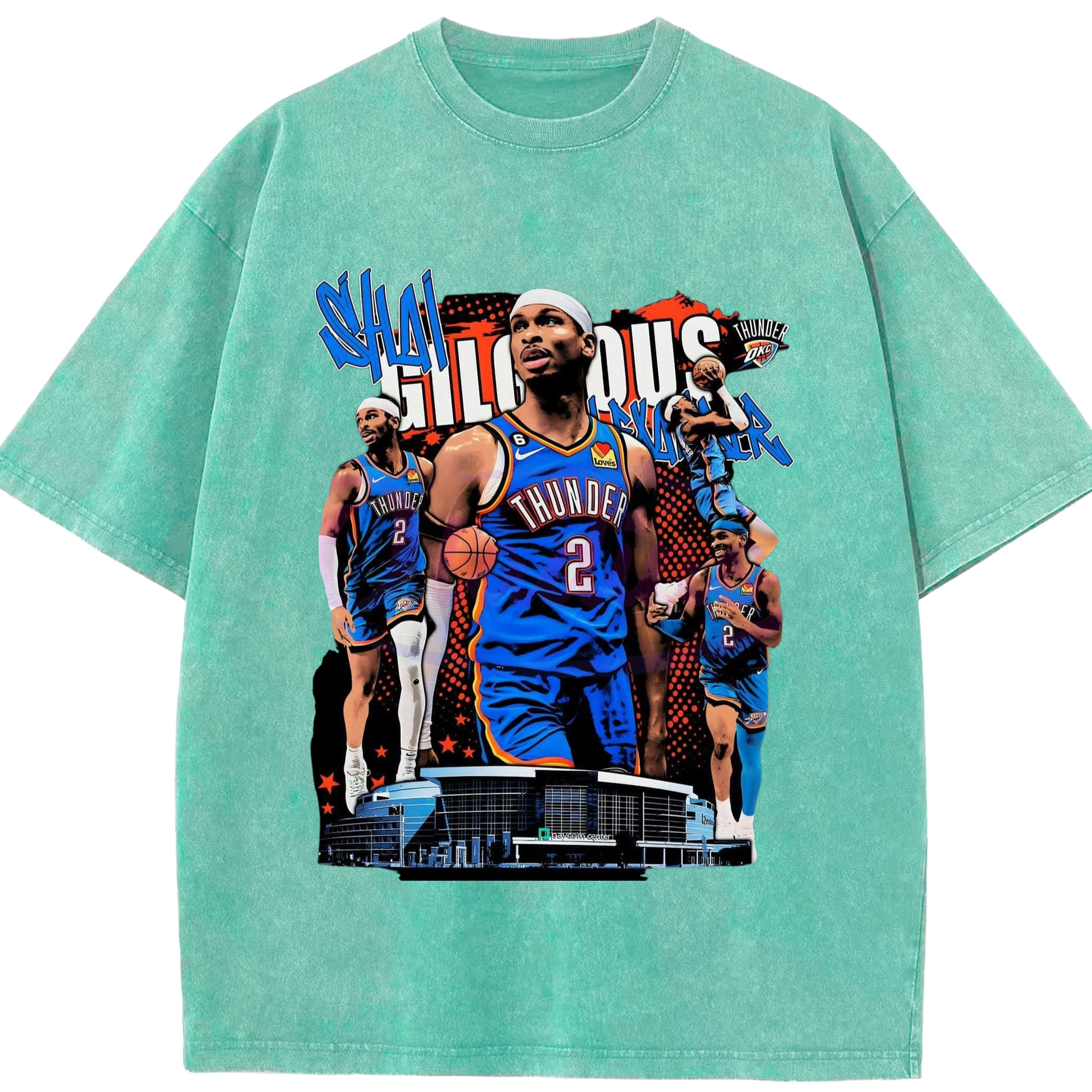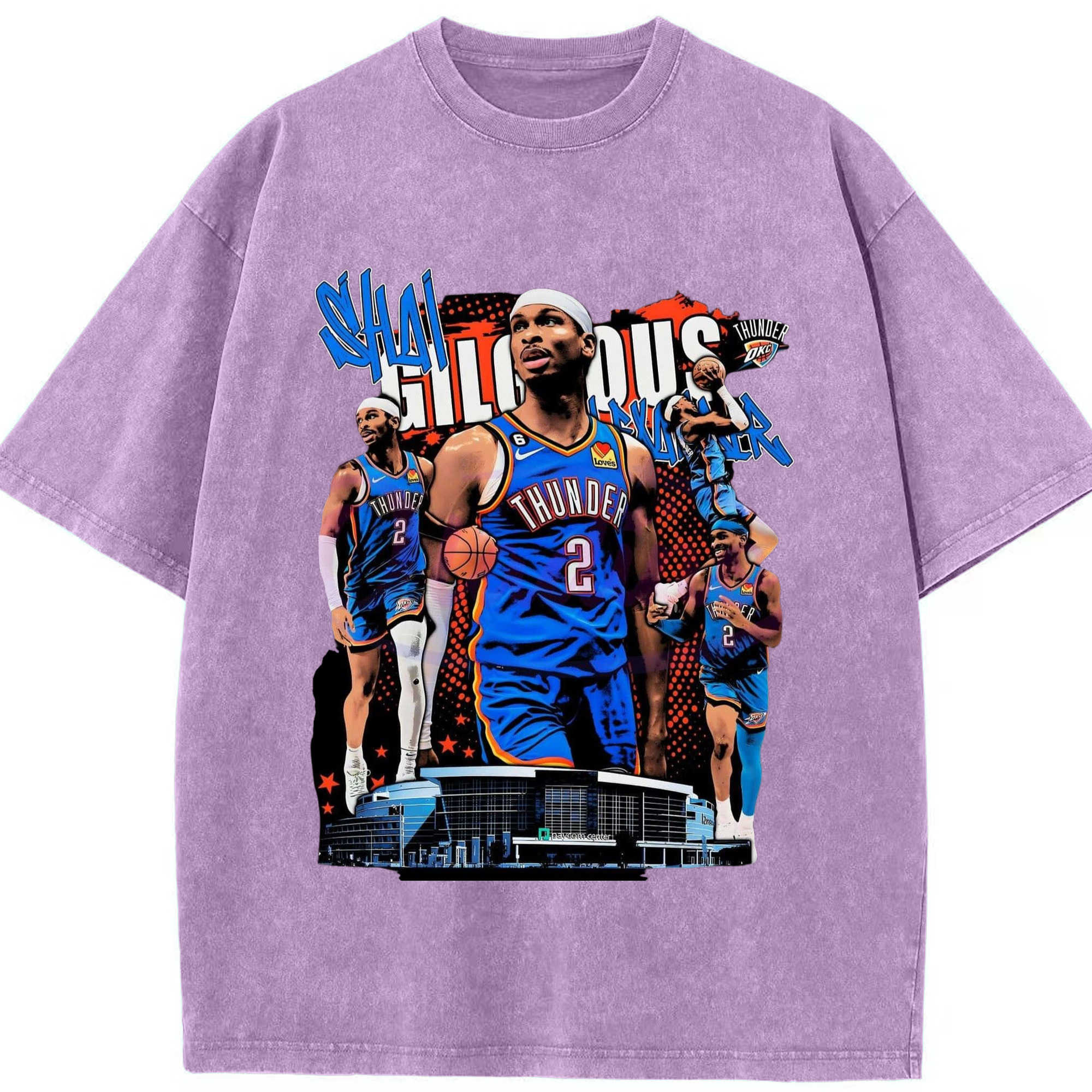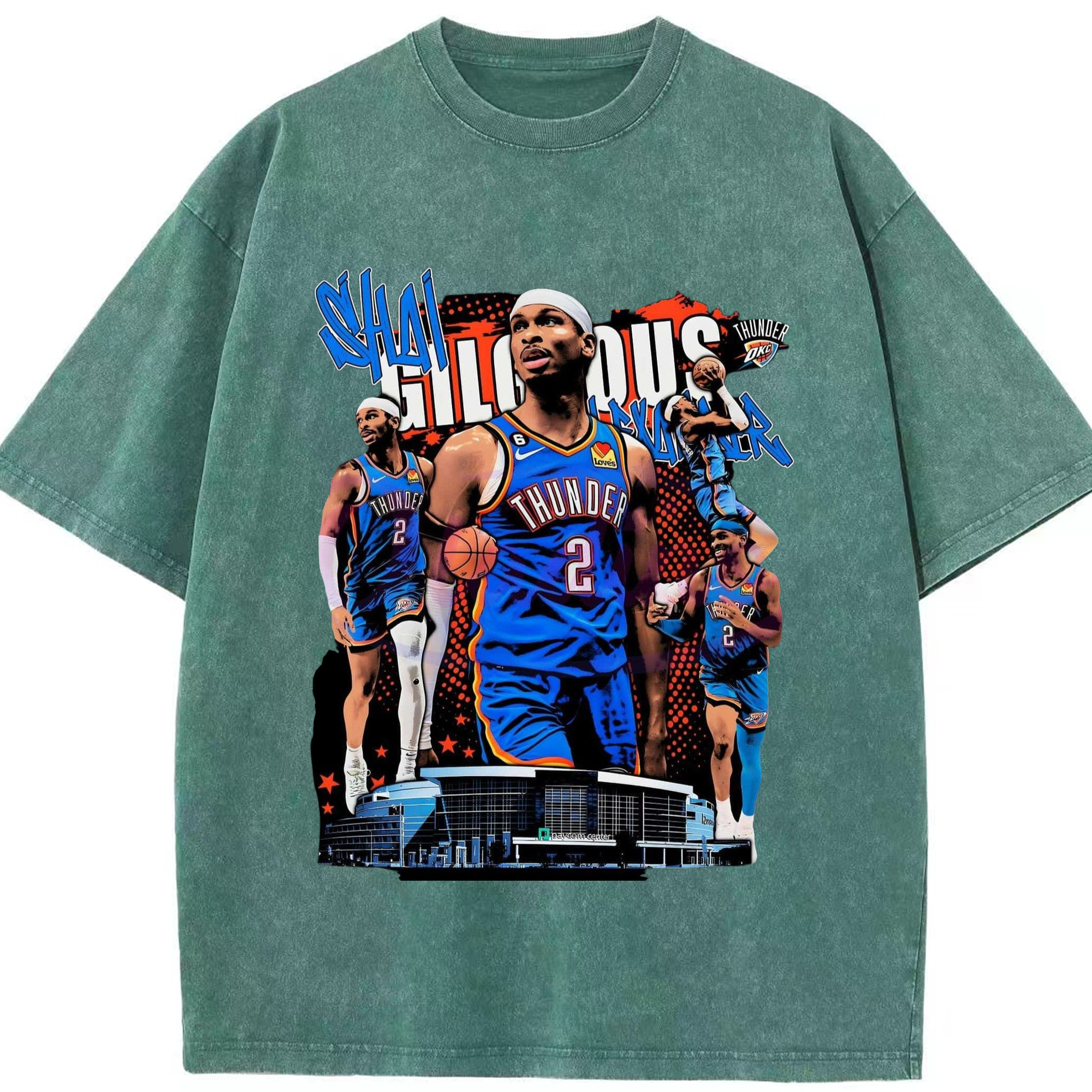 SGA OKC#2 collage Graphic T-shirt - Washed Vintage Look 230g Cotton Oversized T-Shirt With Front Heat Transfer Print – Soft, Lightweight, Stylish Fit – Comfortable Casual Wear For Sports & Everyday Use