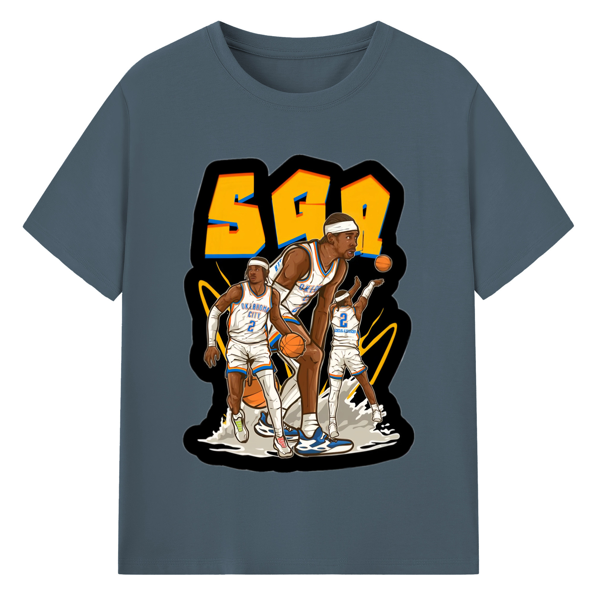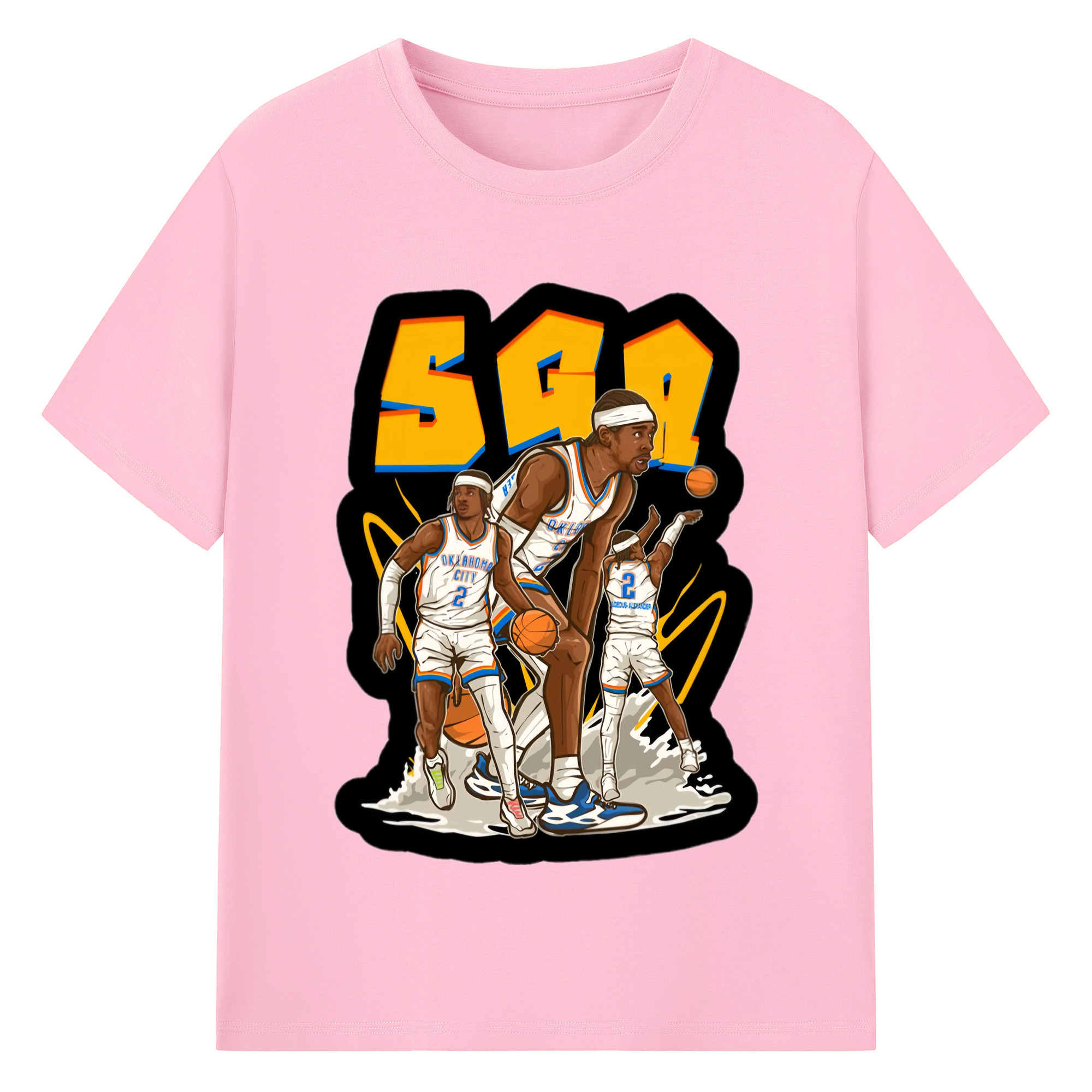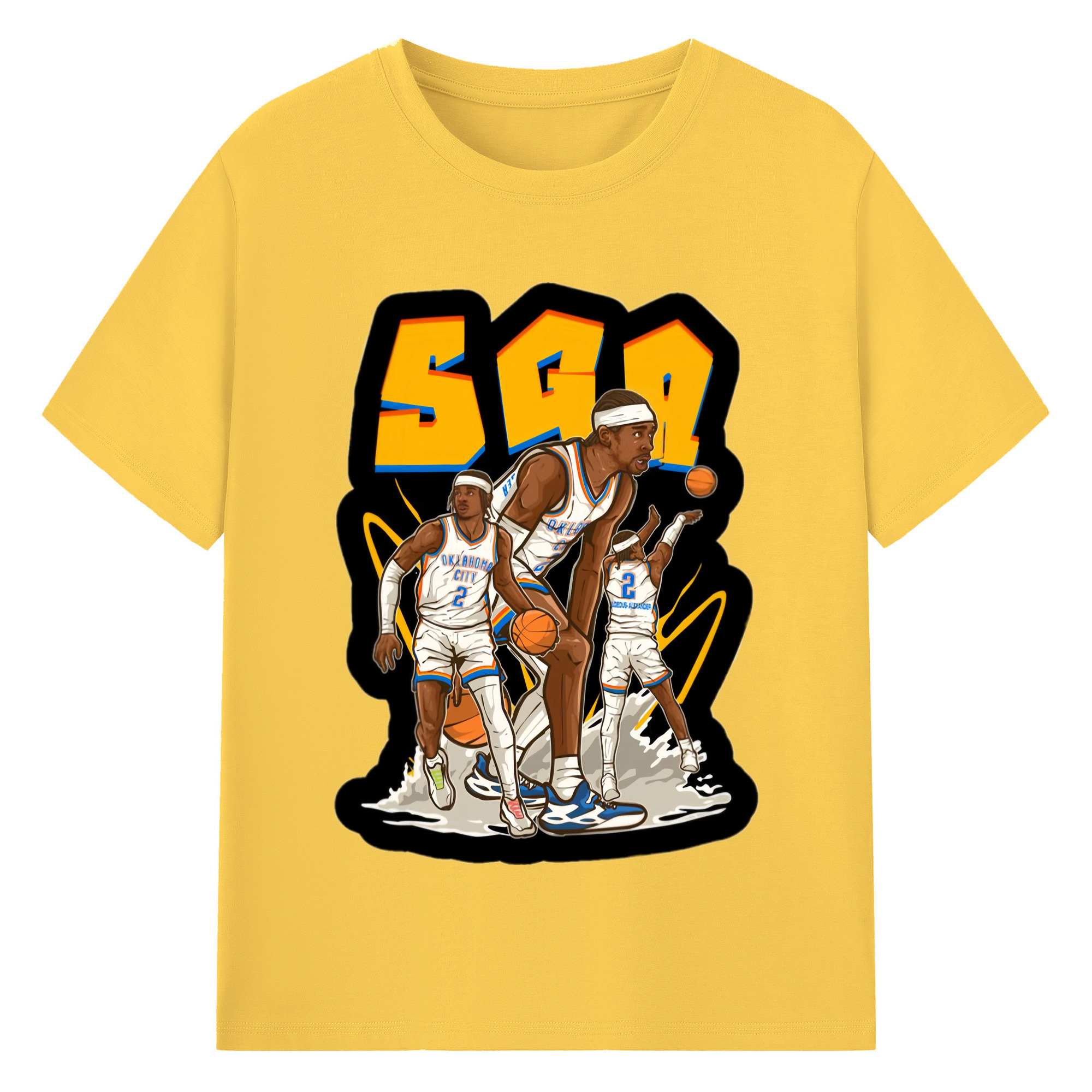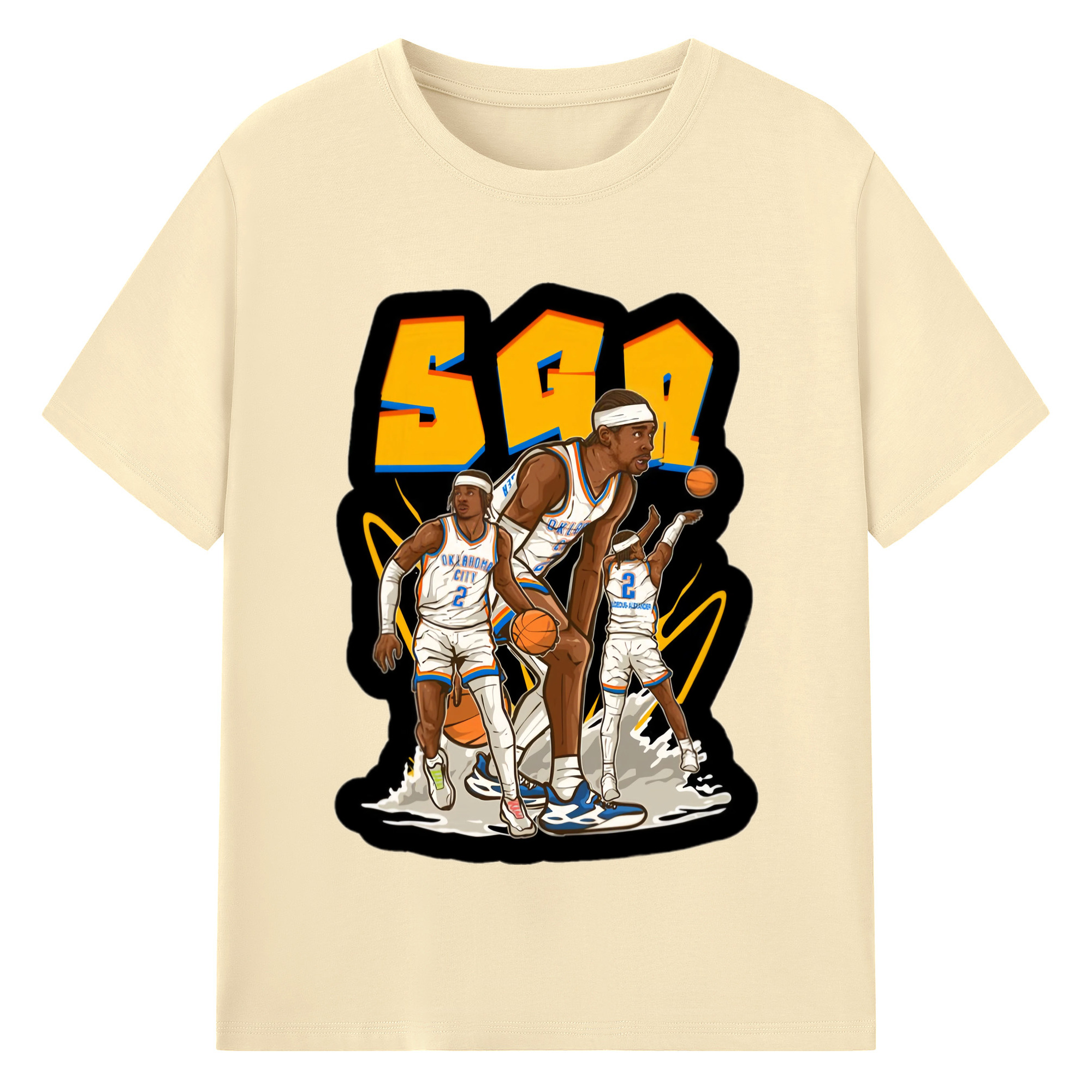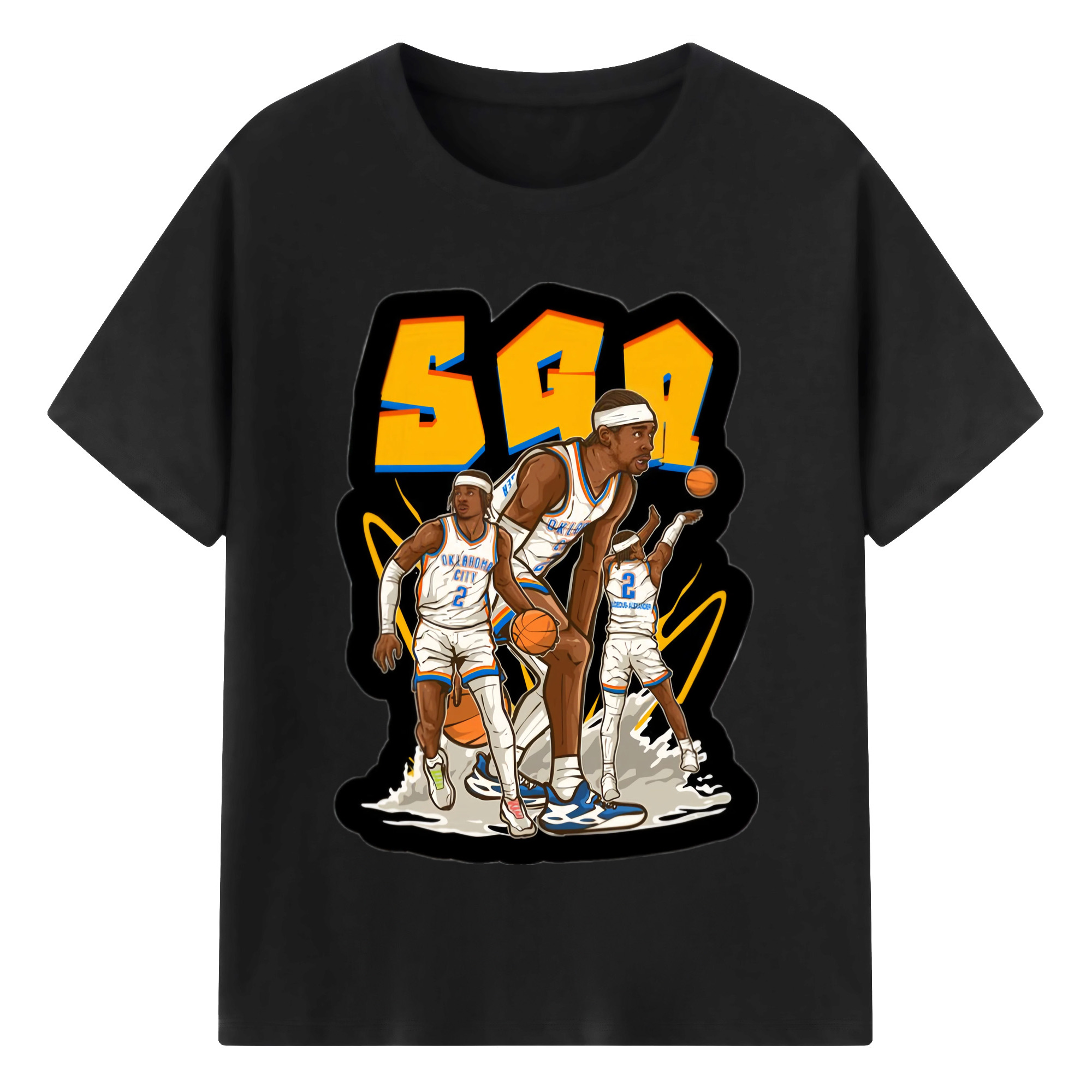 Shai Gilgeous-Alexander Cartoon collage tee - 180g Cotton T-Shirt With Front Heat Transfer Print – Soft, Lightweight, Fitted Design – Comfortable Casual Wear For Sports & Everyday Use