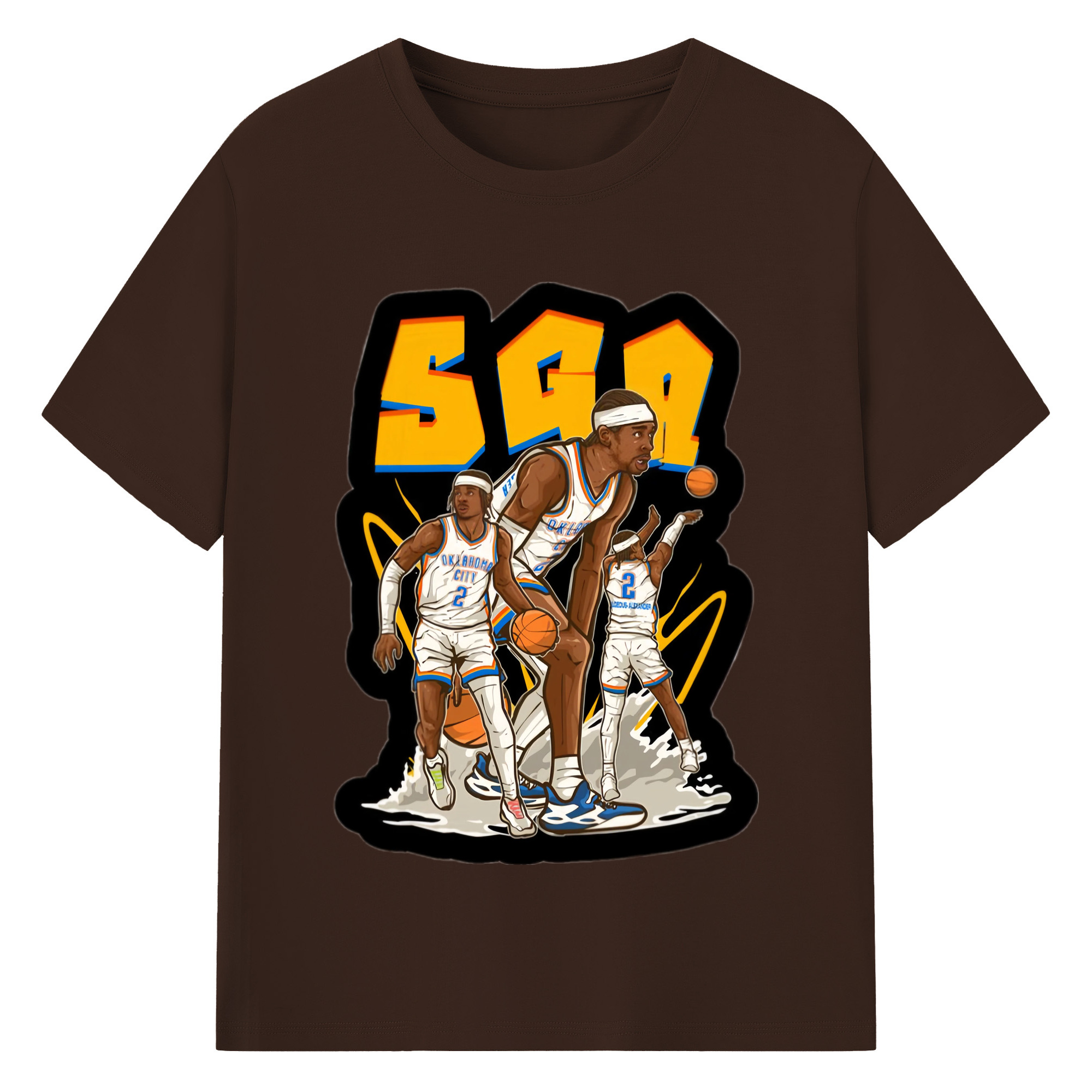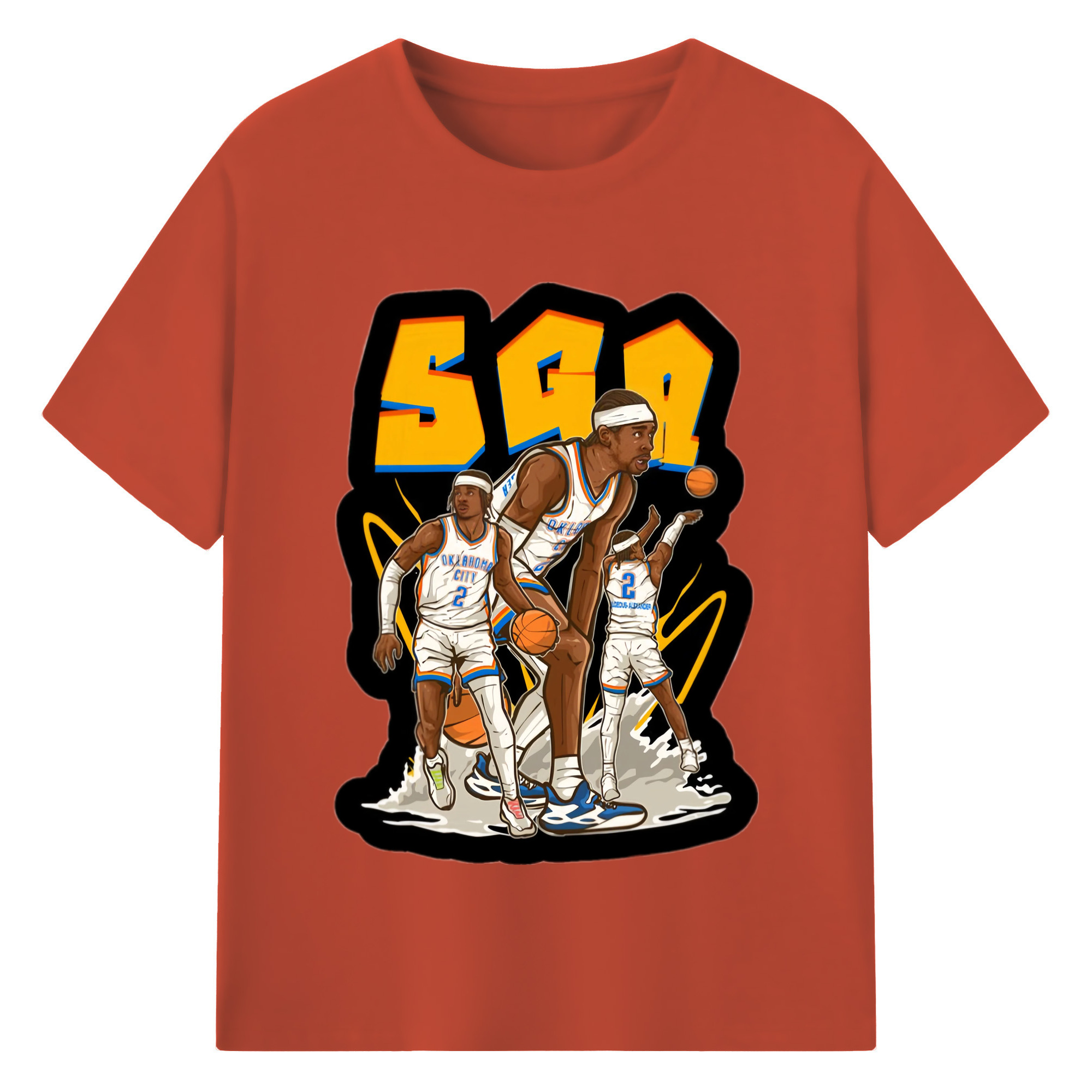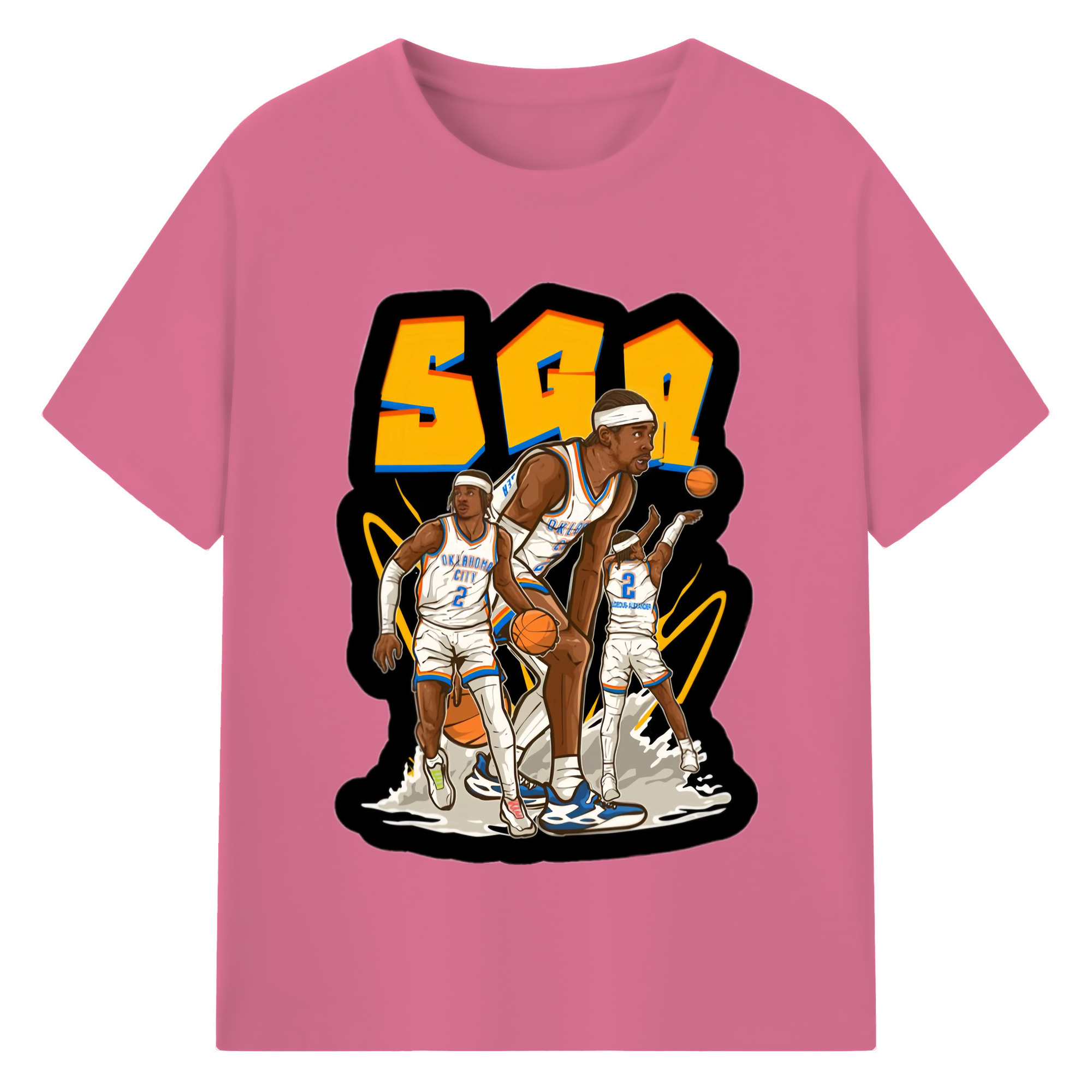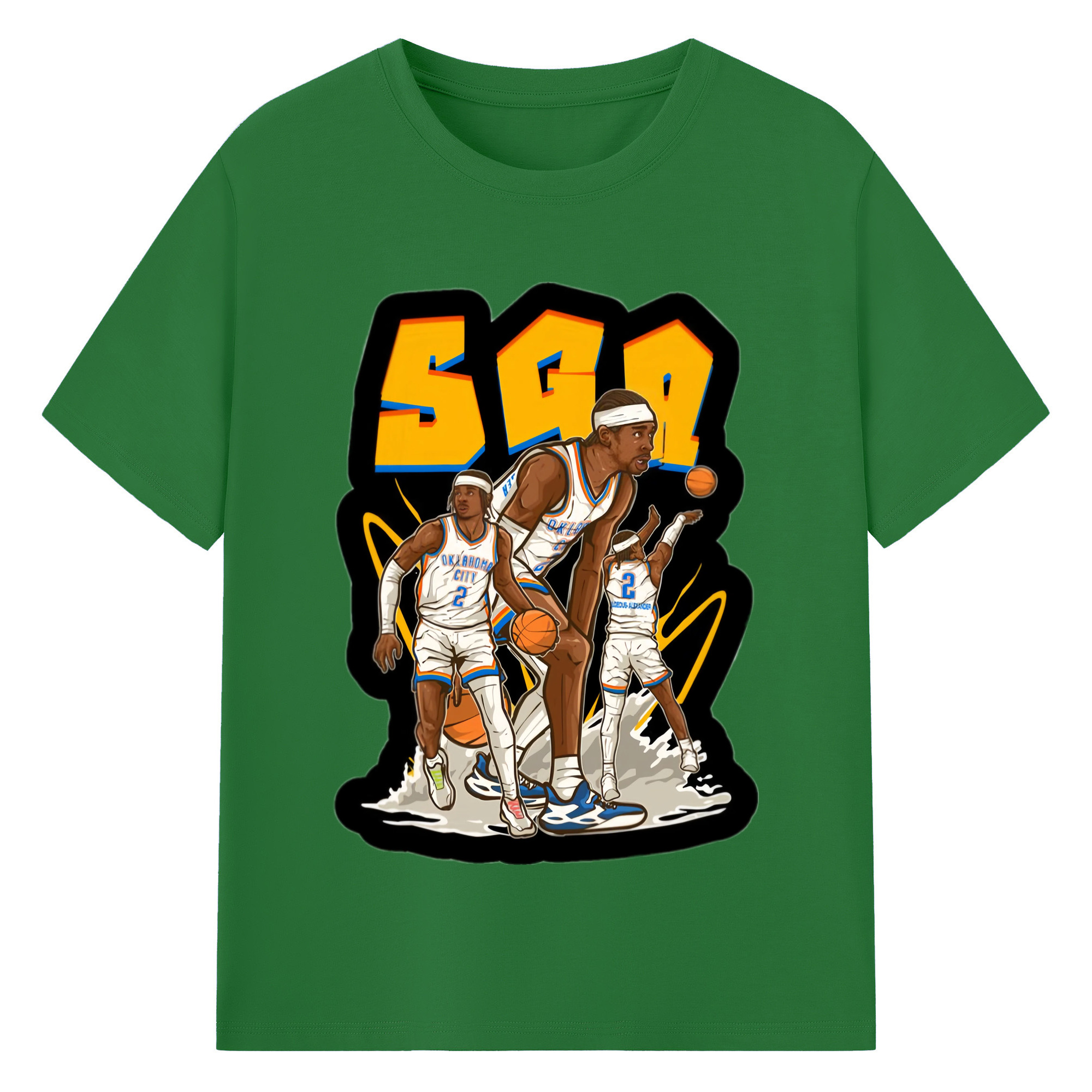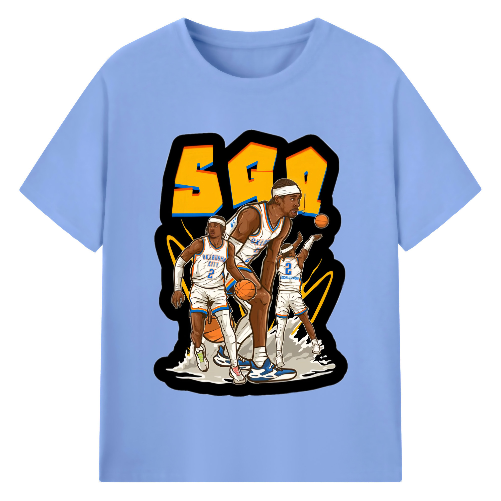 Shai Gilgeous-Alexander Cartoon collage tee - 180g Cotton T-Shirt With Front Heat Transfer Print – Soft, Lightweight, Fitted Design – Comfortable Casual Wear For Sports & Everyday Use