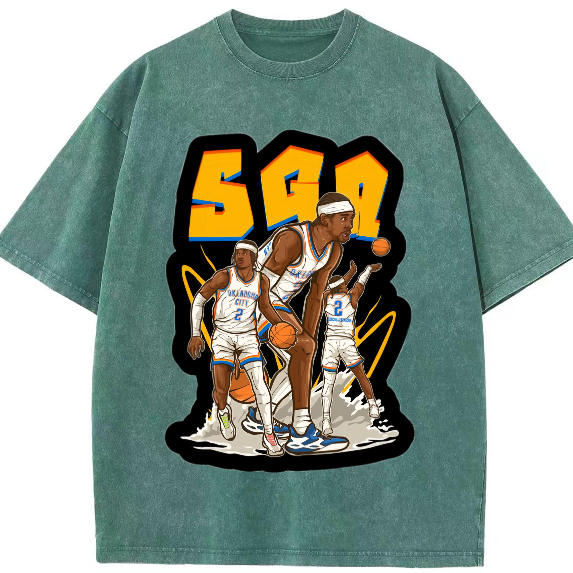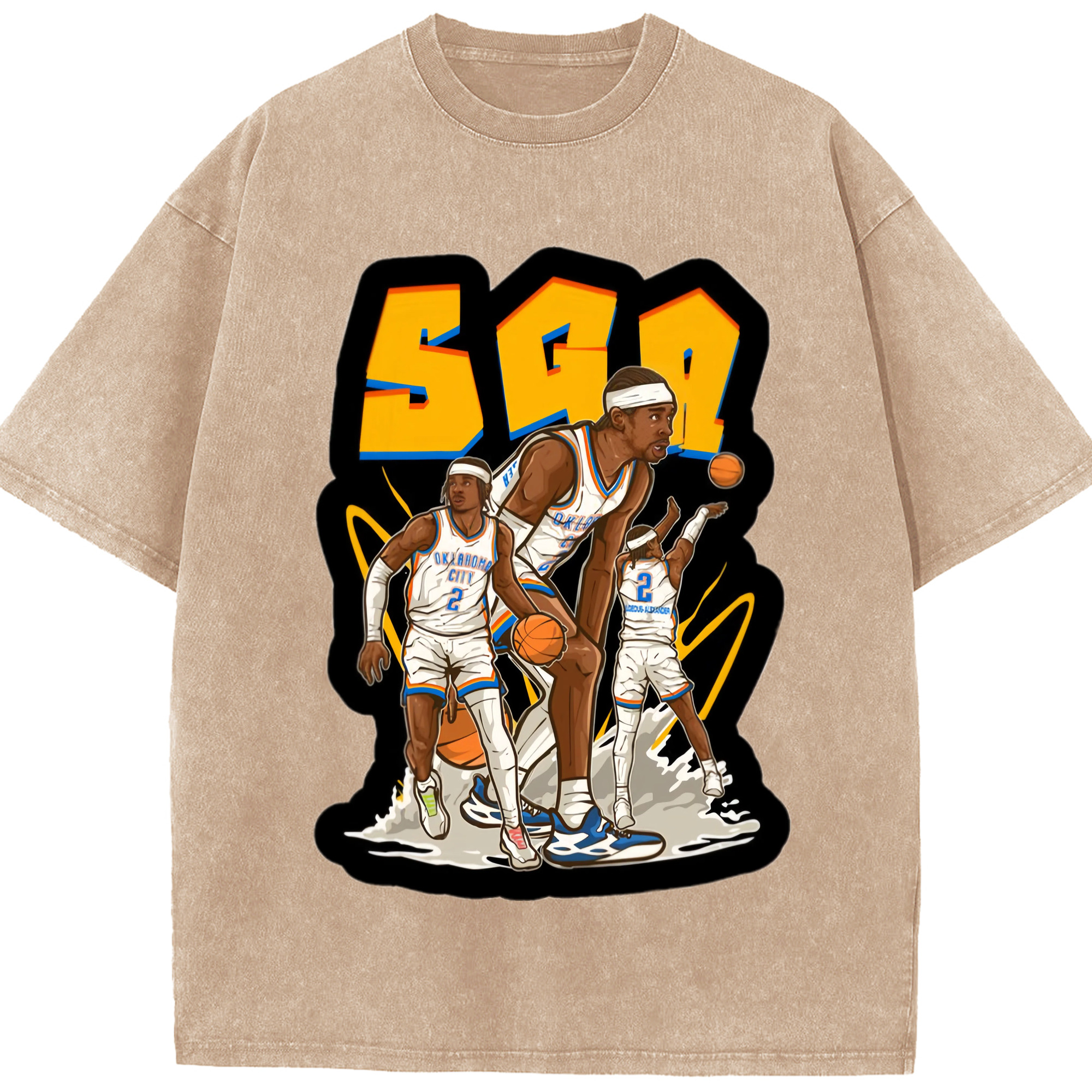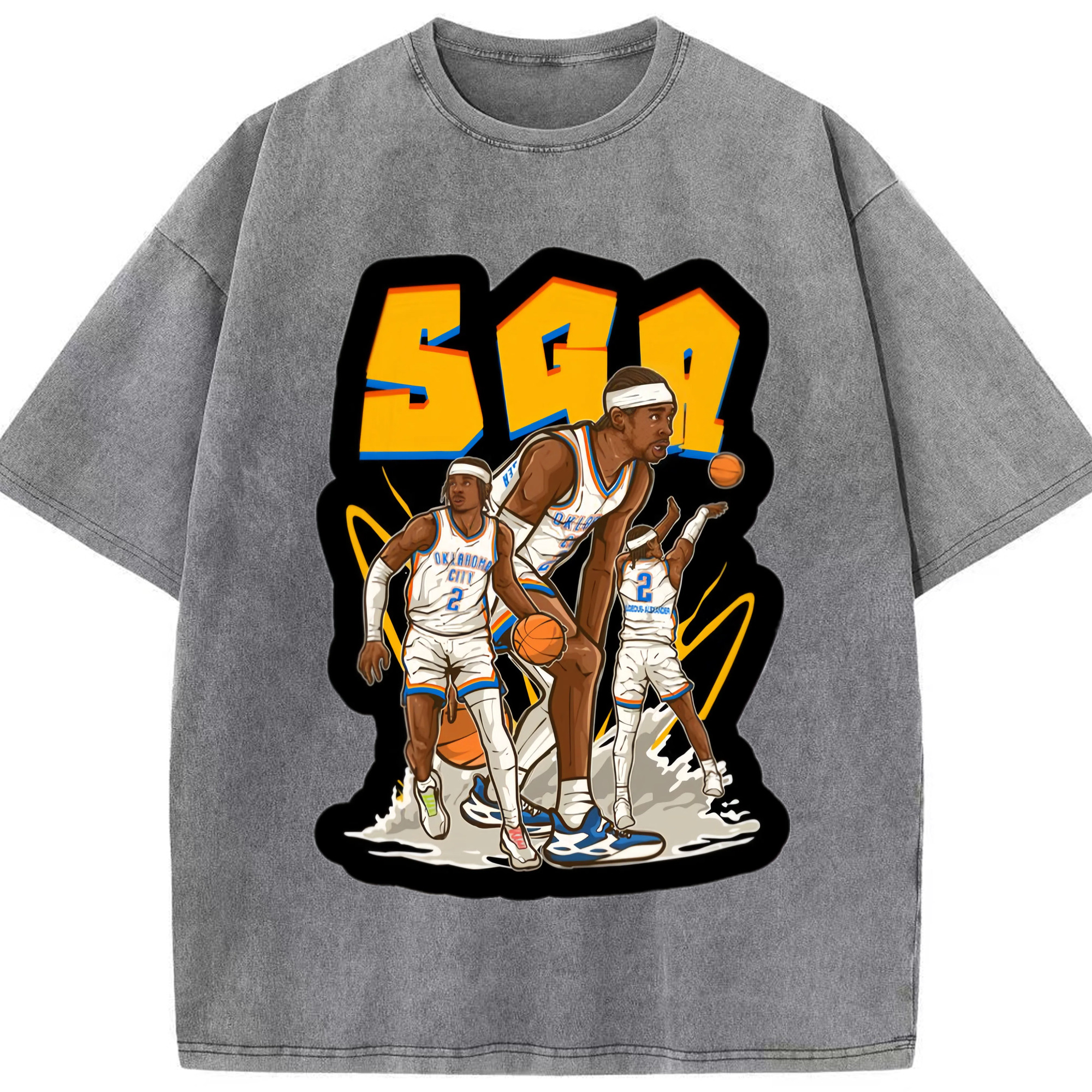Shai Gilgeous-Alexander Cartoon collage tee - Washed Vintage Look 230g Cotton Oversized T-Shirt With Front Heat Transfer Print – Soft, Lightweight, Stylish Fit – Comfortable Casual Wear For Sports & Everyday Use