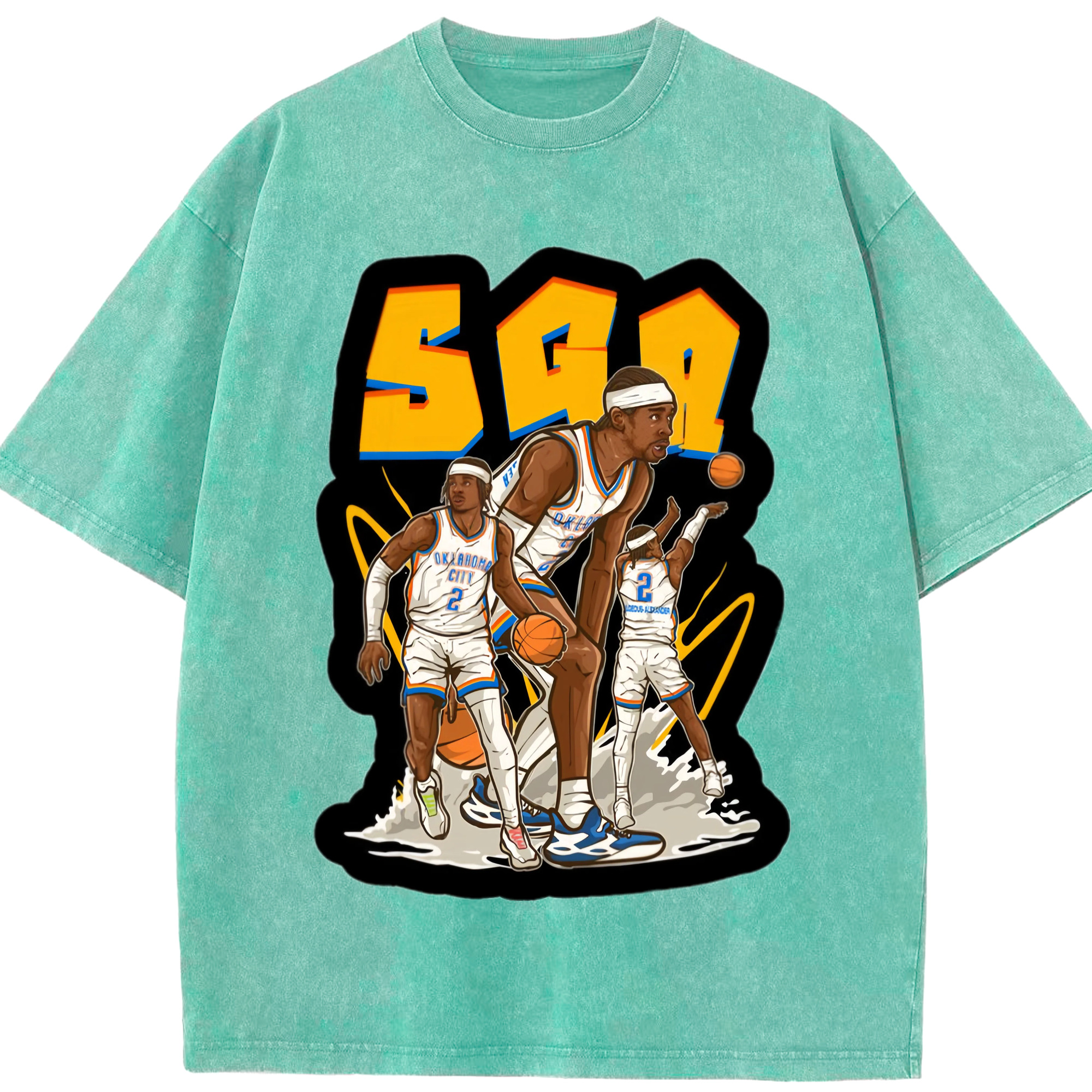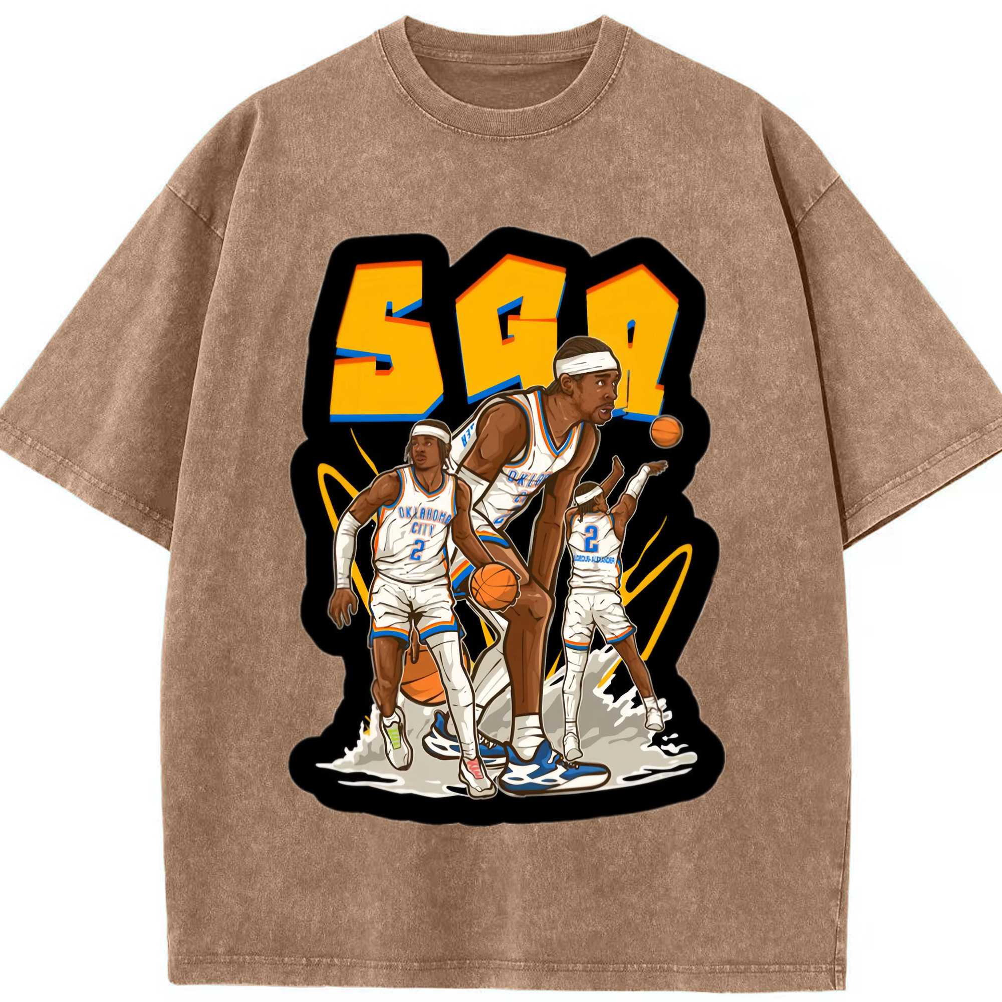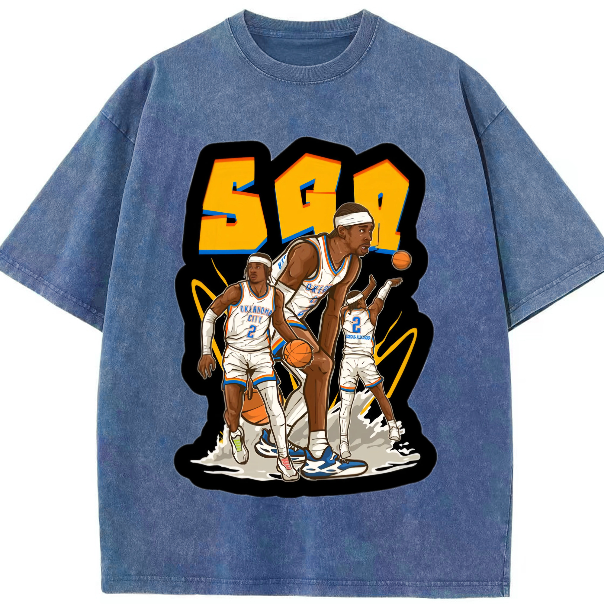 Shai Gilgeous-Alexander Cartoon collage tee - Washed Vintage Look 230g Cotton Oversized T-Shirt With Front Heat Transfer Print – Soft, Lightweight, Stylish Fit – Comfortable Casual Wear For Sports & Everyday Use
