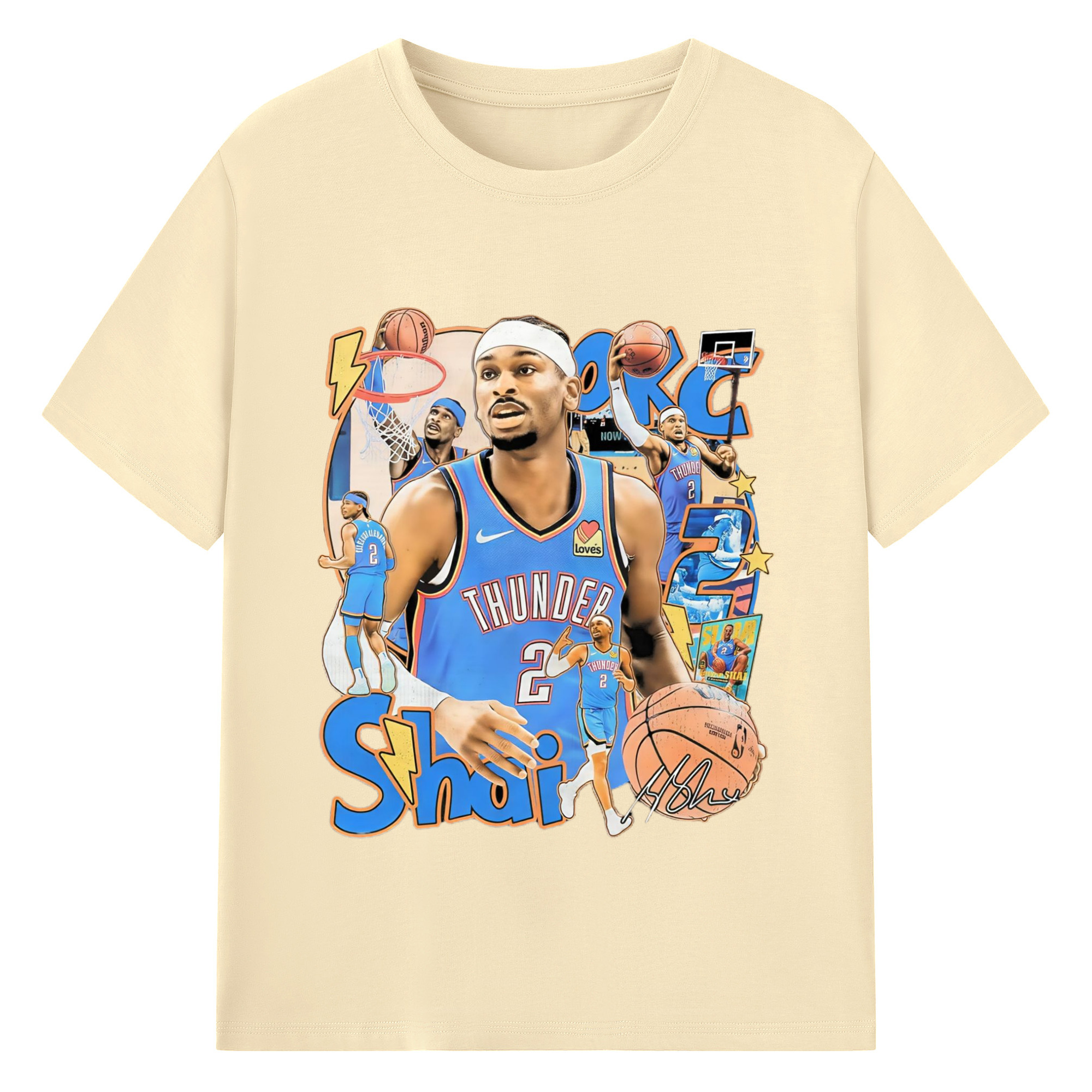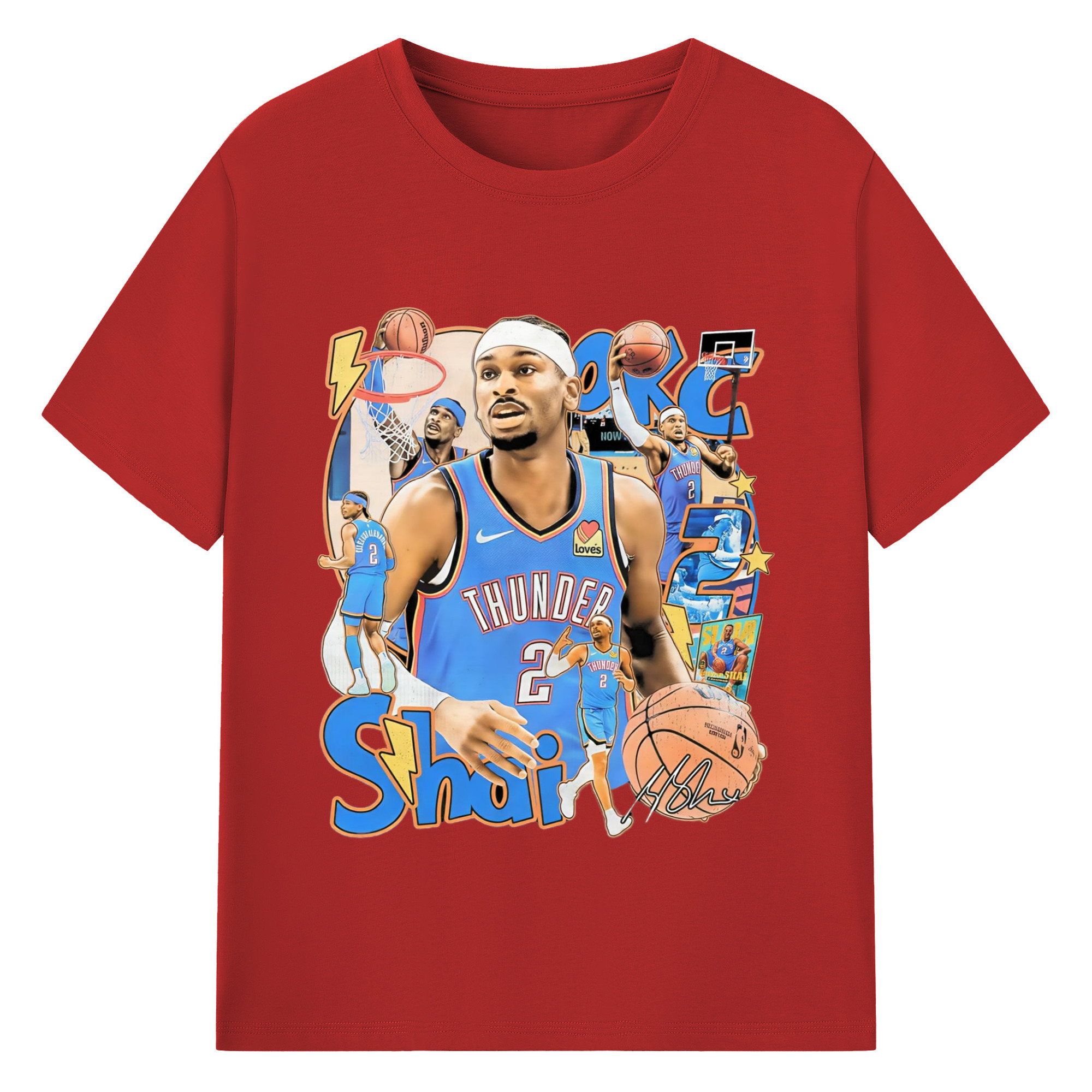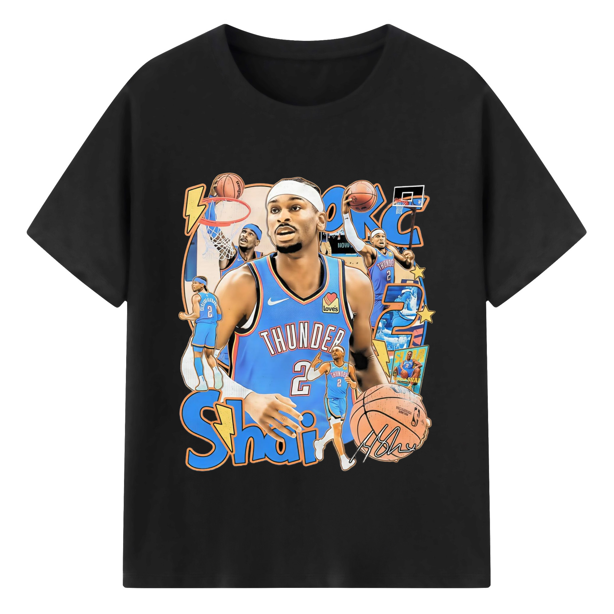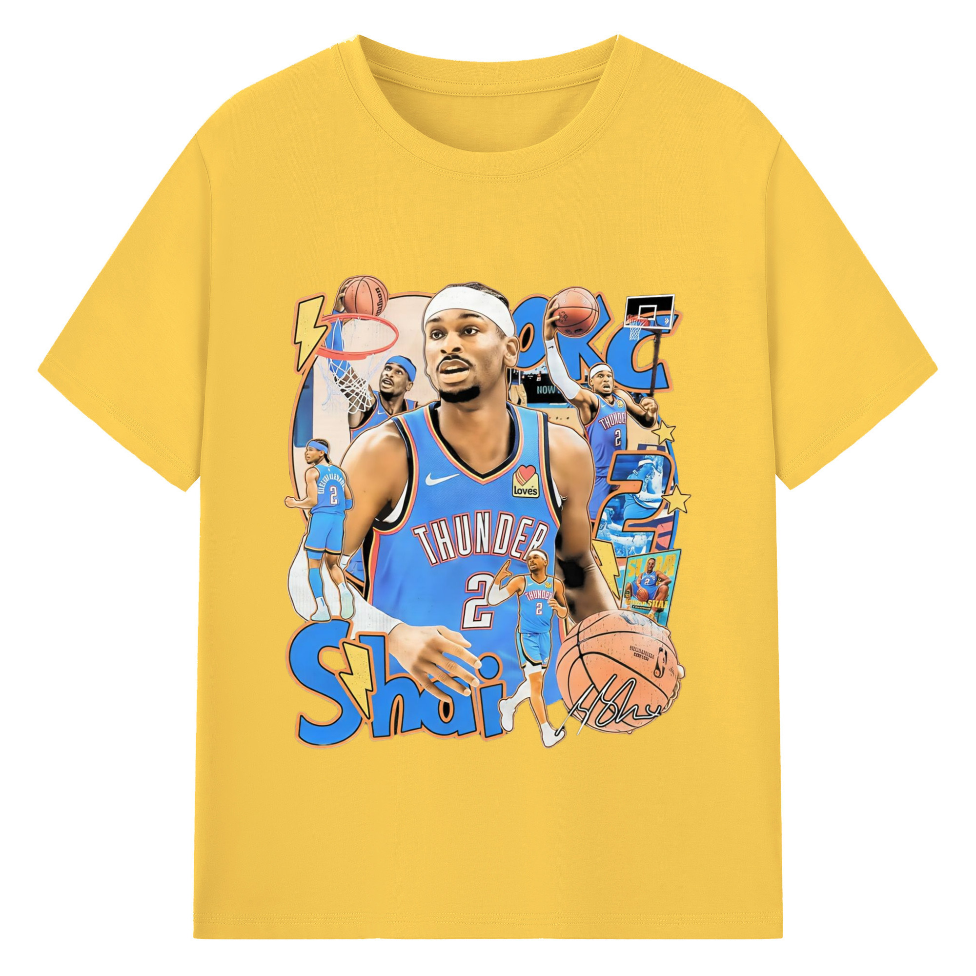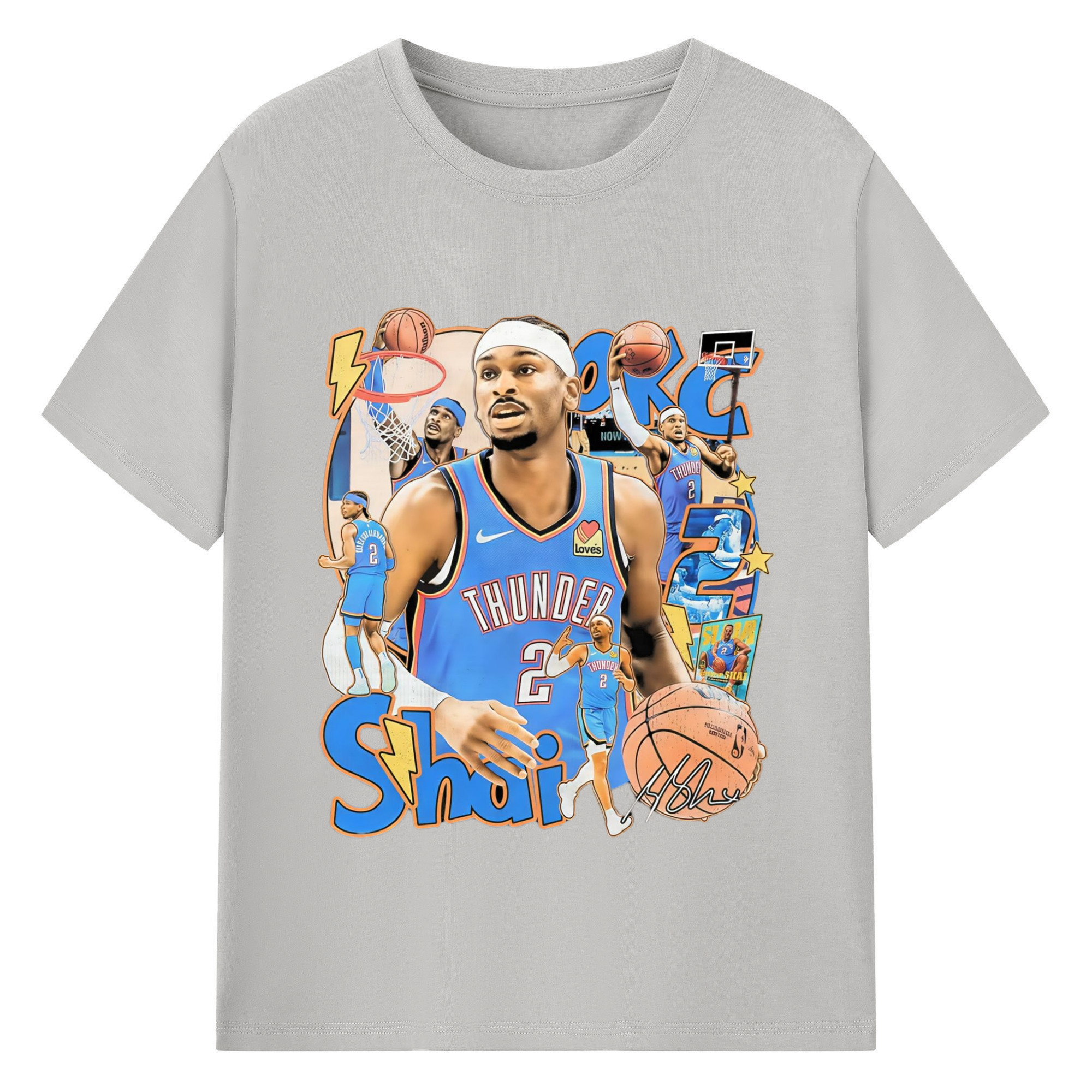 Shai Gilgeous-Alexander collage Graphic Tee - 180g Cotton T-Shirt With Front Heat Transfer Print – Soft, Lightweight, Fitted Design – Comfortable Casual Wear For Sports & Everyday Use