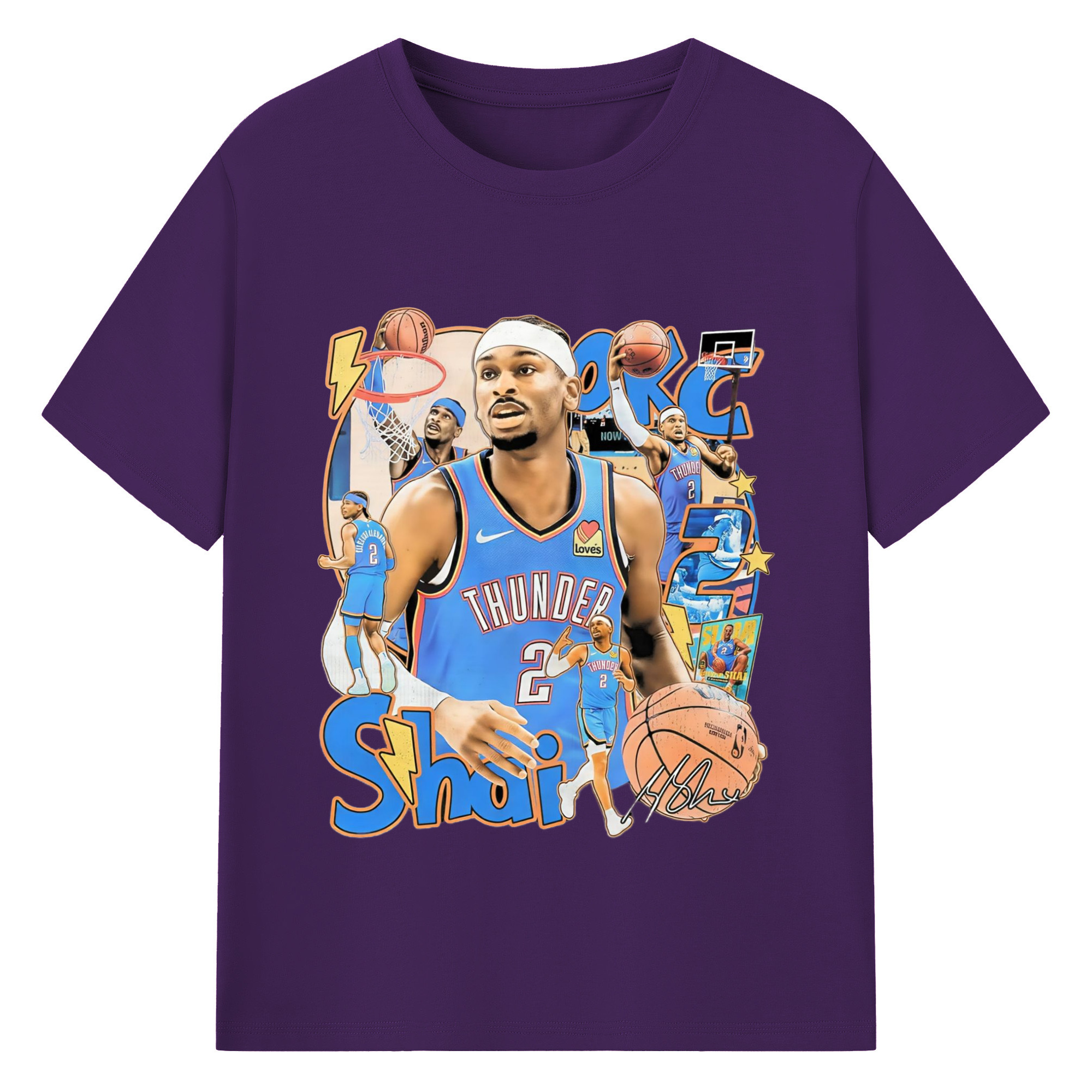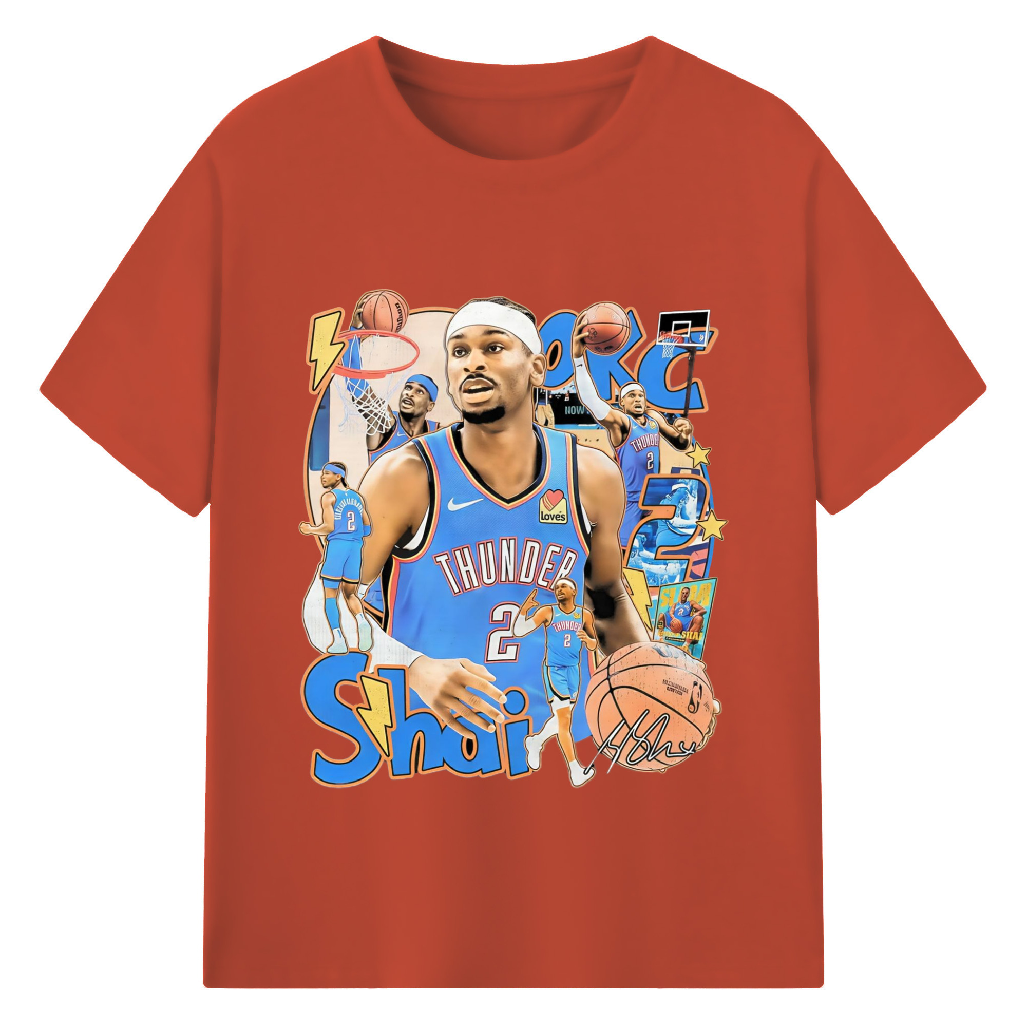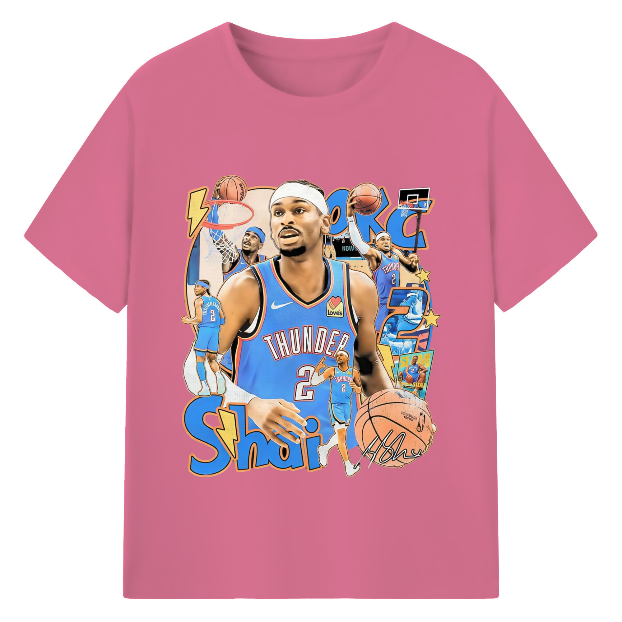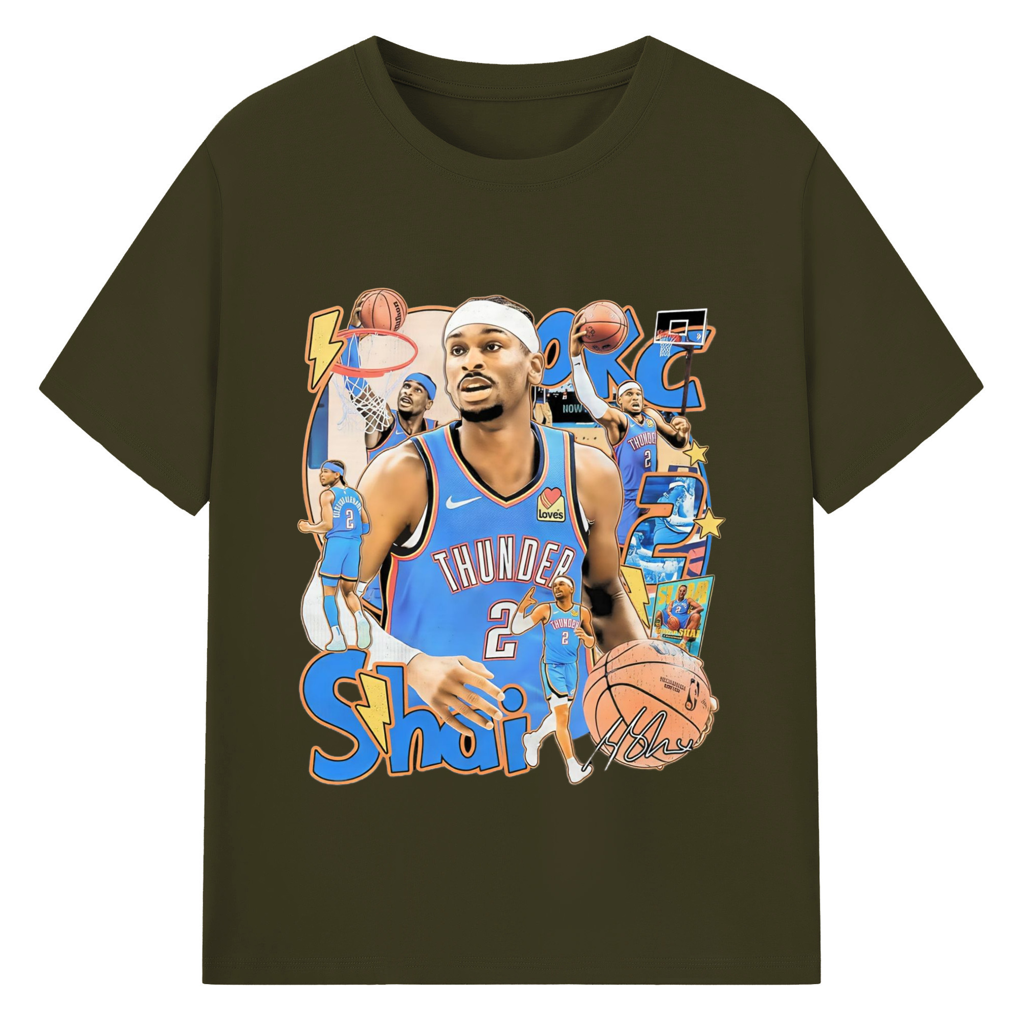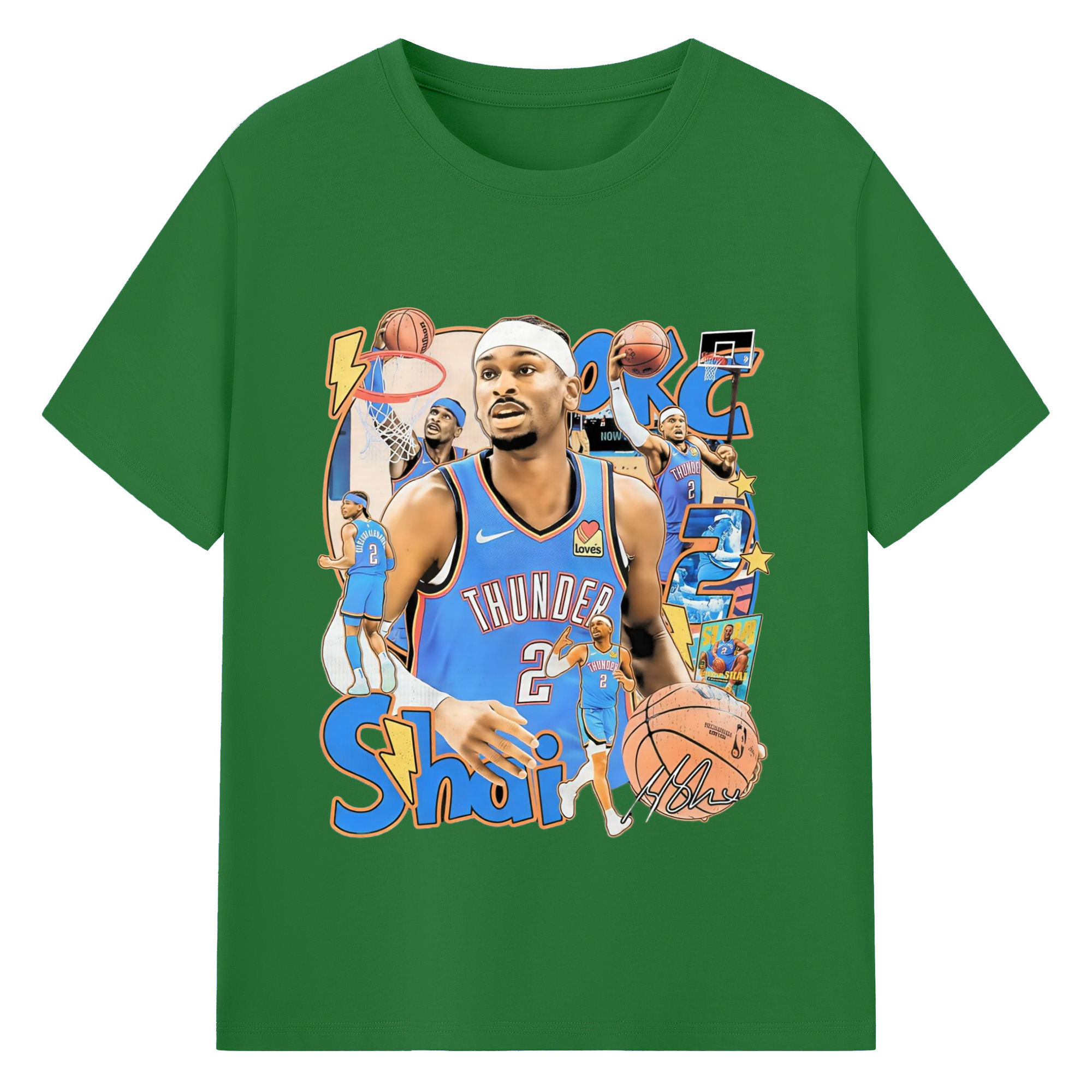 Shai Gilgeous-Alexander collage Graphic Tee - 180g Cotton T-Shirt With Front Heat Transfer Print – Soft, Lightweight, Fitted Design – Comfortable Casual Wear For Sports & Everyday Use