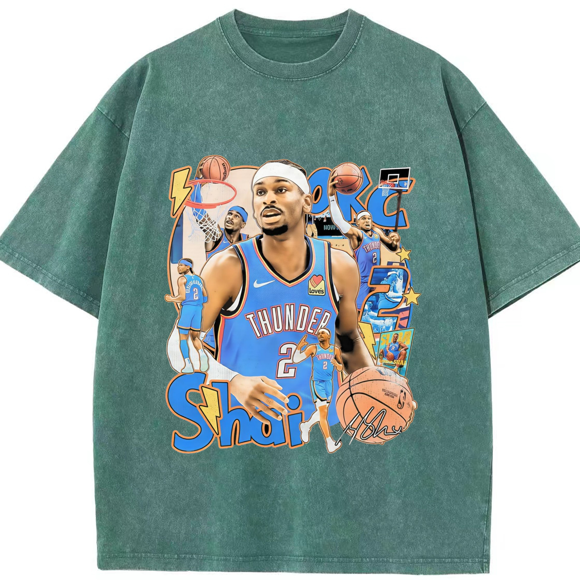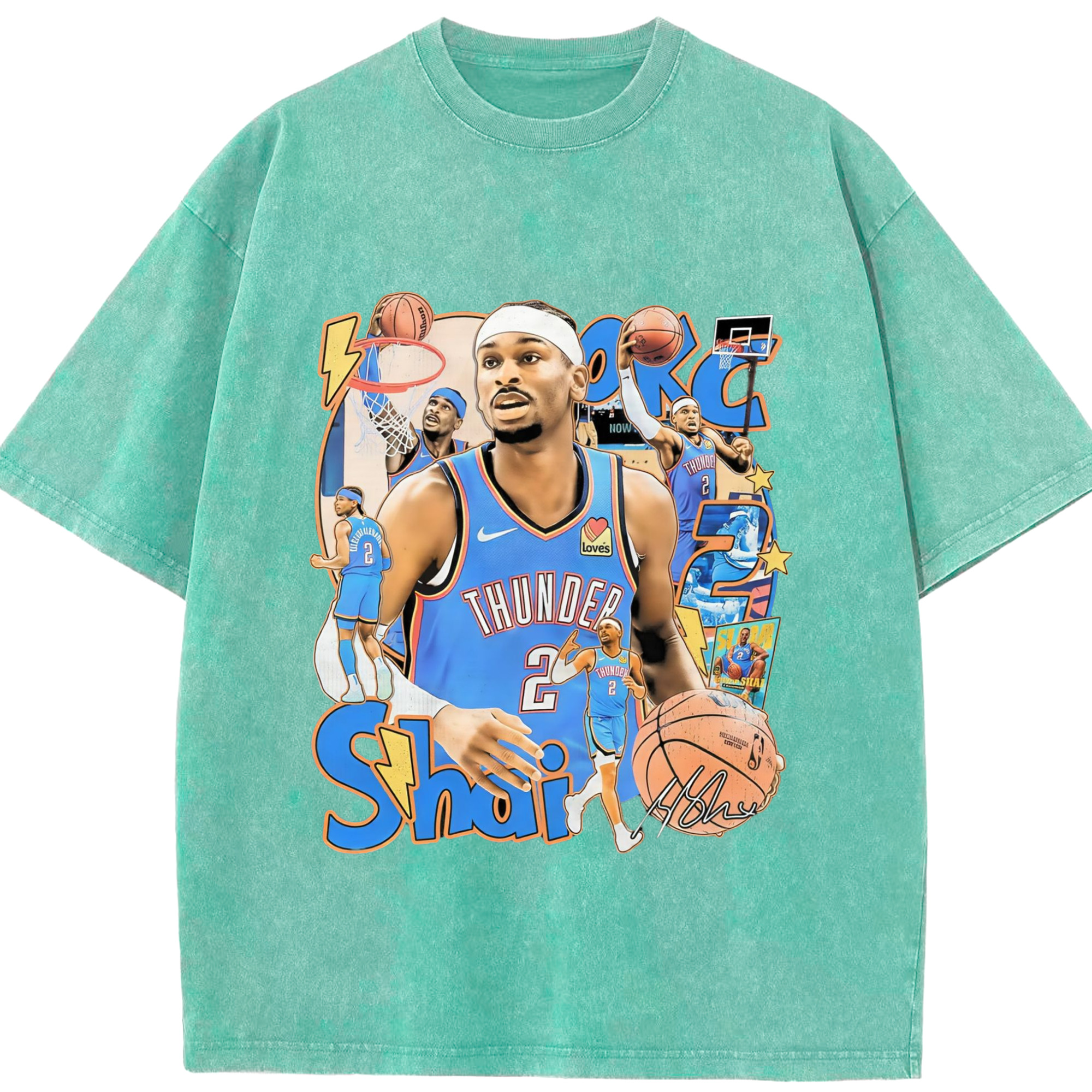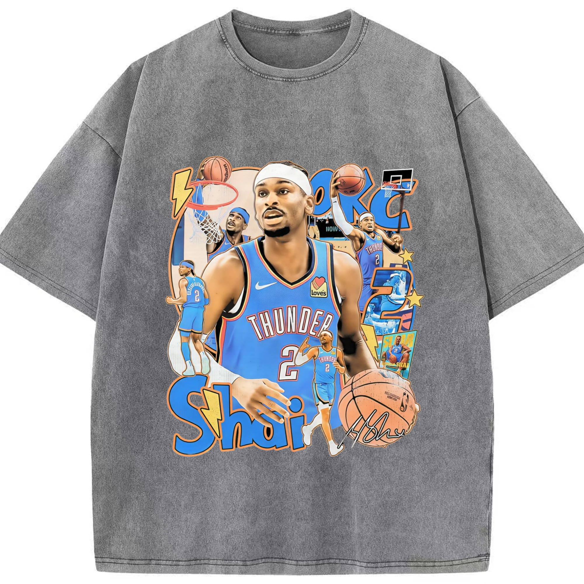 Shai Gilgeous-Alexander collage Graphic Tee - Washed Vintage Look 230g Cotton Oversized T-Shirt With Front Heat Transfer Print – Soft, Lightweight, Stylish Fit – Comfortable Casual Wear For Sports & Everyday Use