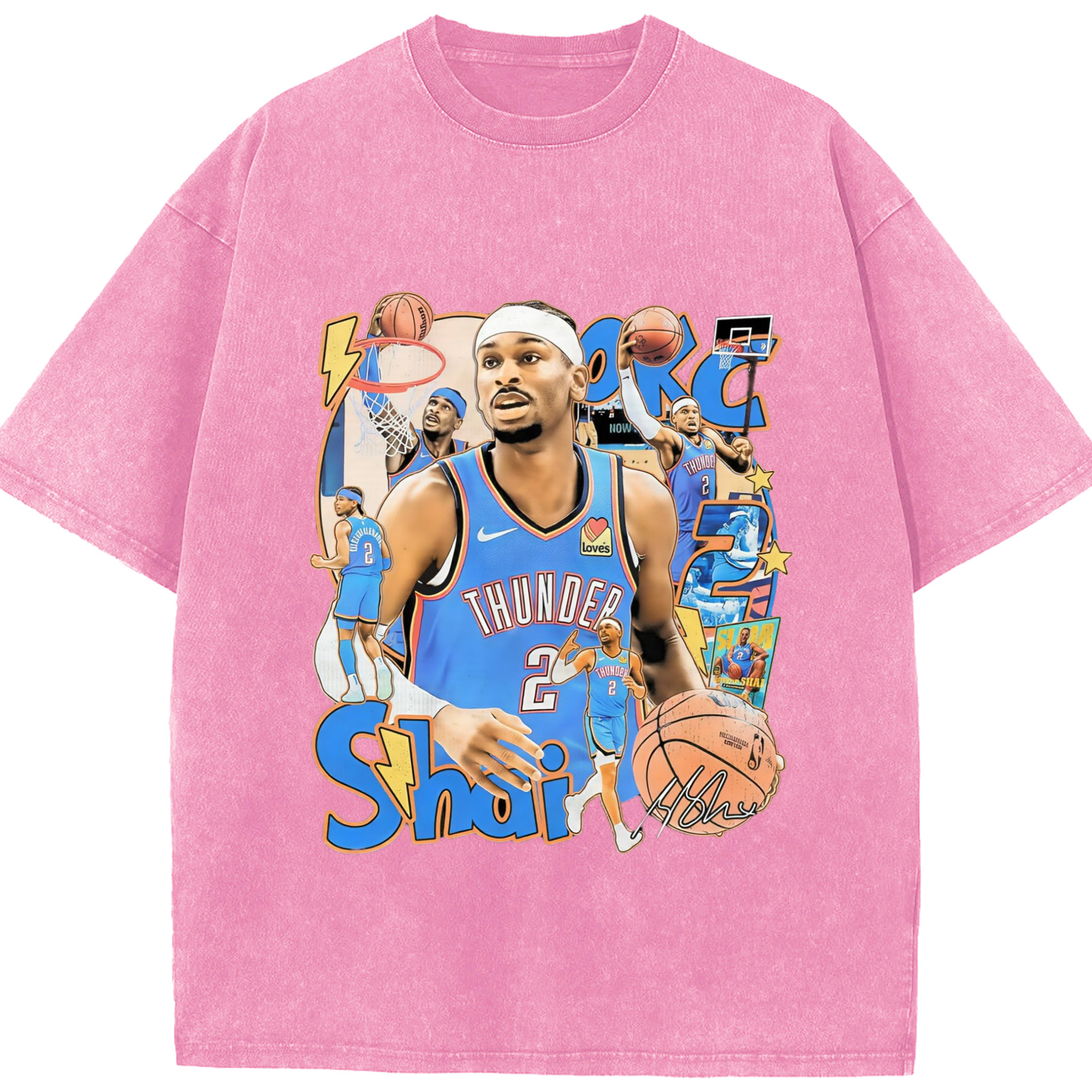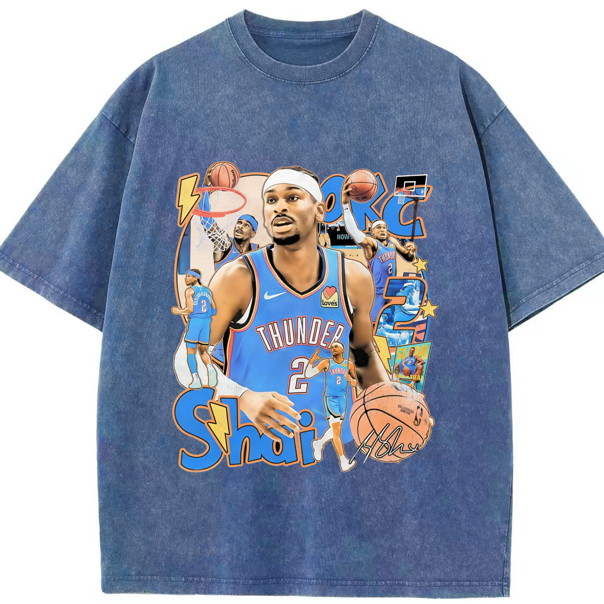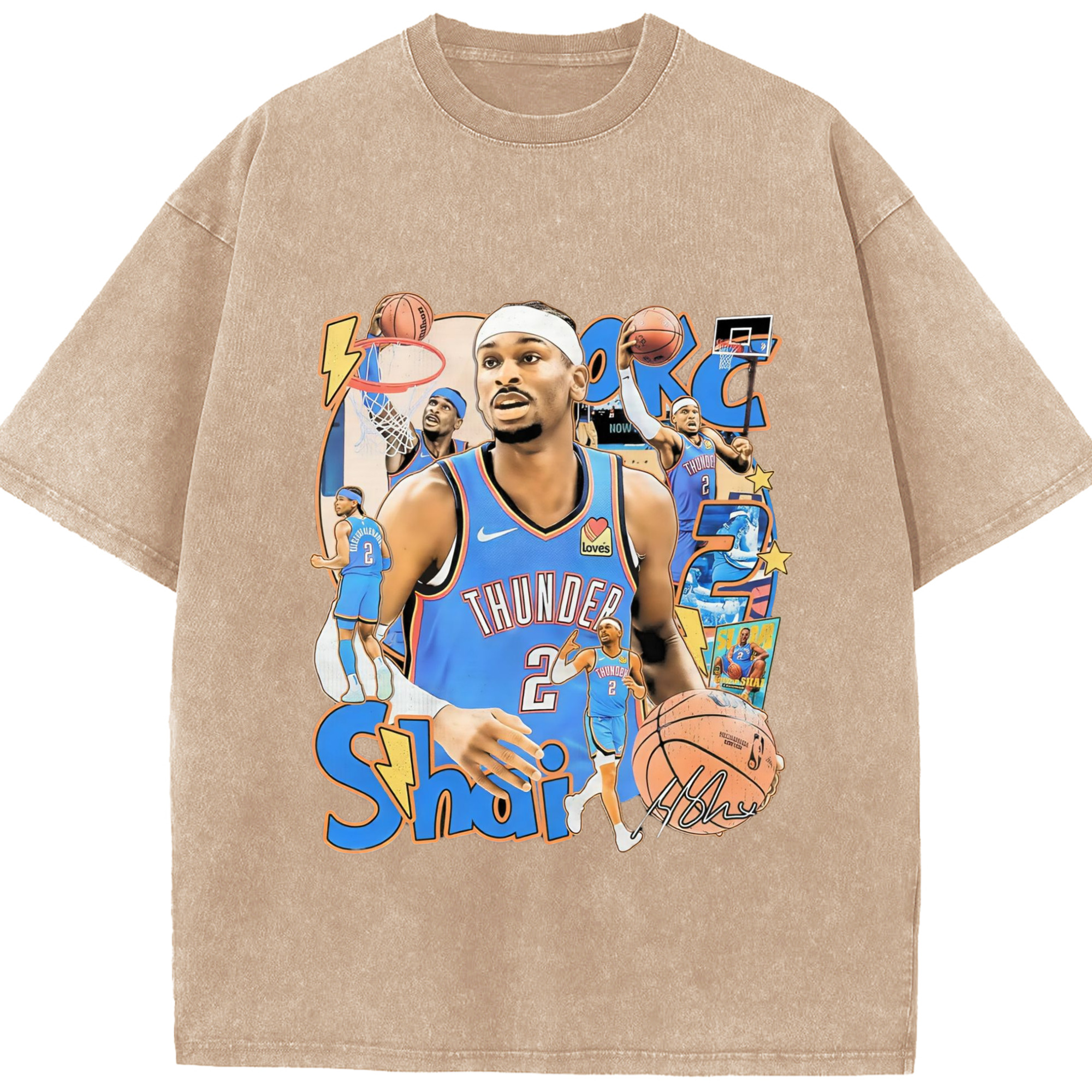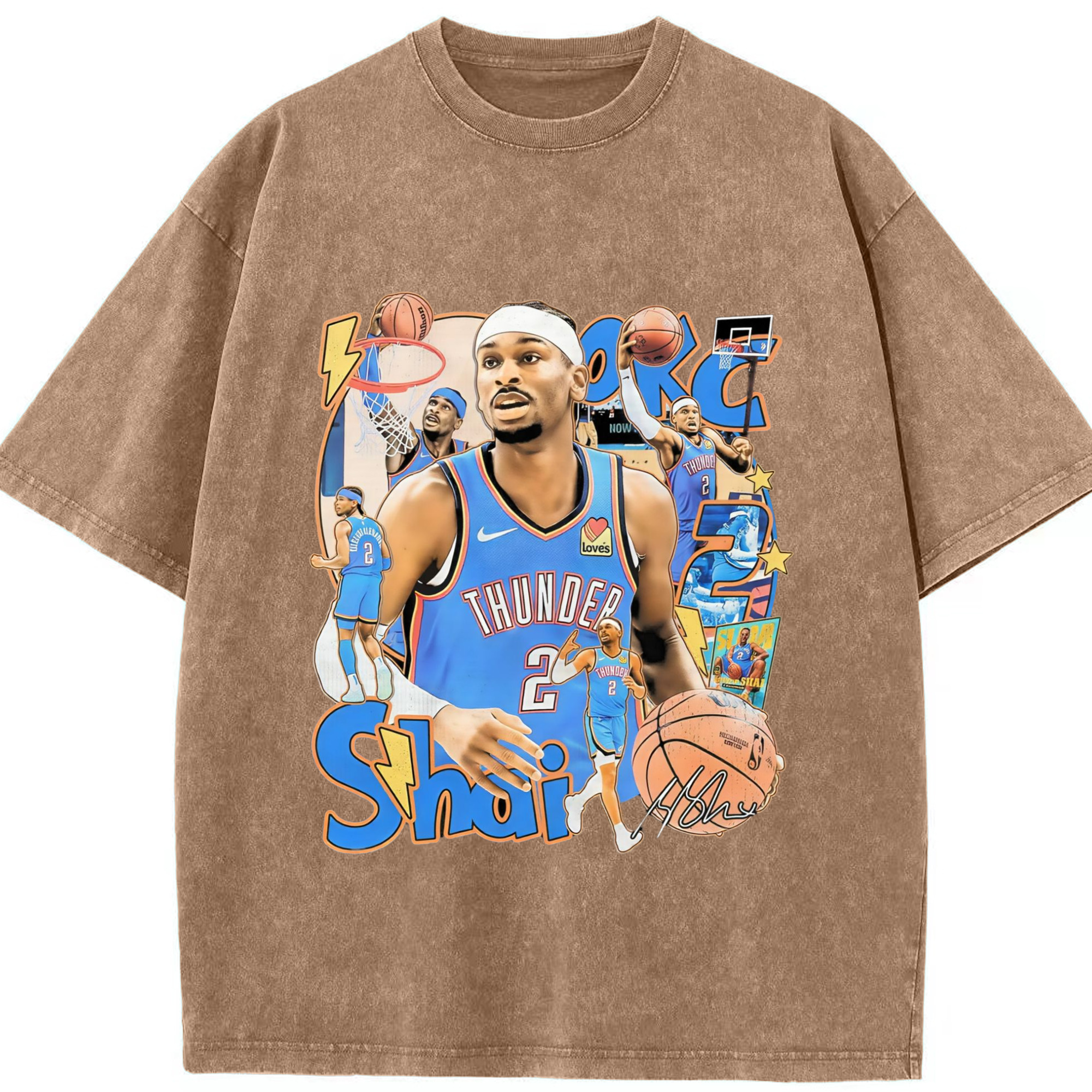 Shai Gilgeous-Alexander collage Graphic Tee - Washed Vintage Look 230g Cotton Oversized T-Shirt With Front Heat Transfer Print – Soft, Lightweight, Stylish Fit – Comfortable Casual Wear For Sports & Everyday Use