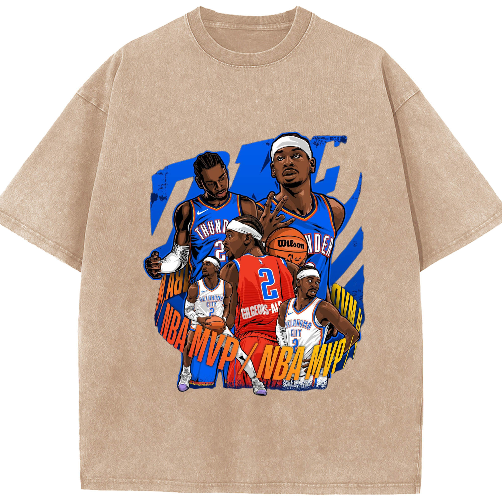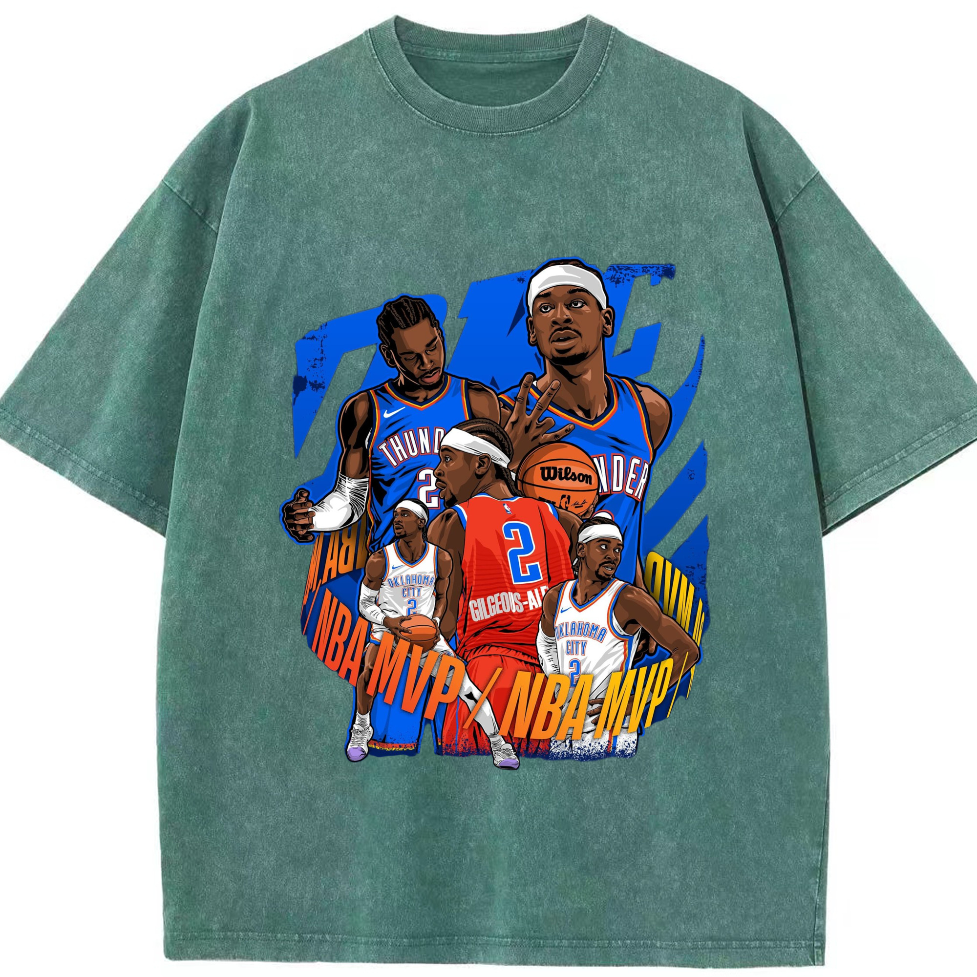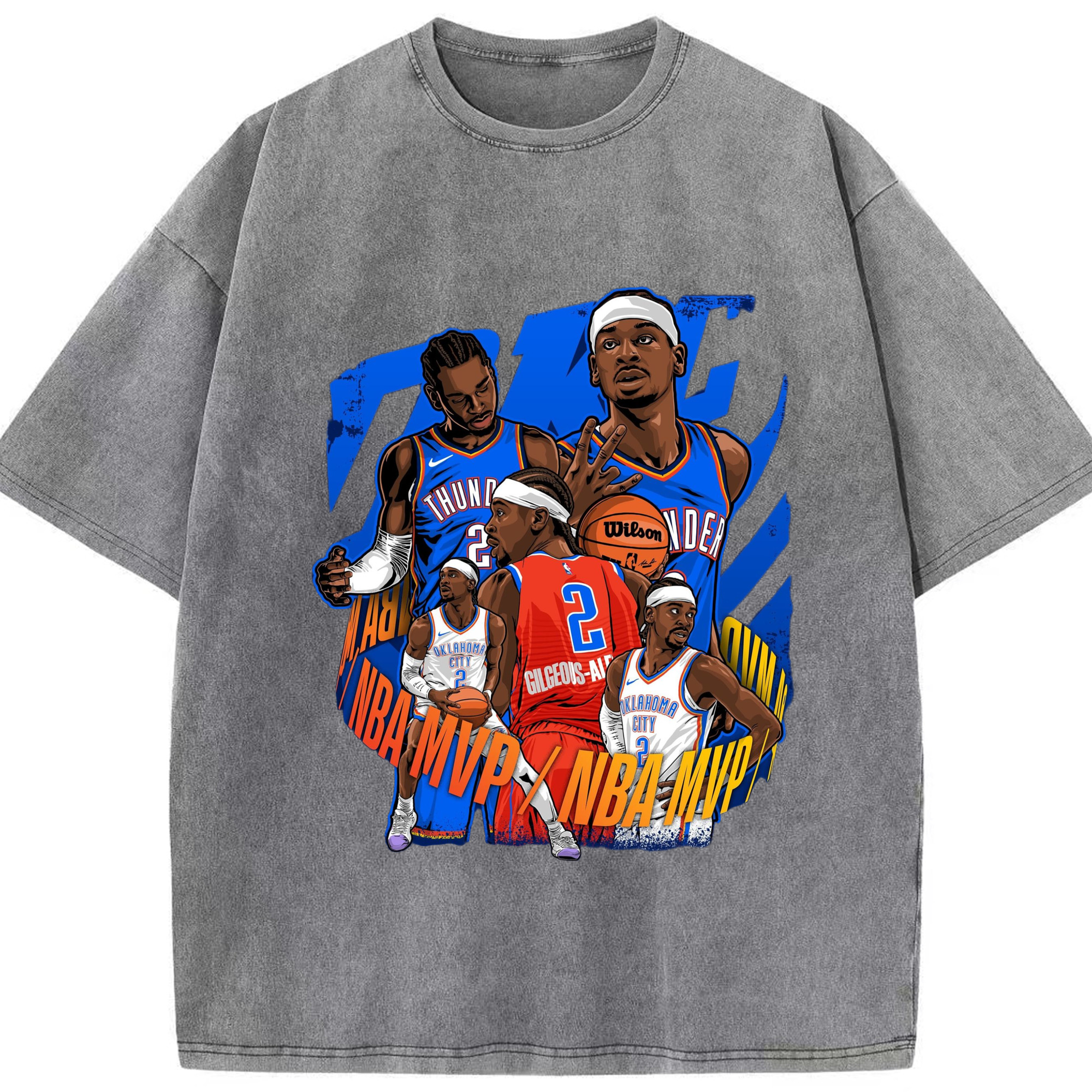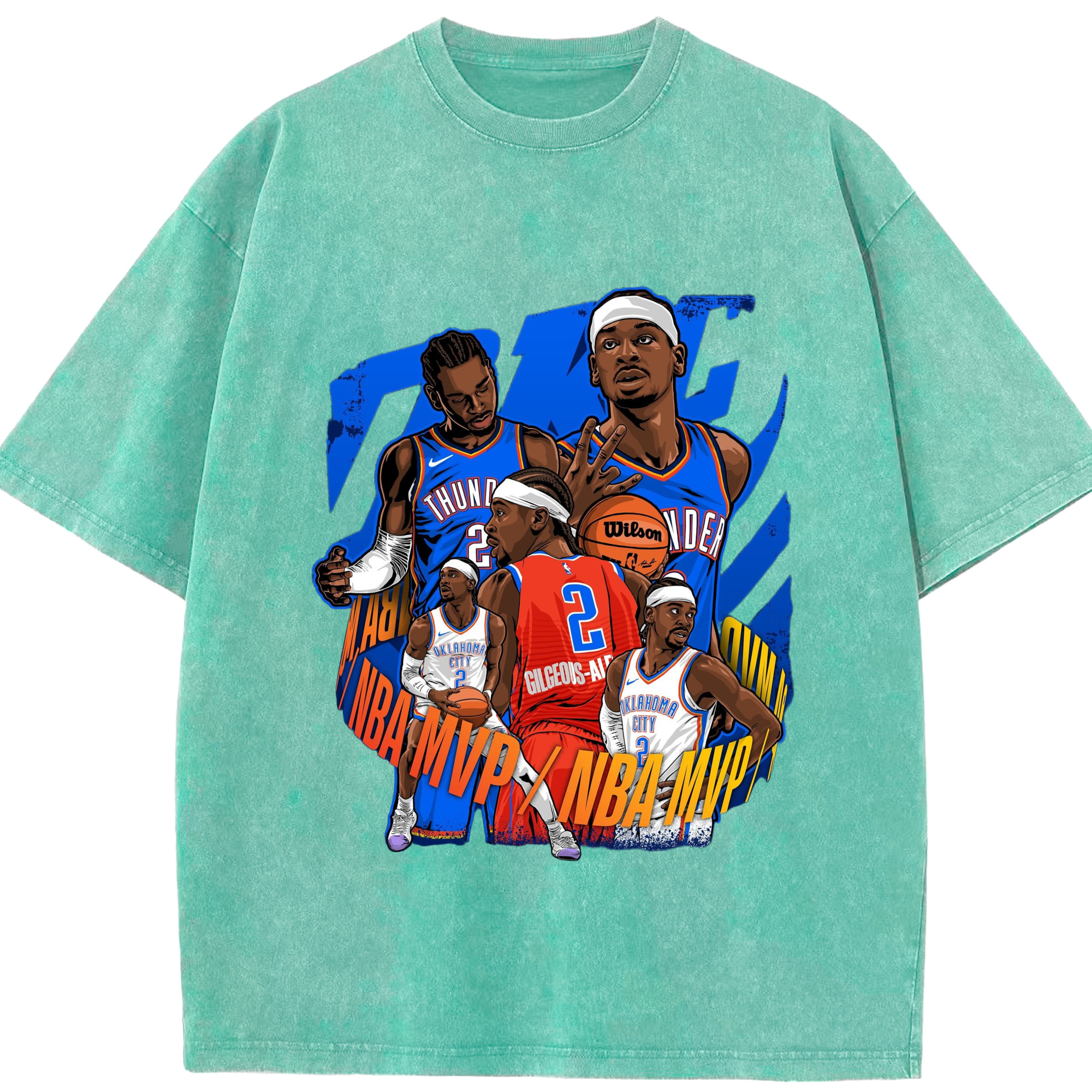 Shai Gilgeous-Alexander mvp Cartoon collage tee - Washed Vintage Look 230g Cotton Oversized T-Shirt With Front Heat Transfer Print – Soft, Lightweight, Stylish Fit – Comfortable Casual Wear For Sports & Everyday Use