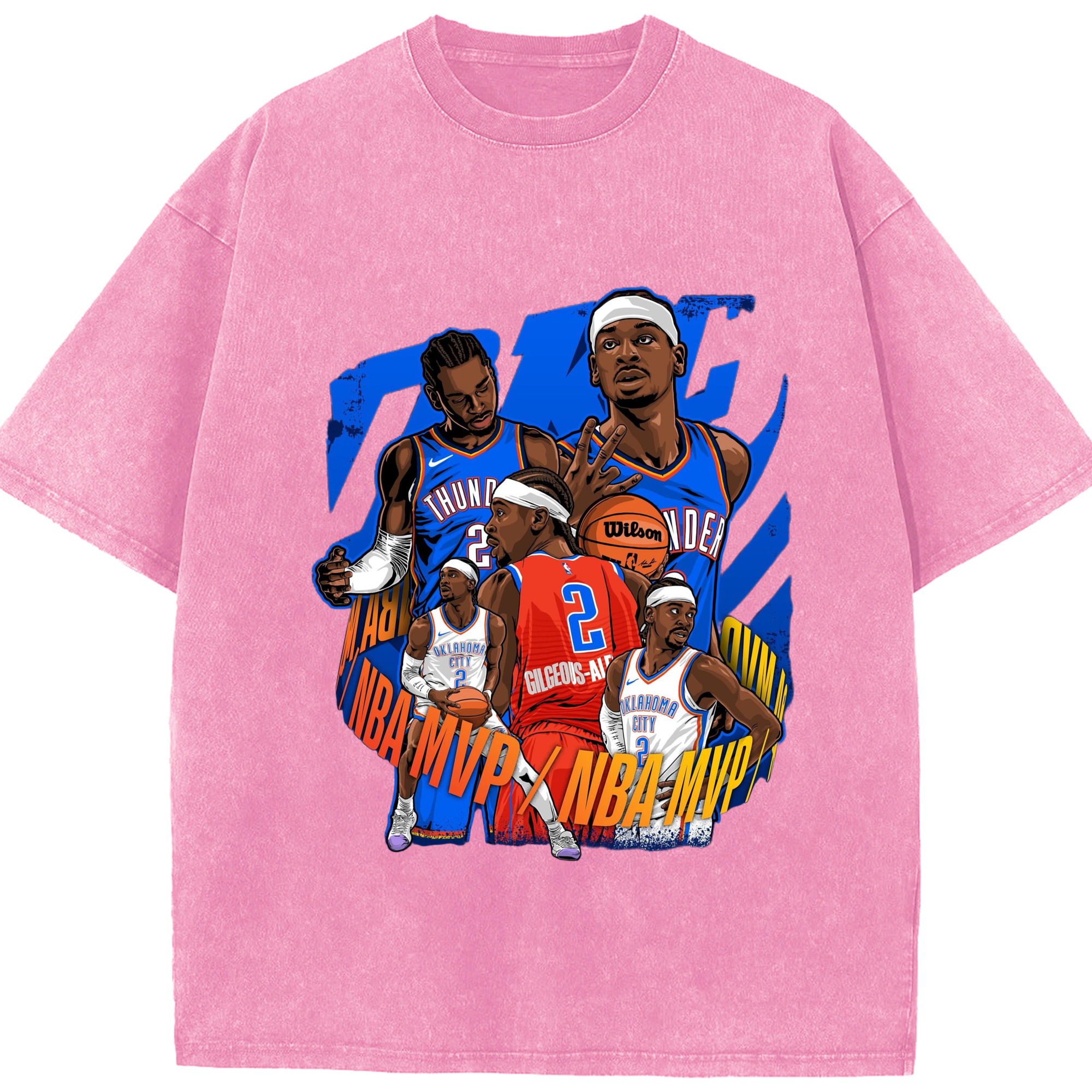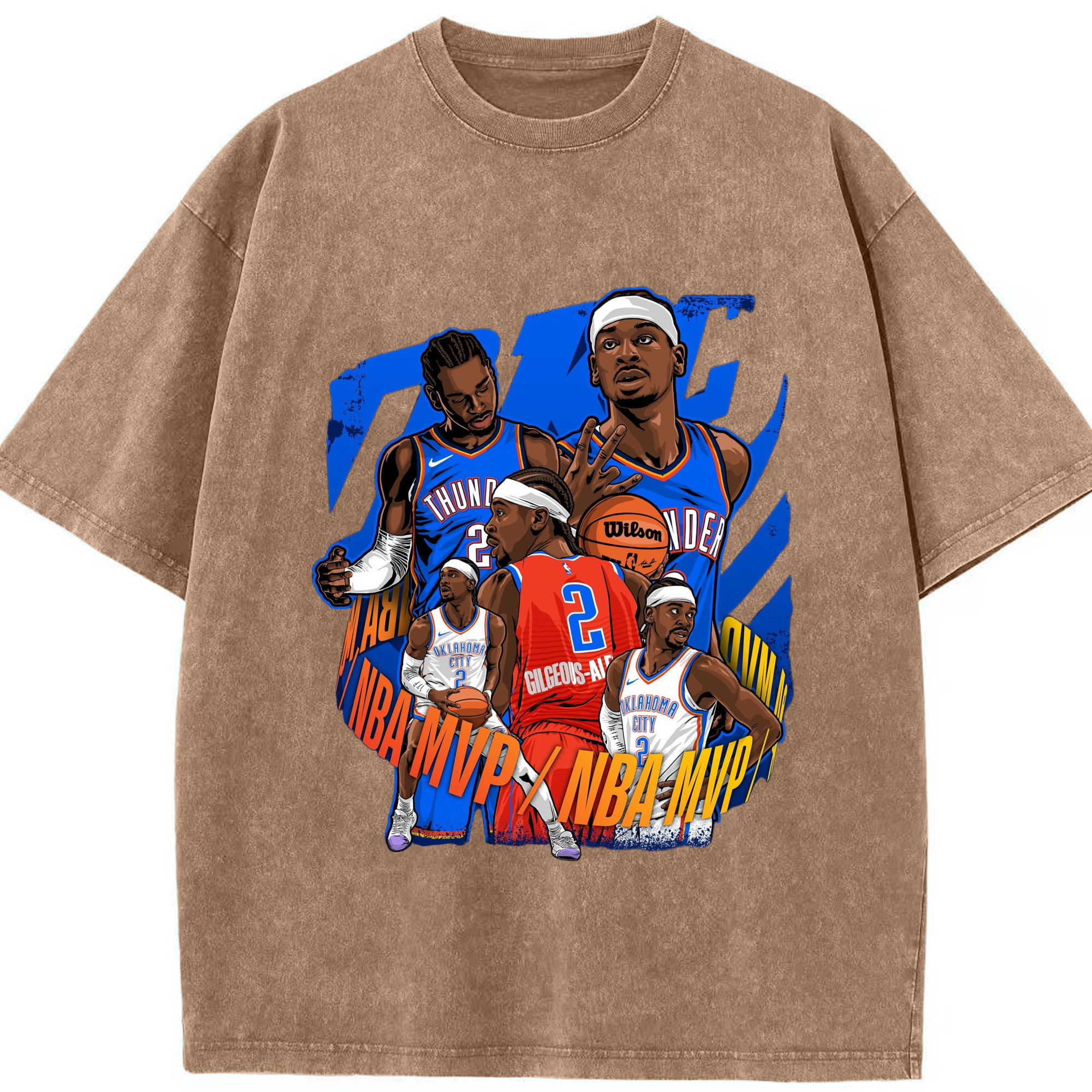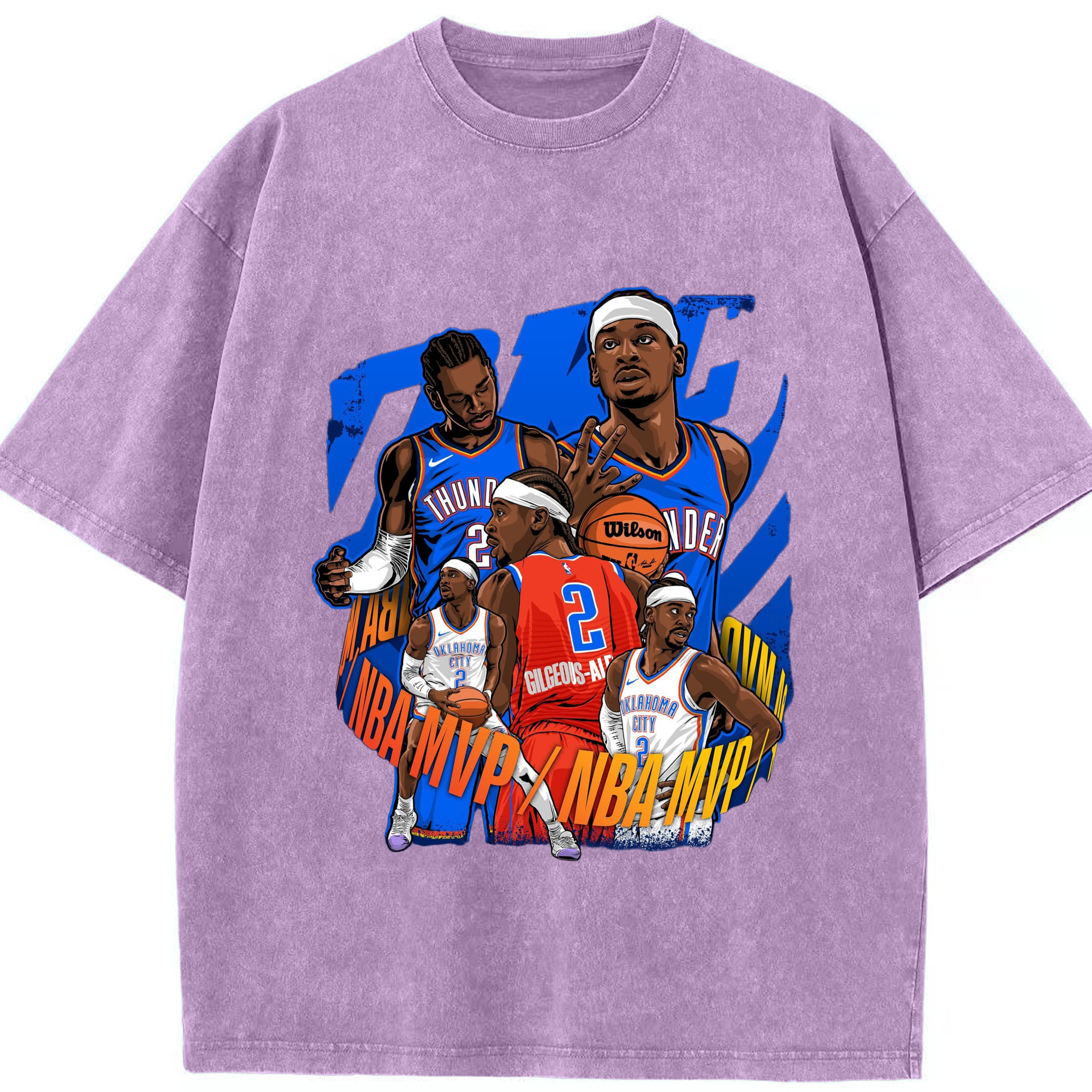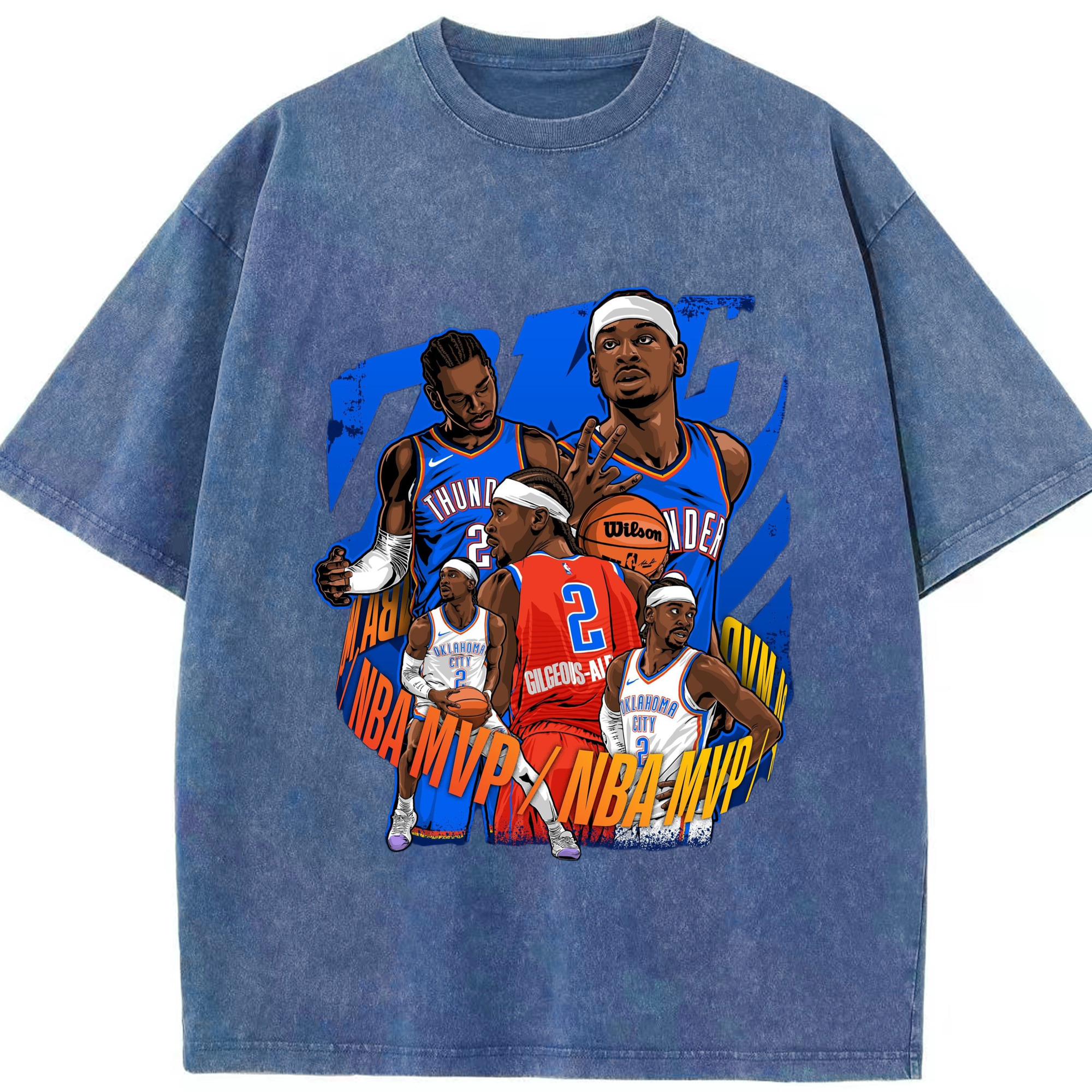 Shai Gilgeous-Alexander mvp Cartoon collage tee - Washed Vintage Look 230g Cotton Oversized T-Shirt With Front Heat Transfer Print – Soft, Lightweight, Stylish Fit – Comfortable Casual Wear For Sports & Everyday Use