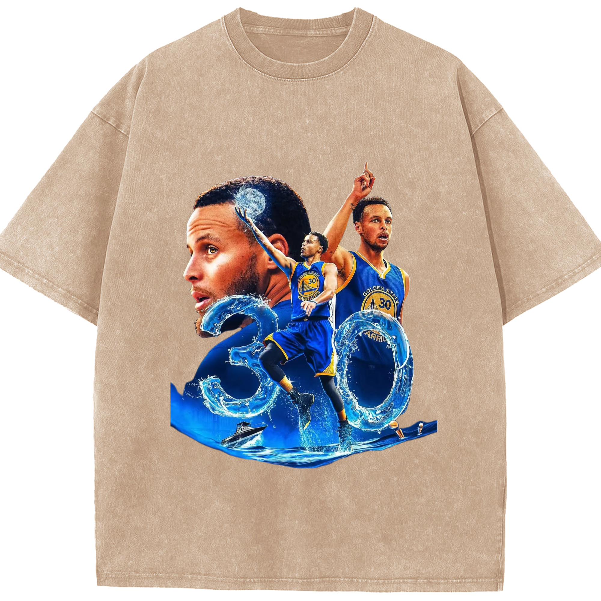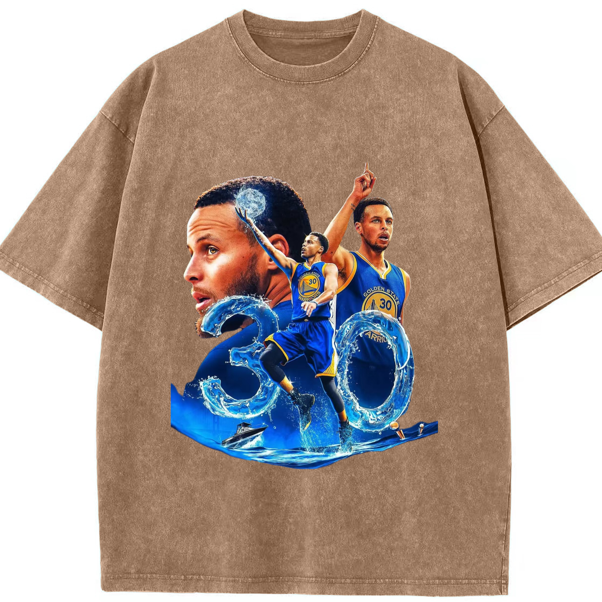 Splash Brothers Curry T-shirt - Washed Vintage Look 230g Cotton Oversized T-Shirt With Front Heat Transfer Print – Soft, Lightweight, Stylish Fit – Comfortable Casual Wear For Sports & Everyday Use