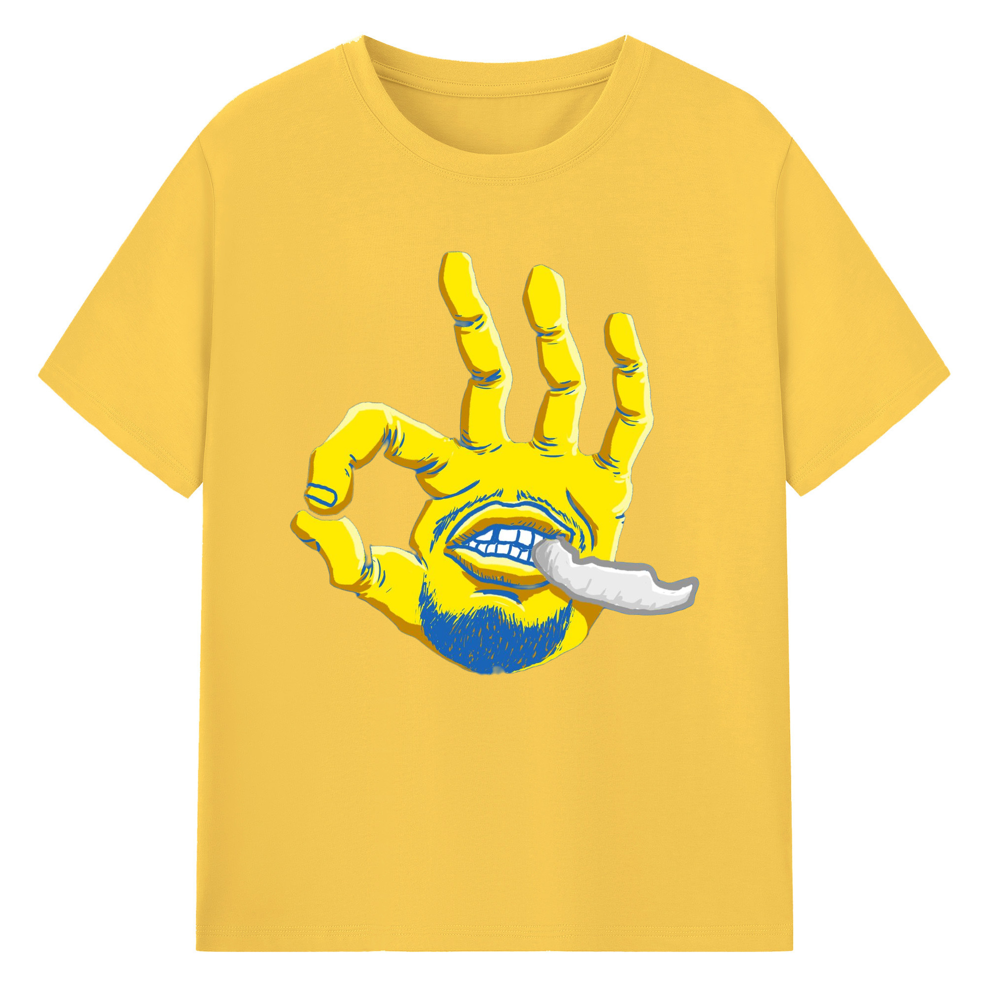 Steph Curry Golden State Cartoon chewing braces t-shirt - 180g Cotton T-Shirt With Front Heat Transfer Print – Soft, Lightweight, Fitted Design – Comfortable Casual Wear For Sports & Everyday Use