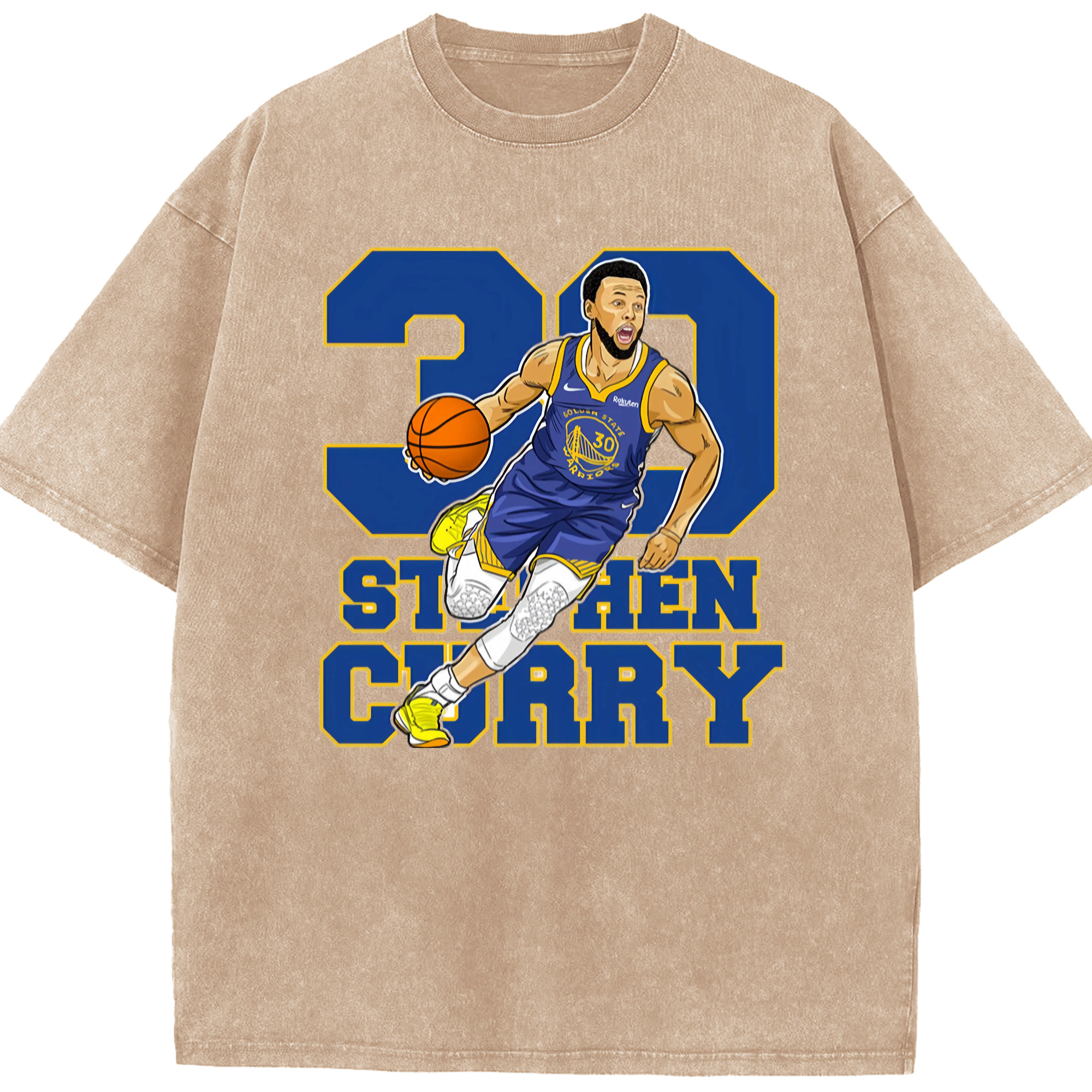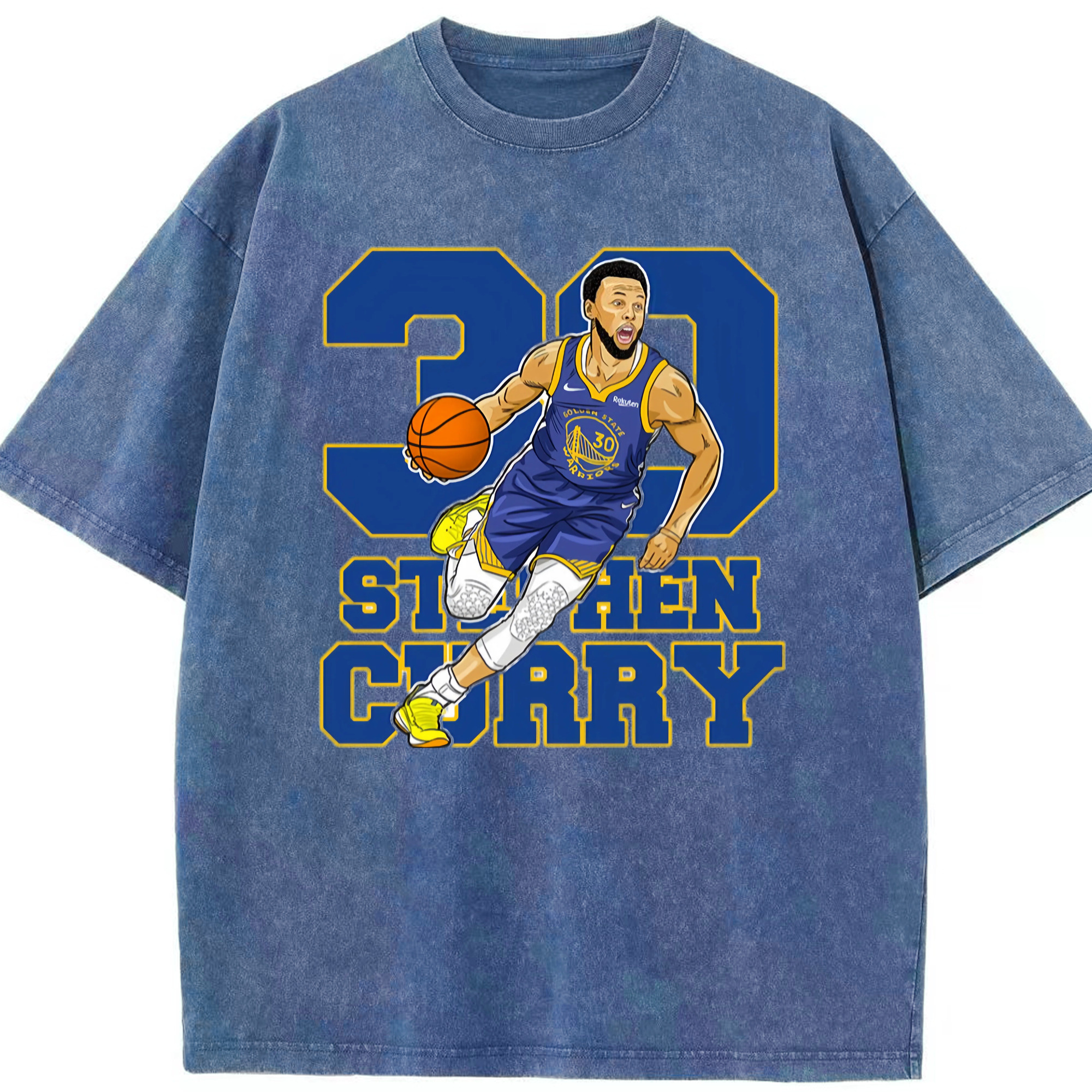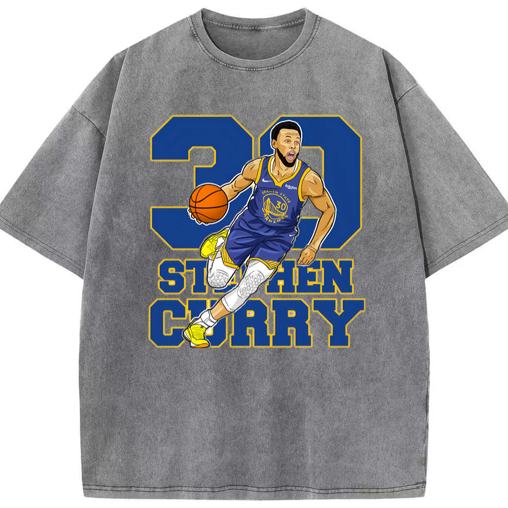 Steph Curry Golden State Warriors Breakthrough Cartoon t-shirt - Washed Vintage Look 230g Cotton Oversized T-Shirt With Front Heat Transfer Print – Soft, Lightweight, Stylish Fit – Comfortable Casual Wear For Sports & Everyday Use