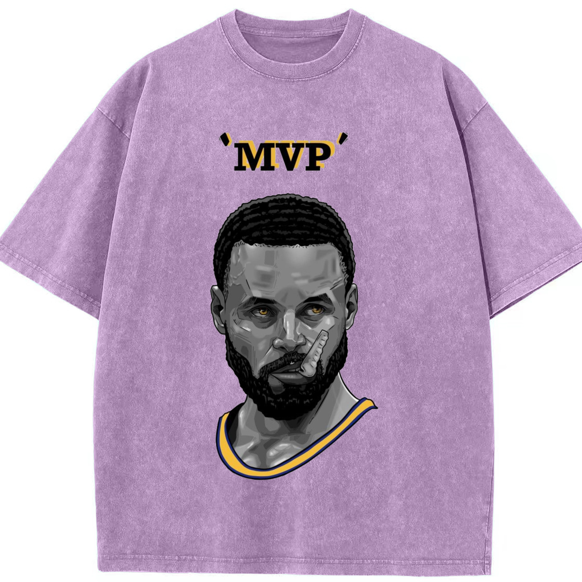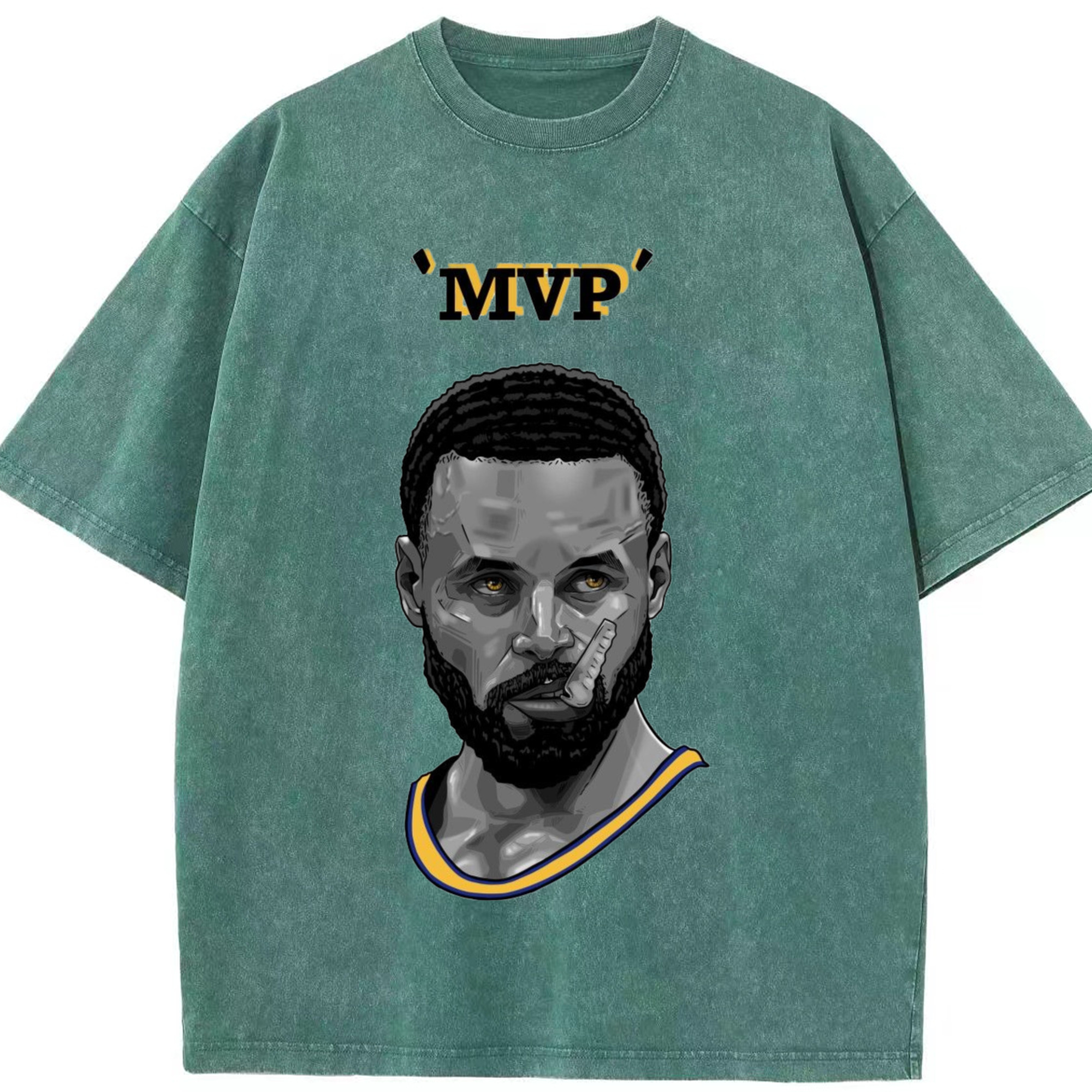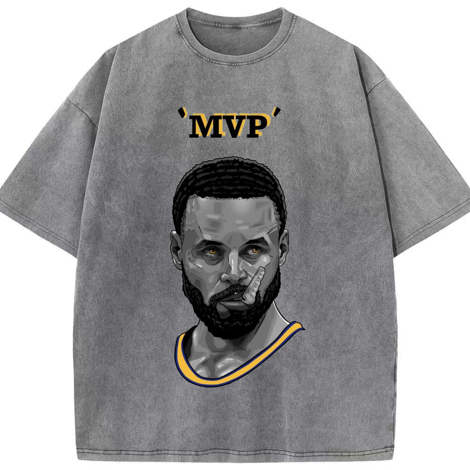 Steph Curry Golden State Warriors Cartoon mvp profile picture tee - Washed Vintage Look 230g Cotton Oversized T-Shirt With Front Heat Transfer Print – Soft, Lightweight, Stylish Fit – Comfortable Casual Wear For Sports & Everyday Use