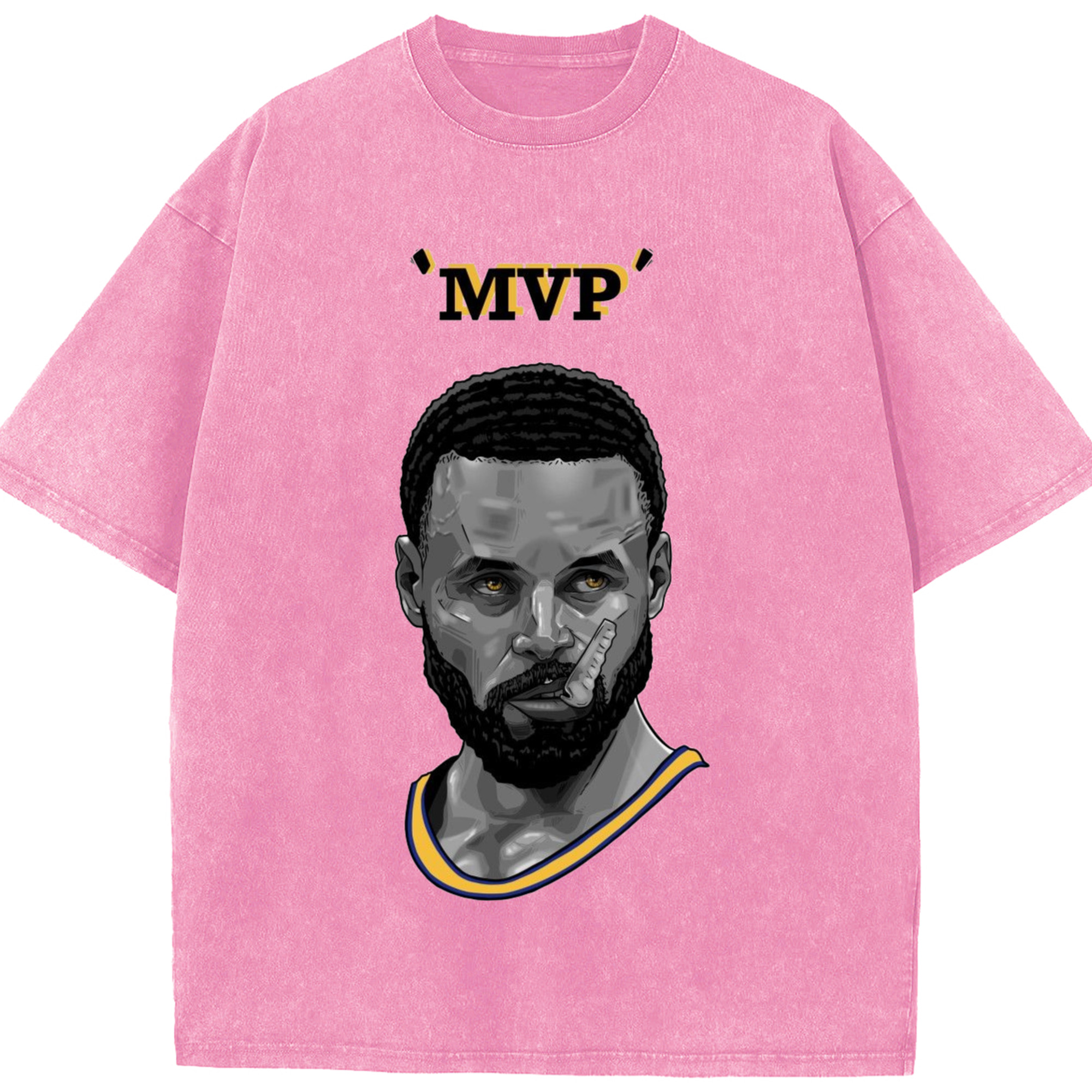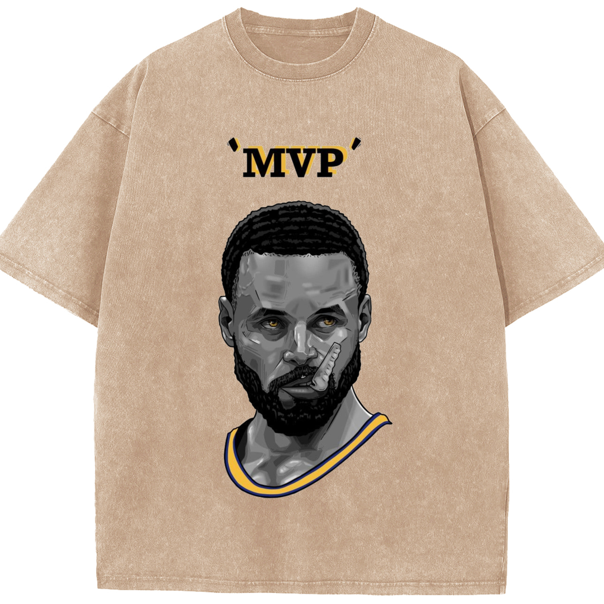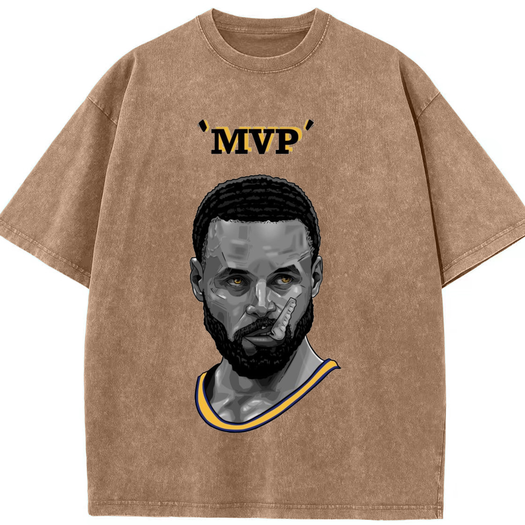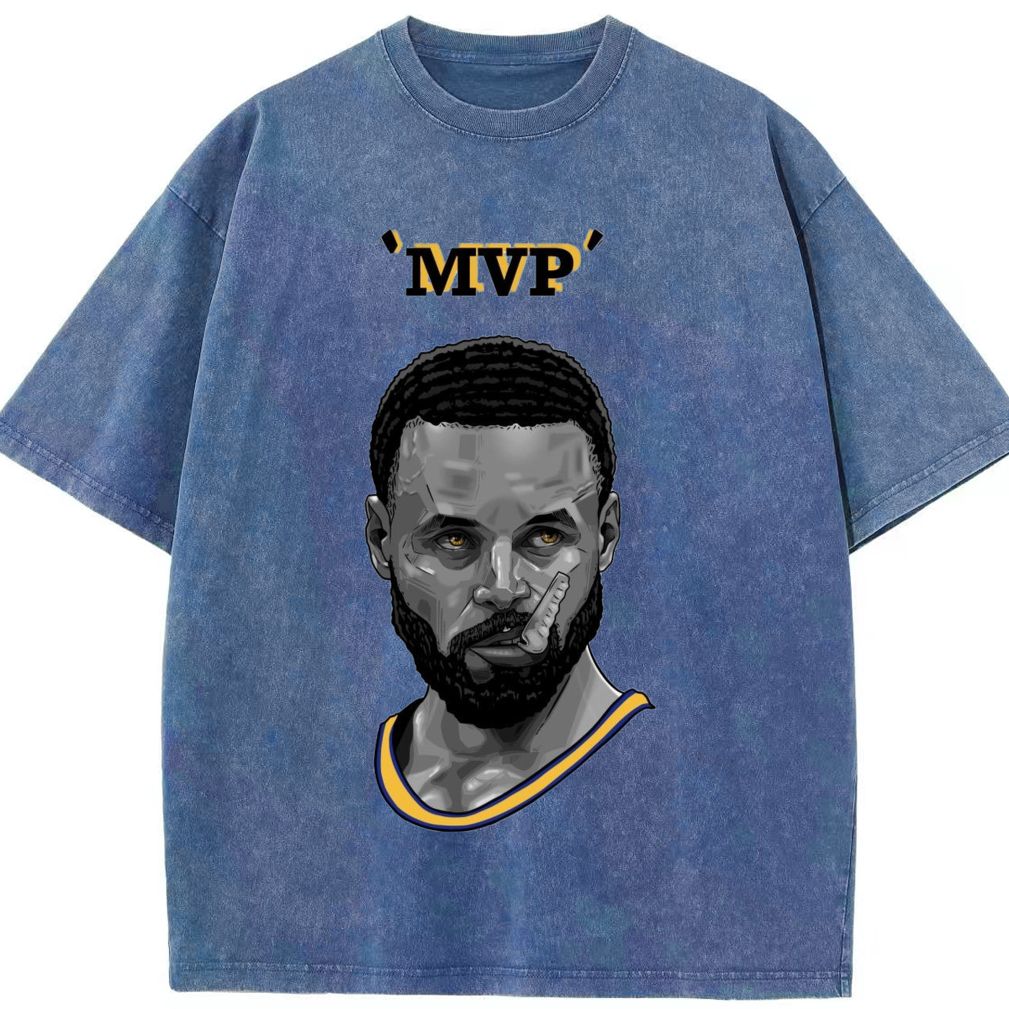Steph Curry Golden State Warriors Cartoon mvp profile picture tee - Washed Vintage Look 230g Cotton Oversized T-Shirt With Front Heat Transfer Print – Soft, Lightweight, Stylish Fit – Comfortable Casual Wear For Sports & Everyday Use